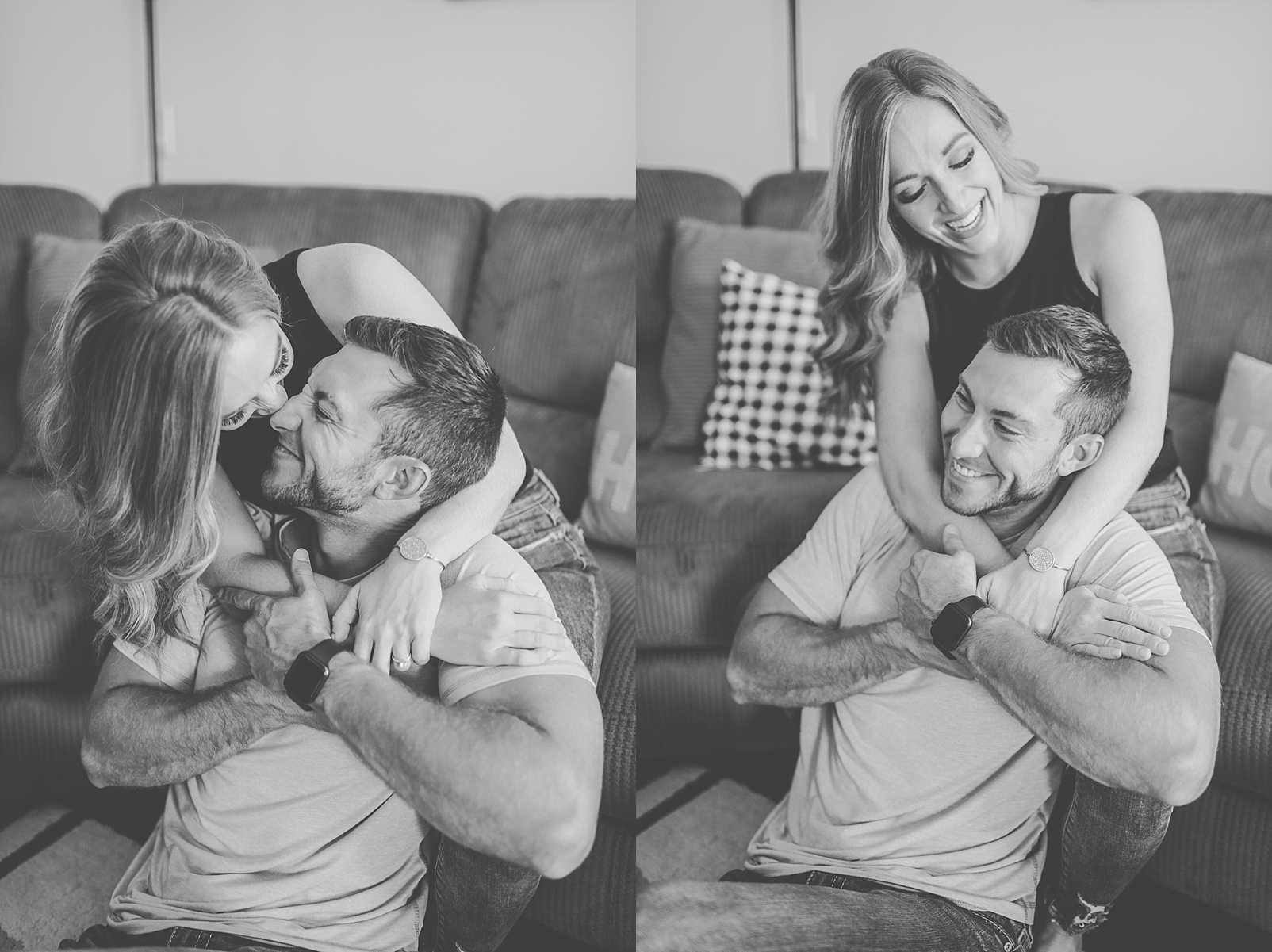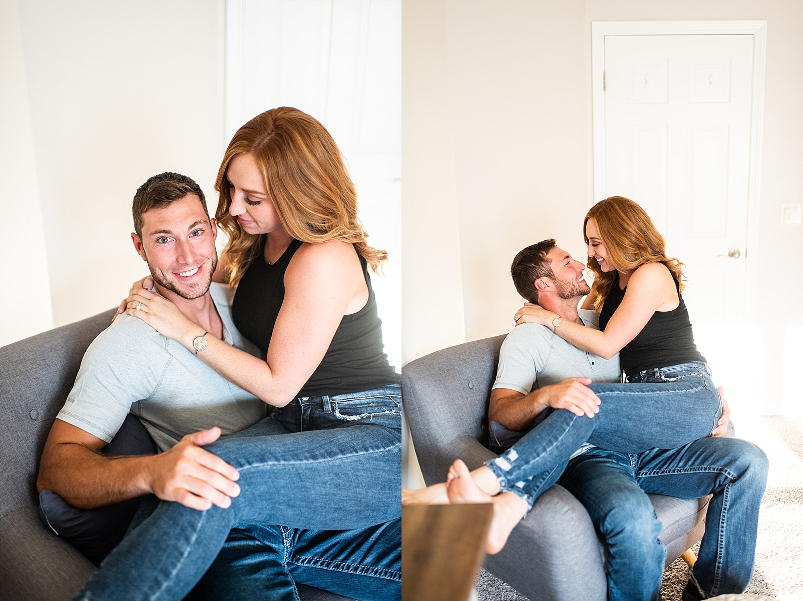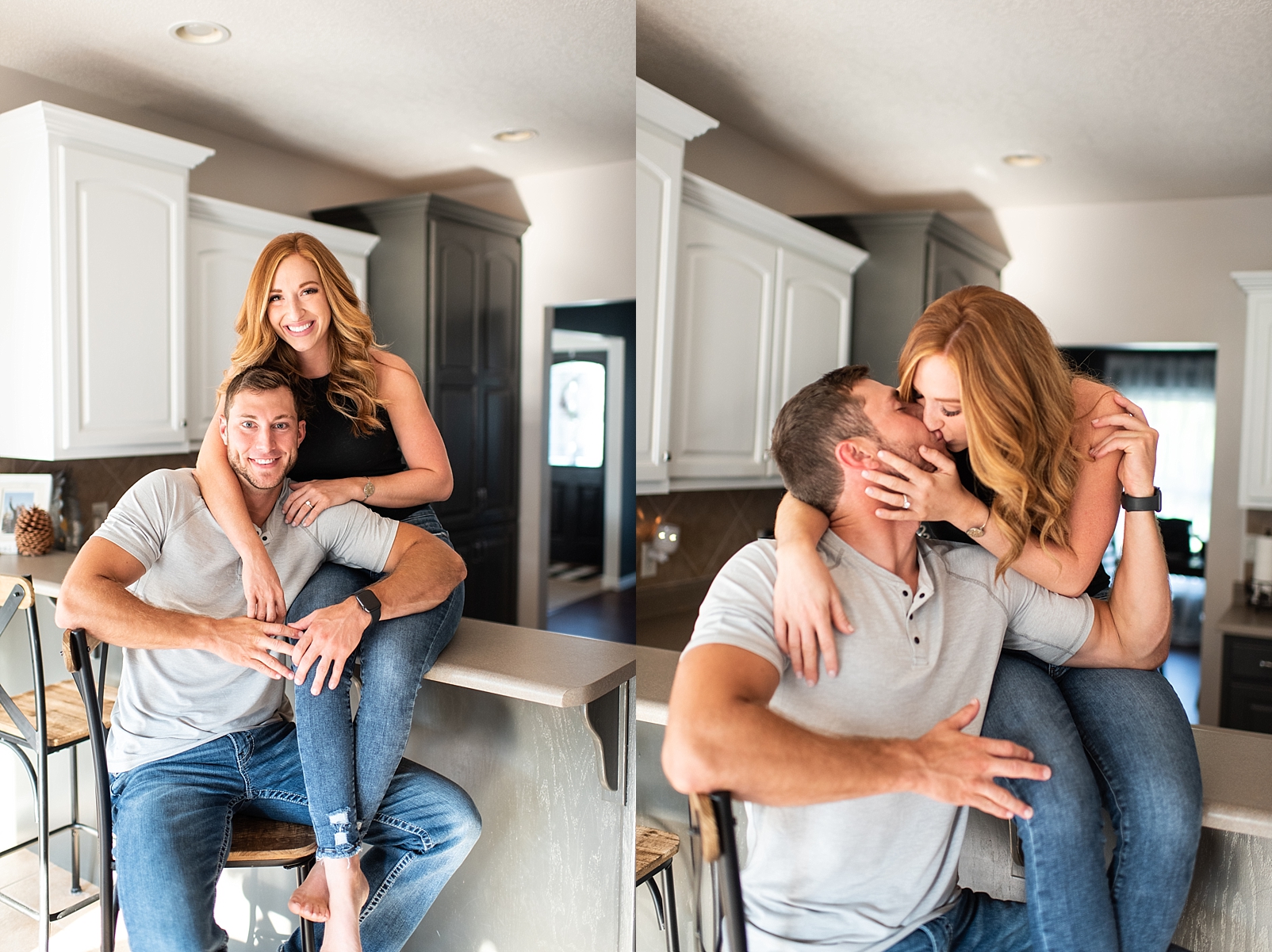 I loved working with Addie and Jacob for their engagement session! They are having a destination wedding next year, so it was important to them to have their engagement photos right where they feel most comfortable–at home. Jacob is a dentist and Addie a hygienist, so these two for sure win the “best smiles” award and were SO photogenic! I loved capturing them at their favorite spots in their home and cuddling with their sweet pups!