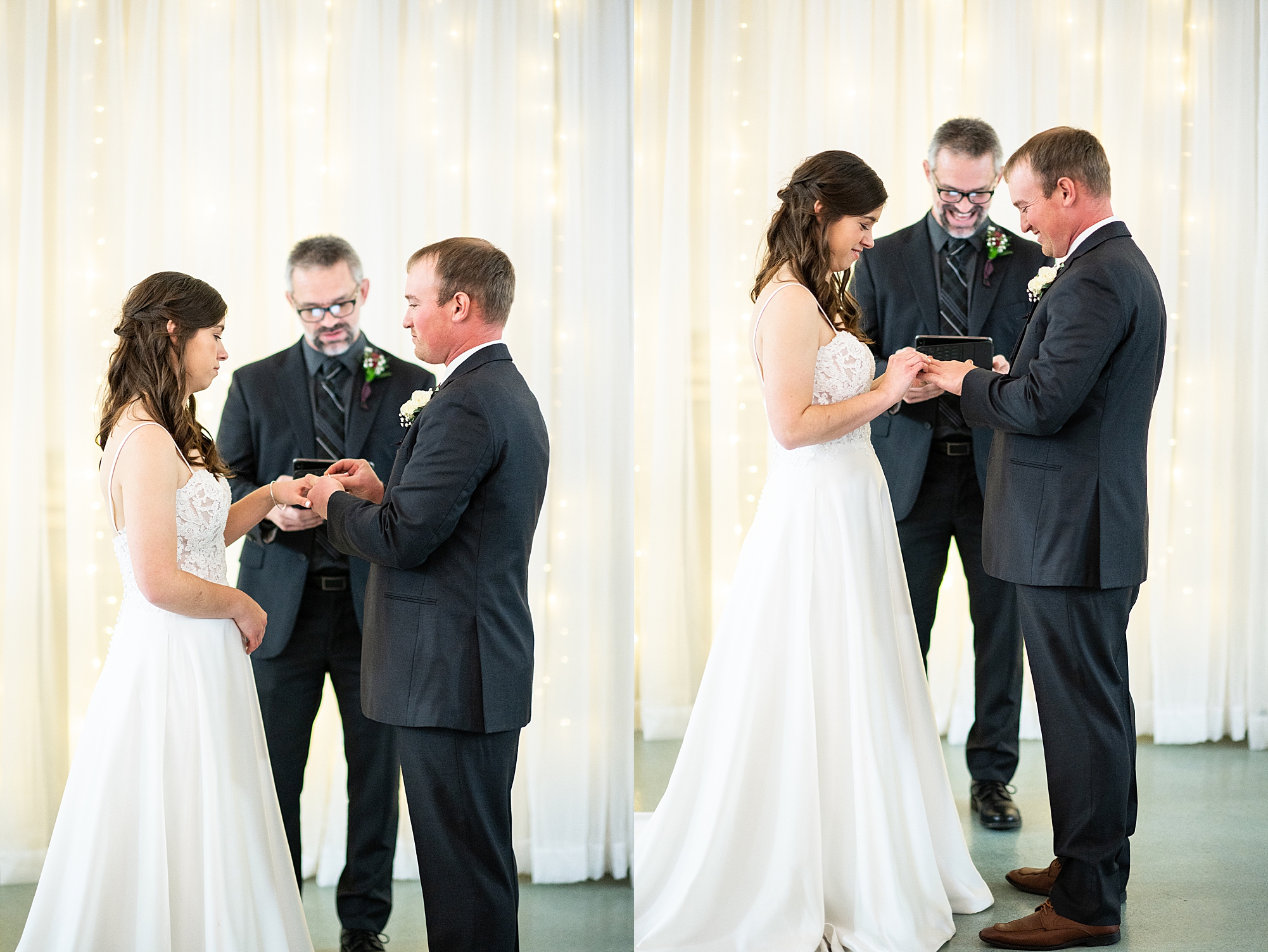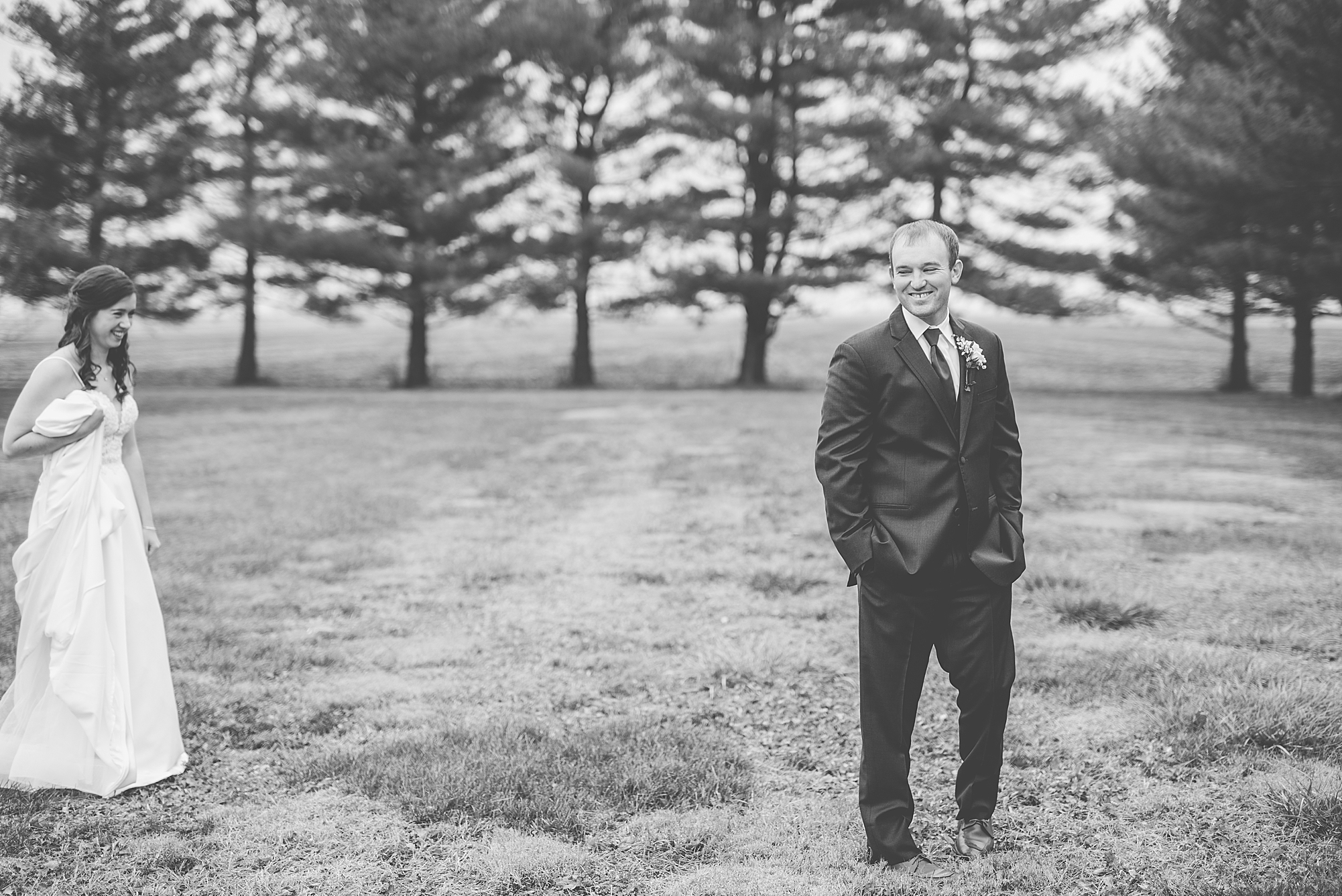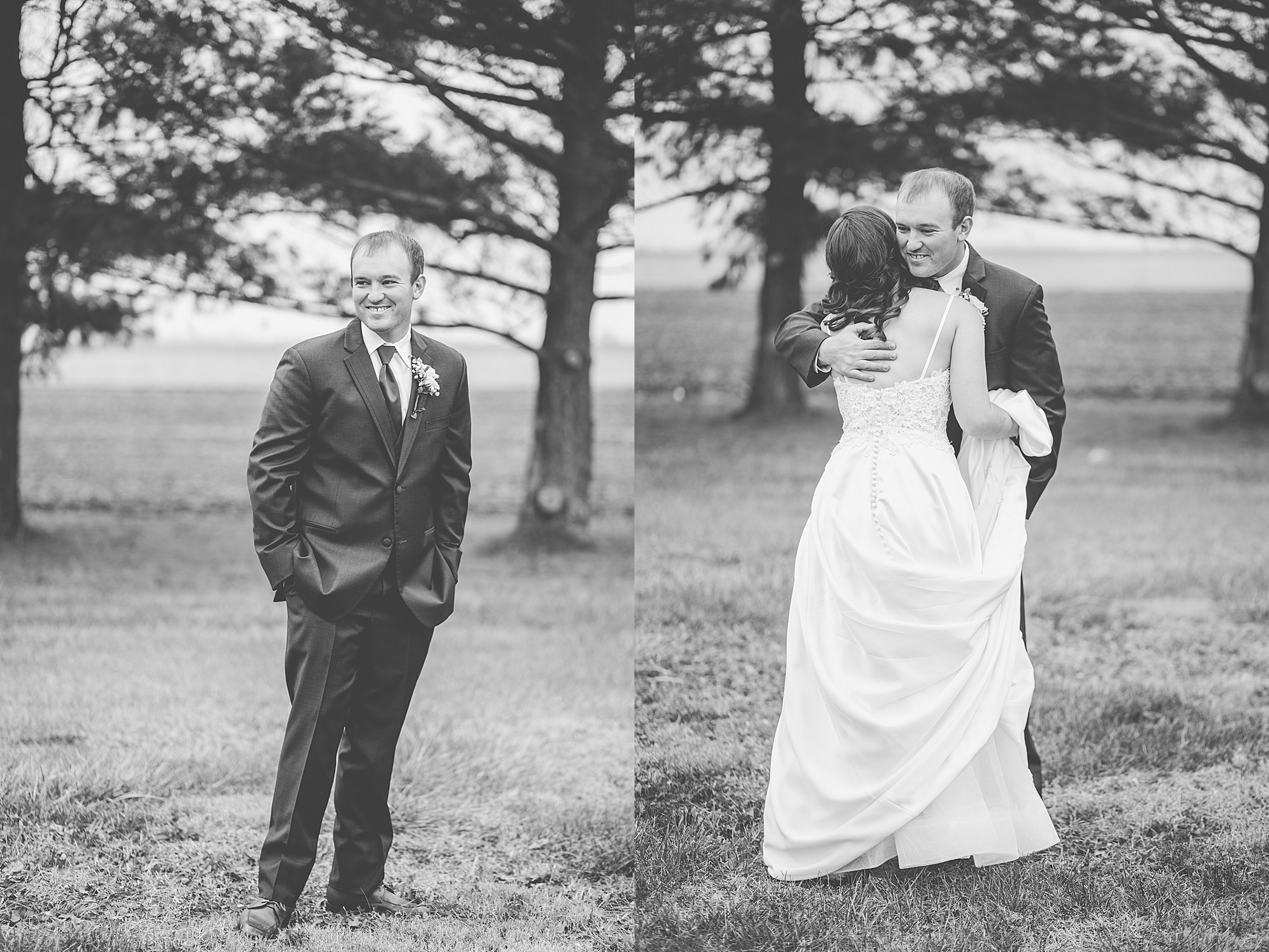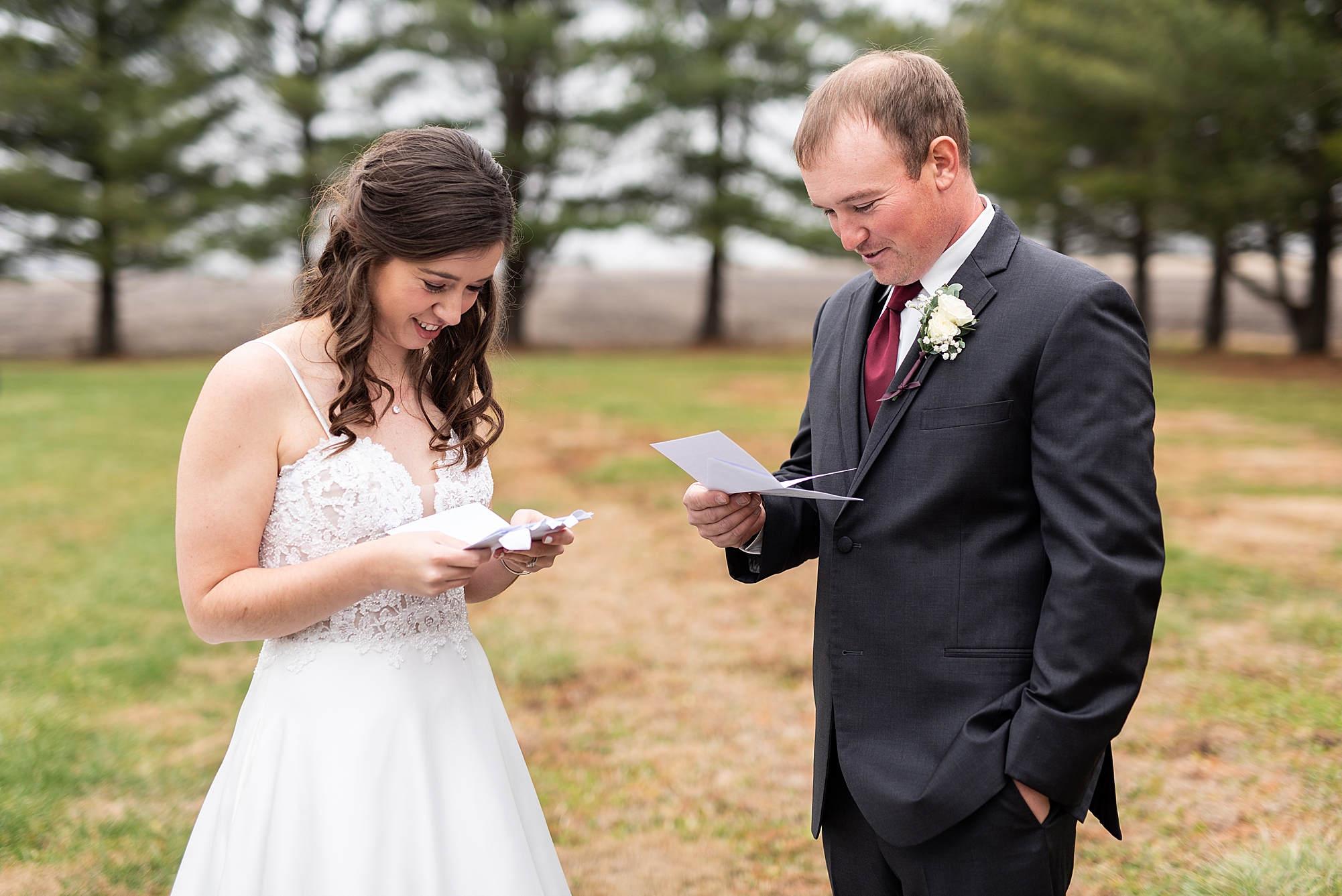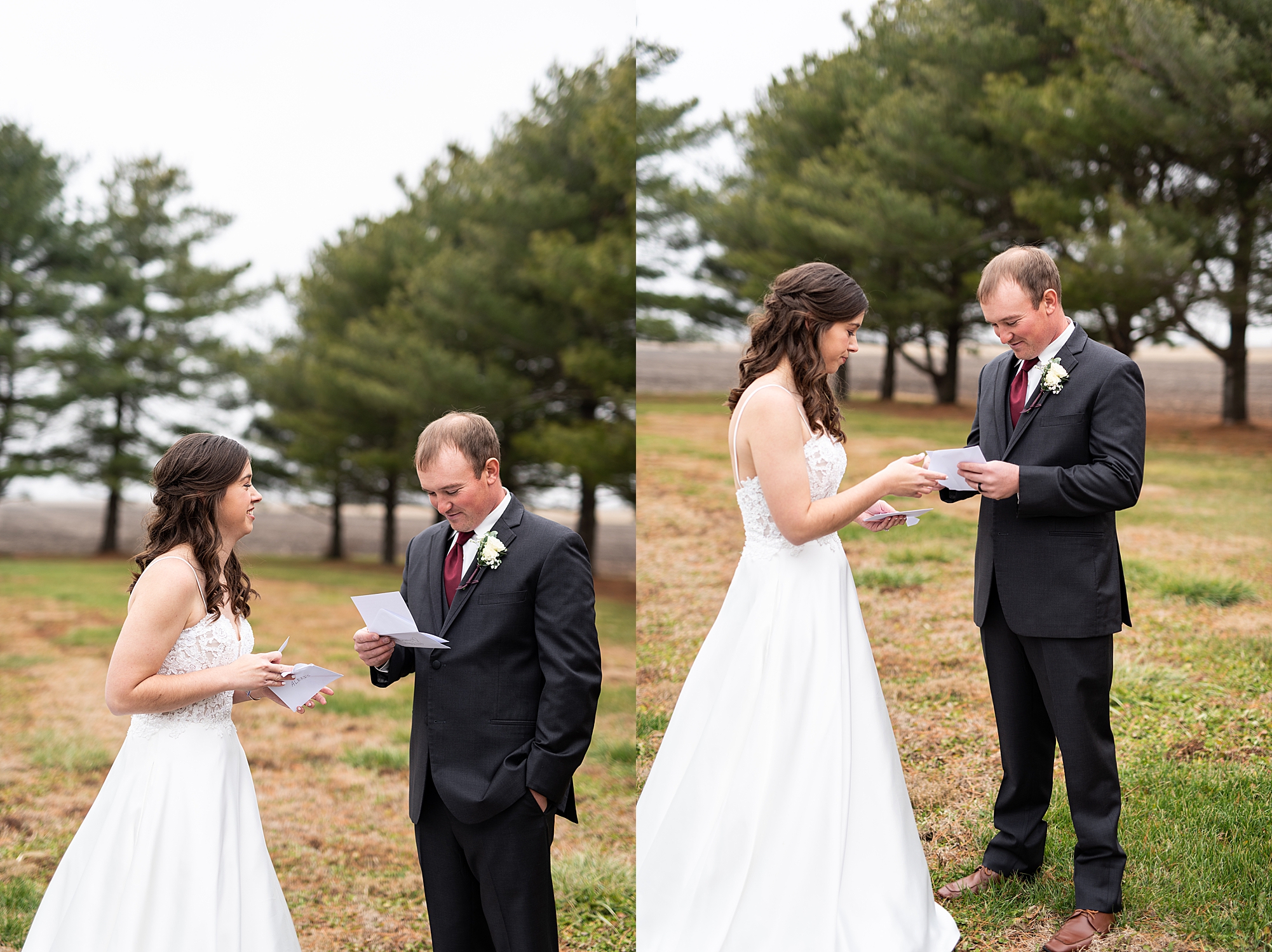 Then it was time for Alexis and Brady to see each other, so we headed out to Alexis’s grandparent’s property for their first look. They both smiled so big as Brady turned around to see his beautiful bride for the first time. They read letters that they wrote to each other and we got to spend a few quiet moments capturing them in such a special place. After we grabbed some photos with their bridal party and families back in their getting ready space, we headed to their venue to make it official!