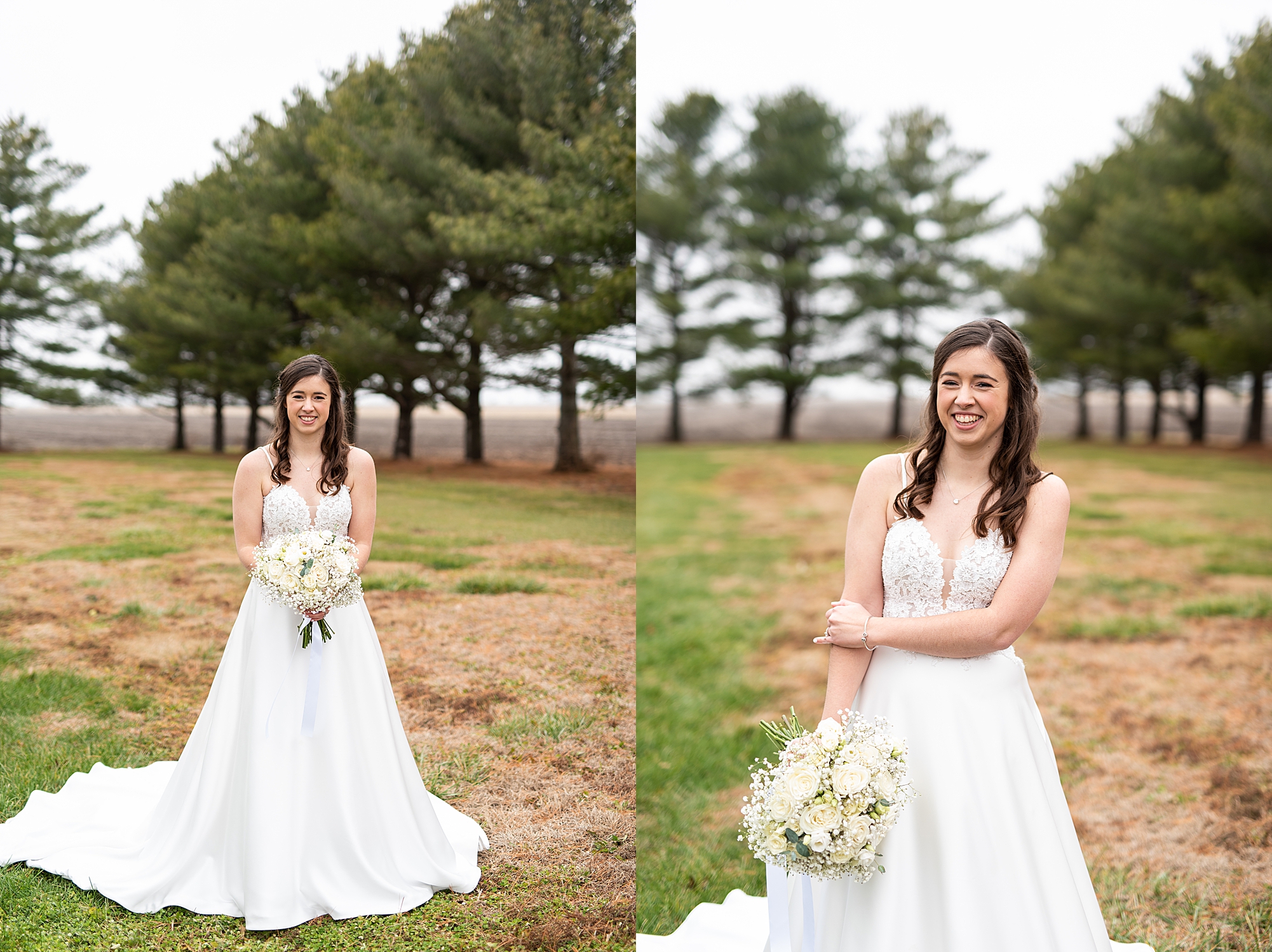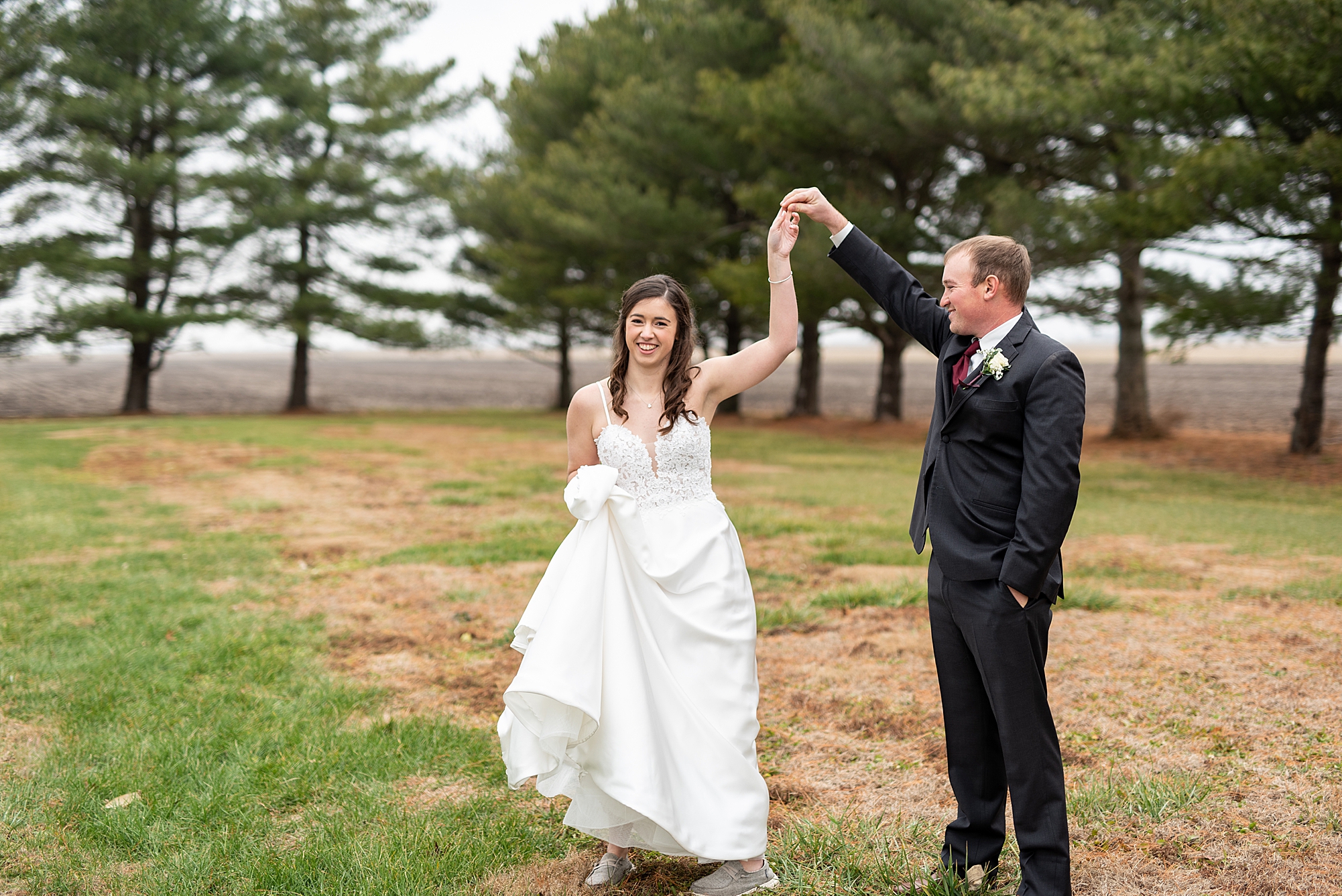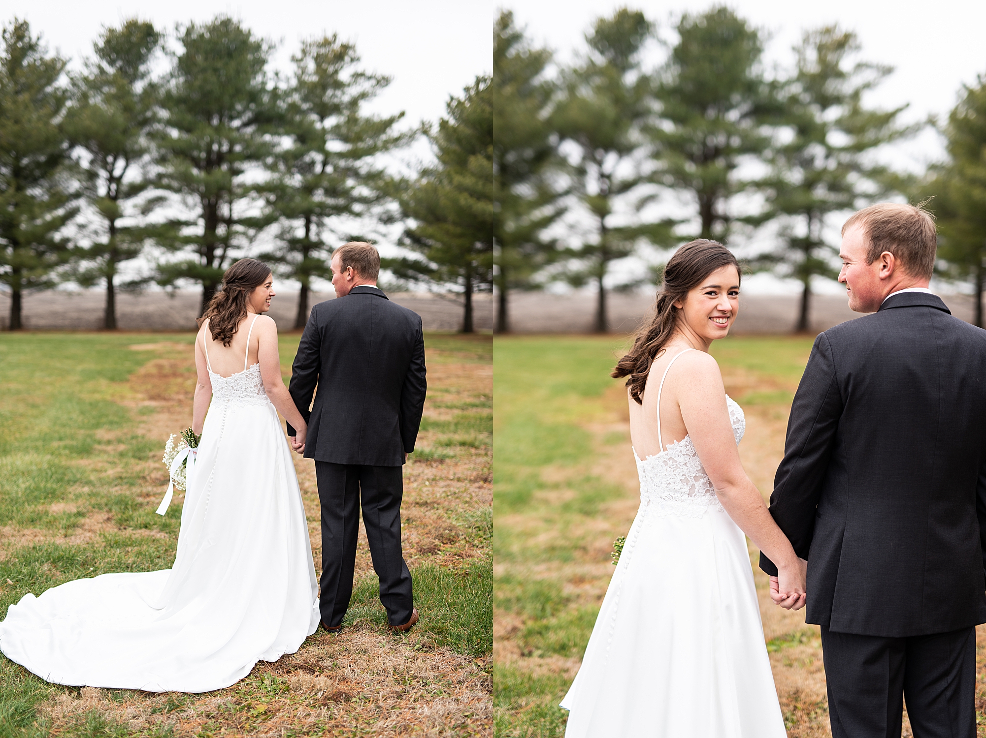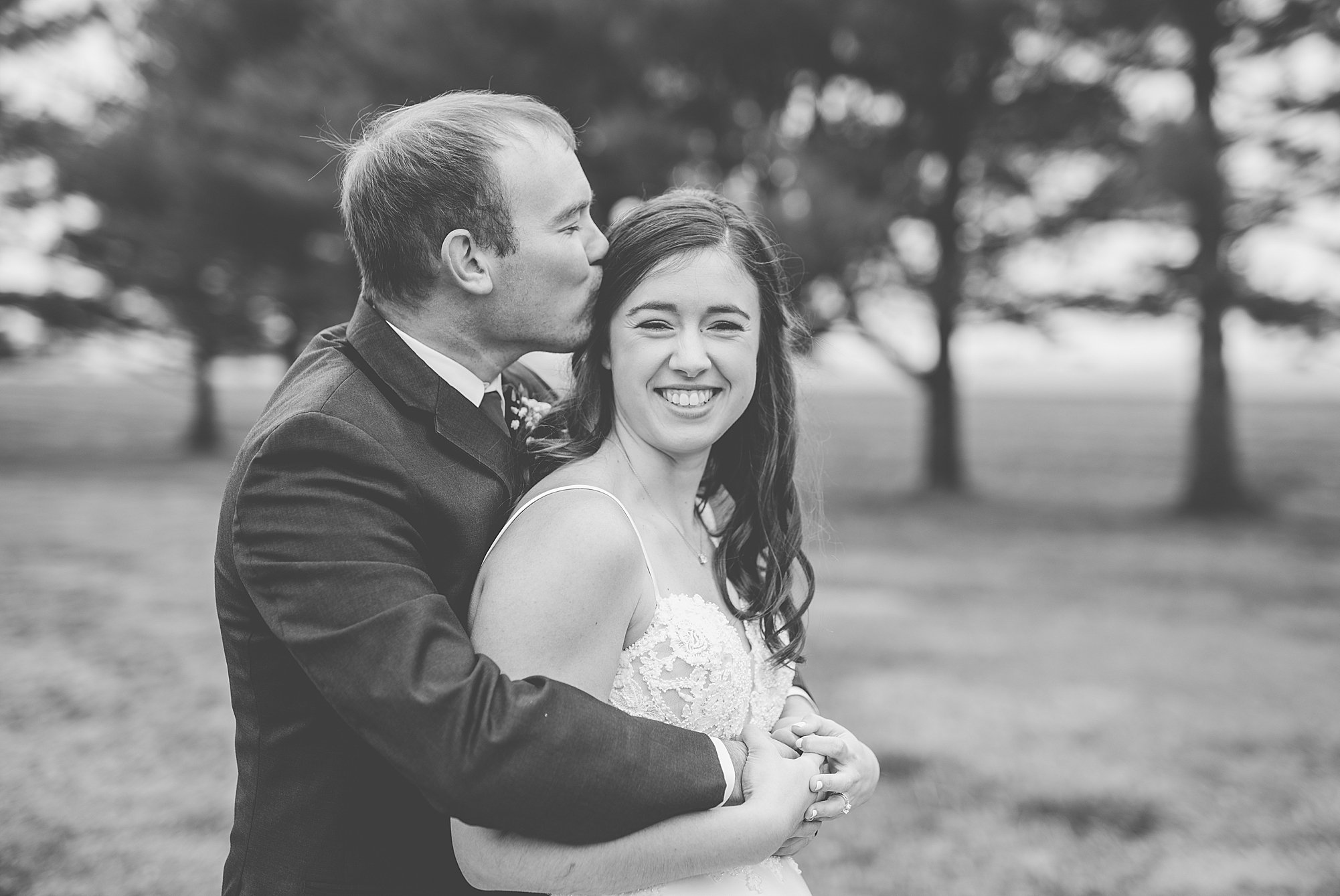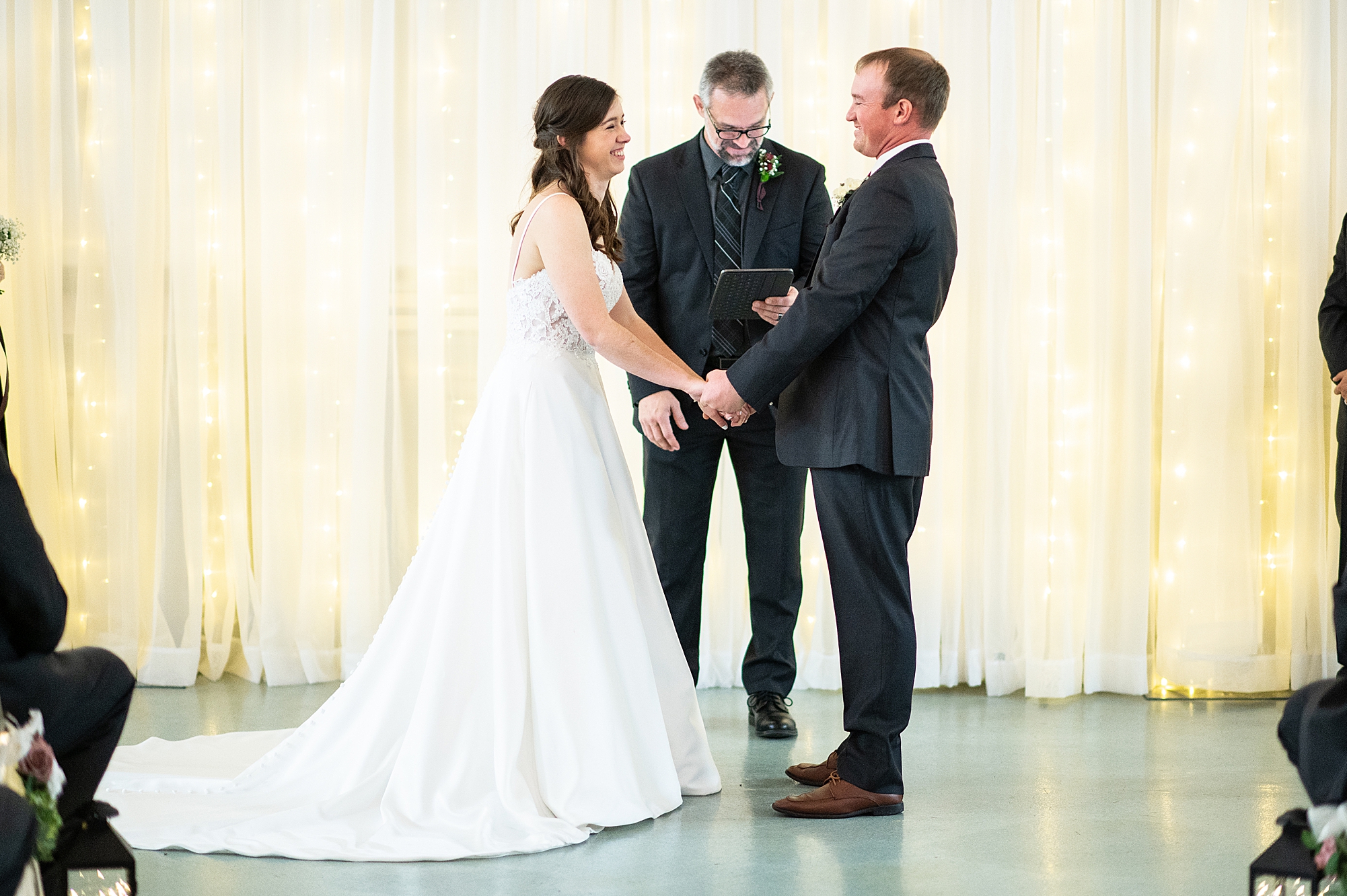 Then it was time for Alexis and Brady to see each other, so we headed out to Alexis’s grandparent’s property for their first look. They both smiled so big as Brady turned around to see his beautiful bride for the first time. They read letters that they wrote to each other and we got to spend a few quiet moments capturing them in such a special place. After we grabbed some photos with their bridal party and families back in their getting ready space, we headed to their venue to make it official!