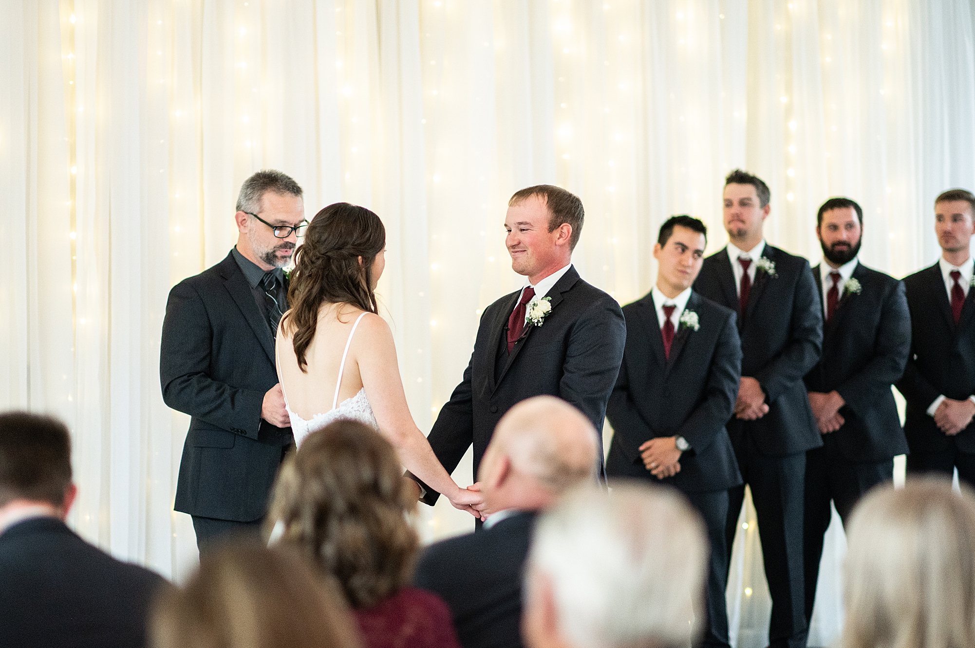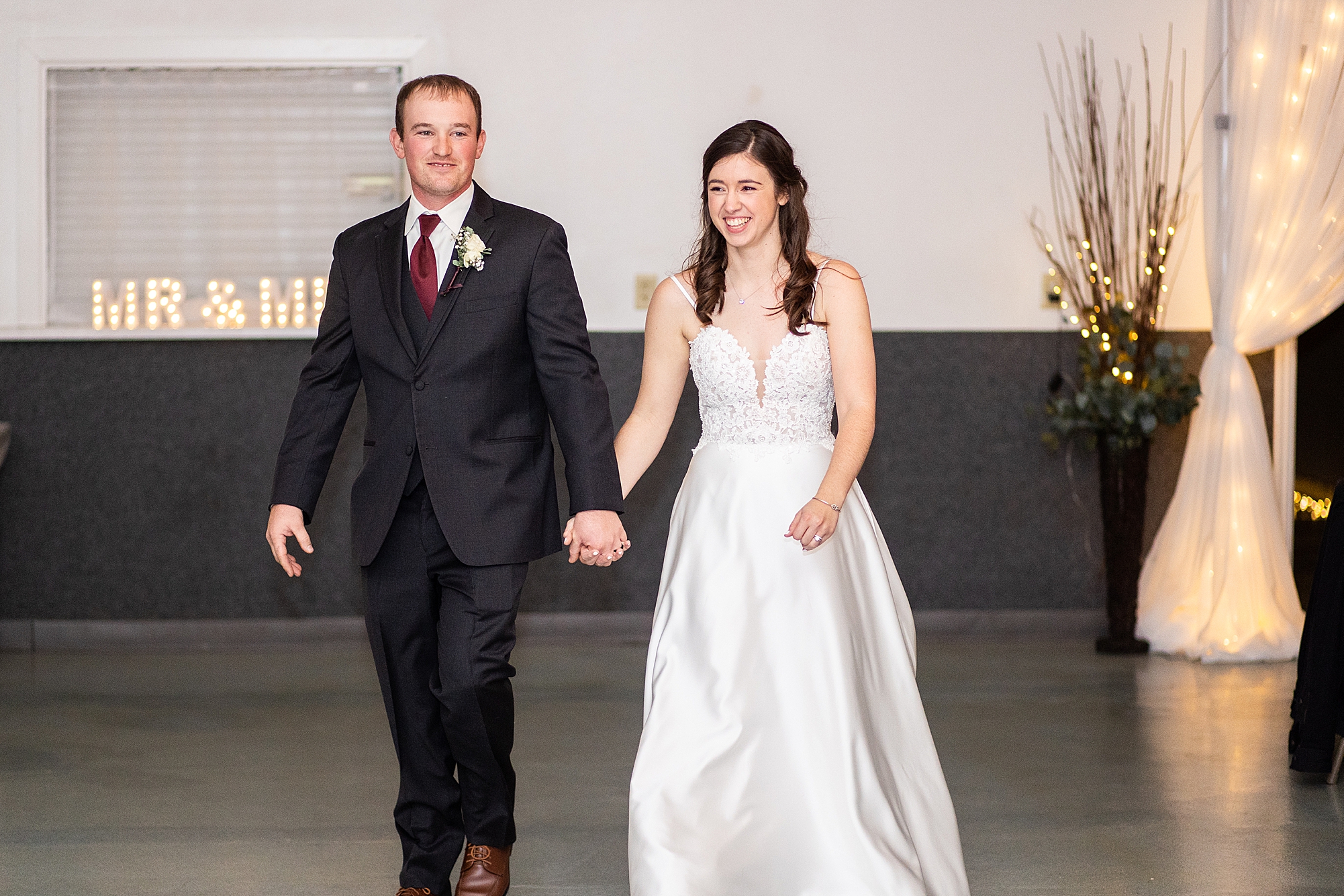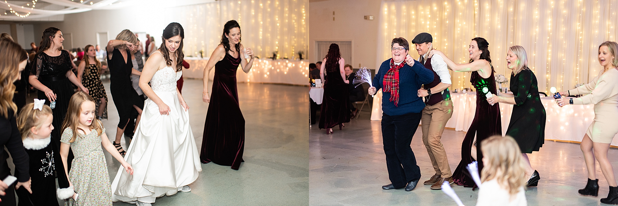 After the ceremony, they greeted all of their guests during a cocktail hour. Alexis and Brady did an amazing job planning and decorating a beautiful space full of twinkle lights and hints of red. Alexis and Brady handmade all of the centerpiece lanterns and added special lights and floral touches. Alexis loves wintertime, so she wanted to bring the season into their reception. The newlyweds, along with their guests, spent a wonderful night dancing and celebrating their love. I am honored to have worked with these two and could not be happier for their newest adventure together as the Frieslands. Congratulations Alexis and Brady!