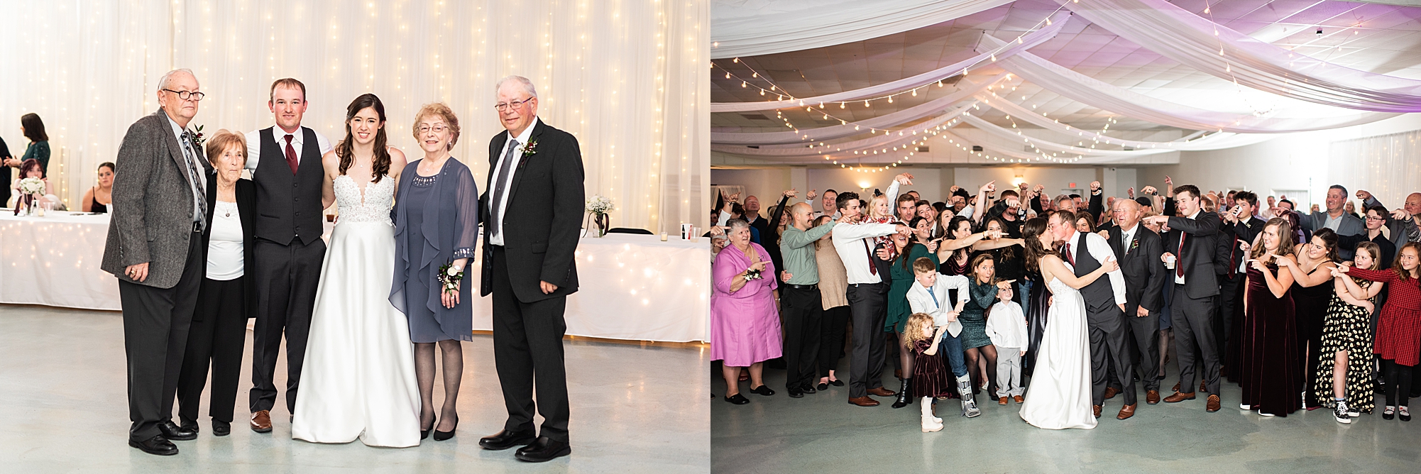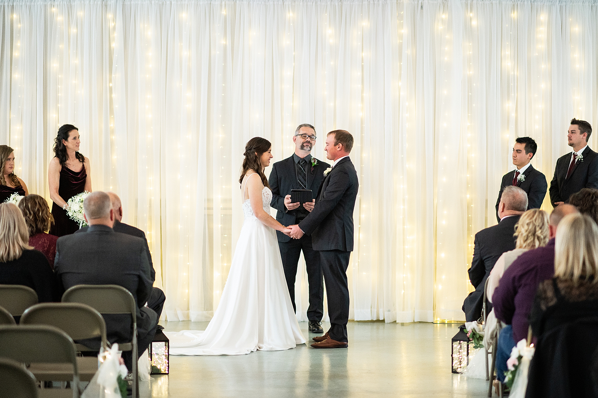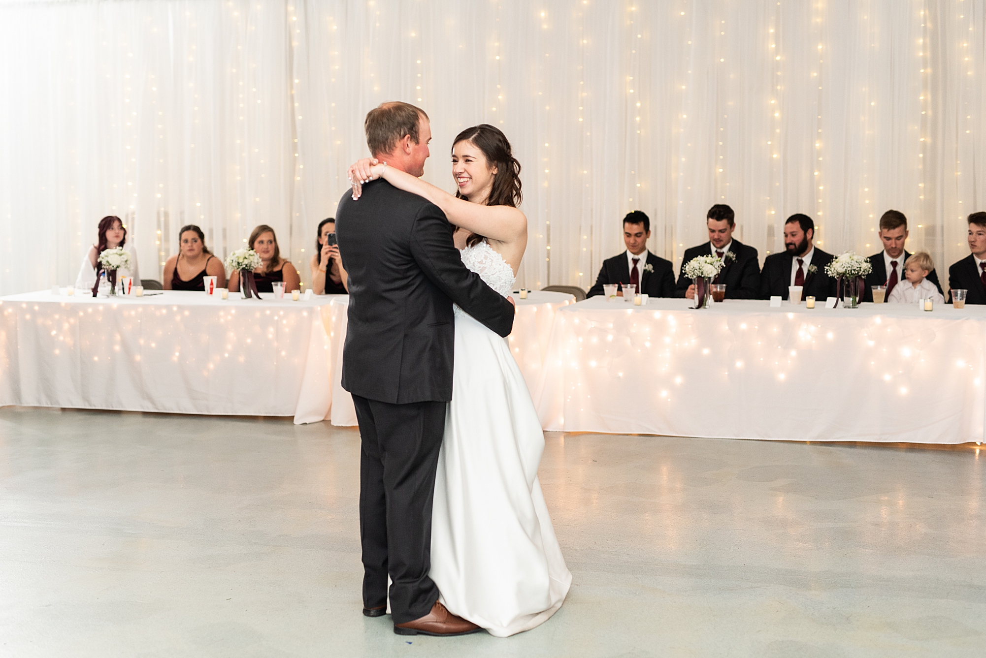 After the ceremony, they greeted all of their guests during a cocktail hour. Alexis and Brady did an amazing job planning and decorating a beautiful space full of twinkle lights and hints of red. Alexis and Brady handmade all of the centerpiece lanterns and added special lights and floral touches. Alexis loves wintertime, so she wanted to bring the season into their reception. The newlyweds, along with their guests, spent a wonderful night dancing and celebrating their love. I am honored to have worked with these two and could not be happier for their newest adventure together as the Frieslands. Congratulations Alexis and Brady!
