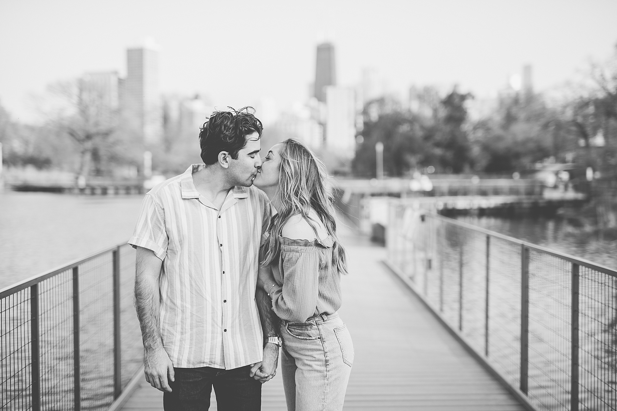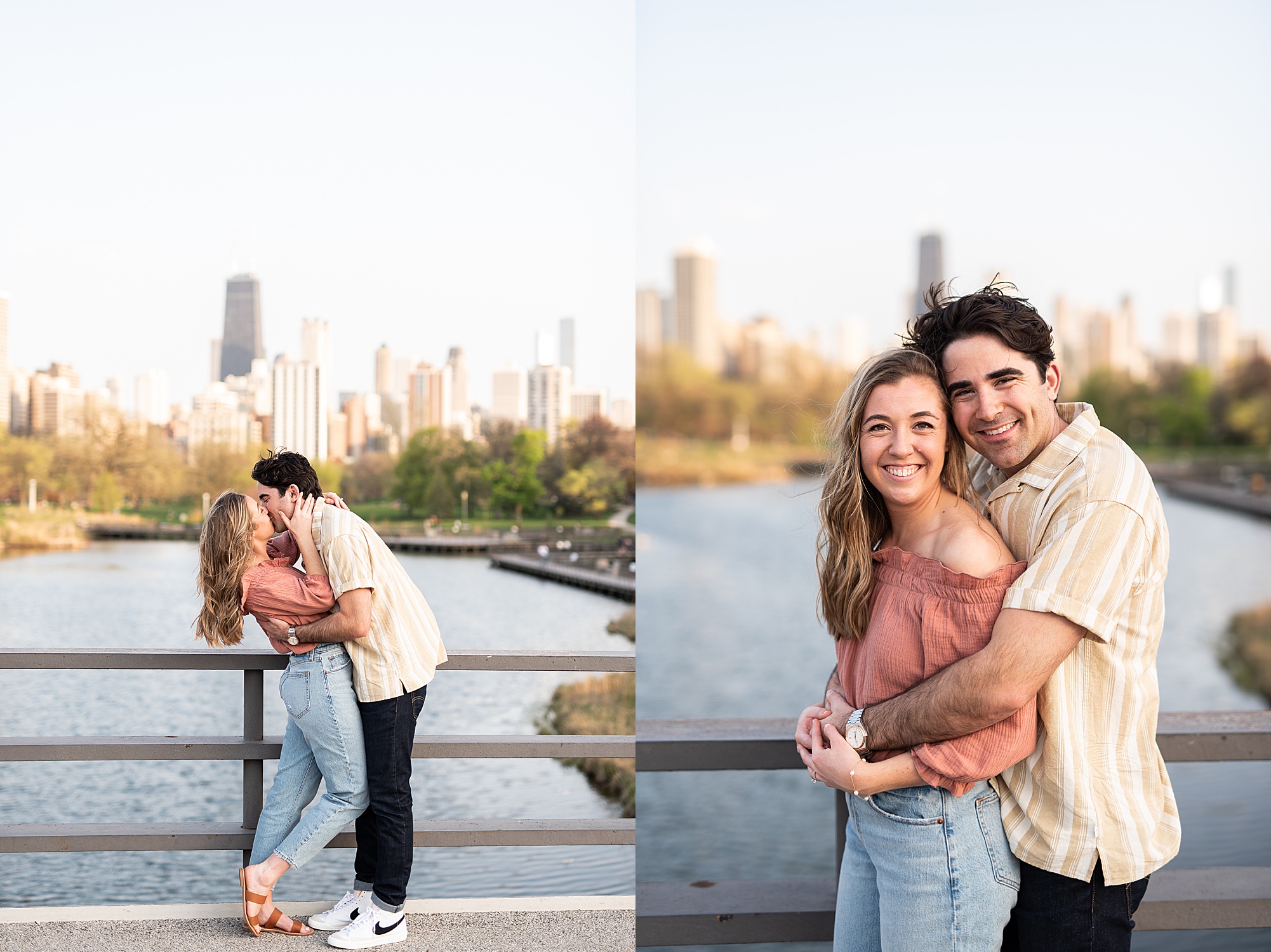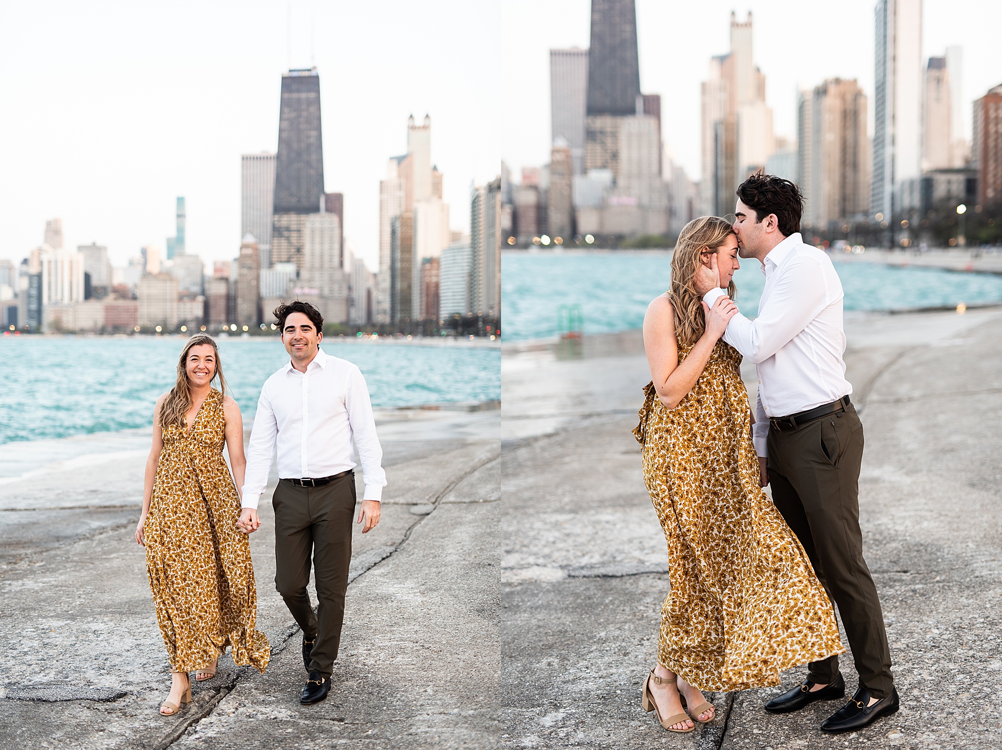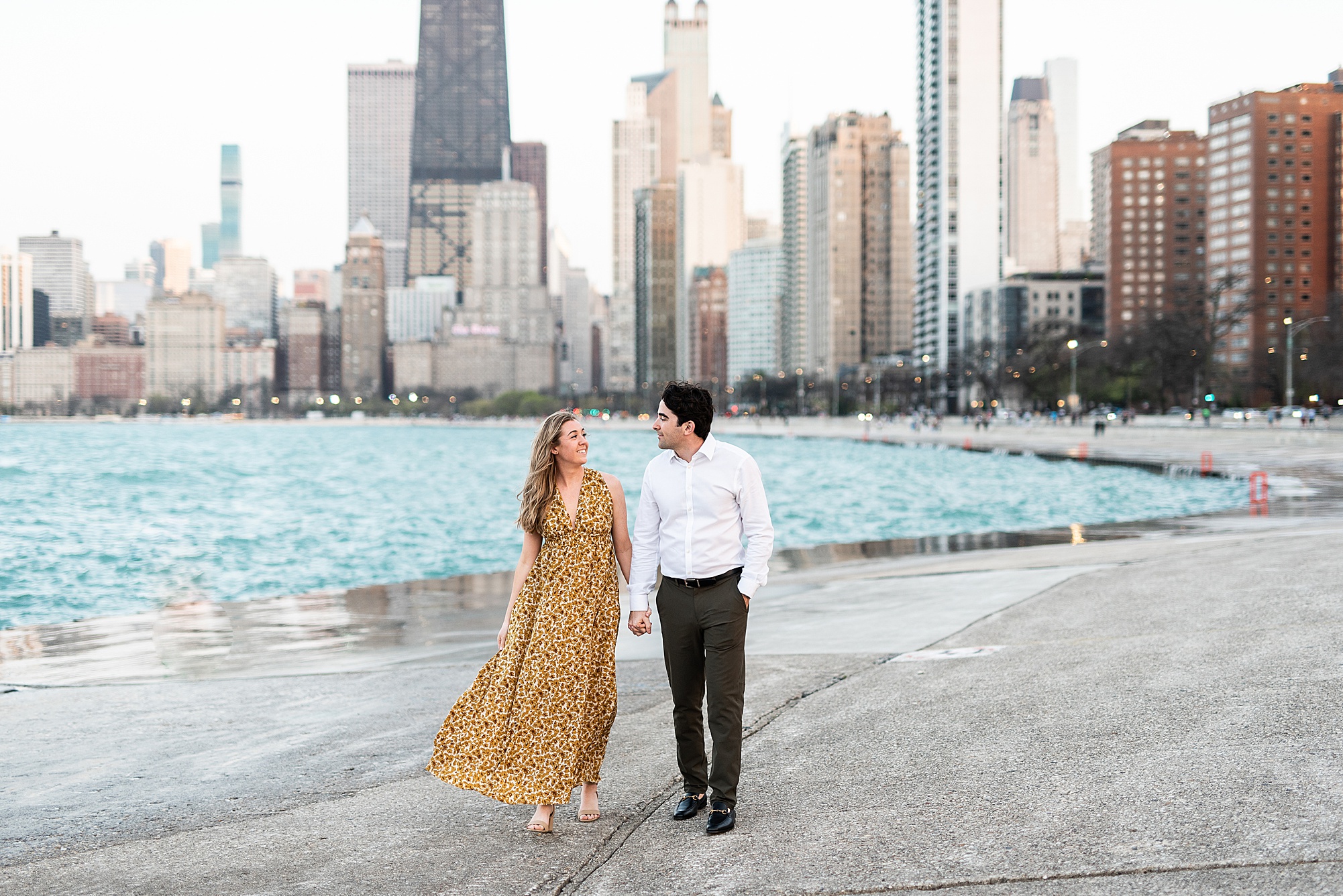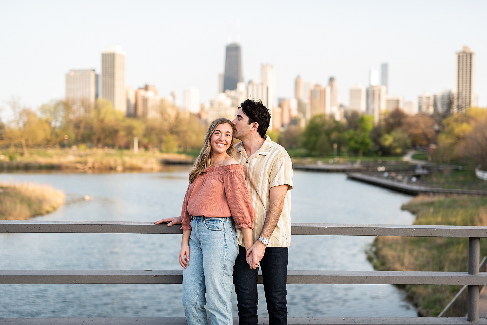 Andrea and Mickey currently live in Chicago and they love city living! One of their favorite parts is this small Italian restaurant, Lucia’s right near their apartment. They wanted to start there for their engagement session and I love new places, so I was absolutely in! They got to share a cannoli and take a few pictures in one of their favorite date night spots before we headed down to Lincoln Park Nature Boardwalk. These two are getting married in the country in Springfield next summer, so it was important to have the city as their backdrop for engagement photos. Lincoln Park was the perfect spot to capture them with a little nature and then finally we made it to North Avenue Beach for some skyline shots! We had a very windy night to deal with, but these two totally rocked it and kept laughing through it all. I seriously gushed at how cute they are together!