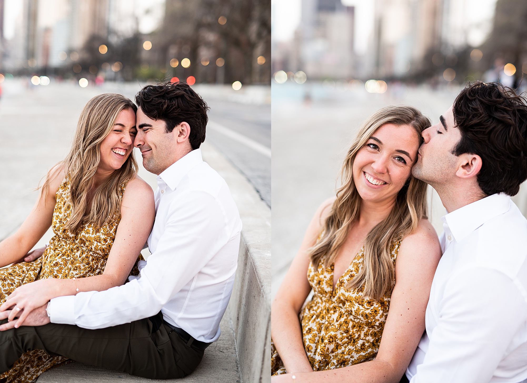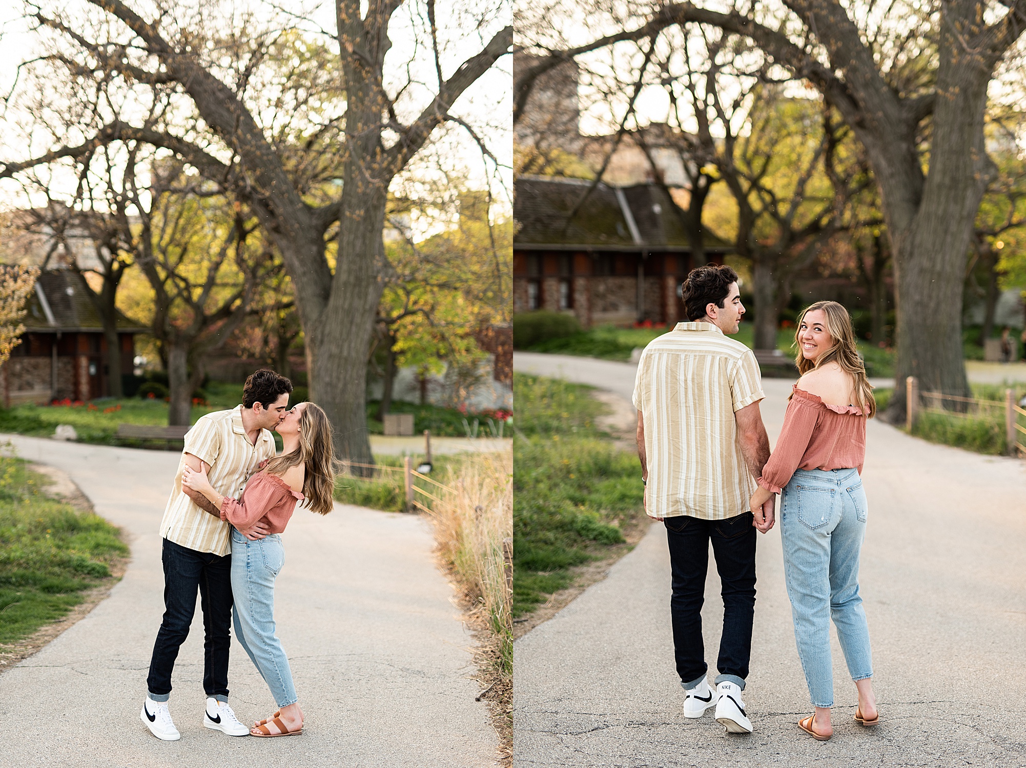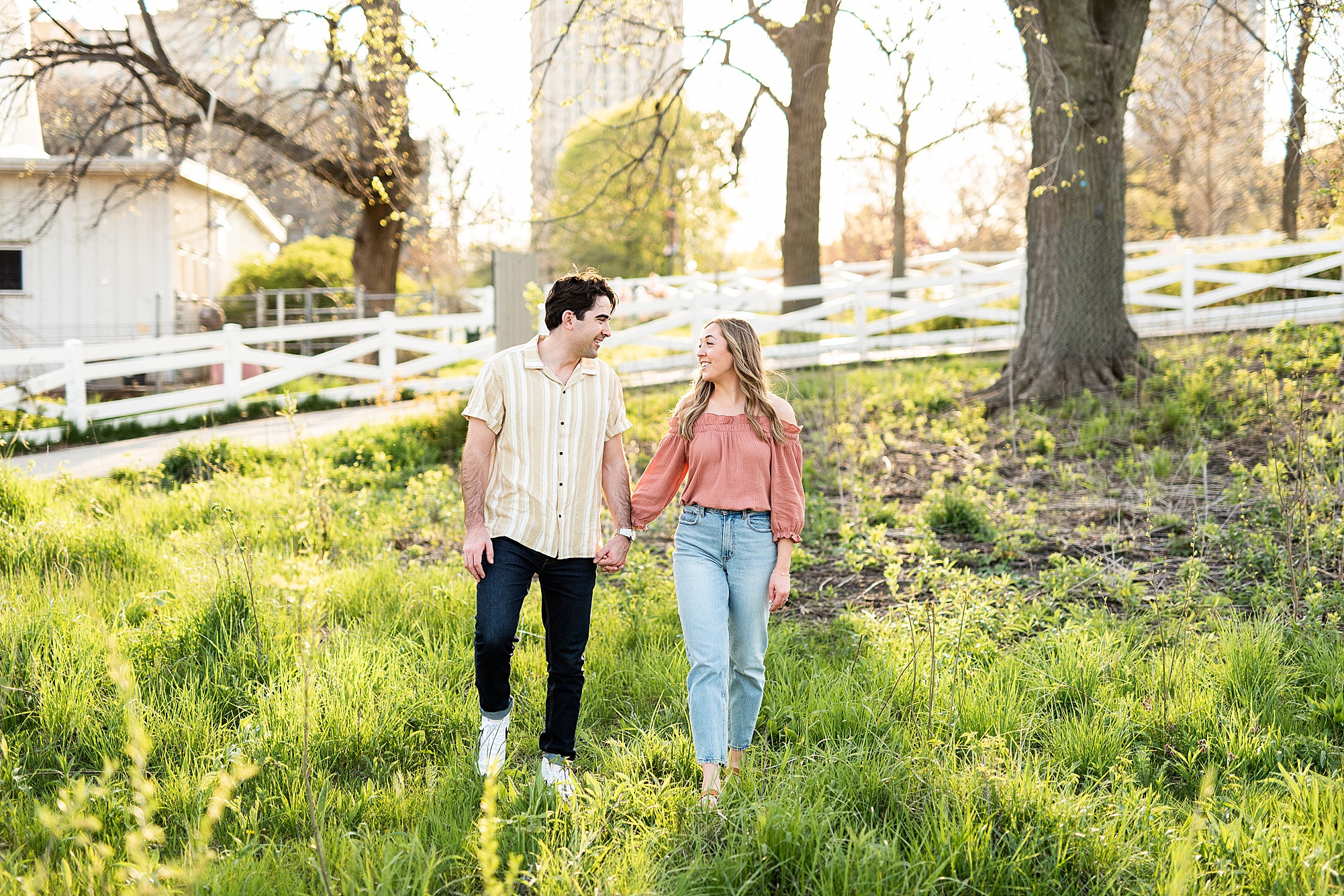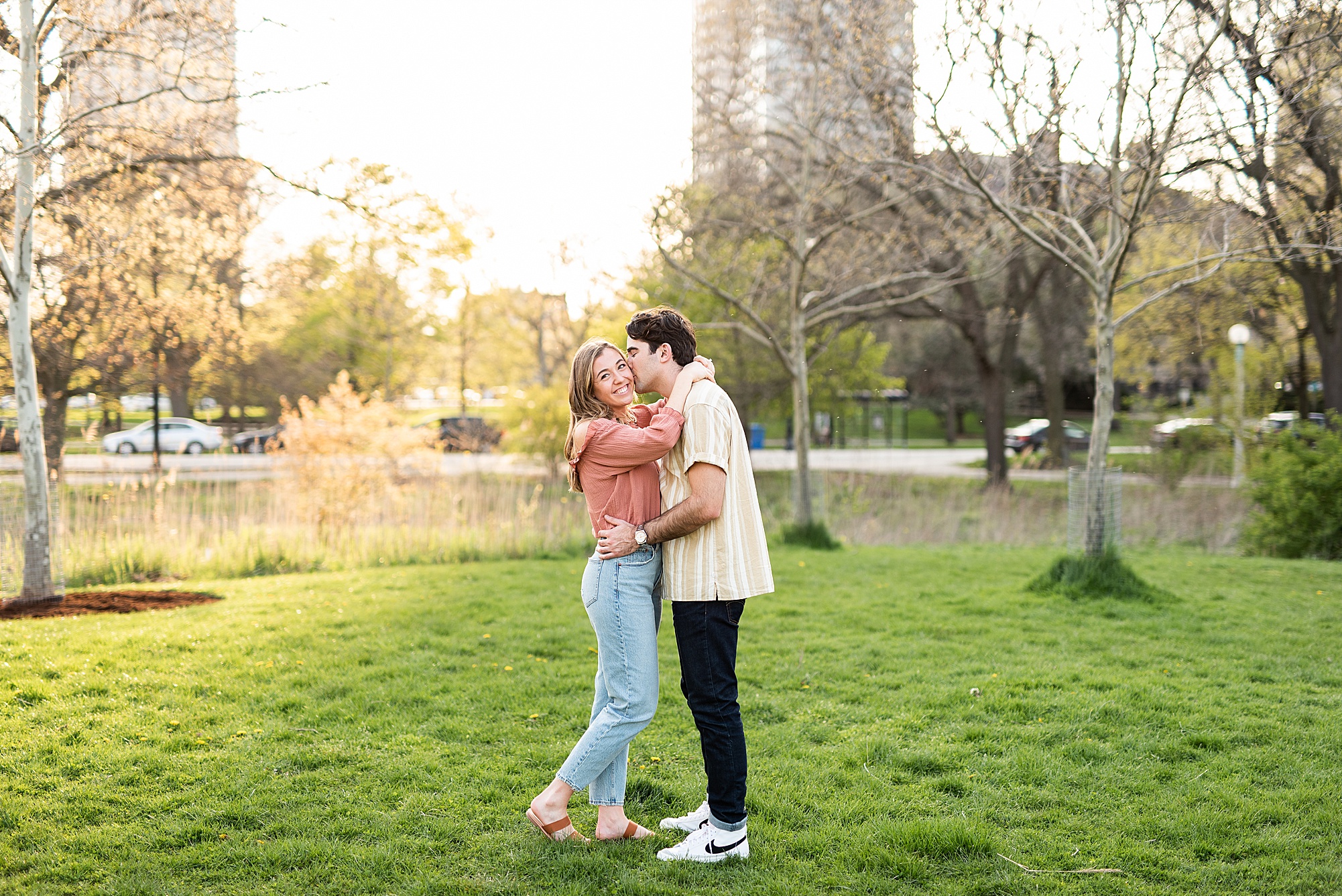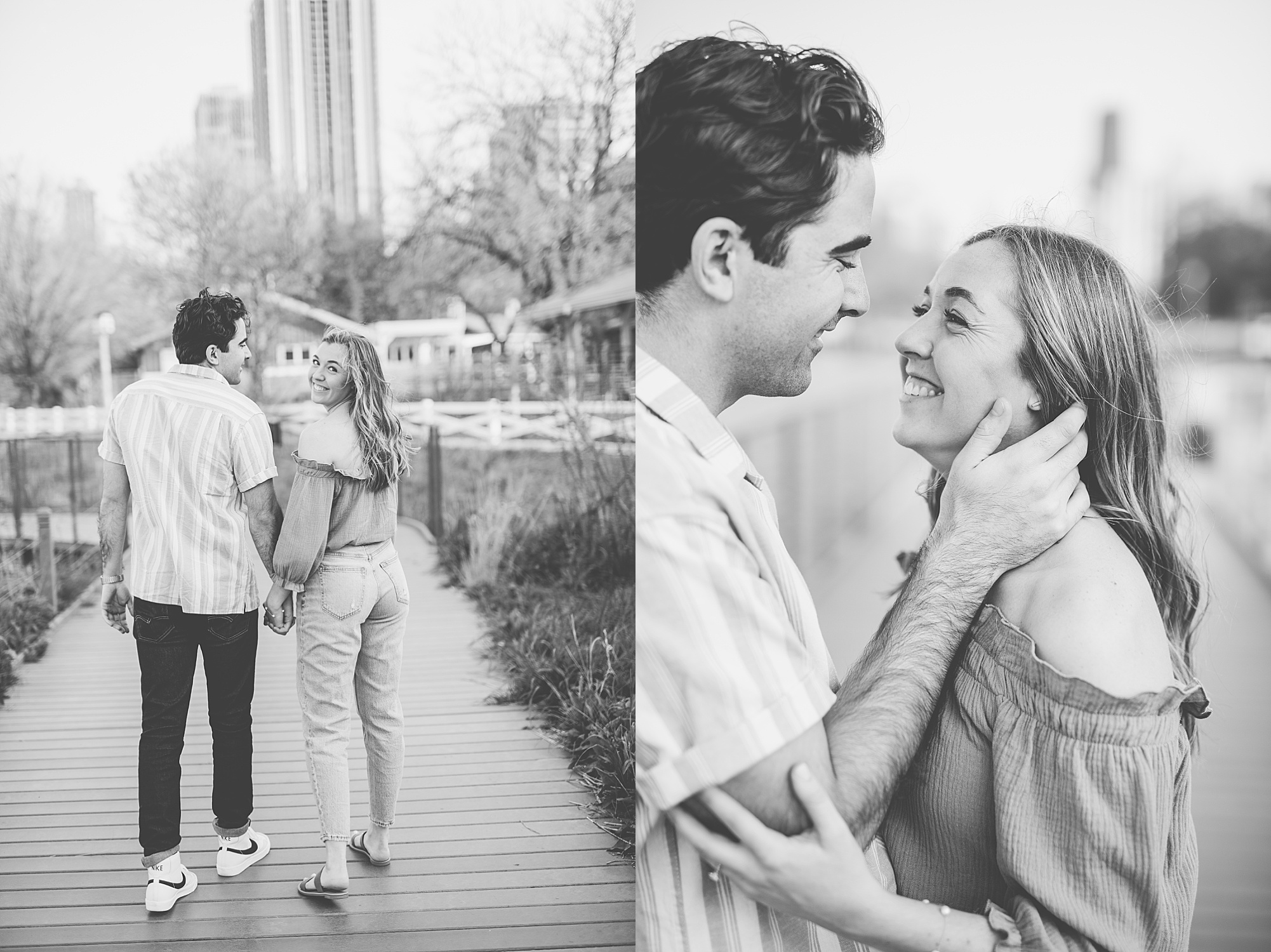 Andrea and Mickey currently live in Chicago and they love city living! One of their favorite parts is this small Italian restaurant, Lucia’s right near their apartment. They wanted to start there for their engagement session and I love new places, so I was absolutely in! They got to share a cannoli and take a few pictures in one of their favorite date night spots before we headed down to Lincoln Park Nature Boardwalk. These two are getting married in the country in Springfield next summer, so it was important to have the city as their backdrop for engagement photos. Lincoln Park was the perfect spot to capture them with a little nature and then finally we made it to North Avenue Beach for some skyline shots! We had a very windy night to deal with, but these two totally rocked it and kept laughing through it all. I seriously gushed at how cute they are together!