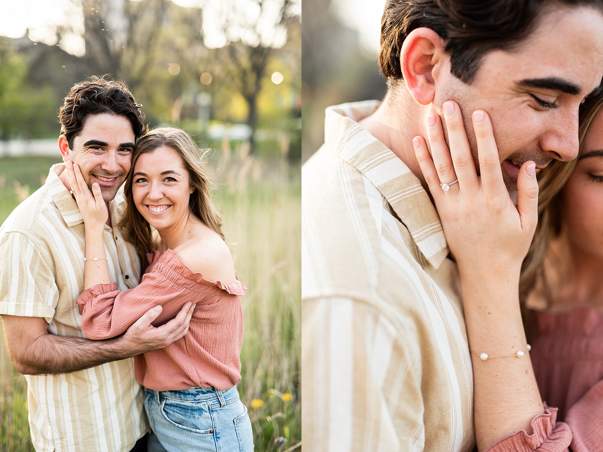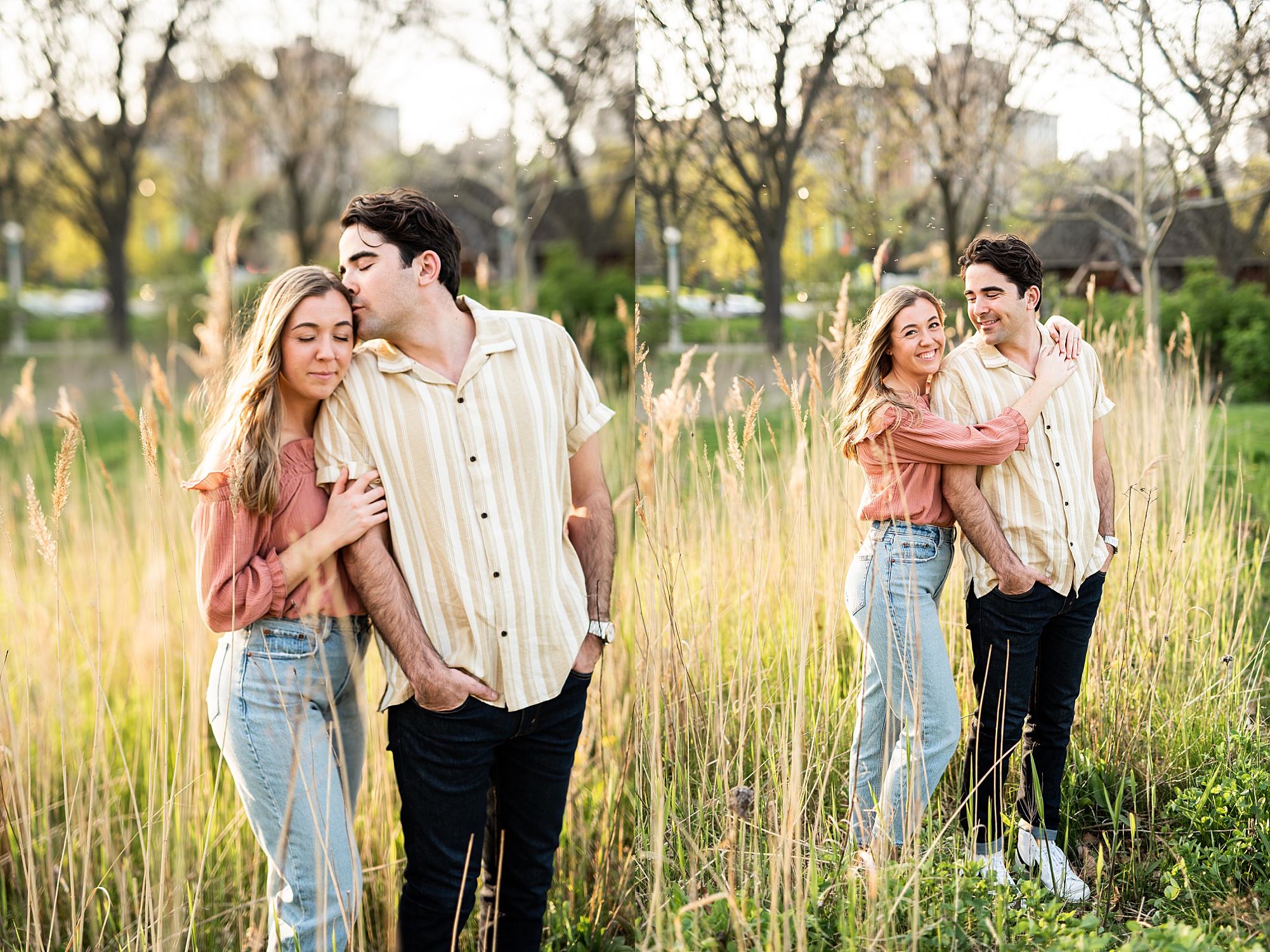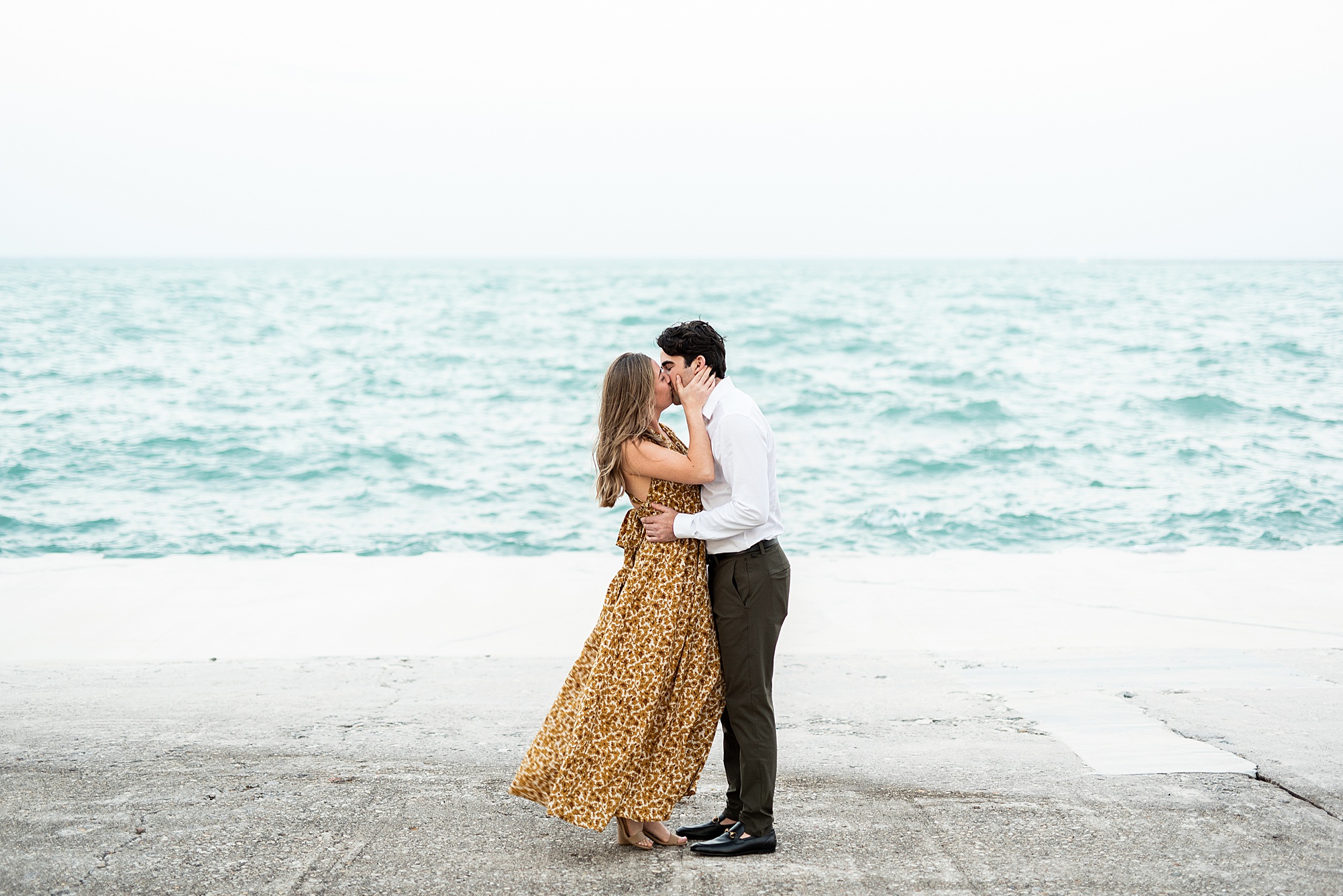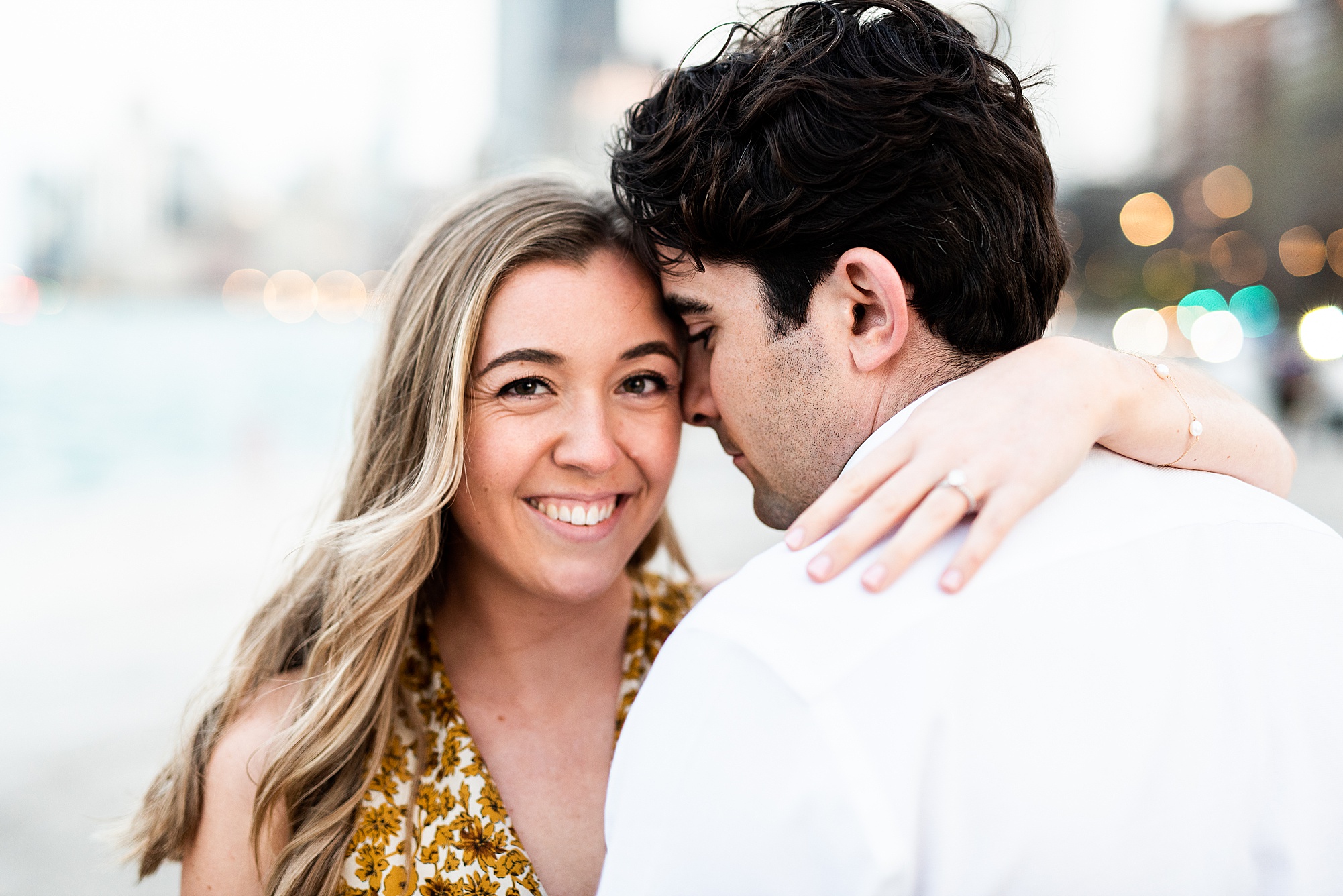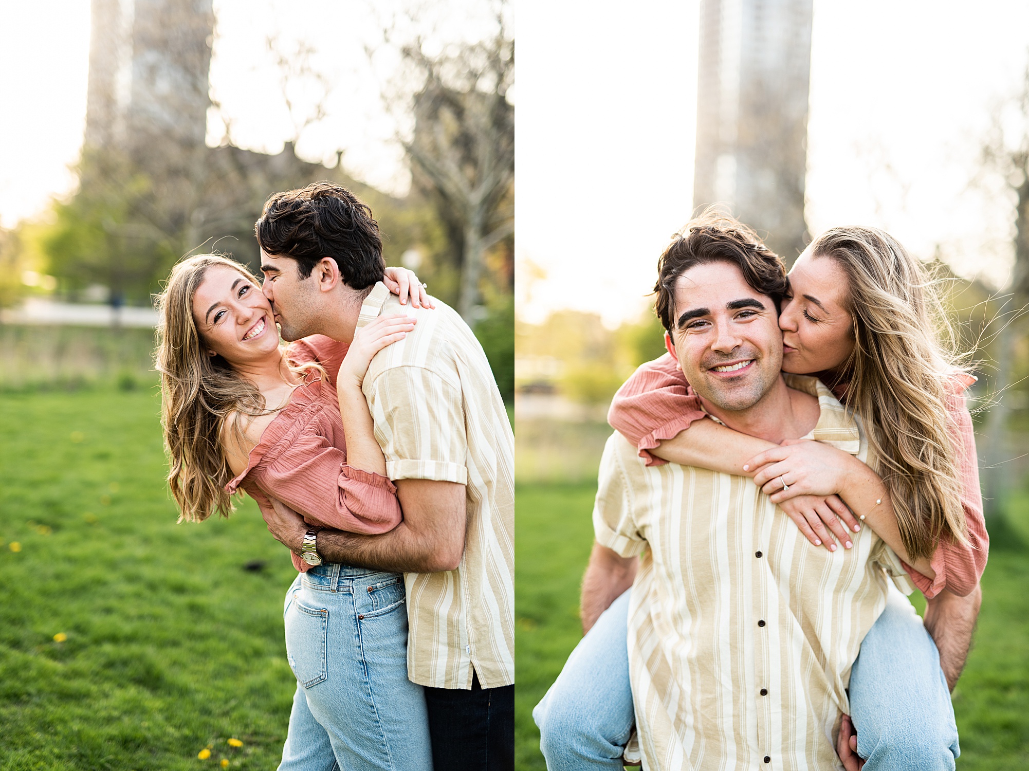 Andrea and Mickey currently live in Chicago and they love city living! One of their favorite parts is this small Italian restaurant, Lucia’s right near their apartment. They wanted to start there for their engagement session and I love new places, so I was absolutely in! They got to share a cannoli and take a few pictures in one of their favorite date night spots before we headed down to Lincoln Park Nature Boardwalk. These two are getting married in the country in Springfield next summer, so it was important to have the city as their backdrop for engagement photos. Lincoln Park was the perfect spot to capture them with a little nature and then finally we made it to North Avenue Beach for some skyline shots! We had a very windy night to deal with, but these two totally rocked it and kept laughing through it all. I seriously gushed at how cute they are together!