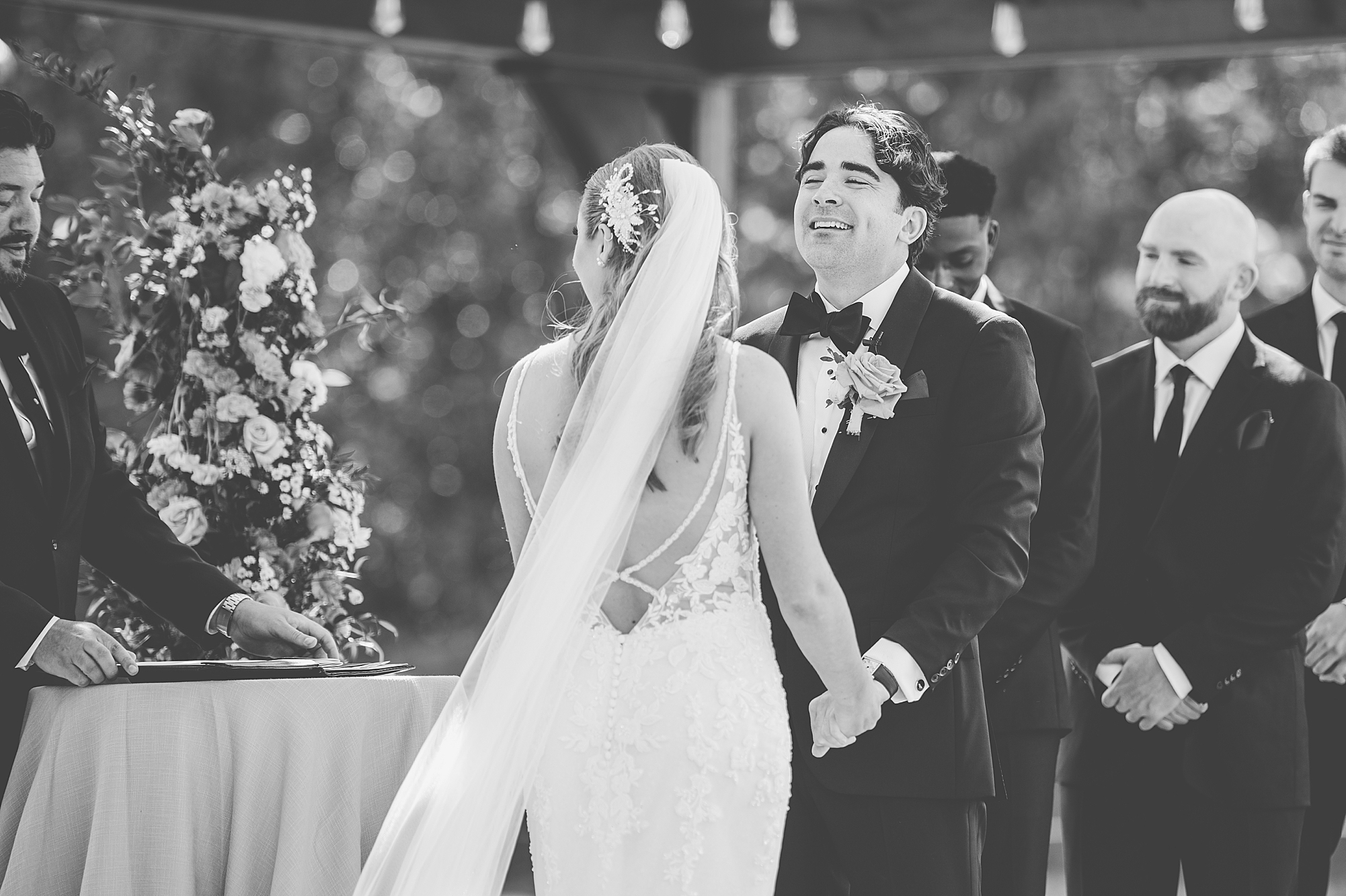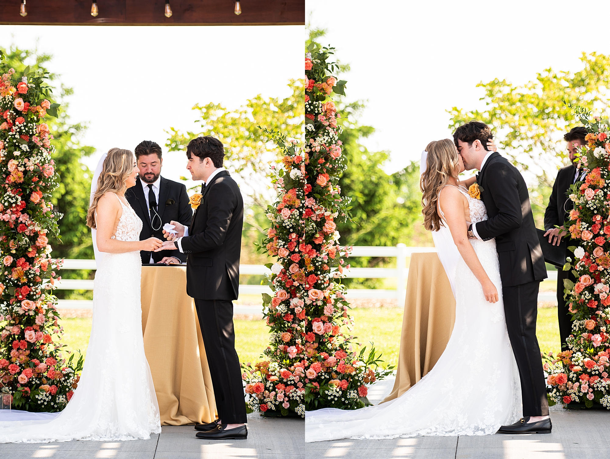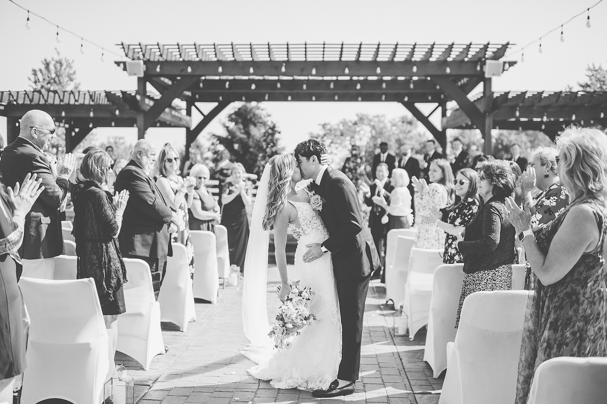 Andrea’s very proud momma walked her down the aisle to an emotional Mickey to give her away. Their ceremony was beautifully preformed by Andrea’s older brother on the back patio of the venue. The sun was shining as Andrea and Mickey spoke sweet hand written vows to each other before exchanging rings and sharing their first kiss as husband and wife!