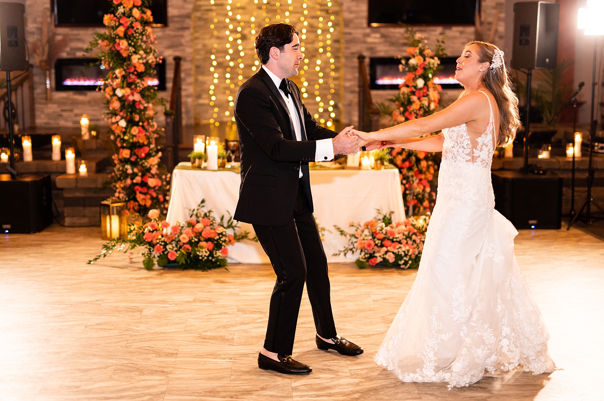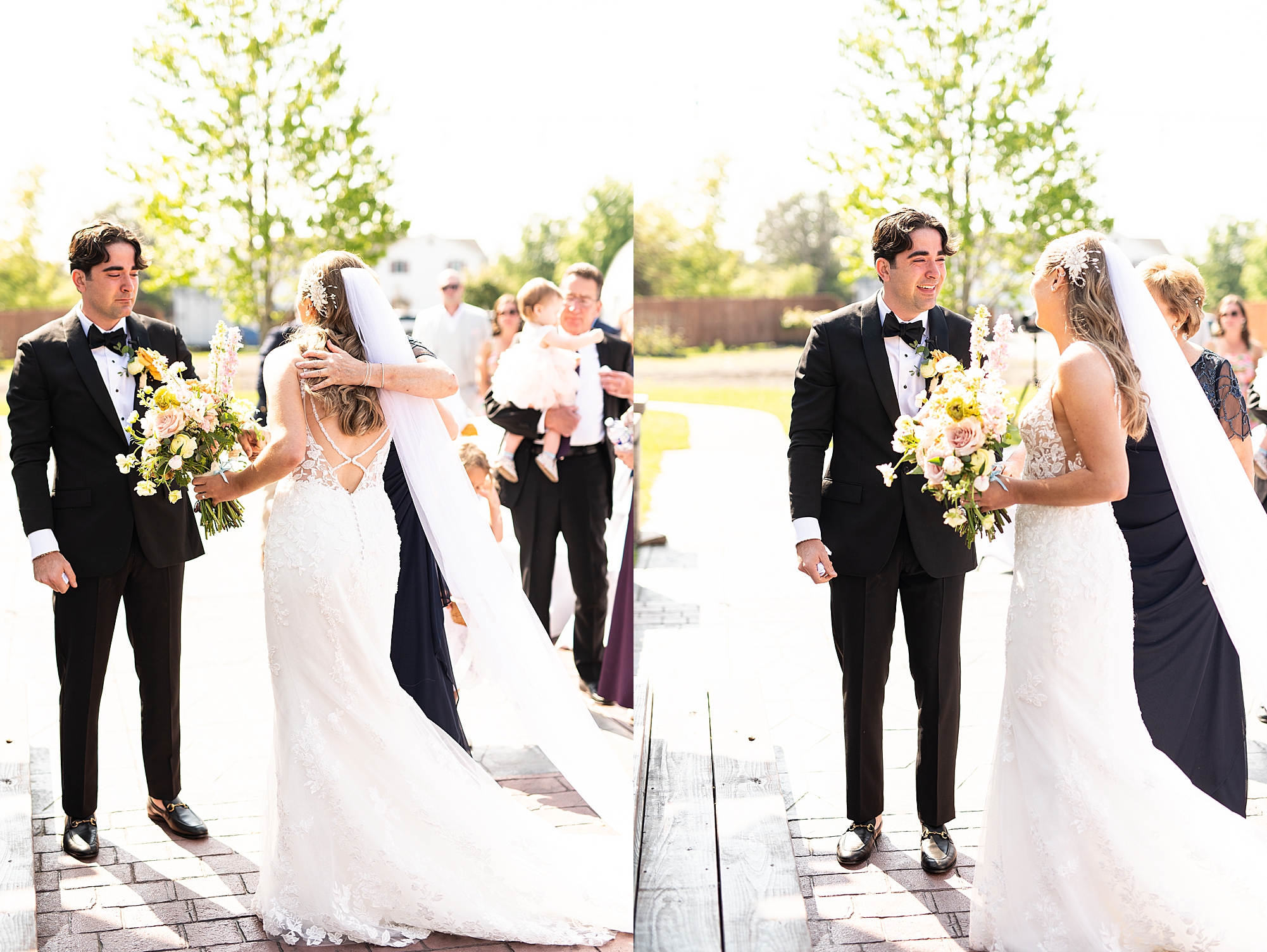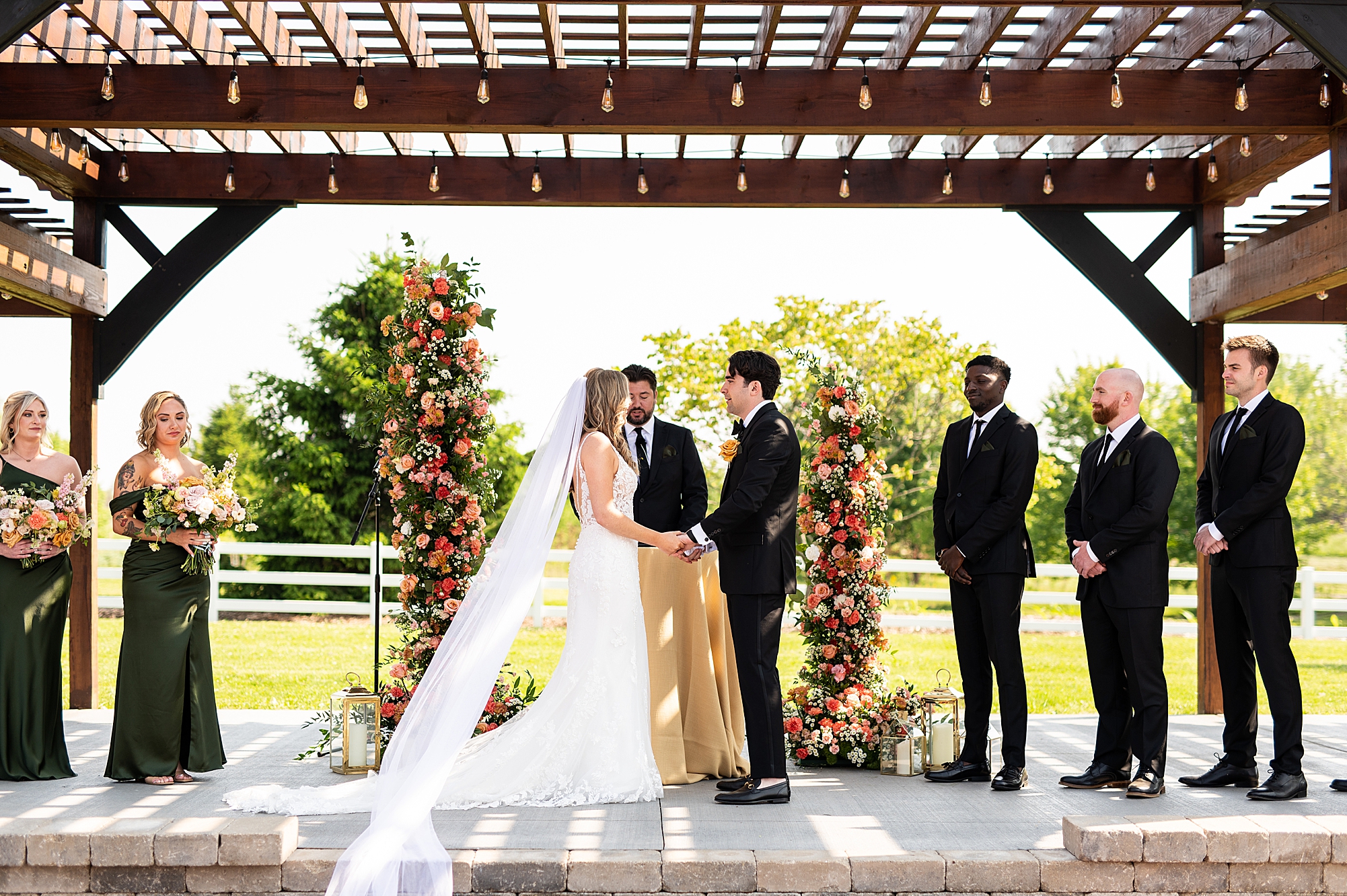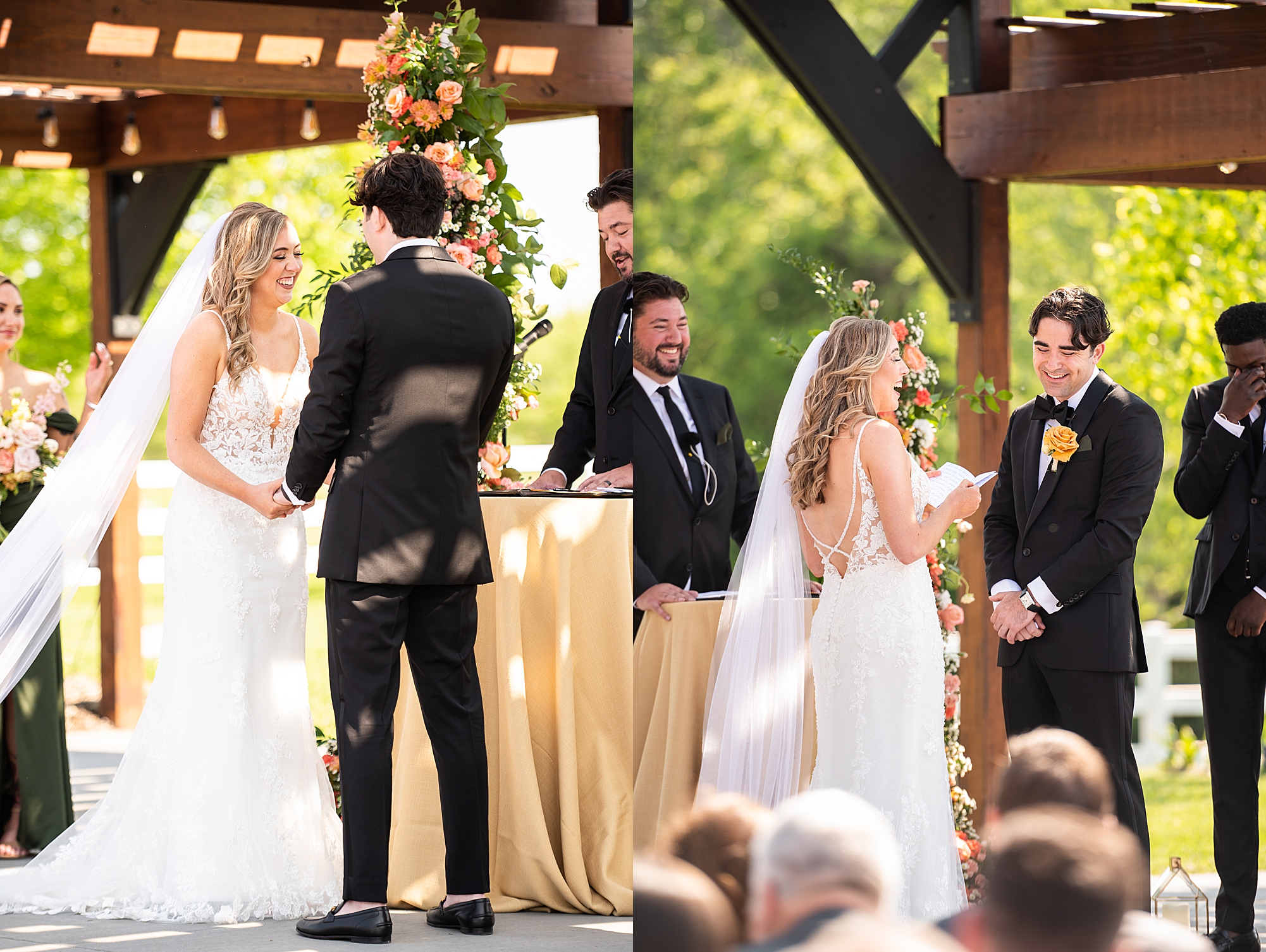 Andrea’s very proud momma walked her down the aisle to an emotional Mickey to give her away. Their ceremony was beautifully preformed by Andrea’s older brother on the back patio of the venue. The sun was shining as Andrea and Mickey spoke sweet hand written vows to each other before exchanging rings and sharing their first kiss as husband and wife!