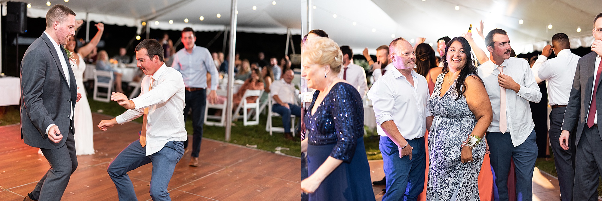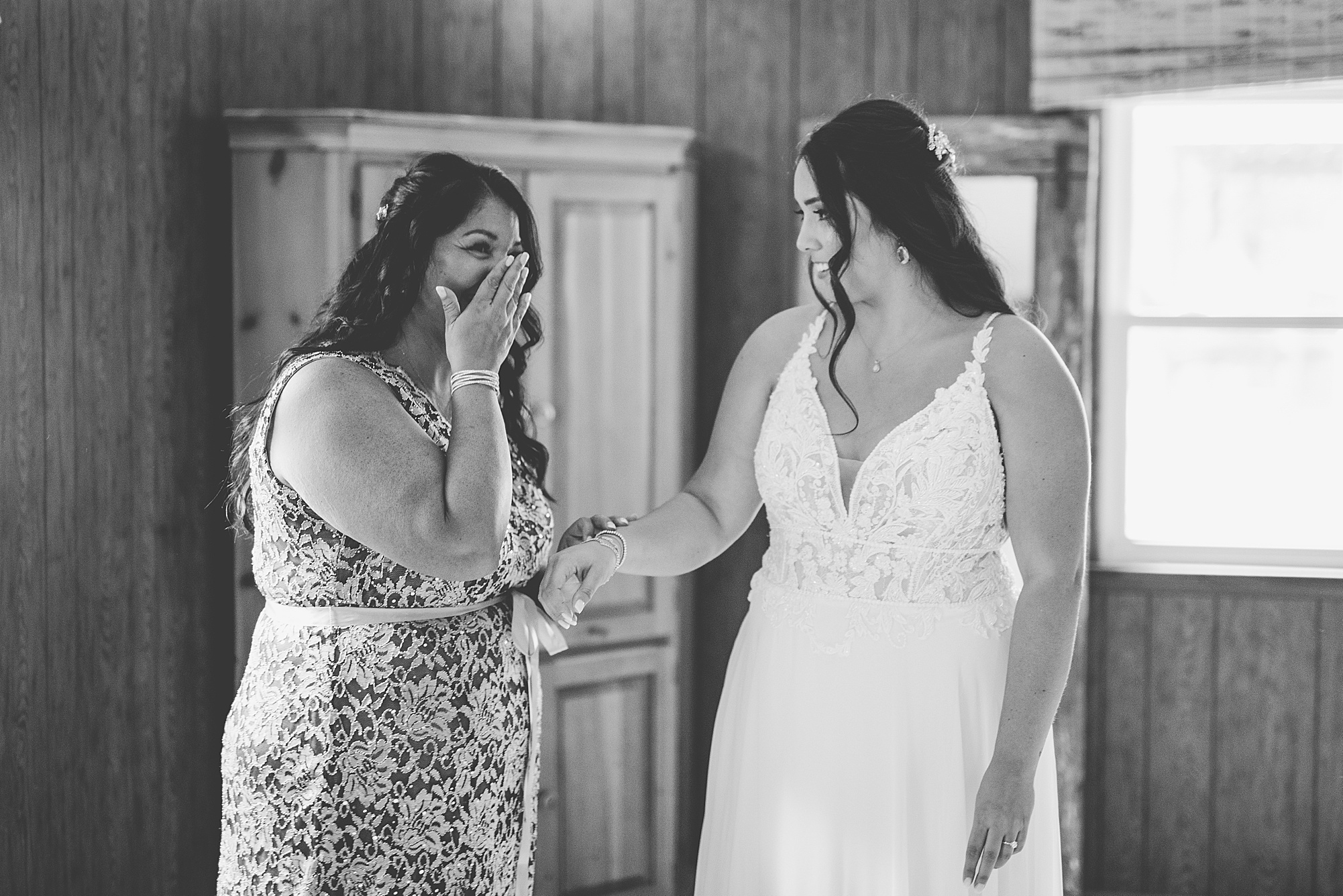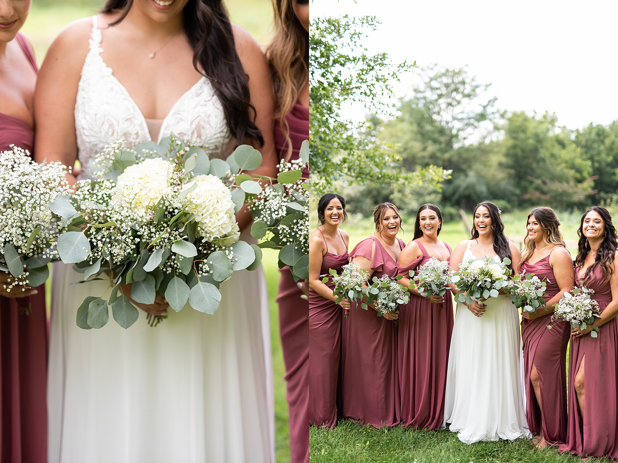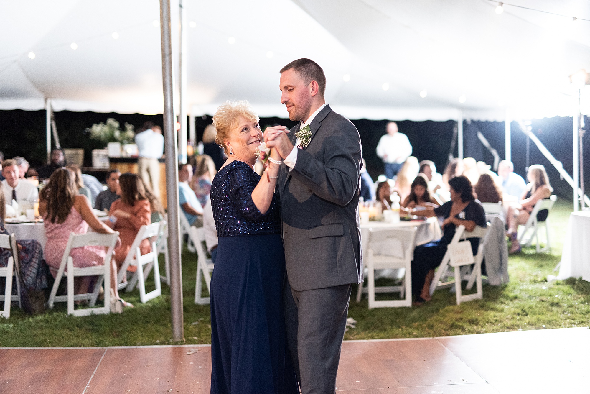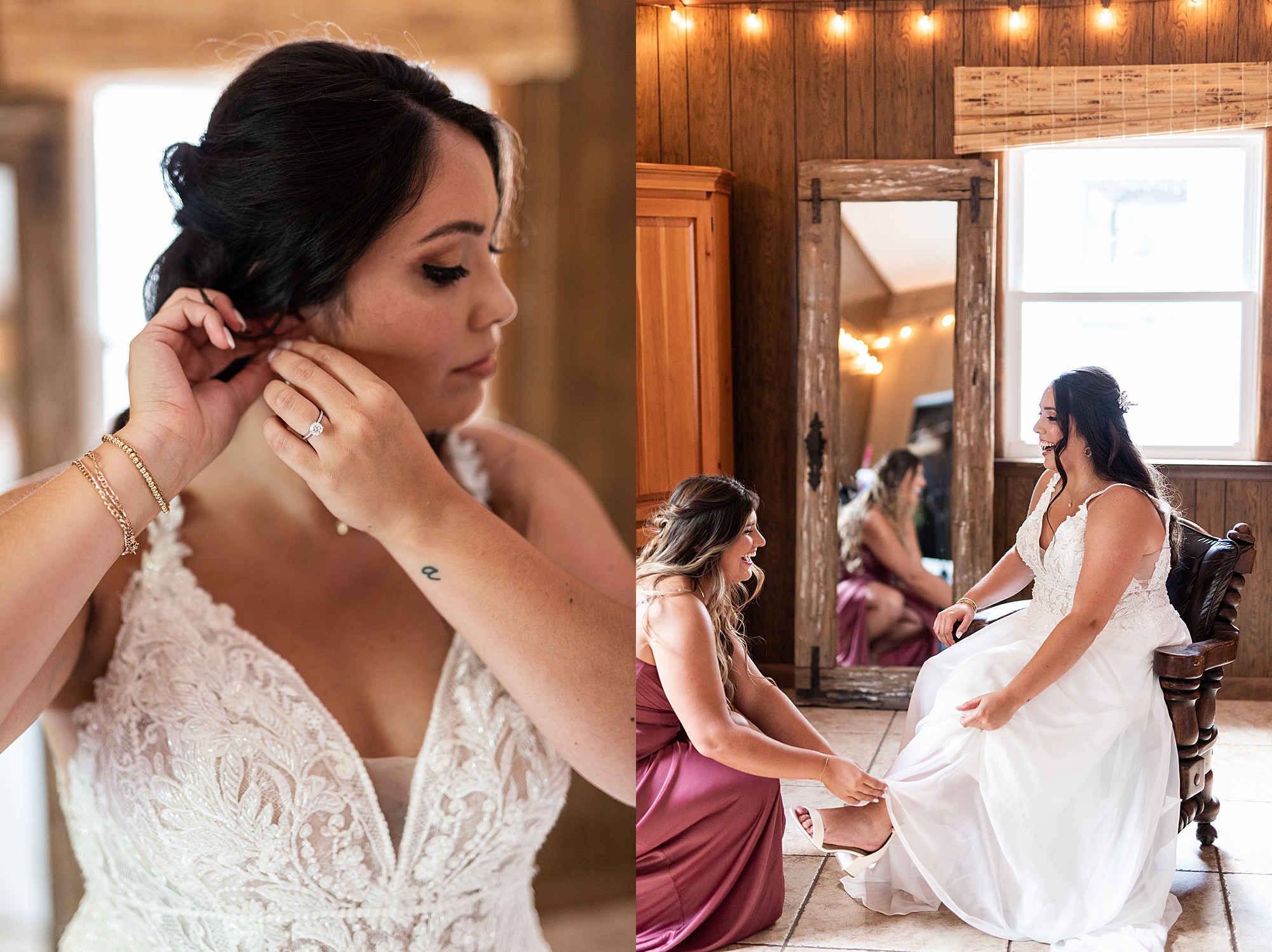 Fast forward to their wedding day, a warm and sunny summer day. Ashley and David decided to throw their celebration in such a special place to them, David’s parents’ pasture in front of their house! They had a gorgeous ceremony site set up among the trees and a beautiful tent to host their reception. After they both finished getting ready, they met in the front yard for an adorable and unexpectedly emotional first look. Ashley and David told us they weren’t exactly the emotional type, but a few happy tears were shed when they finally got to see each other and read their private vows.