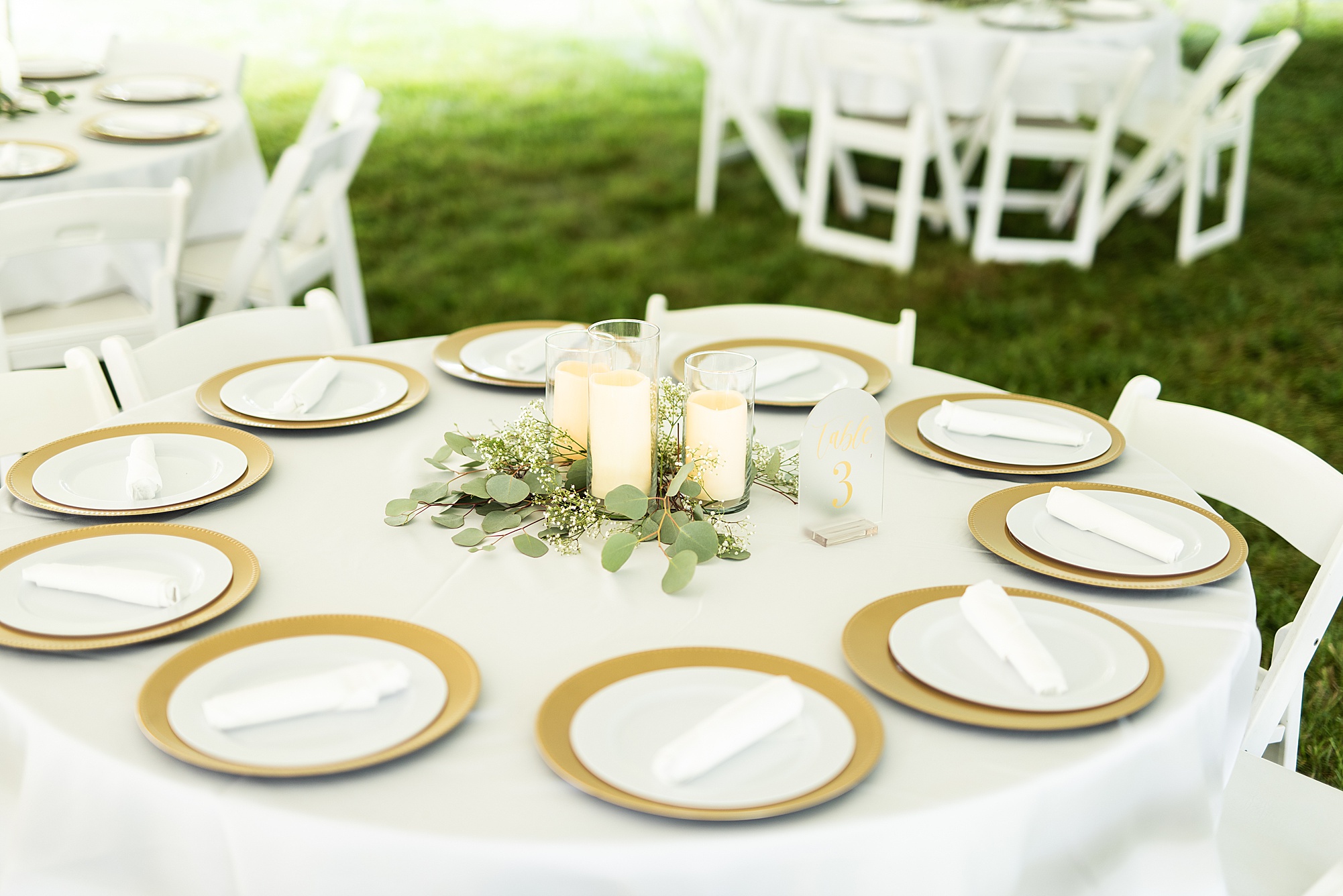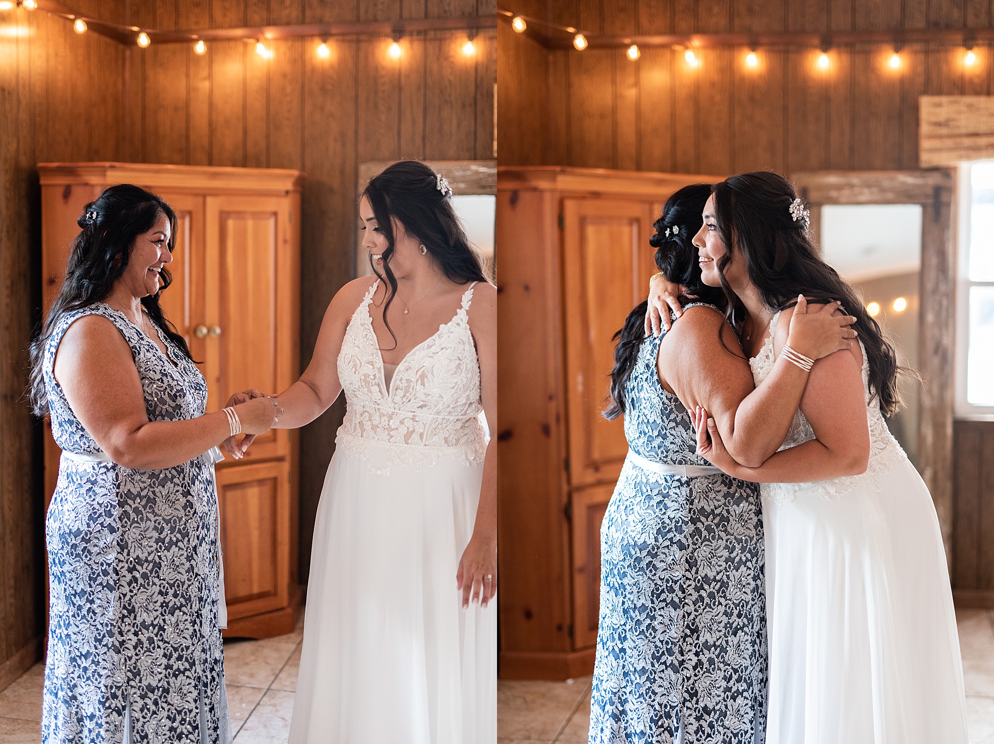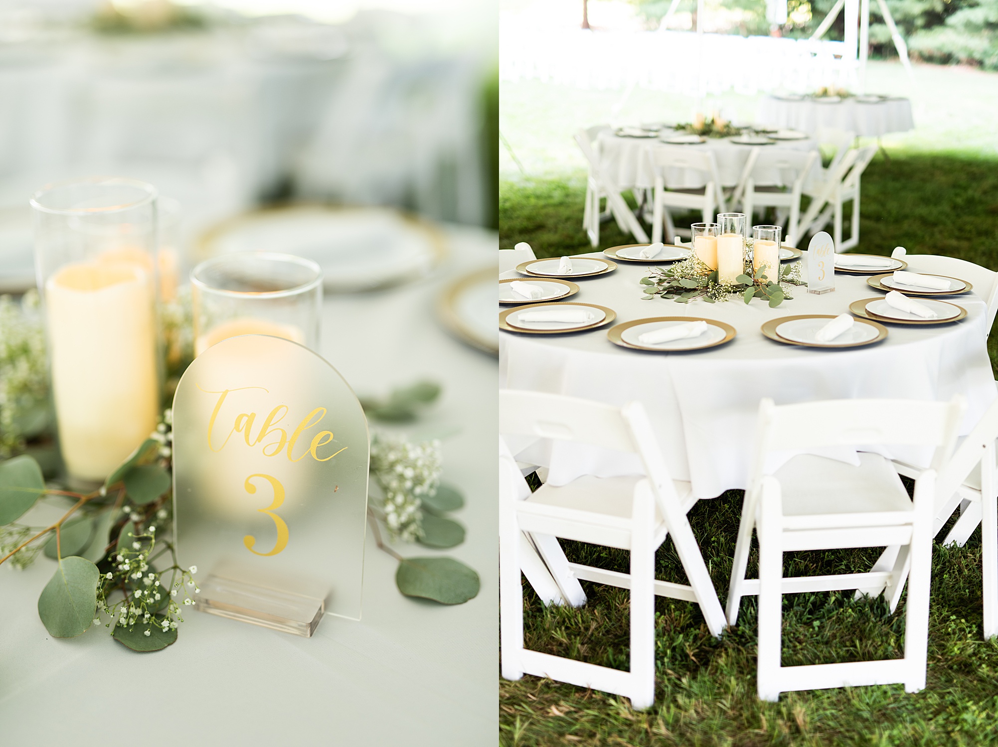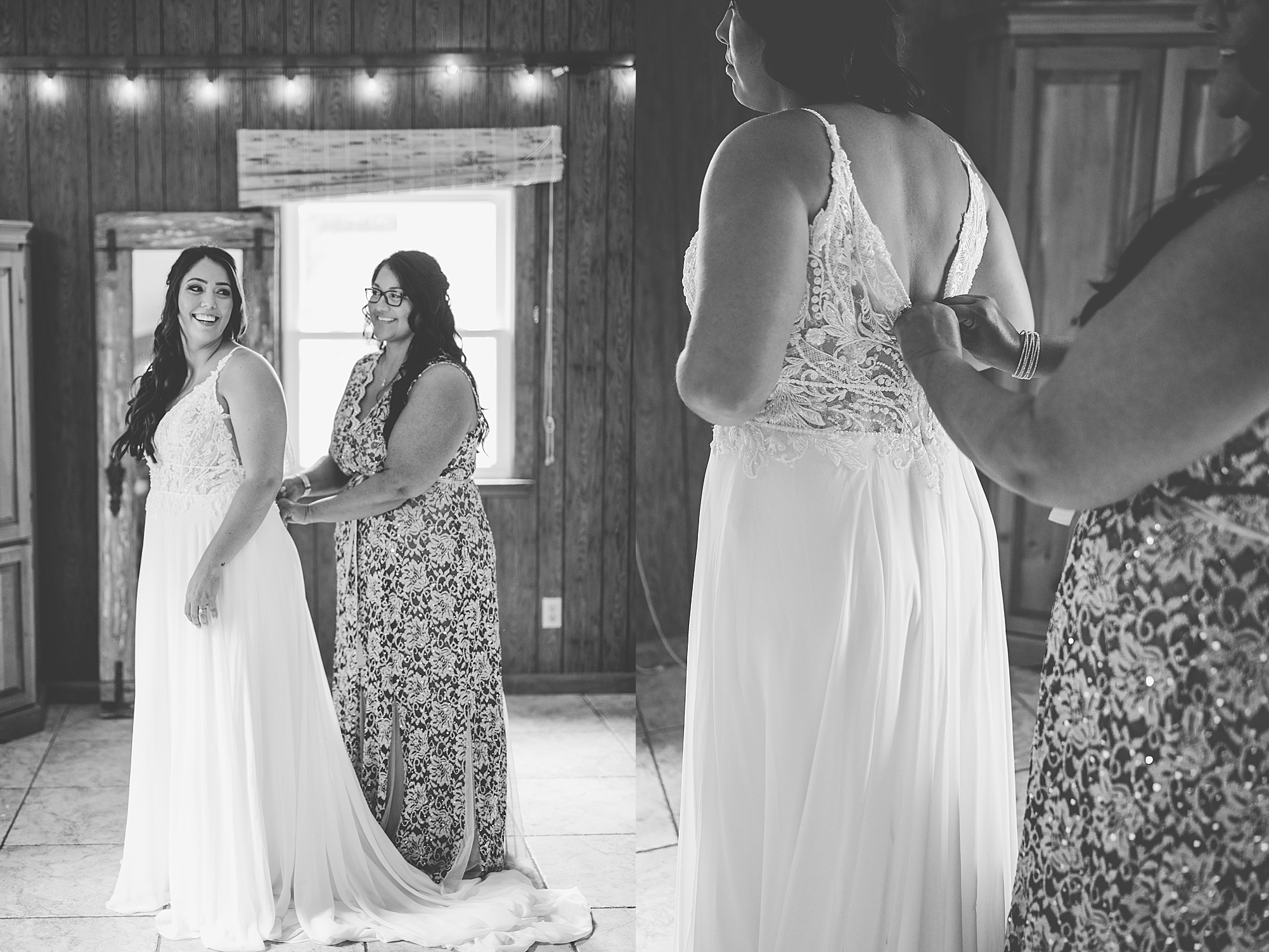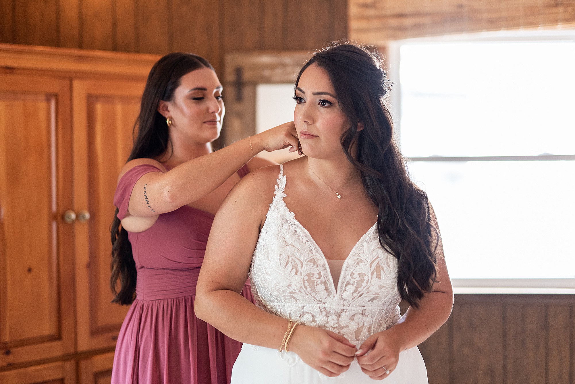 Fast forward to their wedding day, a warm and sunny summer day. Ashley and David decided to throw their celebration in such a special place to them, David’s parents’ pasture in front of their house! They had a gorgeous ceremony site set up among the trees and a beautiful tent to host their reception. After they both finished getting ready, they met in the front yard for an adorable and unexpectedly emotional first look. Ashley and David told us they weren’t exactly the emotional type, but a few happy tears were shed when they finally got to see each other and read their private vows.