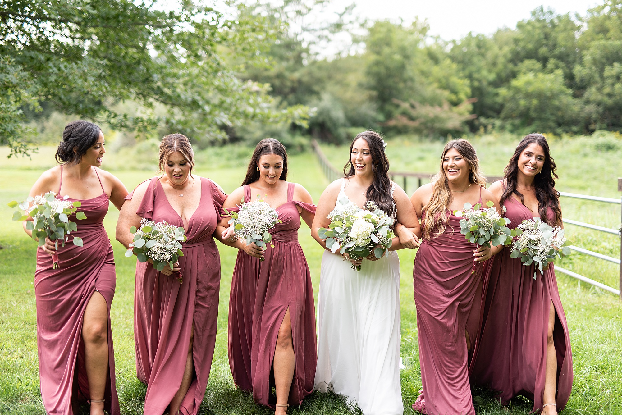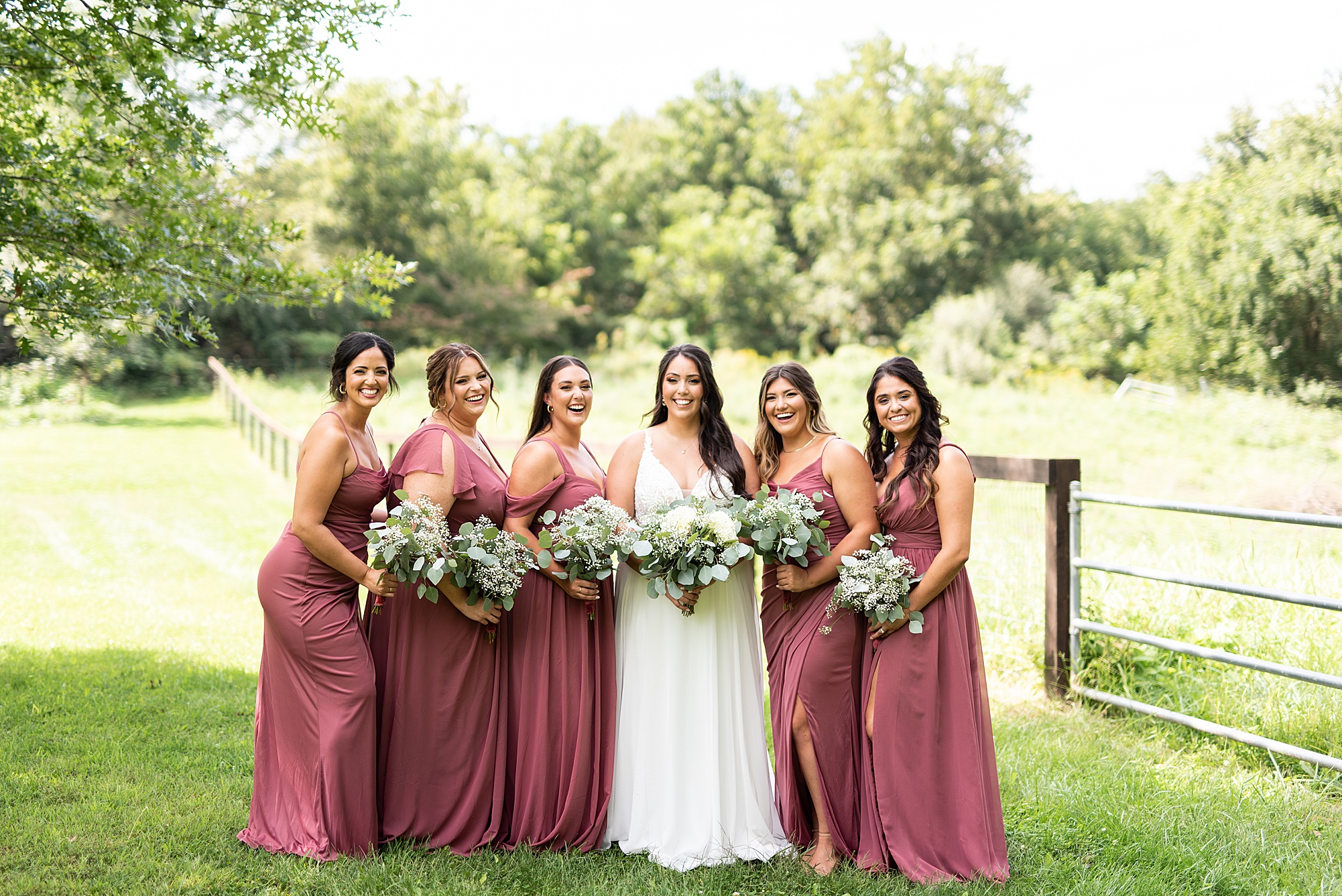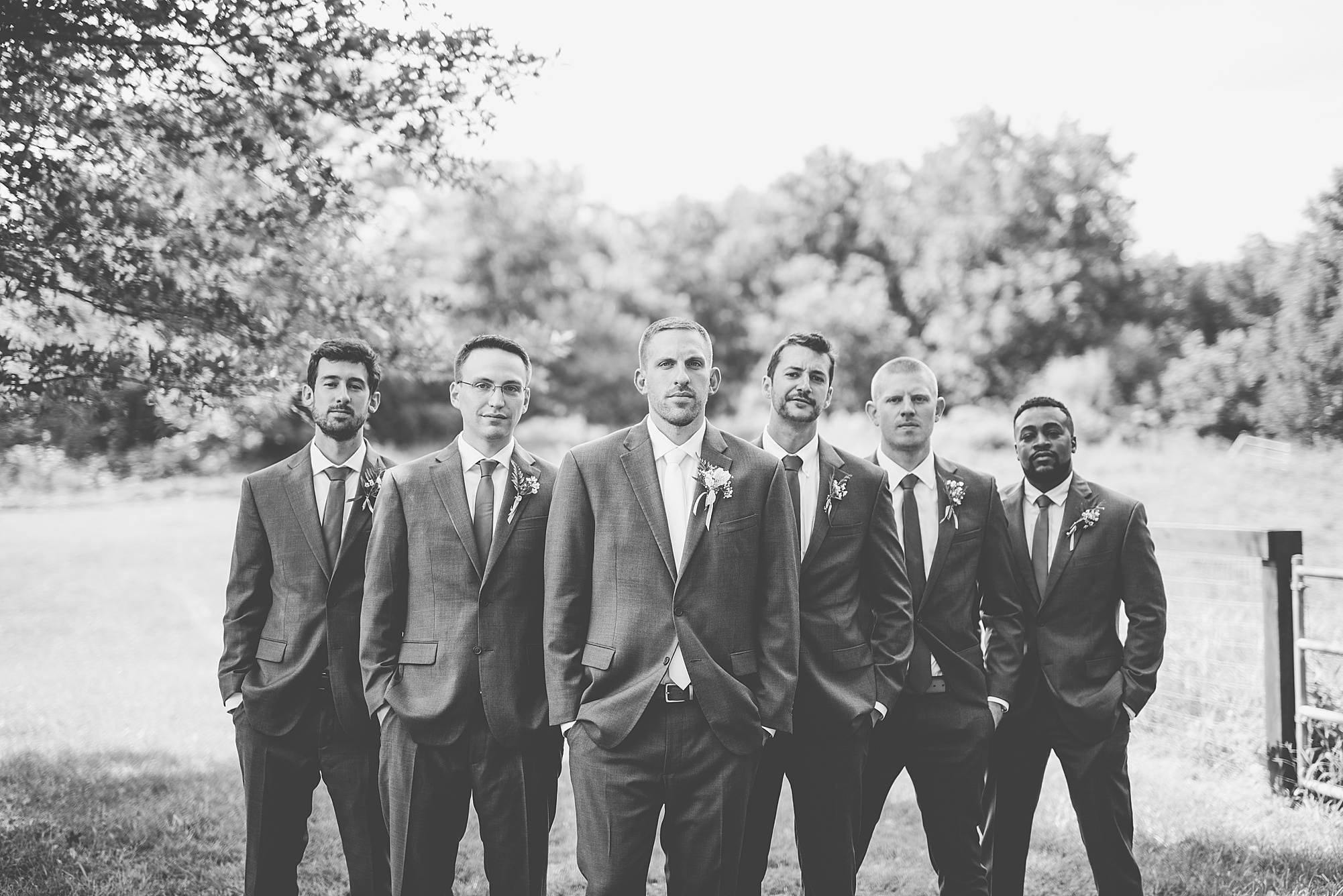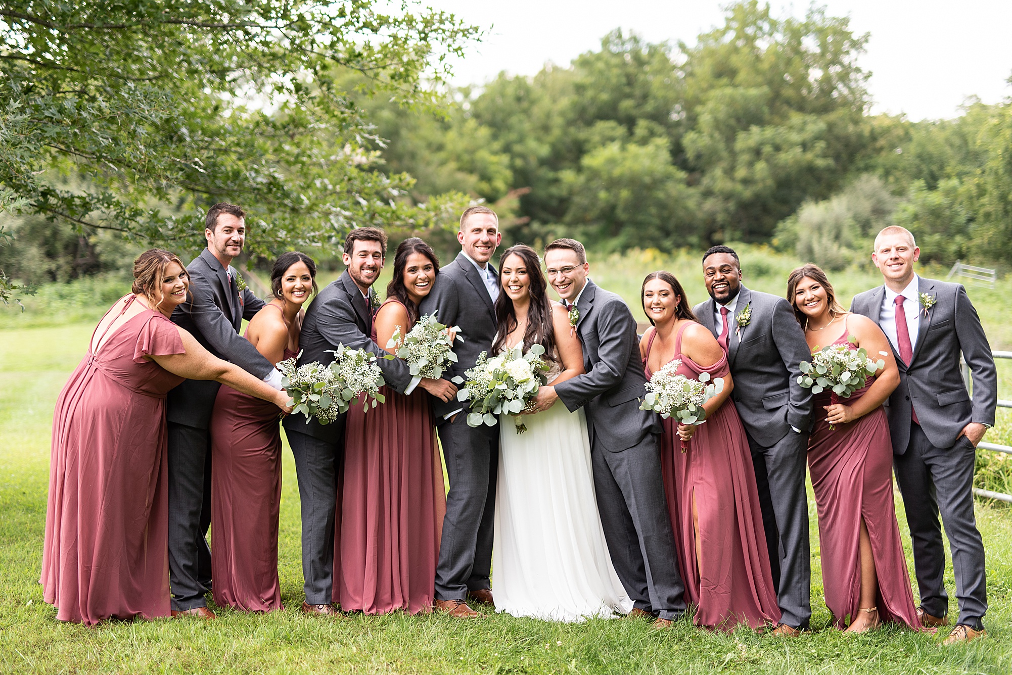 Next we traveled a little to a nearby pasture for some fun bridal party photos and photos with Ashley and David. Their bridal party did a great job as their hype crew and really kept Ashley and David laughing and having fun! After portrait time, we headed back to get them officially married! Ashley’s dad walked her down the aisle to David and proudly gave his oldest daughter away. Ashley had a little surprise for David as she “iced” him the second she got down the aisle to help him loosen up! Their close friend officially married them under the trees, they shared their first kiss and walked back down the aisle with the biggest smiles on their faces!