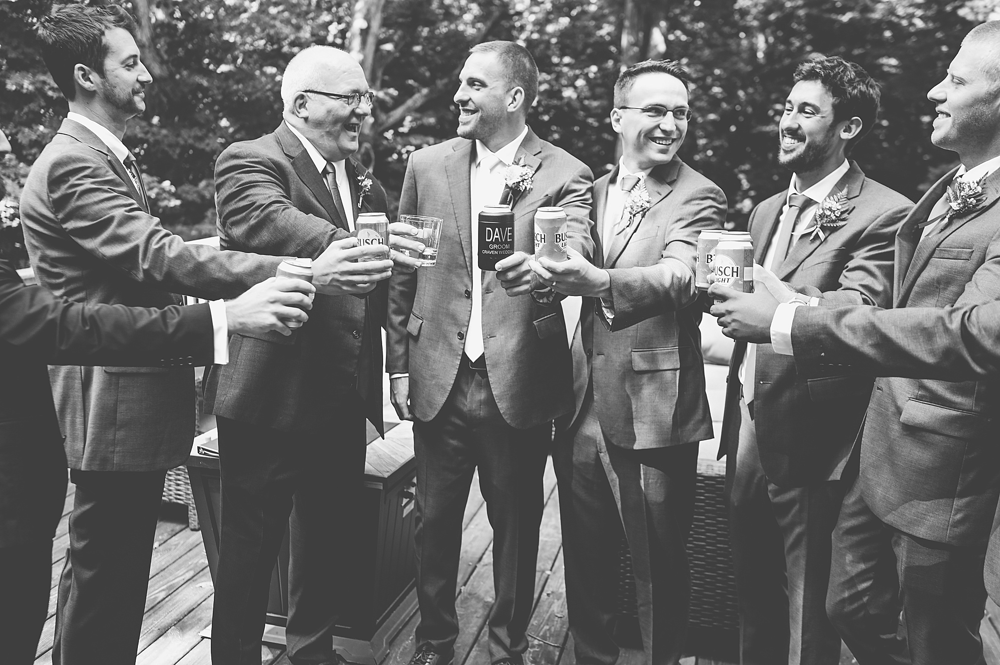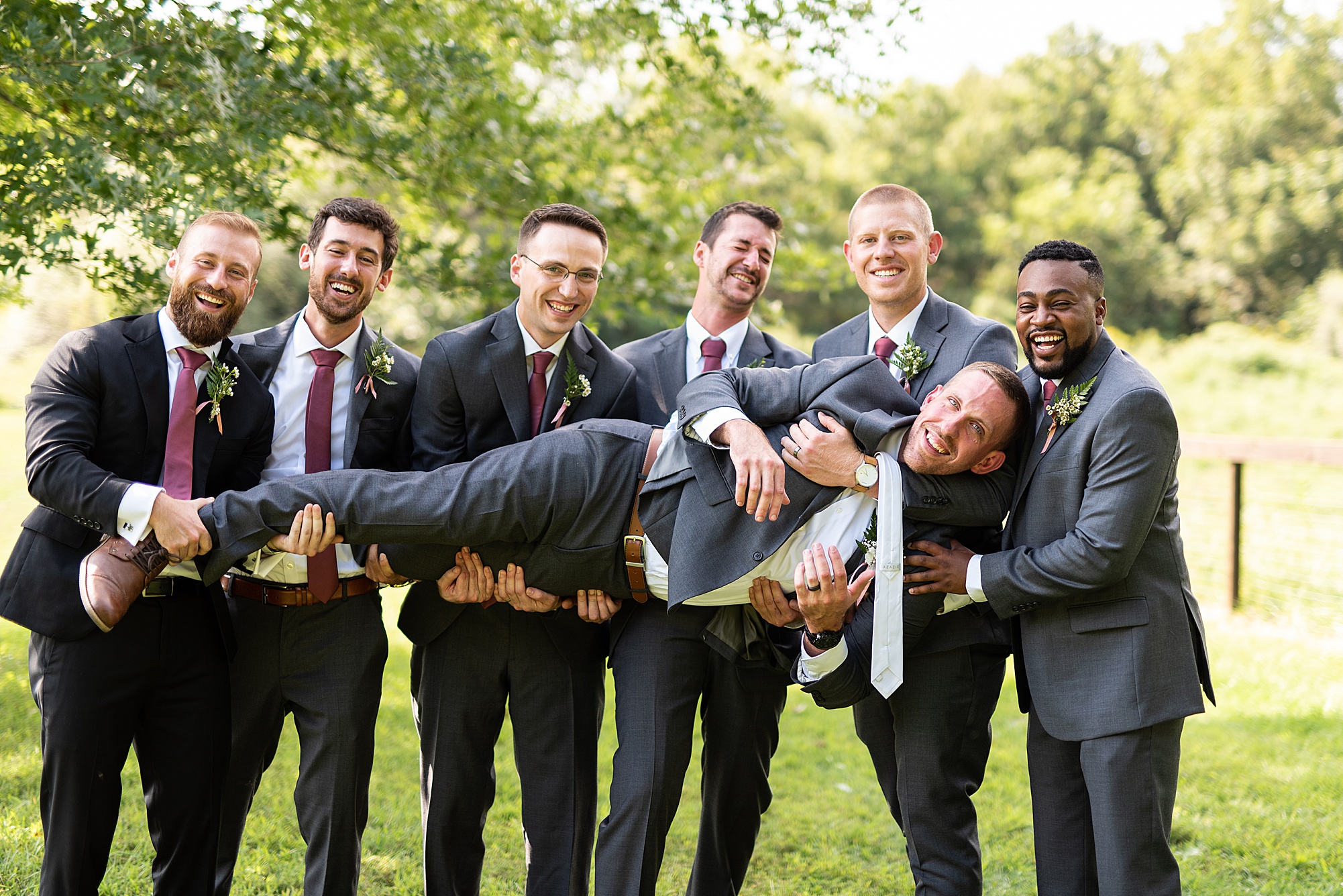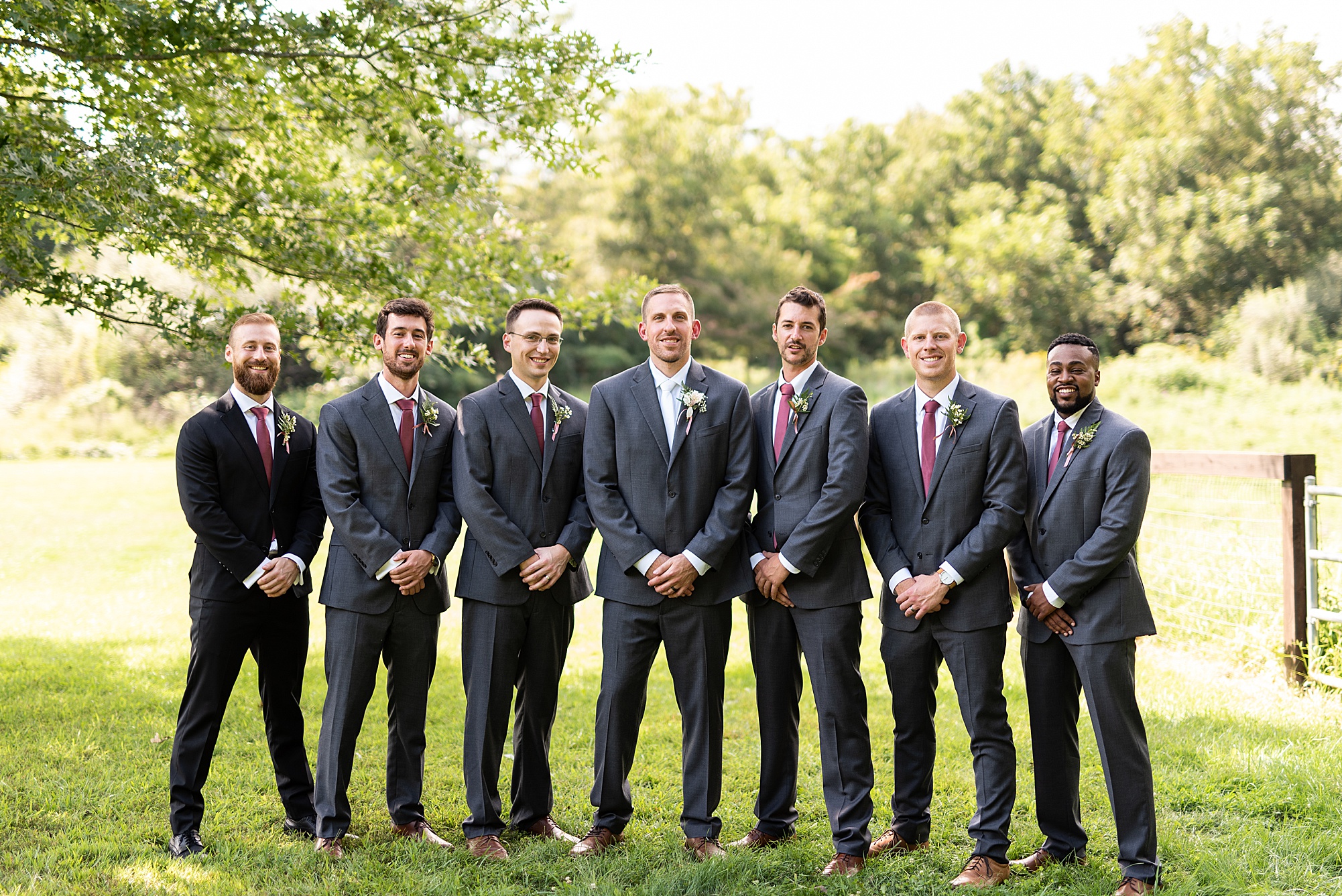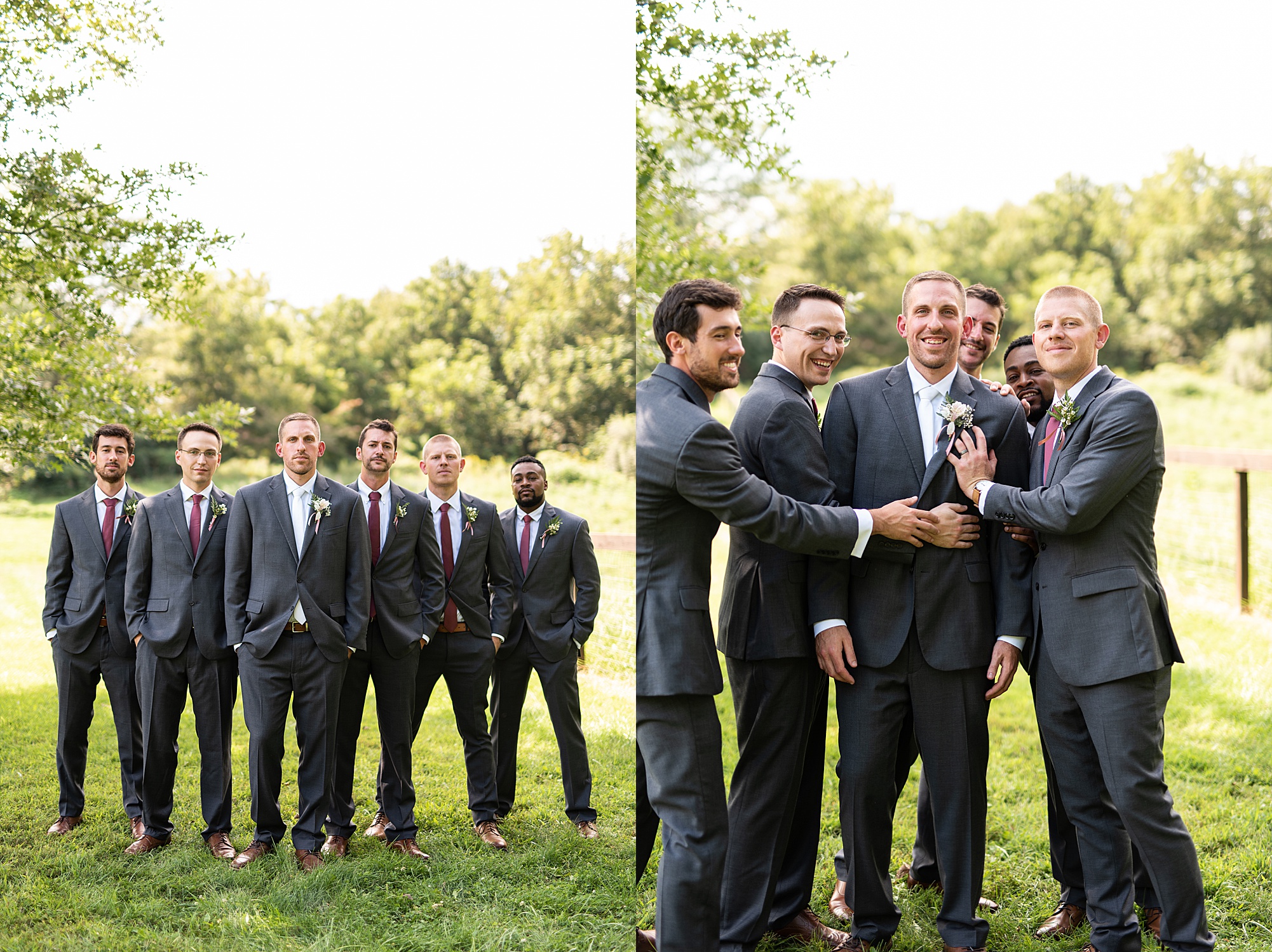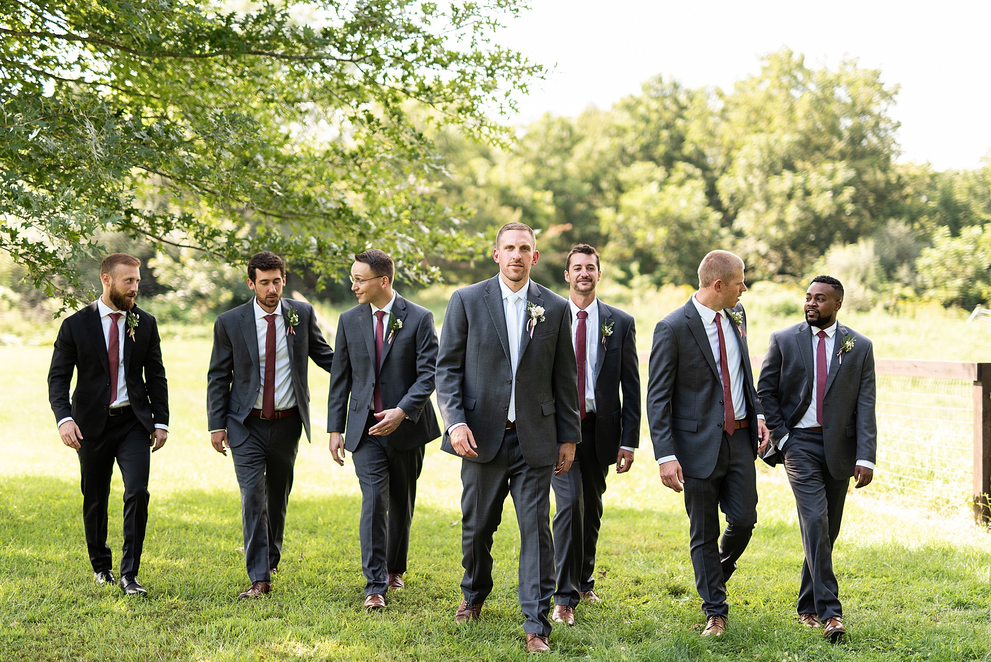 Next we traveled a little to a nearby pasture for some fun bridal party photos and photos with Ashley and David. Their bridal party did a great job as their hype crew and really kept Ashley and David laughing and having fun! After portrait time, we headed back to get them officially married! Ashley’s dad walked her down the aisle to David and proudly gave his oldest daughter away. Ashley had a little surprise for David as she “iced” him the second she got down the aisle to help him loosen up! Their close friend officially married them under the trees, they shared their first kiss and walked back down the aisle with the biggest smiles on their faces!