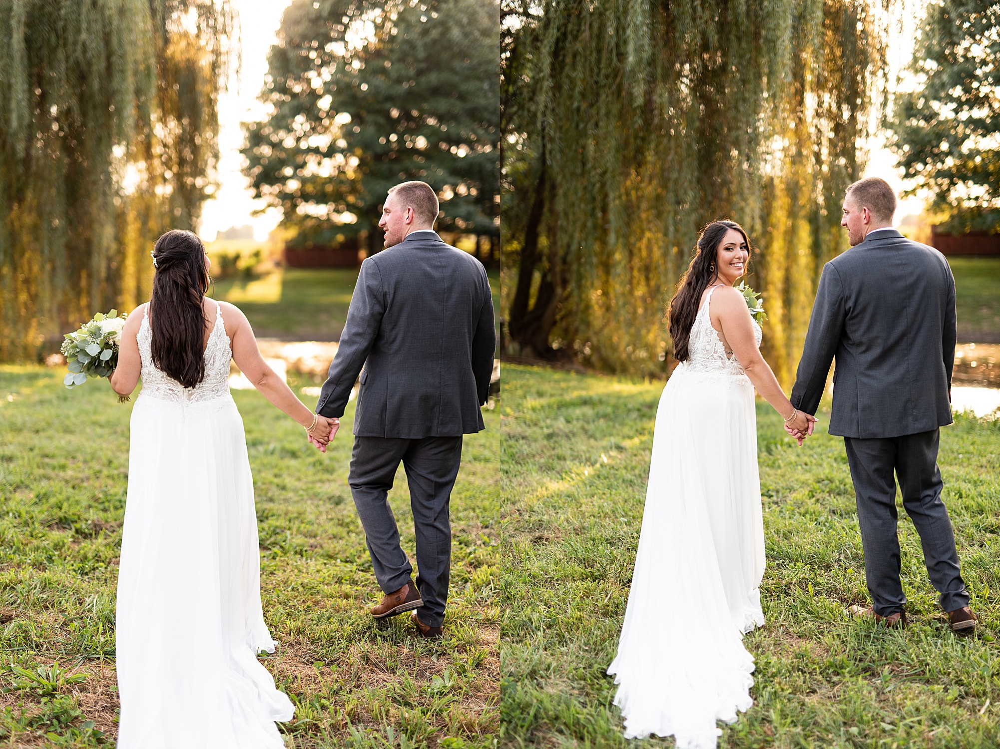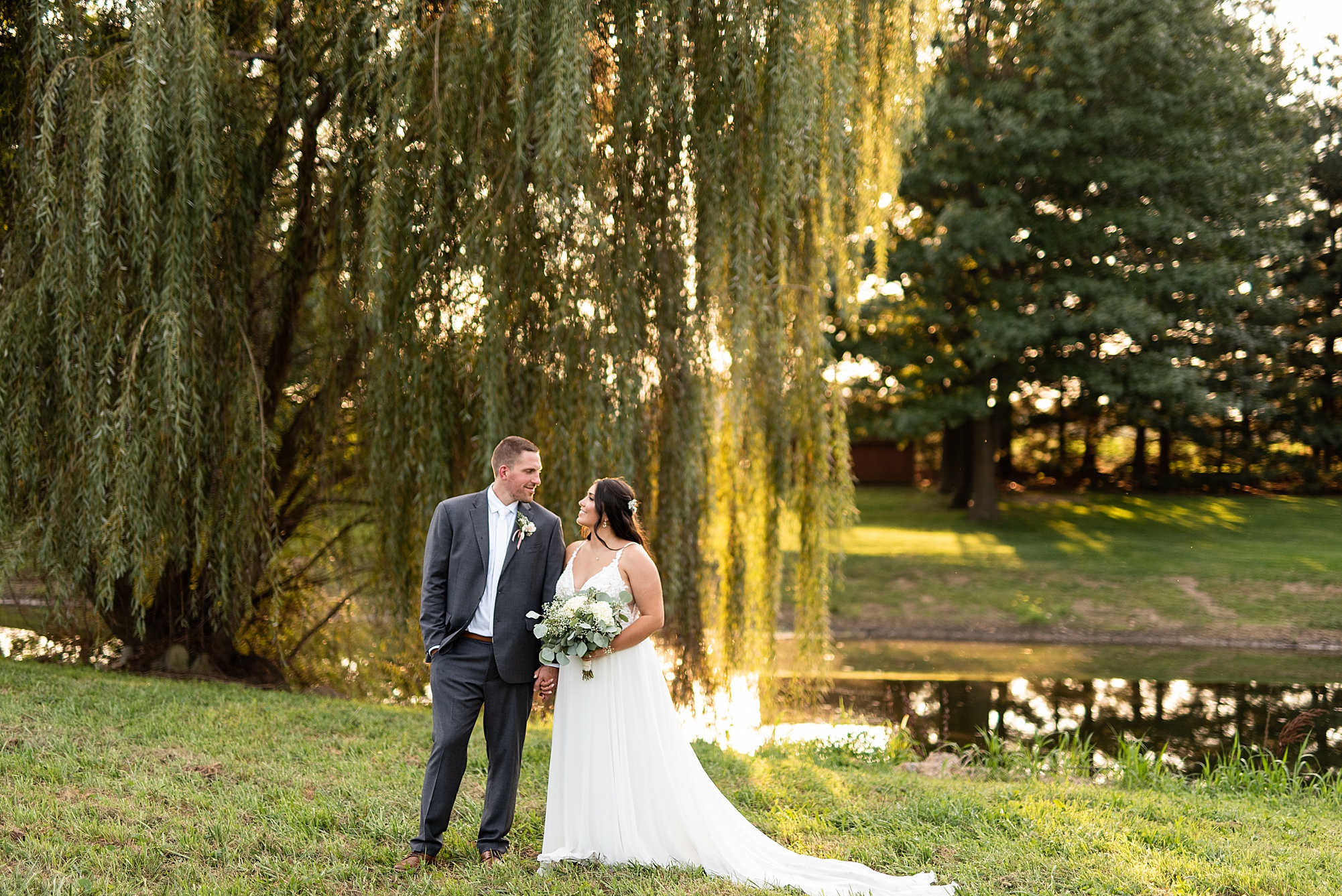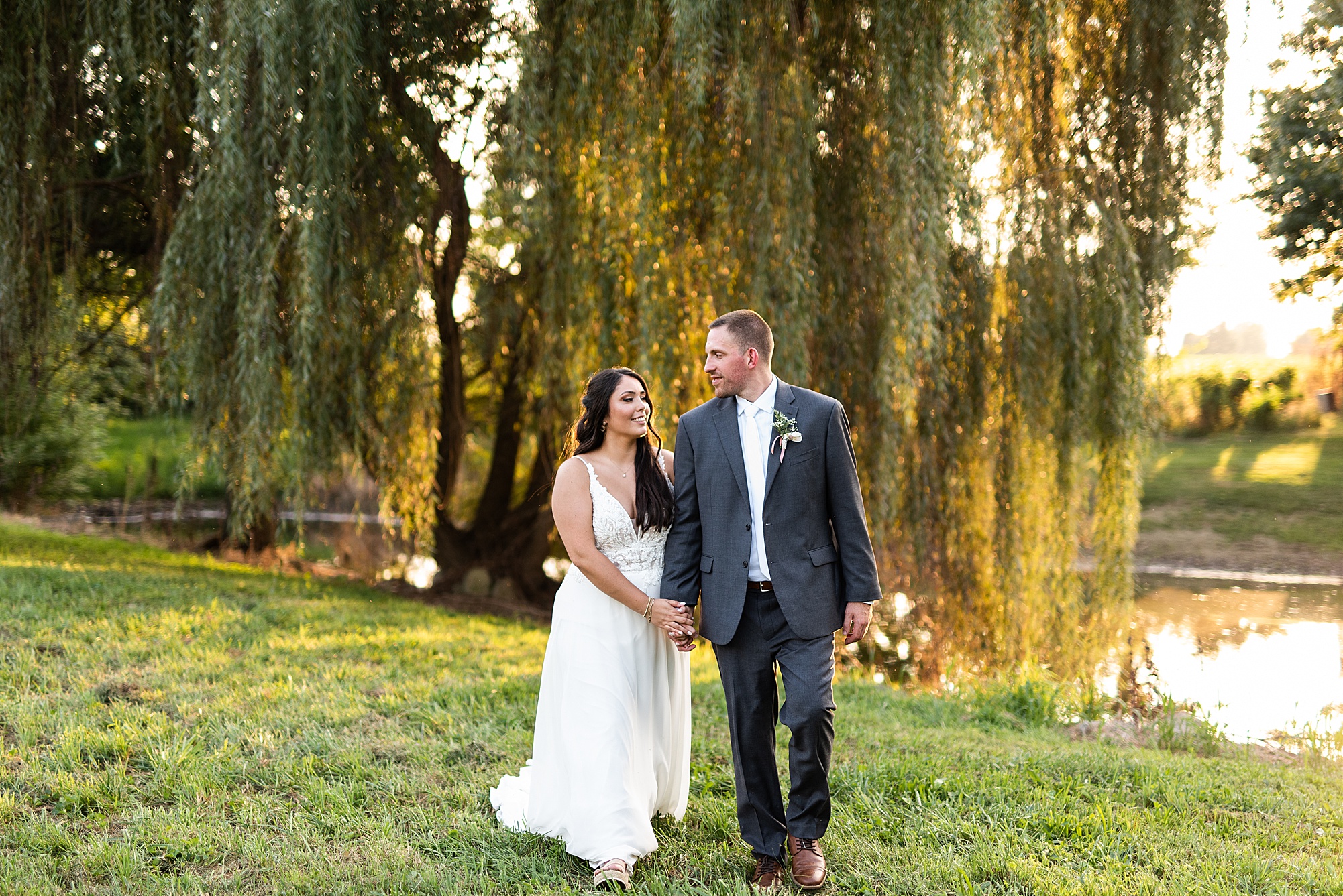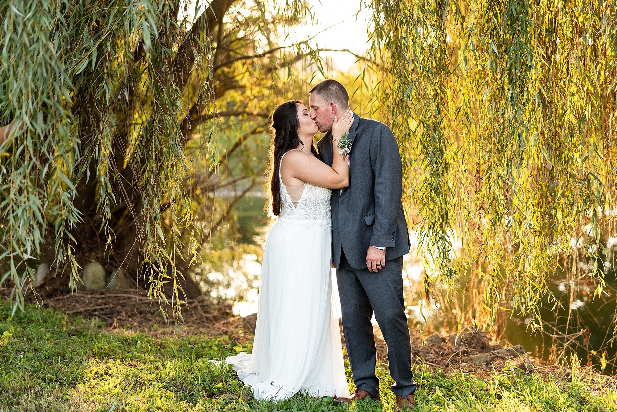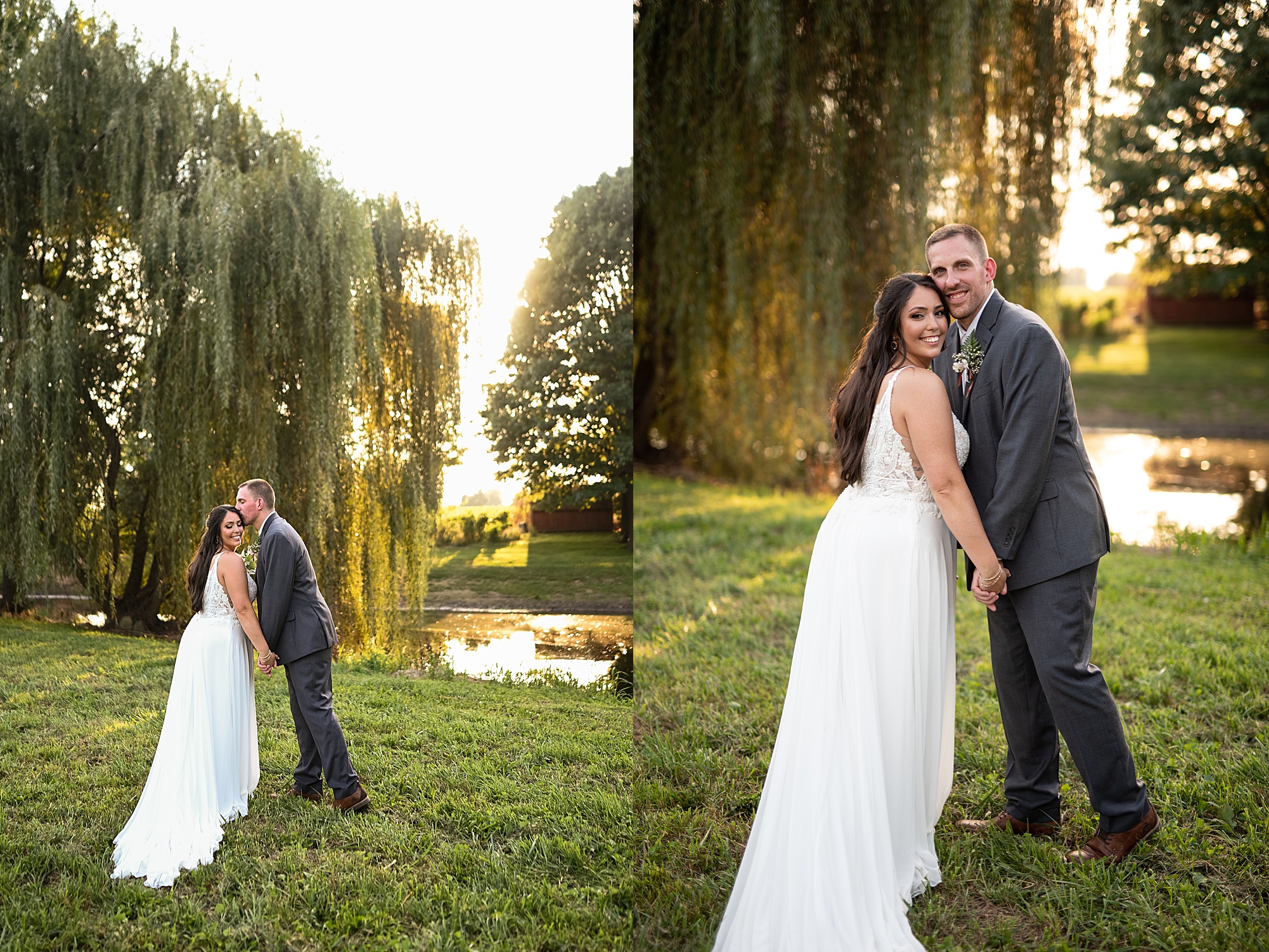 Before Ashley and David joined their reception, we went across the street to David’s childhood friend’s pasture where they had the most beautiful willow tree for gold hour photos. It was so much fun to capture these moments with Ashley and David, freshly newlyweds!