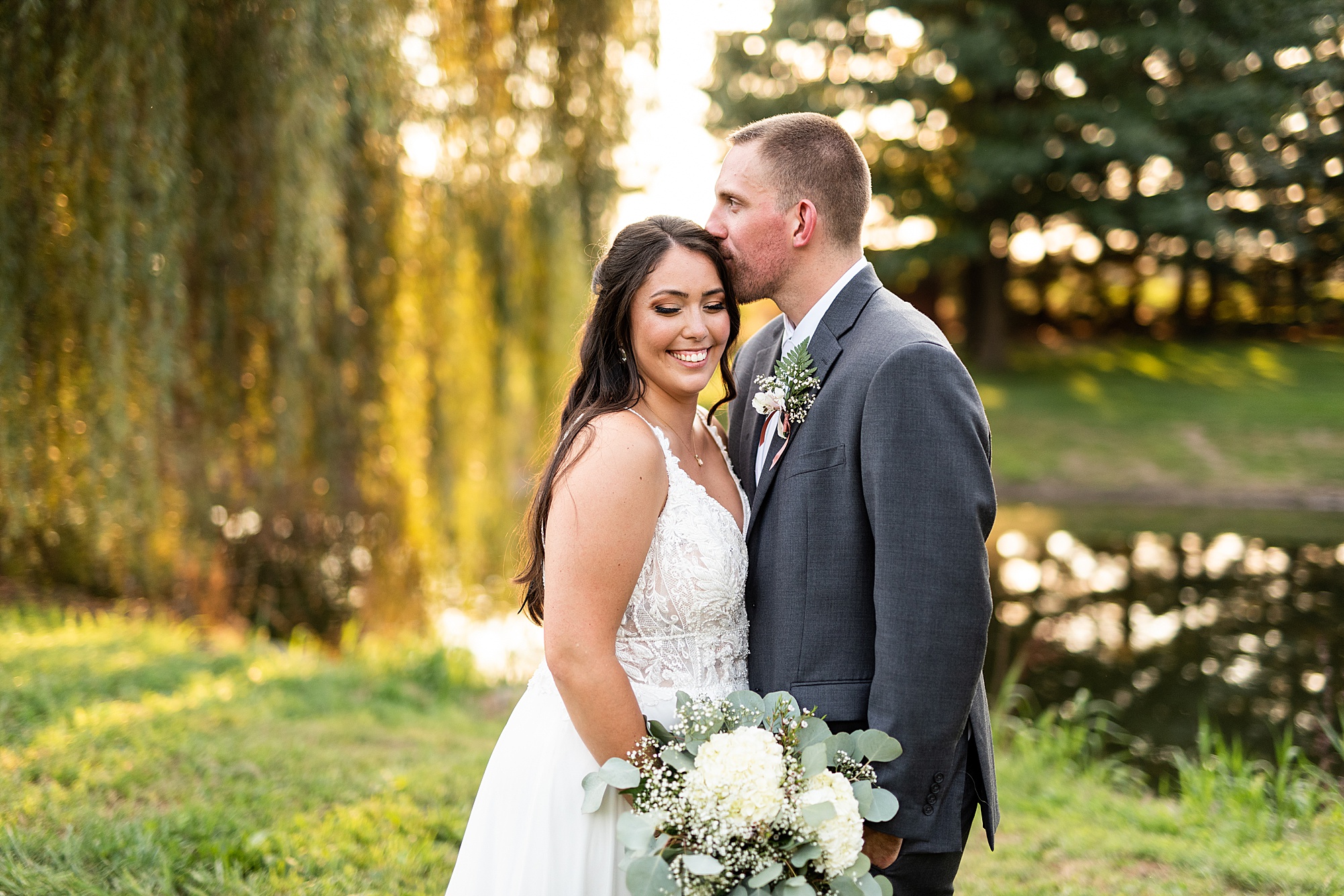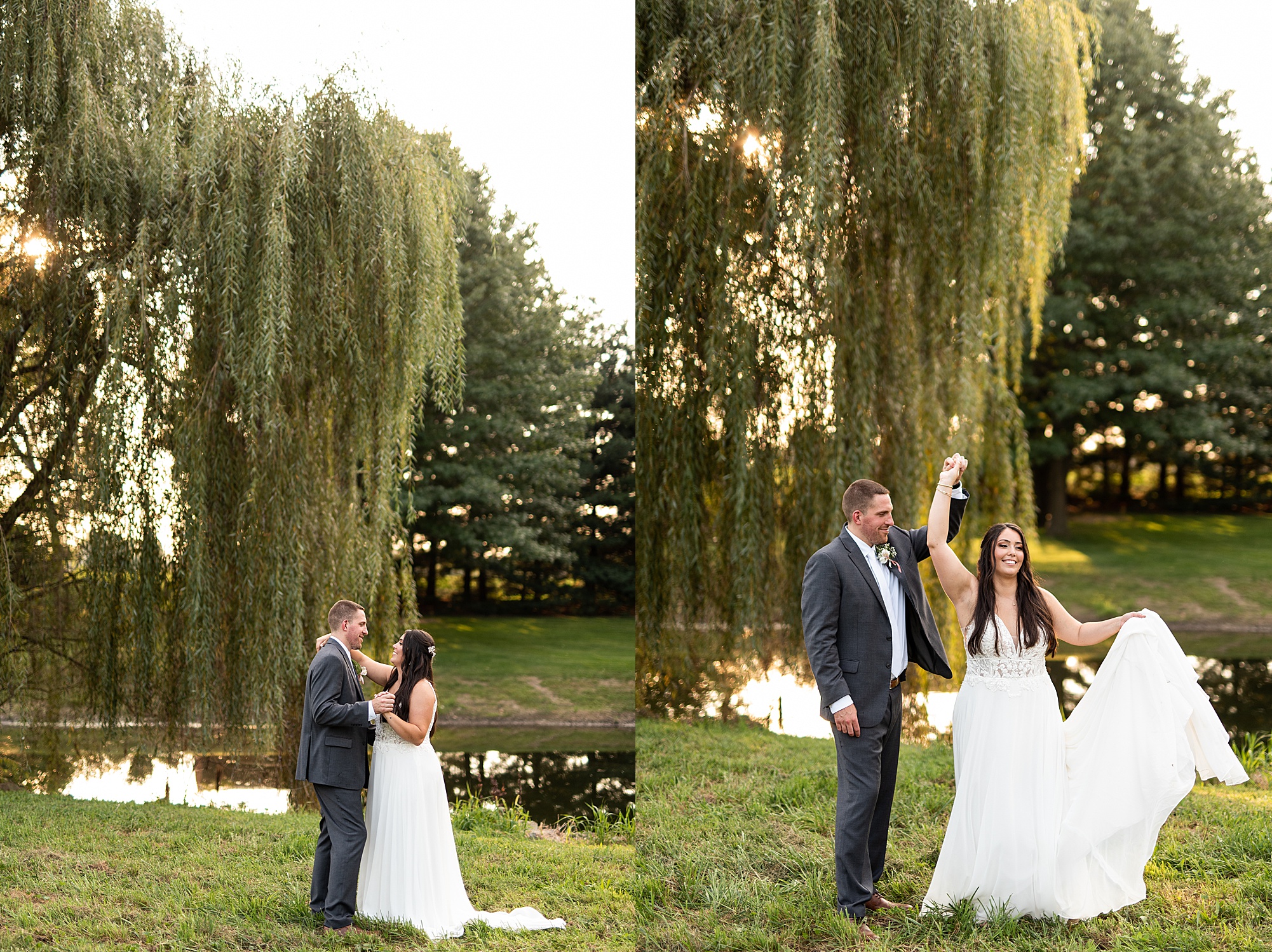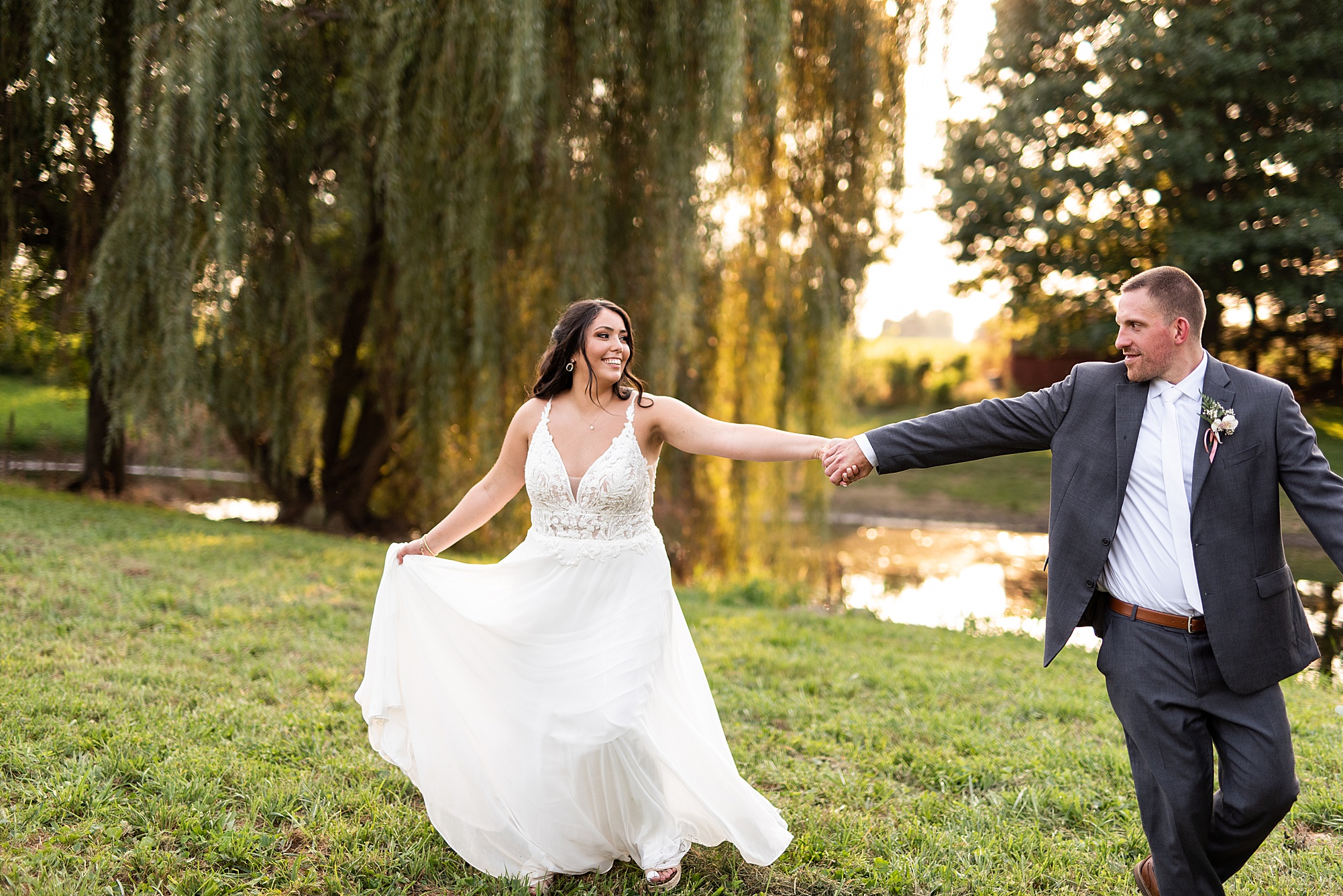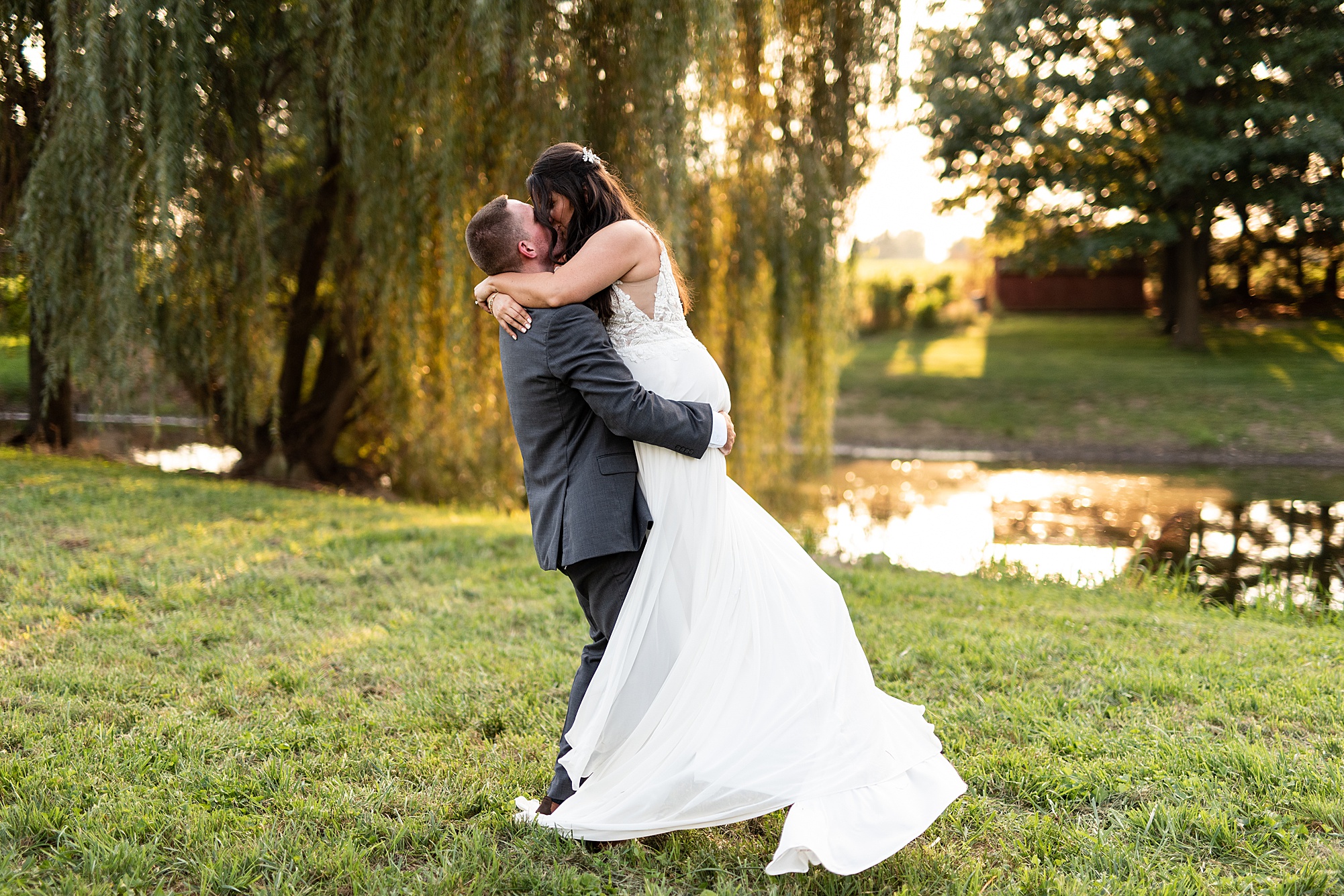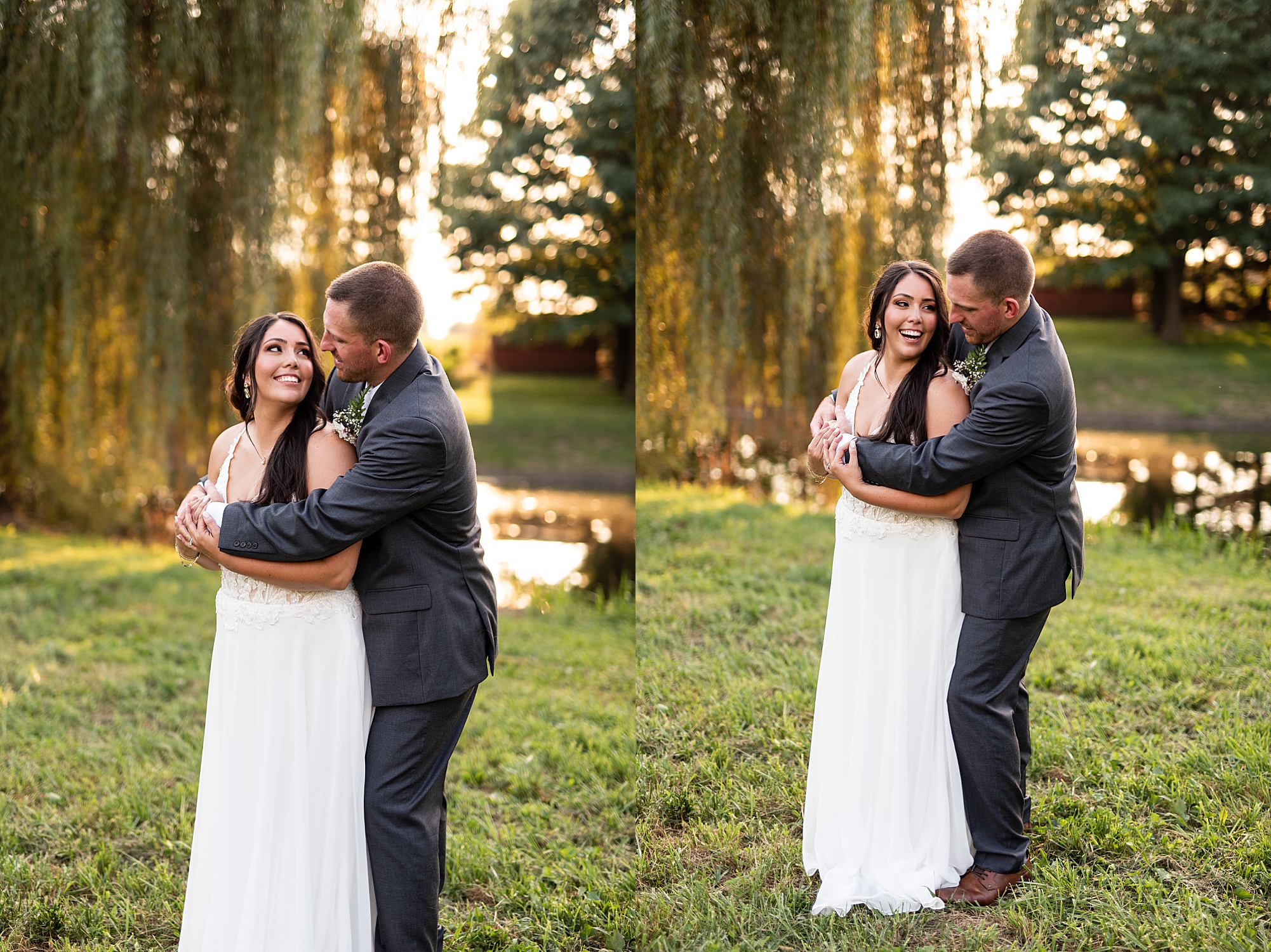 Before Ashley and David joined their reception, we went across the street to David’s childhood friend’s pasture where they had the most beautiful willow tree for gold hour photos. It was so much fun to capture these moments with Ashley and David, freshly newlyweds!