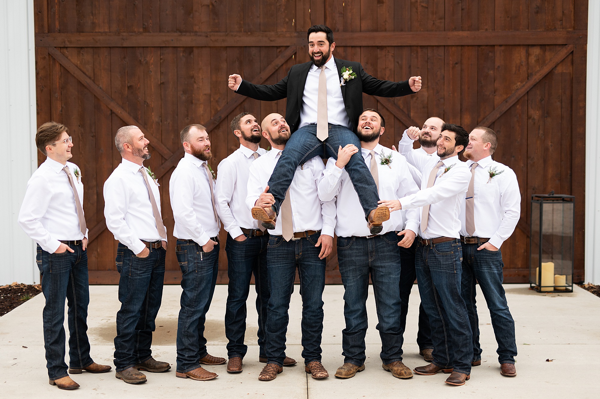 Groom & Groomsmen Attire: Men’s Wearhouse / Boot Barn