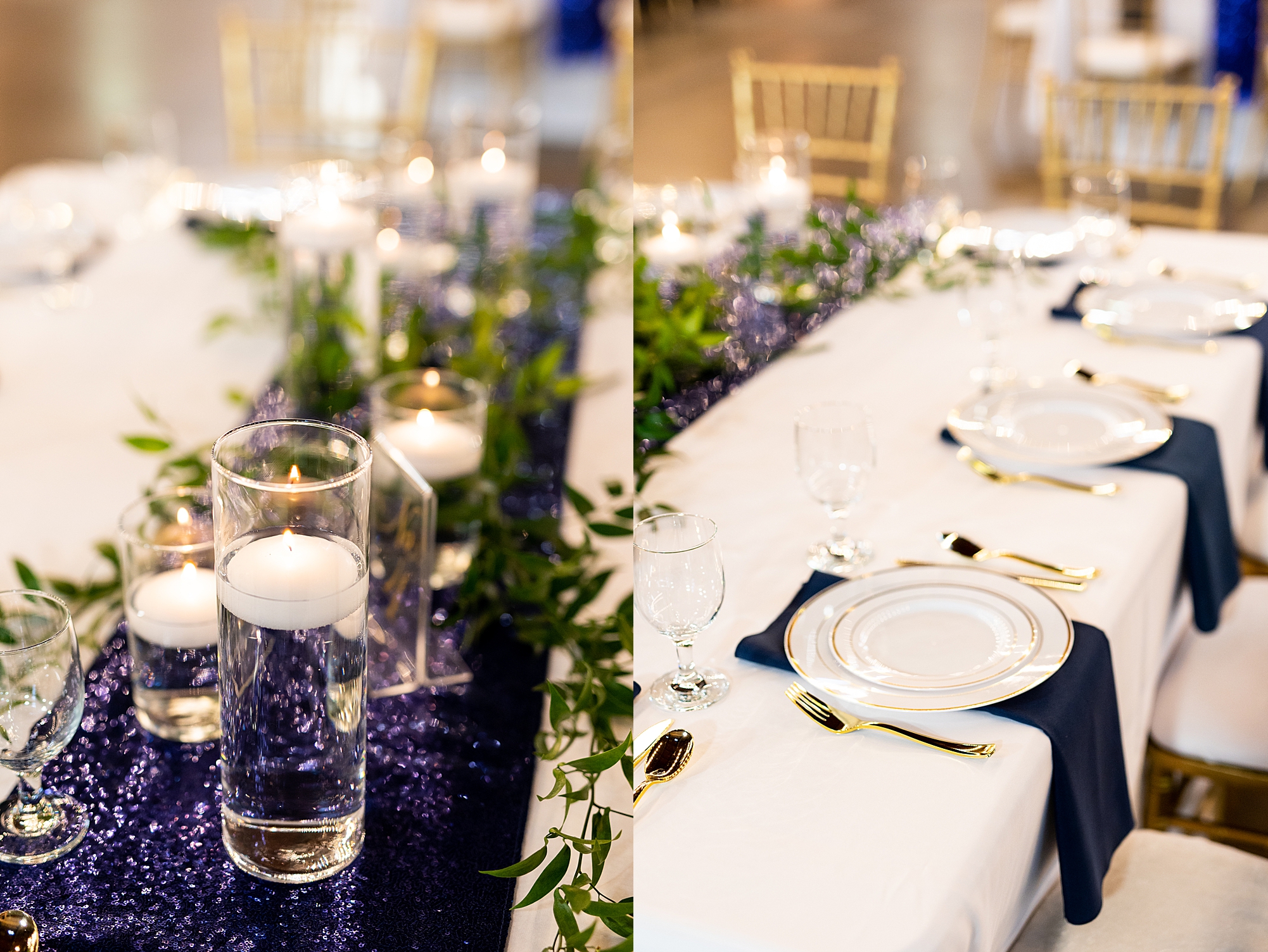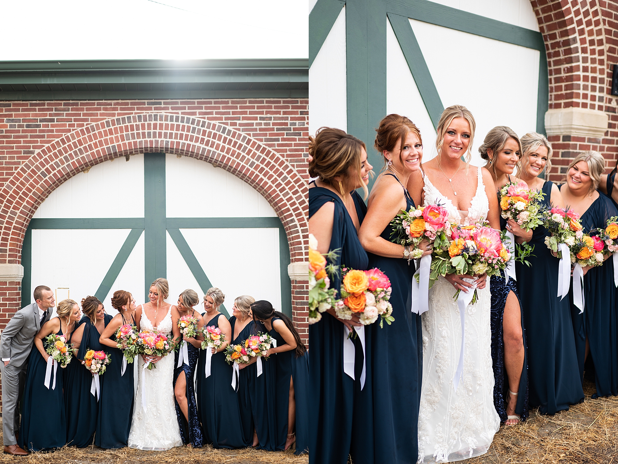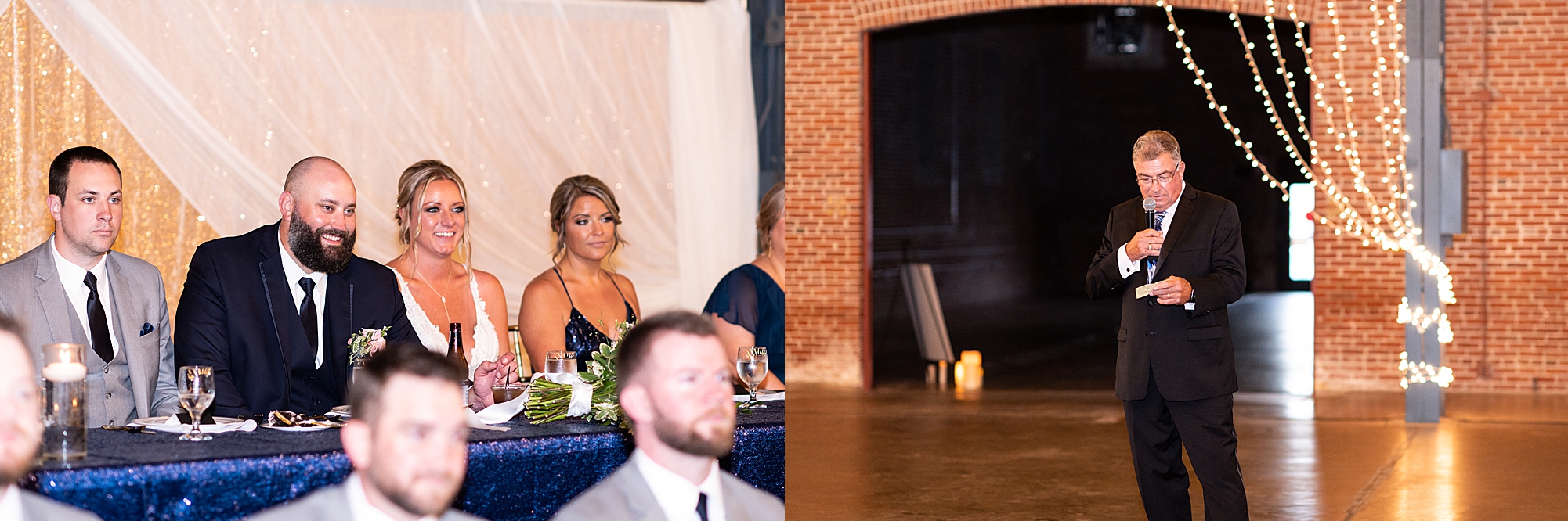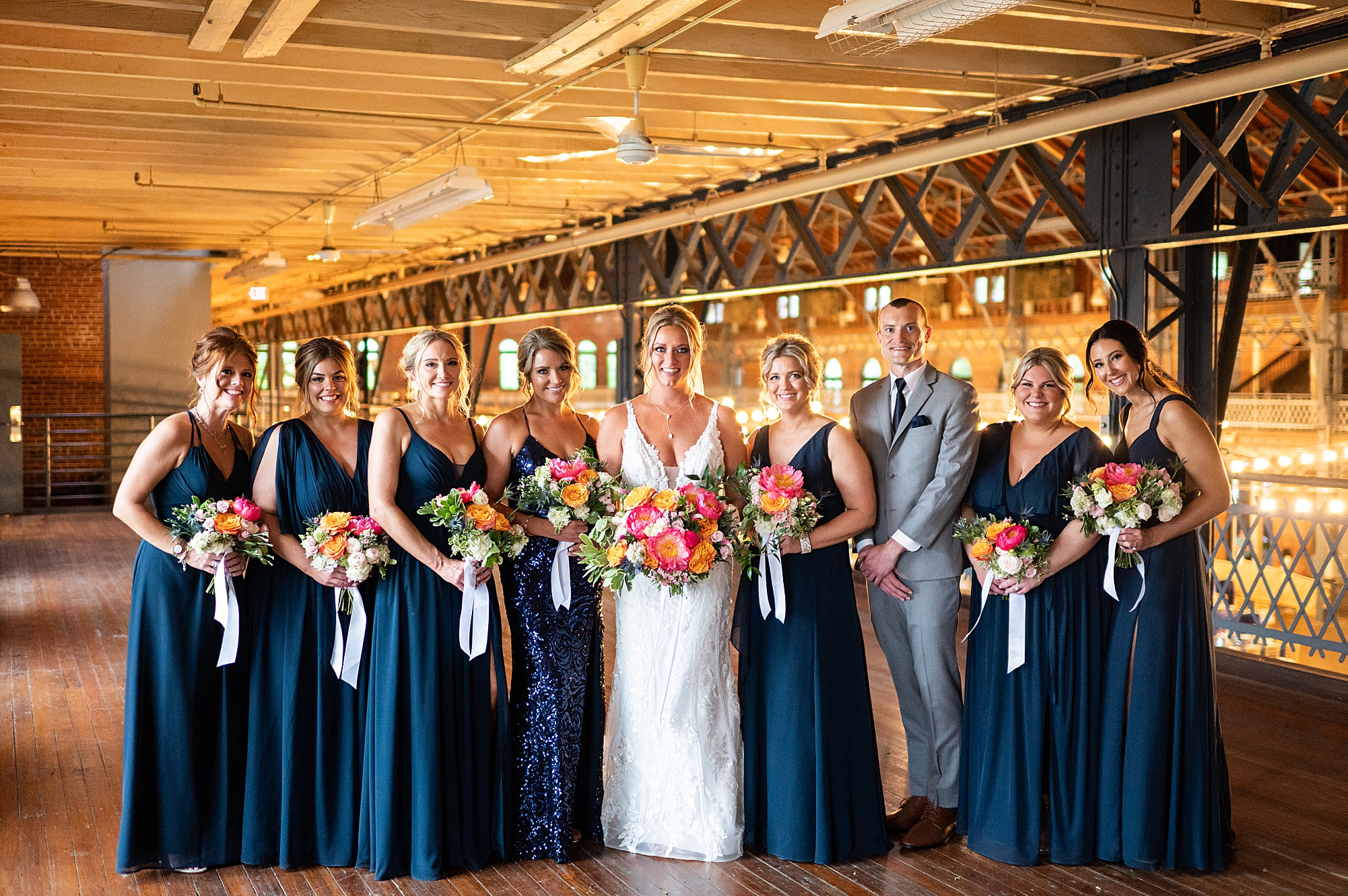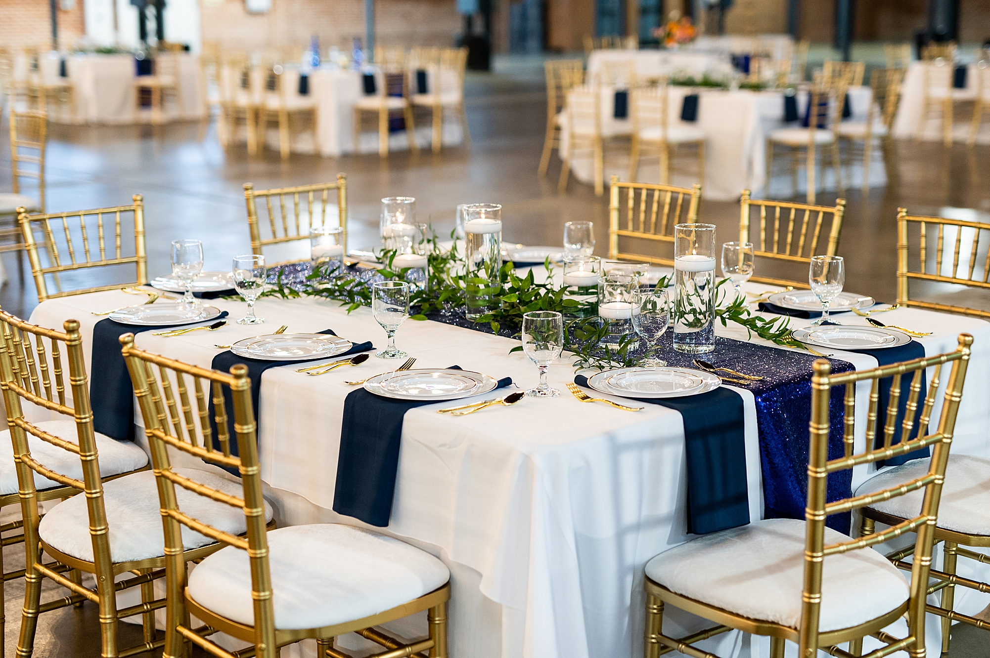 After the ceremony, their guests headed to a gorgeous cocktail hour while we were finally able to take the bridal party outside for some quick portrait time! Travis is not one for a ton of photos, but he did a great job making Ashton laugh and I really enjoyed capturing some “just married” photos of them! Afterwards, we headed back to their reception full of gorgeous navy sparkle, candlelight and colorful florals. It was a beautiful celebration of love for Ashton and Travis who met on Tinder, dated long distance and fell hard for each other. I loved capturing the entire day for them and could not be happier for Mr. and Mrs. Combs!