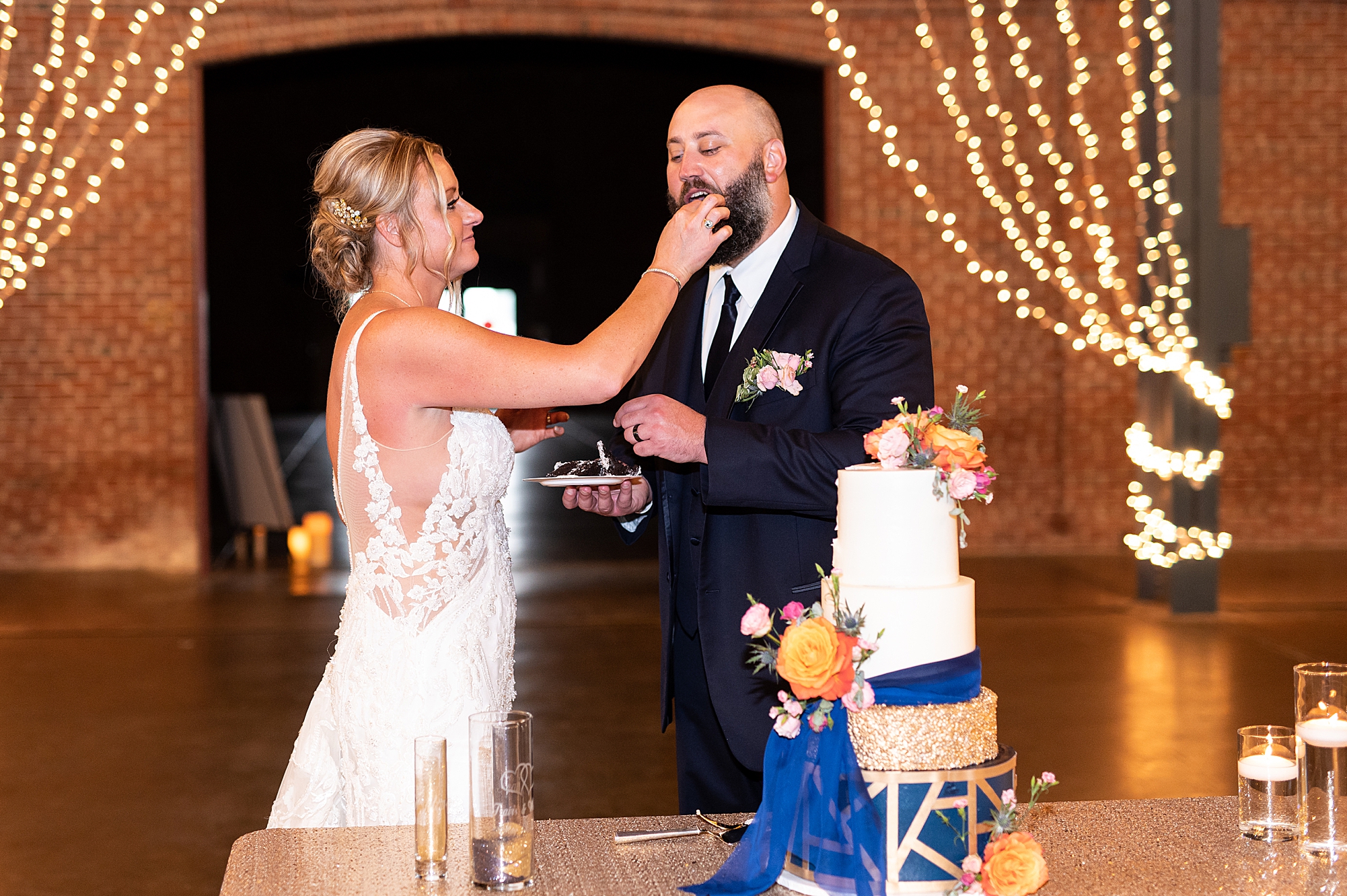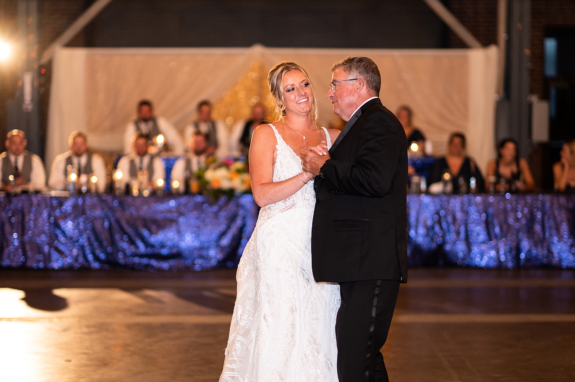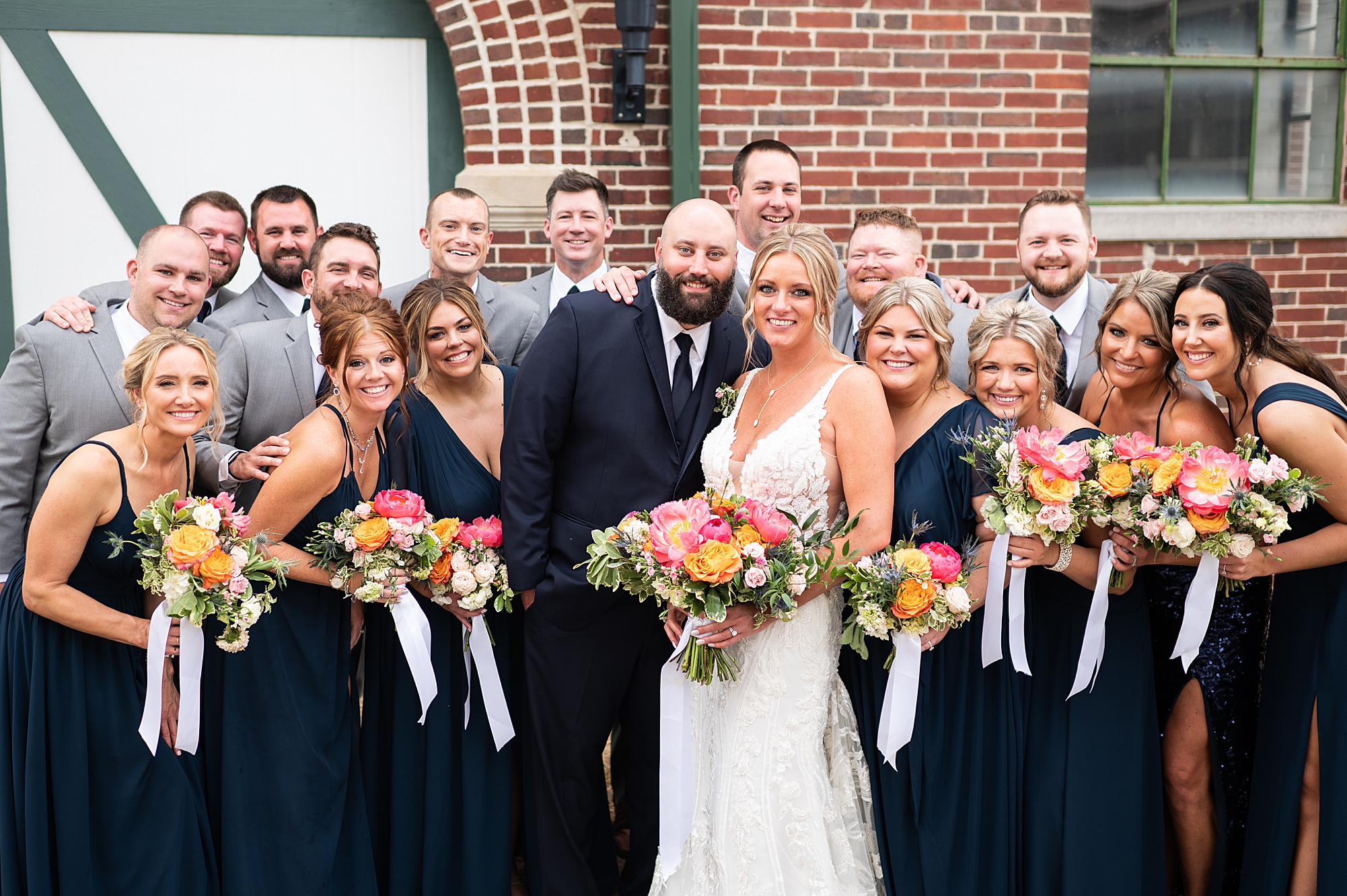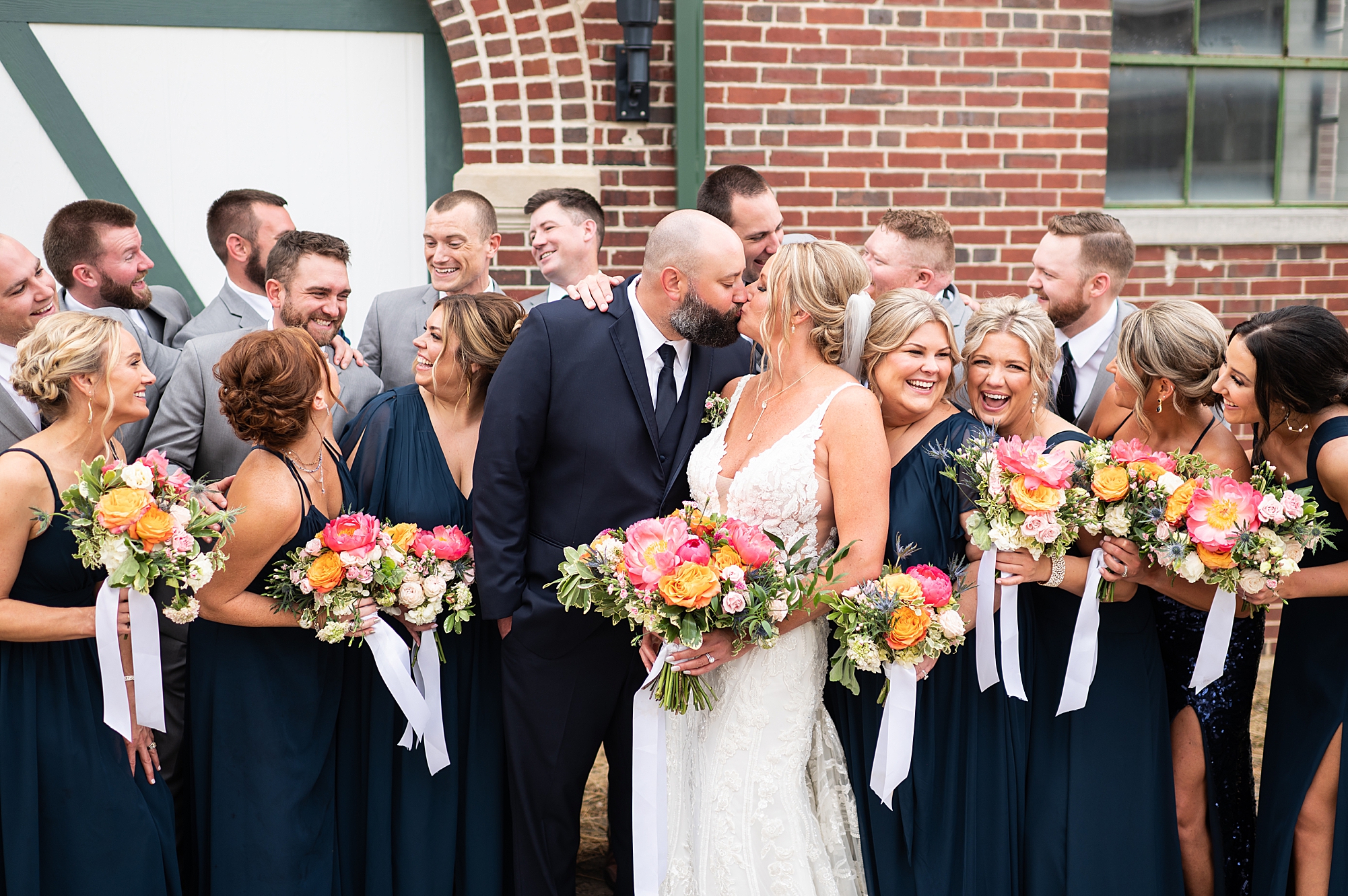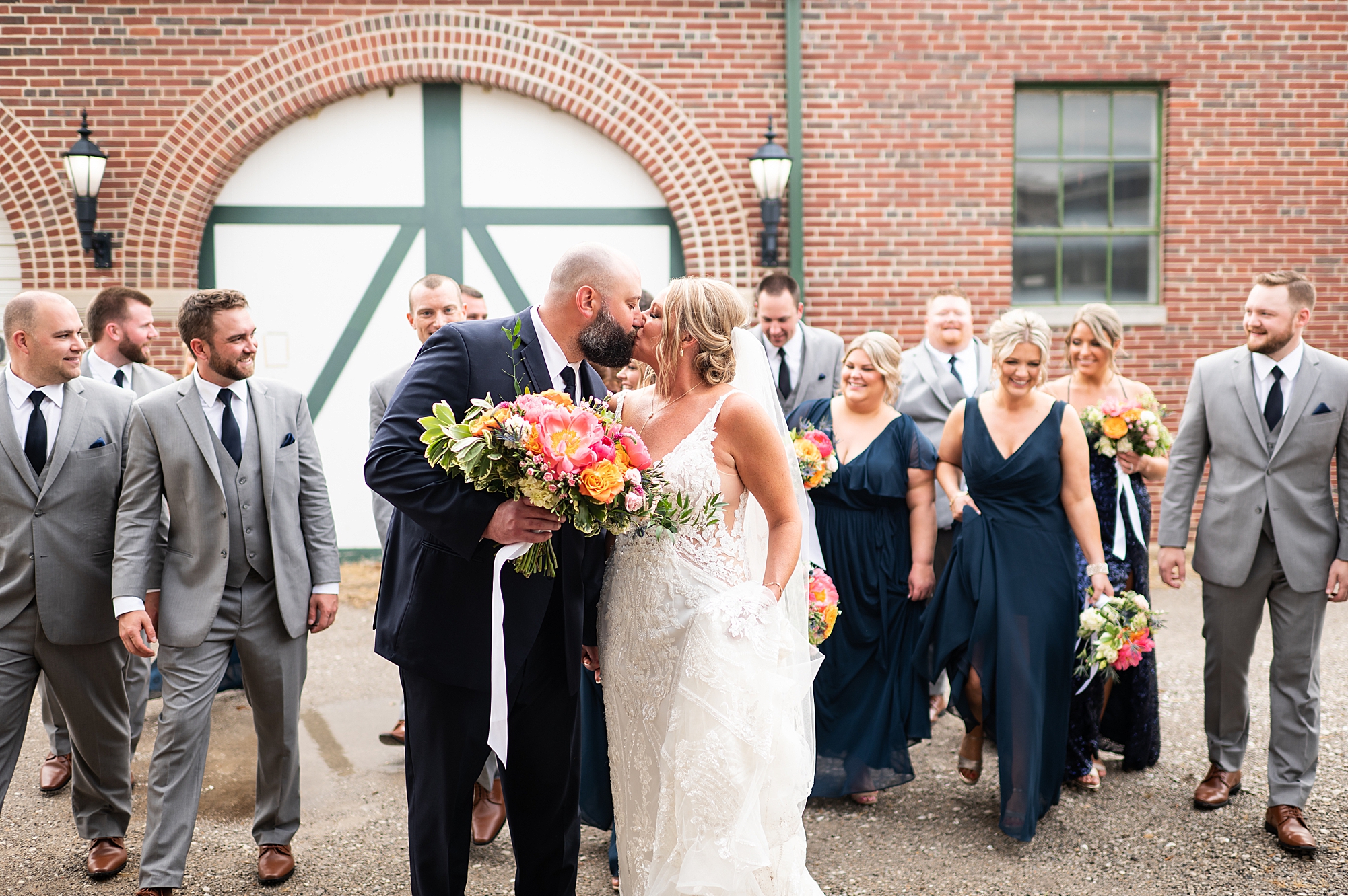 After the ceremony, their guests headed to a gorgeous cocktail hour while we were finally able to take the bridal party outside for some quick portrait time! Travis is not one for a ton of photos, but he did a great job making Ashton laugh and I really enjoyed capturing some “just married” photos of them! Afterwards, we headed back to their reception full of gorgeous navy sparkle, candlelight and colorful florals. It was a beautiful celebration of love for Ashton and Travis who met on Tinder, dated long distance and fell hard for each other. I loved capturing the entire day for them and could not be happier for Mr. and Mrs. Combs!