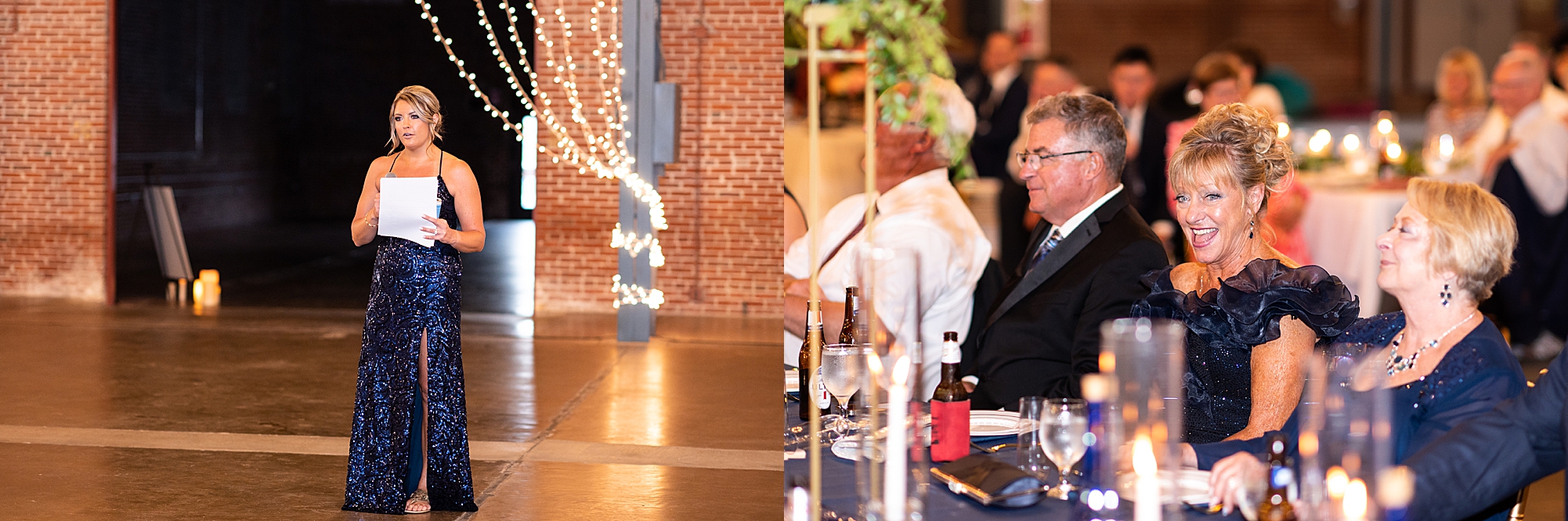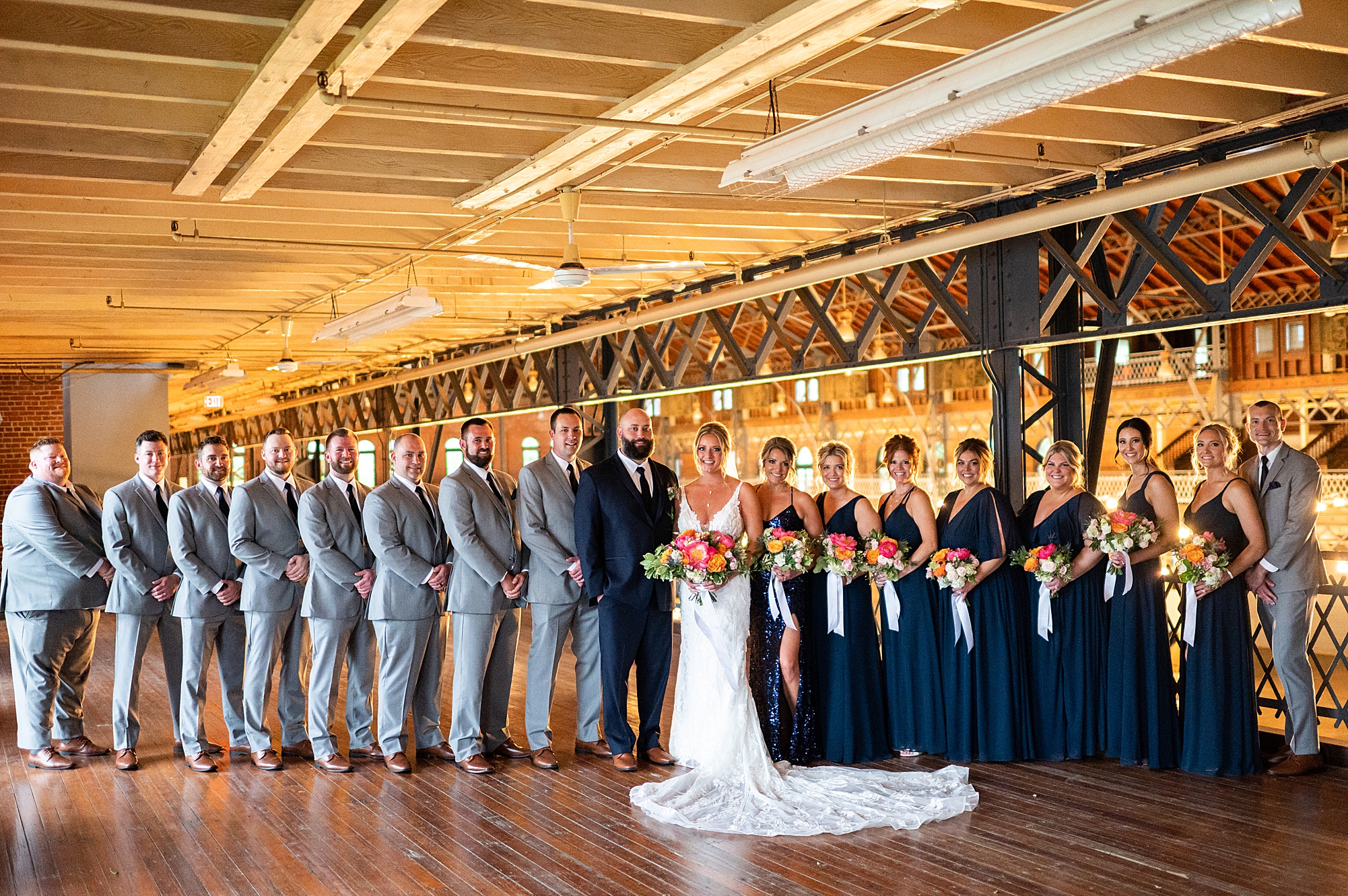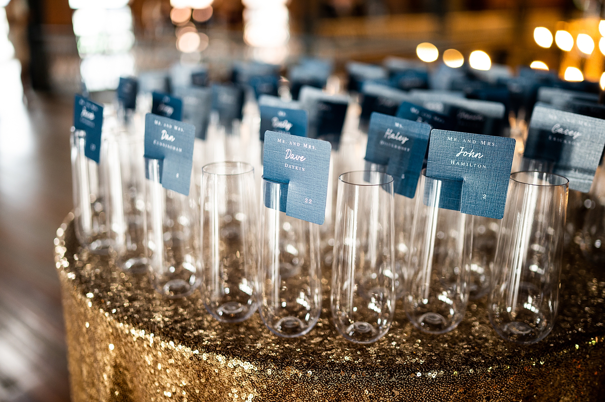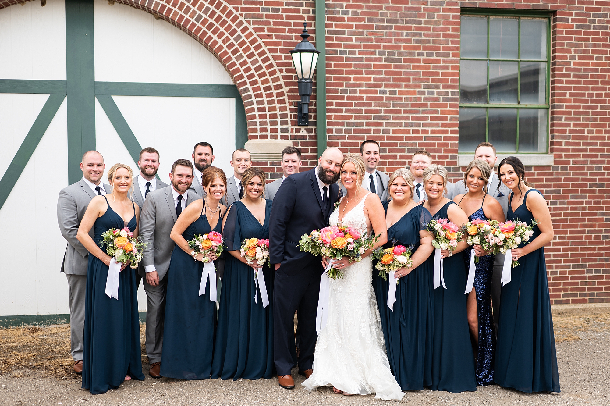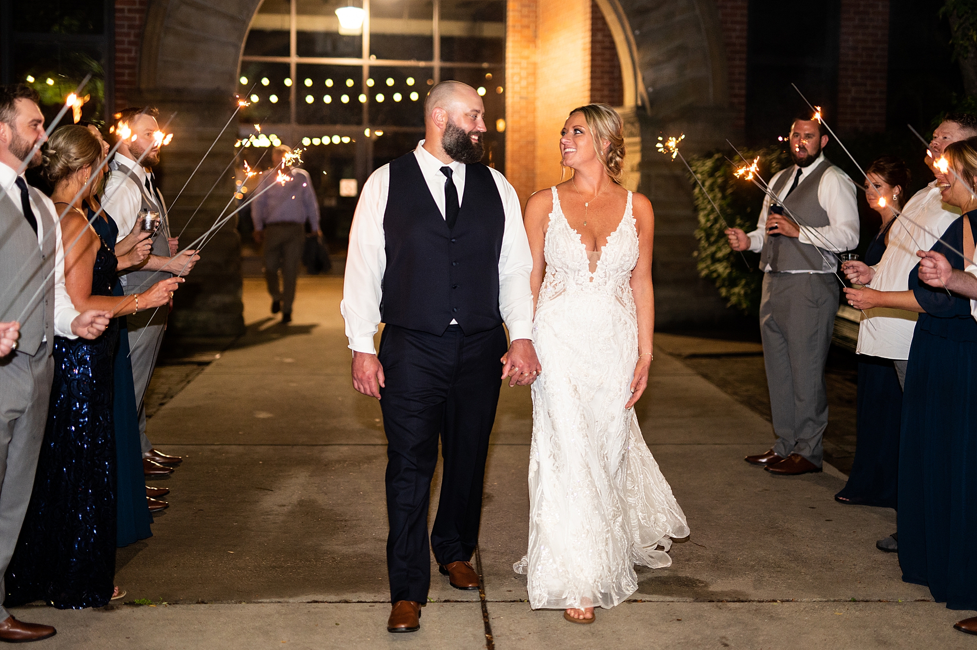 After the ceremony, their guests headed to a gorgeous cocktail hour while we were finally able to take the bridal party outside for some quick portrait time! Travis is not one for a ton of photos, but he did a great job making Ashton laugh and I really enjoyed capturing some “just married” photos of them! Afterwards, we headed back to their reception full of gorgeous navy sparkle, candlelight and colorful florals. It was a beautiful celebration of love for Ashton and Travis who met on Tinder, dated long distance and fell hard for each other. I loved capturing the entire day for them and could not be happier for Mr. and Mrs. Combs!