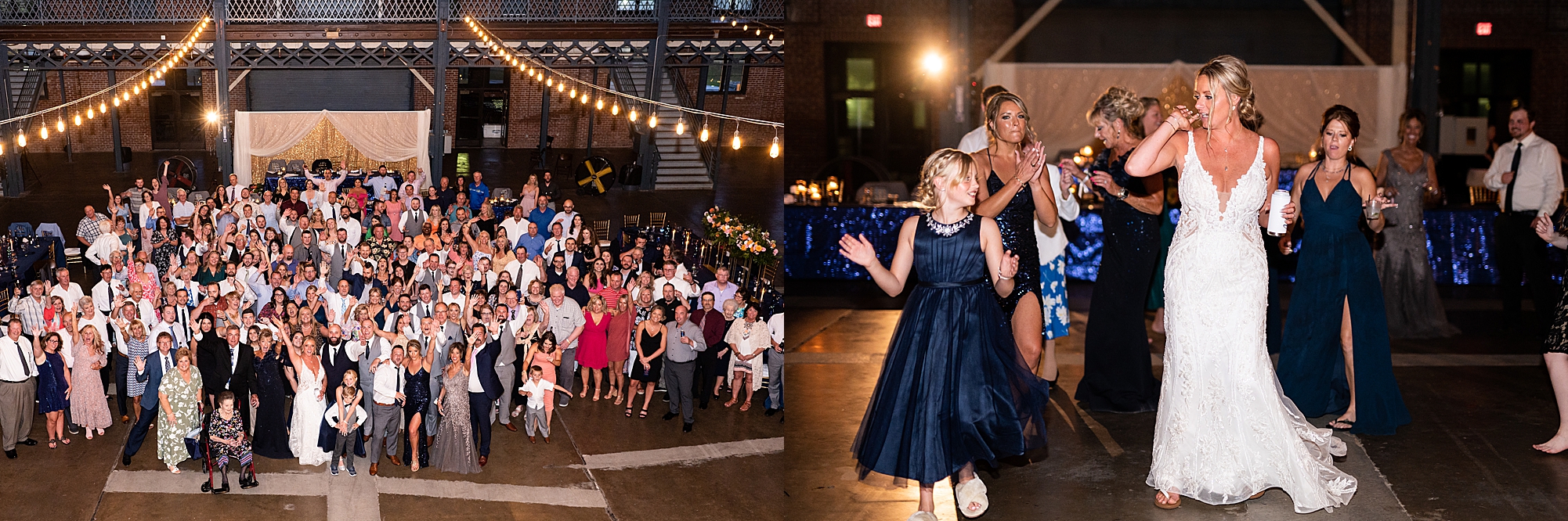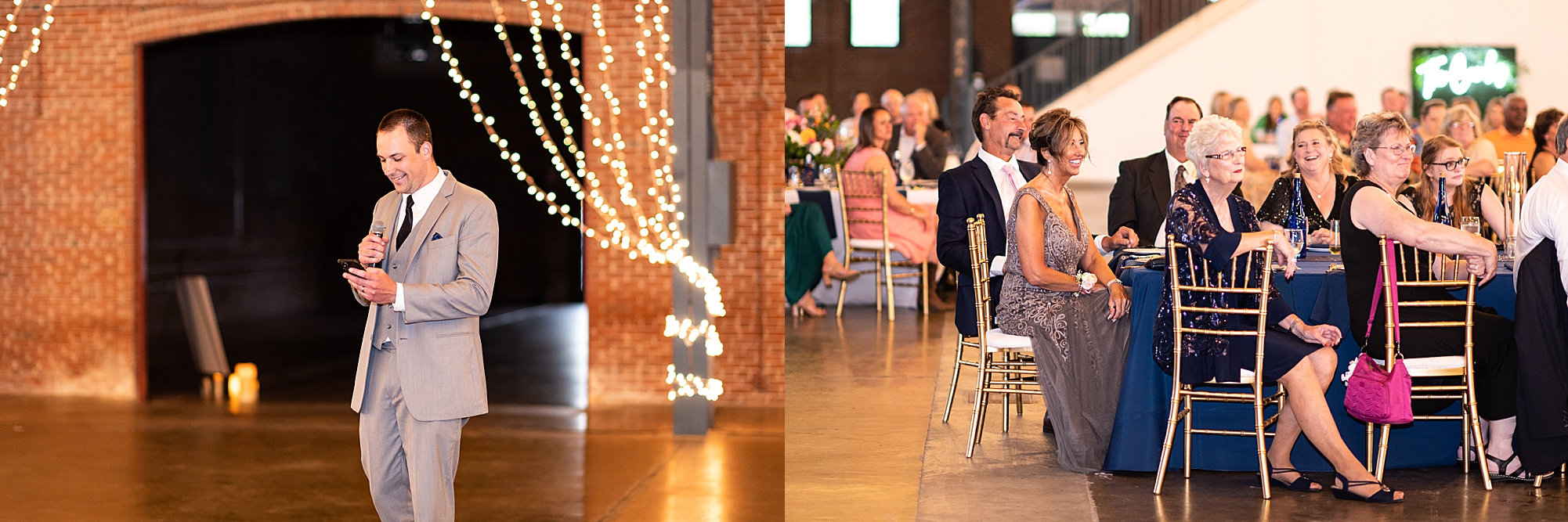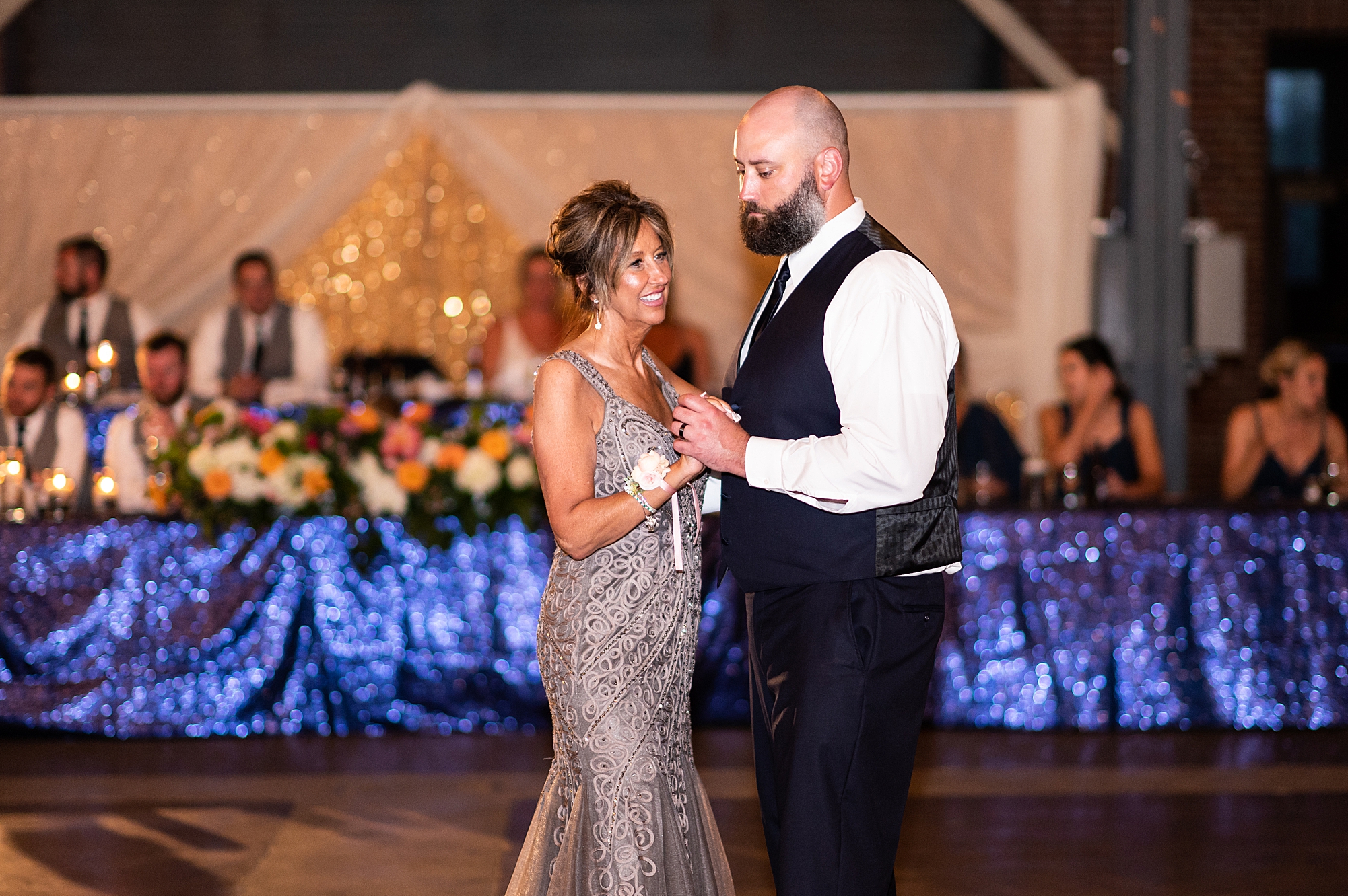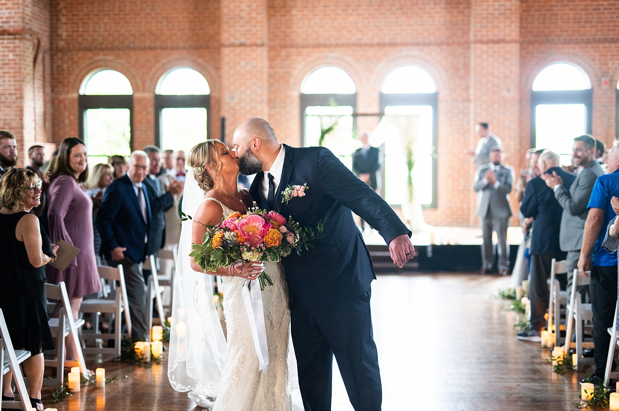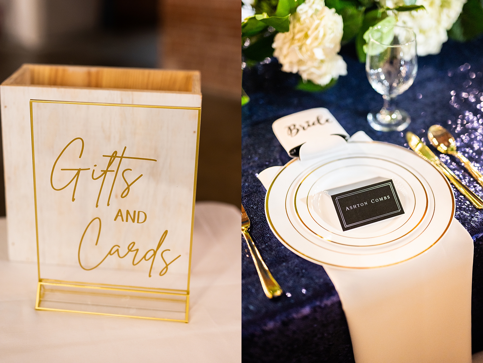 After the ceremony, their guests headed to a gorgeous cocktail hour while we were finally able to take the bridal party outside for some quick portrait time! Travis is not one for a ton of photos, but he did a great job making Ashton laugh and I really enjoyed capturing some “just married” photos of them! Afterwards, we headed back to their reception full of gorgeous navy sparkle, candlelight and colorful florals. It was a beautiful celebration of love for Ashton and Travis who met on Tinder, dated long distance and fell hard for each other. I loved capturing the entire day for them and could not be happier for Mr. and Mrs. Combs!