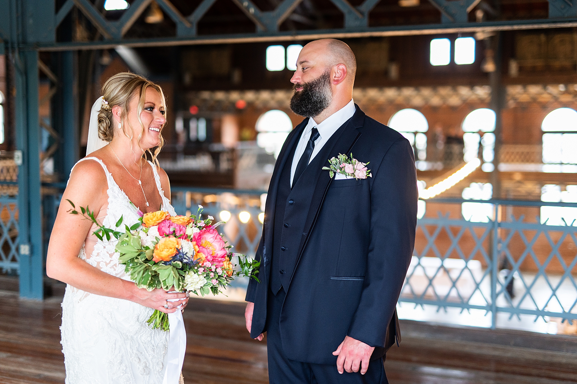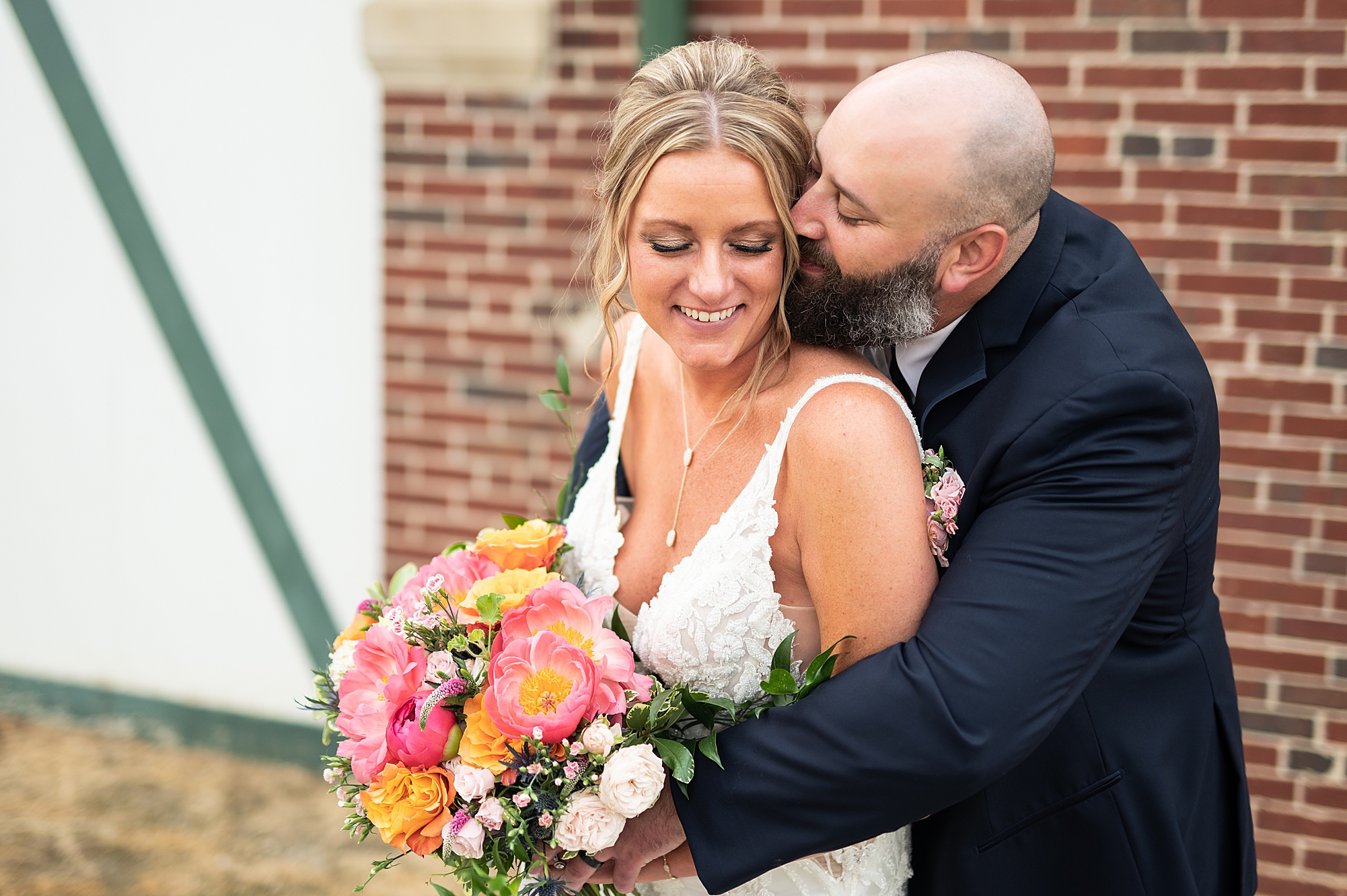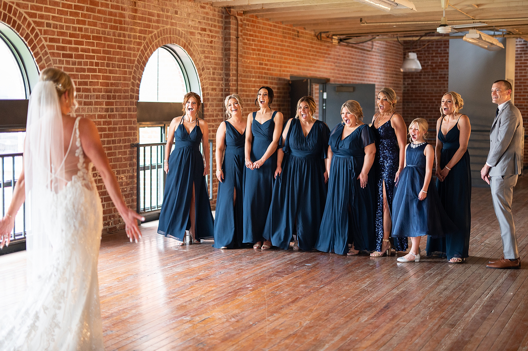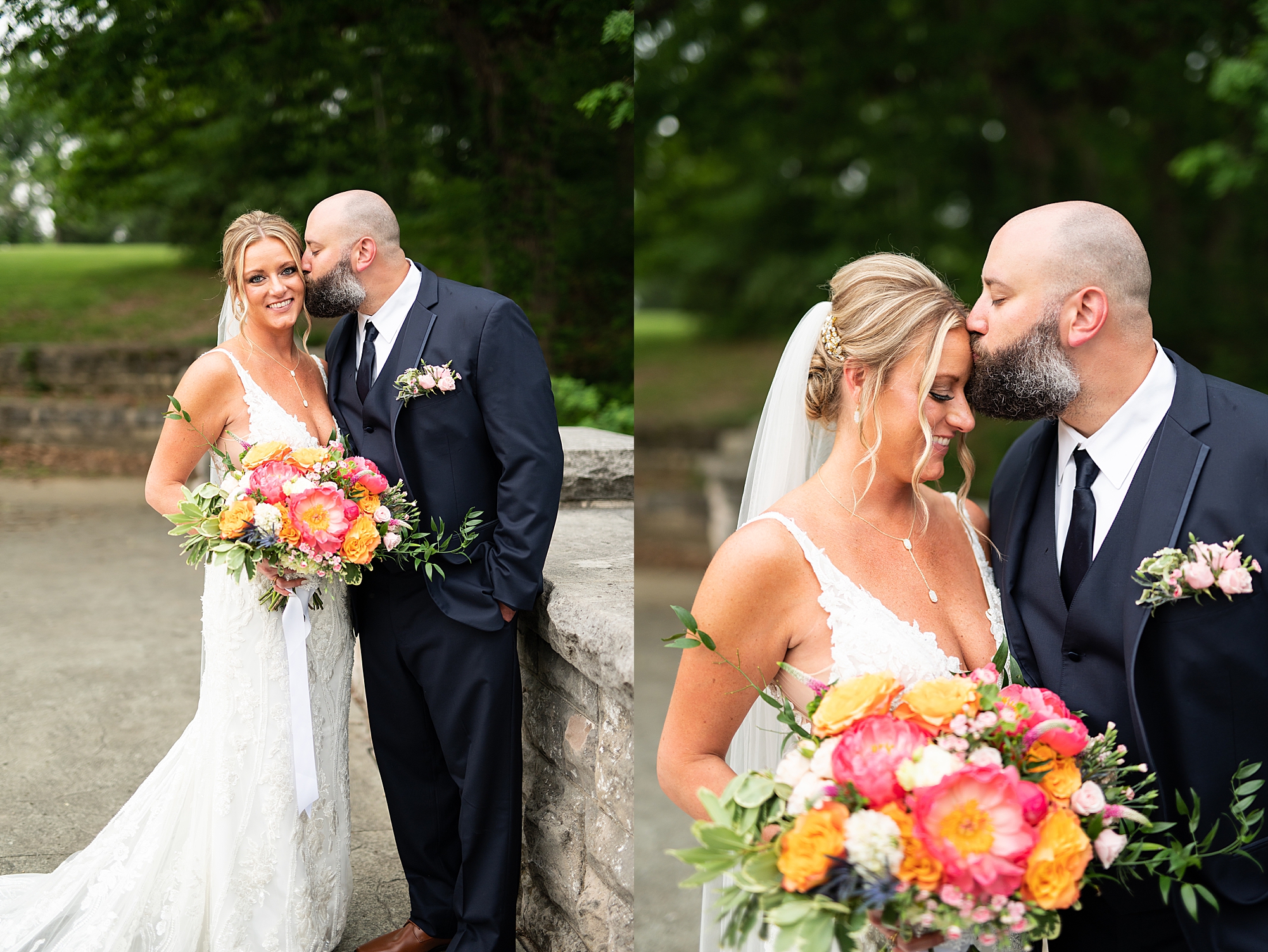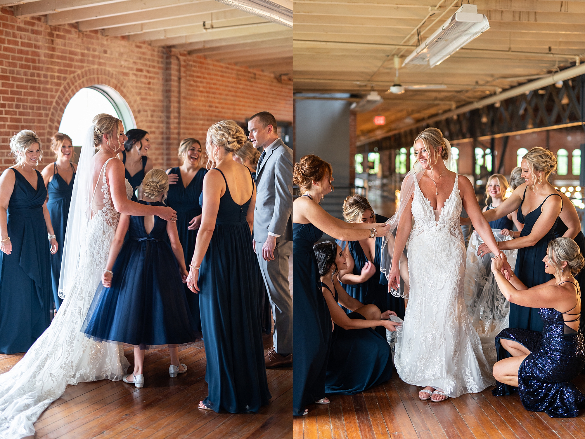 After the ceremony, their guests headed to a gorgeous cocktail hour while we were finally able to take the bridal party outside for some quick portrait time! Travis is not one for a ton of photos, but he did a great job making Ashton laugh and I really enjoyed capturing some “just married” photos of them! Afterwards, we headed back to their reception full of gorgeous navy sparkle, candlelight and colorful florals. It was a beautiful celebration of love for Ashton and Travis who met on Tinder, dated long distance and fell hard for each other. I loved capturing the entire day for them and could not be happier for Mr. and Mrs. Combs!