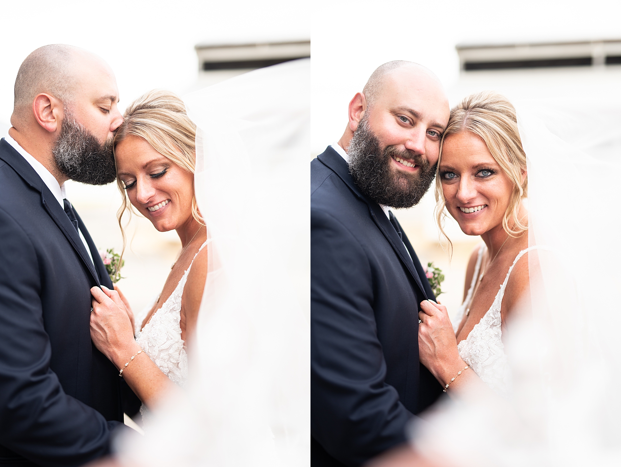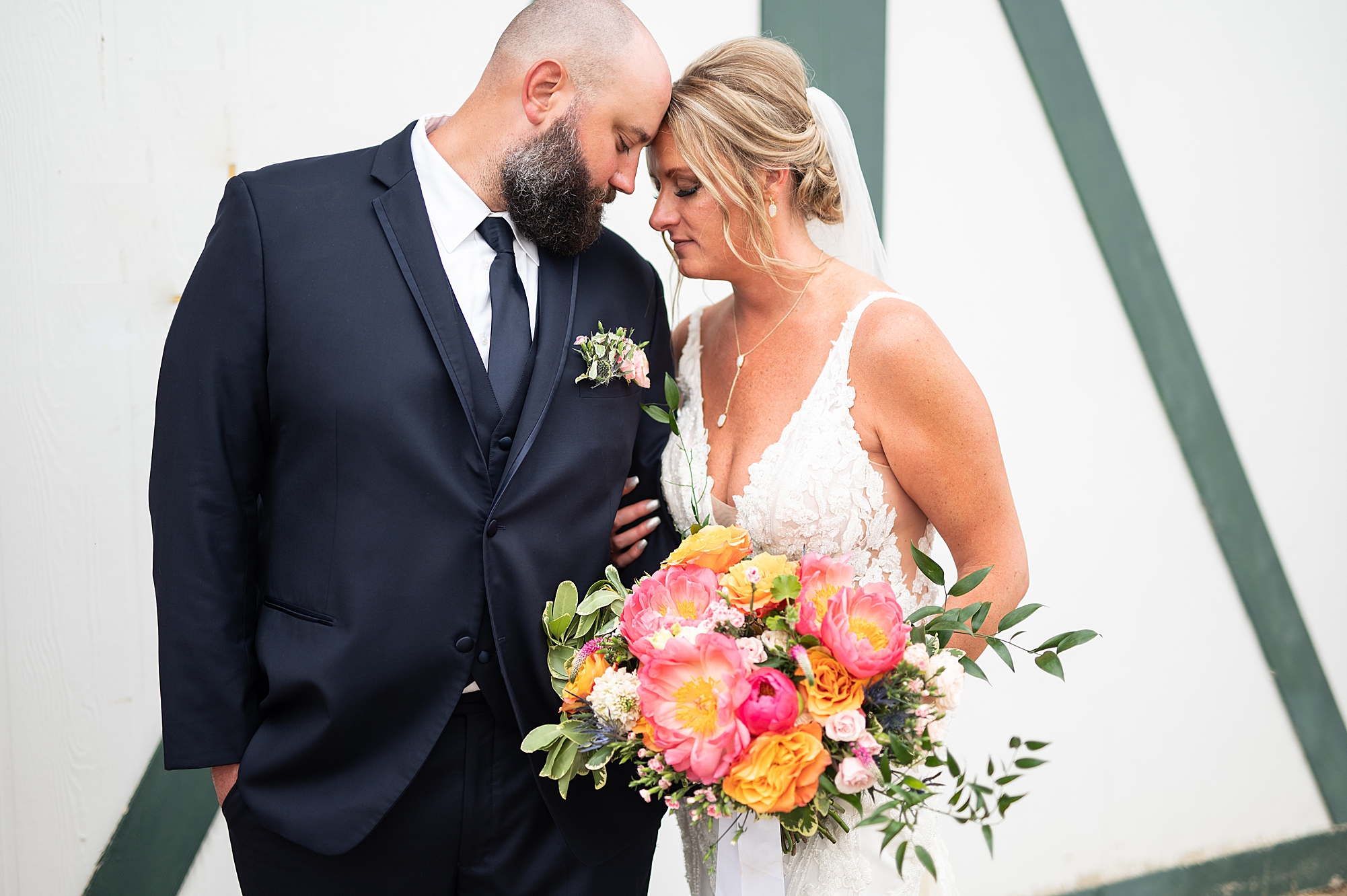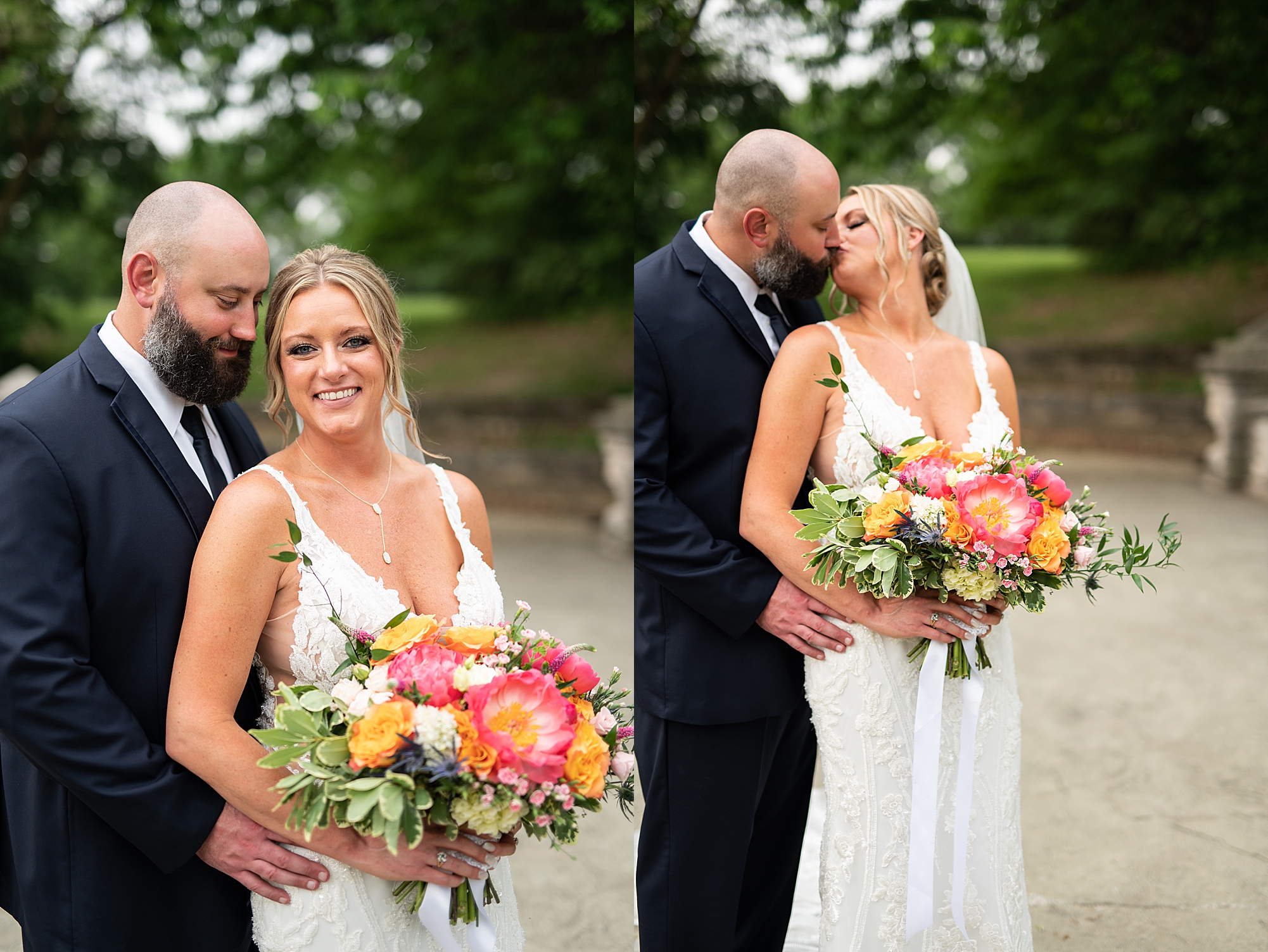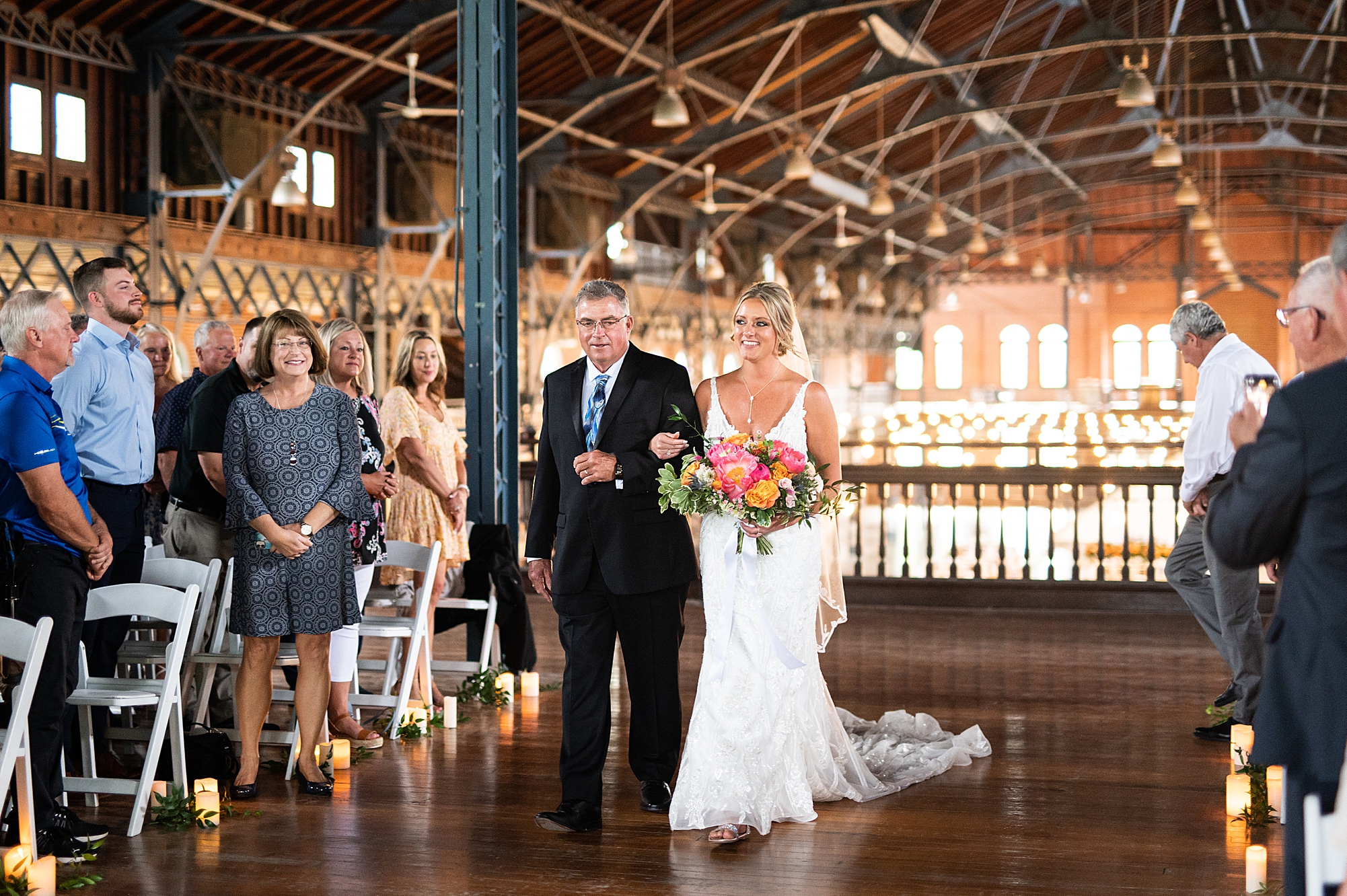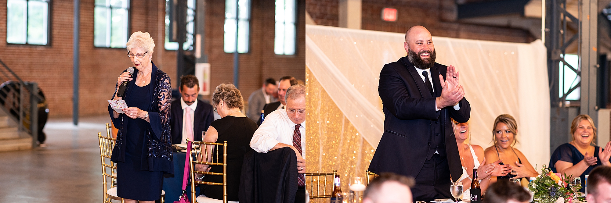 After the ceremony, their guests headed to a gorgeous cocktail hour while we were finally able to take the bridal party outside for some quick portrait time! Travis is not one for a ton of photos, but he did a great job making Ashton laugh and I really enjoyed capturing some “just married” photos of them! Afterwards, we headed back to their reception full of gorgeous navy sparkle, candlelight and colorful florals. It was a beautiful celebration of love for Ashton and Travis who met on Tinder, dated long distance and fell hard for each other. I loved capturing the entire day for them and could not be happier for Mr. and Mrs. Combs!