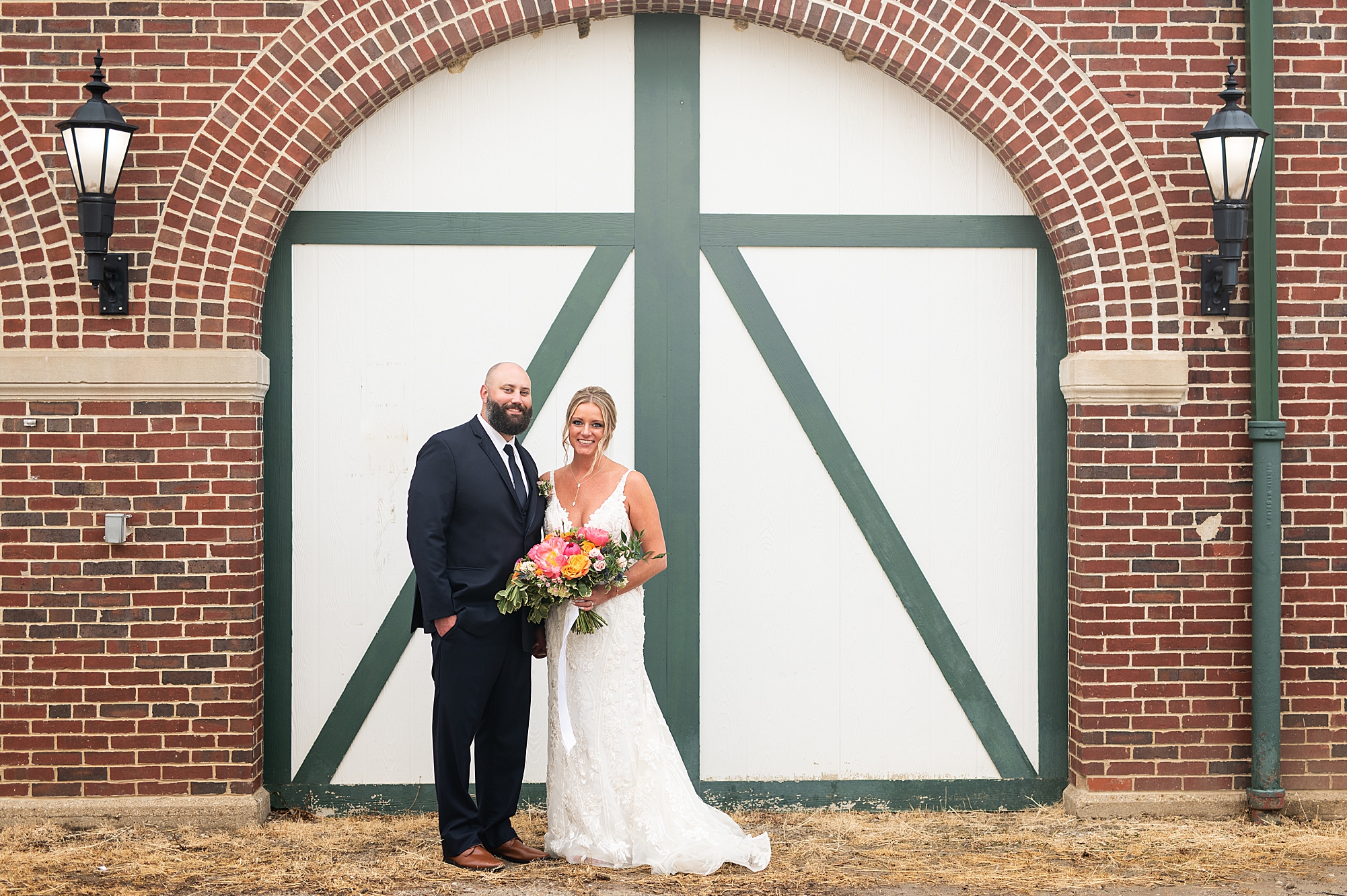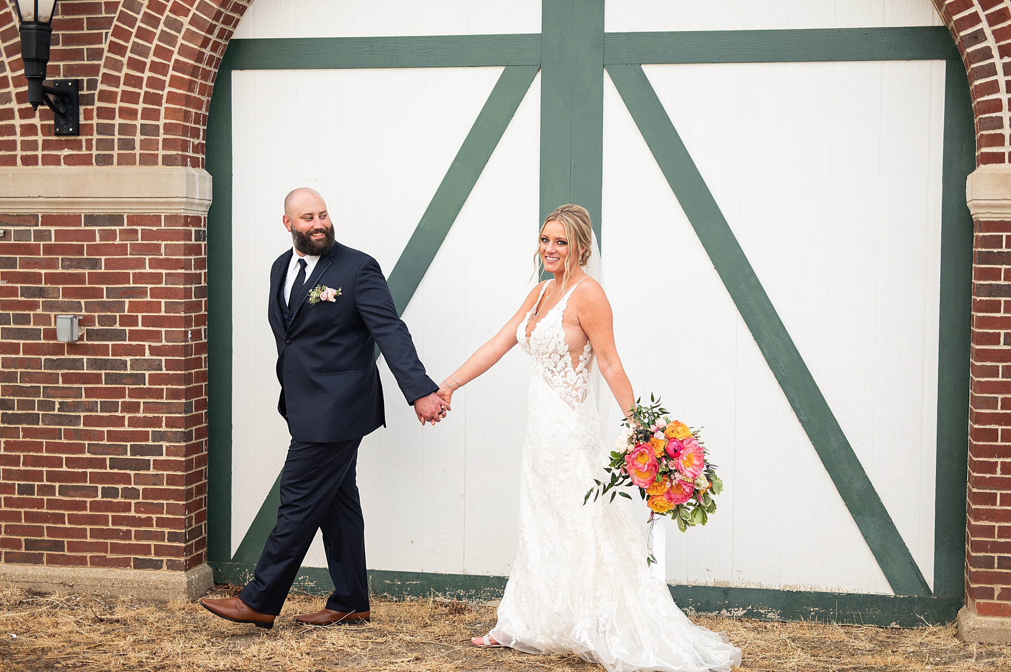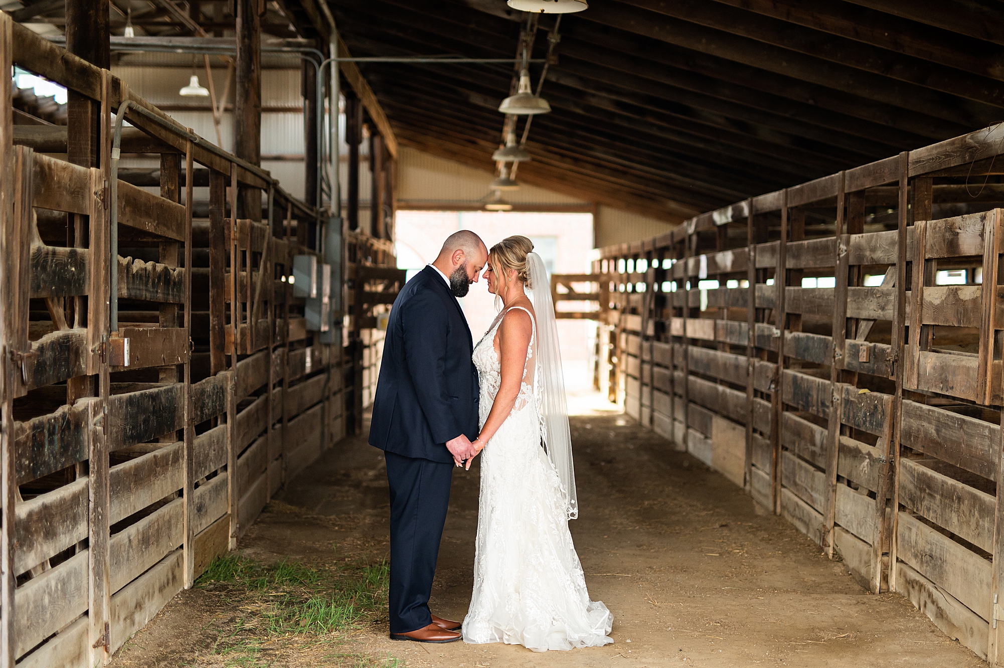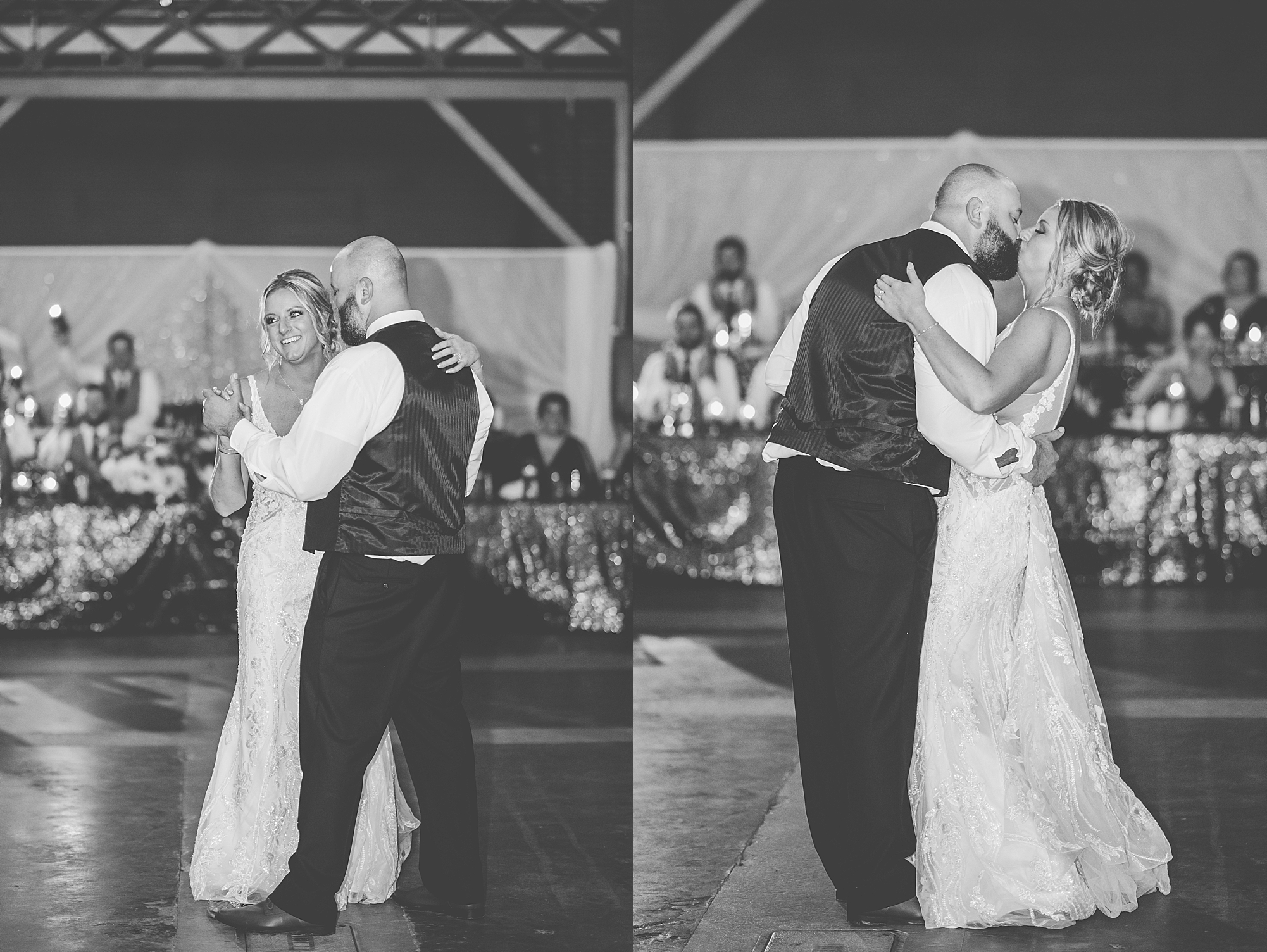 Ashton and Travis’s wedding day was the perfect mix of country and glam! The Expo Building at the fairgrounds created the perfect backdrop for these two lovebirds as they tied the knot in front of all of their friends and family. Ashton was absolutely stunning in her lace gown with just the perfect amount of sparkle. Once she finished getting ready with all of her girls, she got to share a first look with a very excited Travis! We had to race through some quick portraits at the park because a summer storm was rolling in, but then we headed back for more portraits before the ceremony. Luckily, the rain cleared out right before Ashton and Travis’s ceremony and the sun even came out as Ashton’s childhood pastor officially married them. They shared a first kiss as husband and wife and smiled so big walking back down the aisle together!