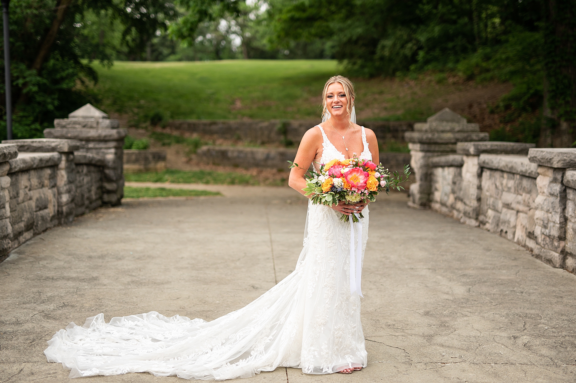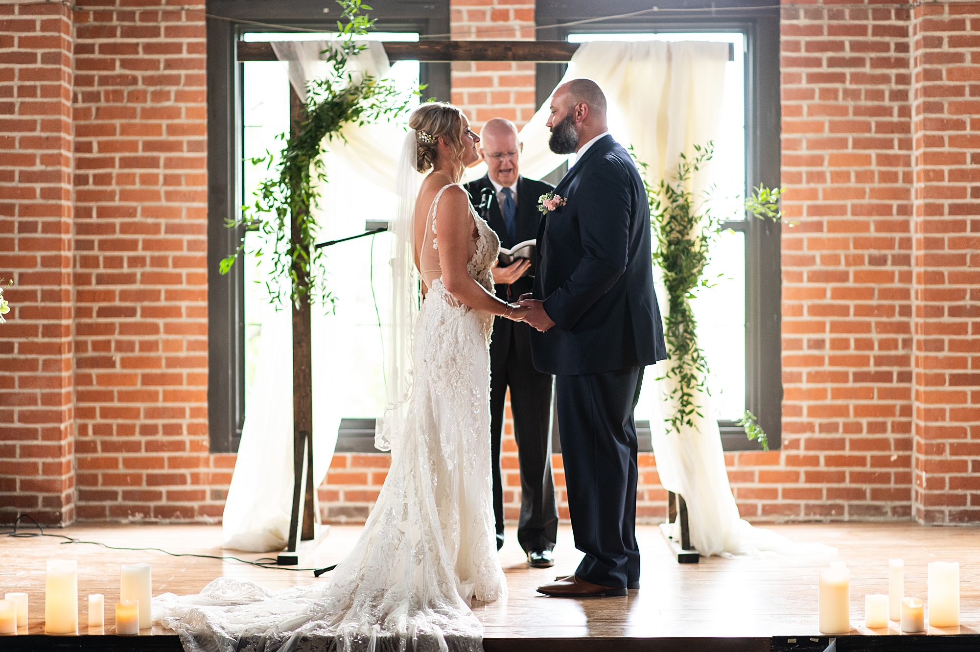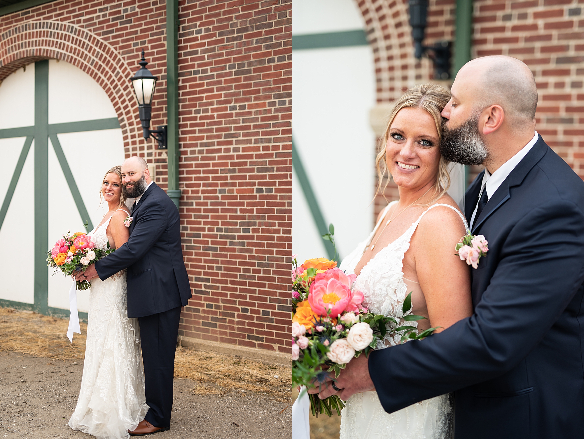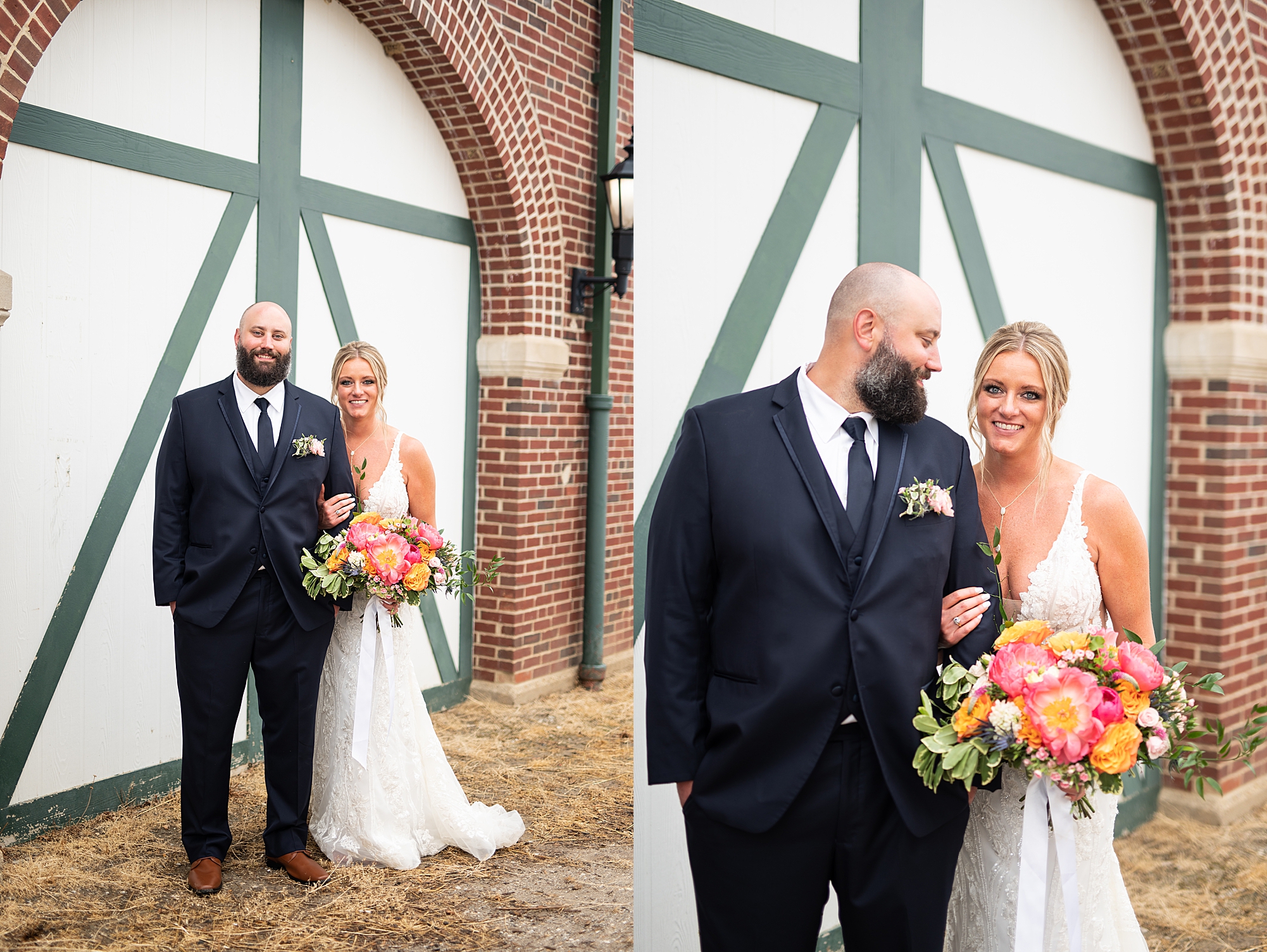 Ashton and Travis’s wedding day was the perfect mix of country and glam! The Expo Building at the fairgrounds created the perfect backdrop for these two lovebirds as they tied the knot in front of all of their friends and family. Ashton was absolutely stunning in her lace gown with just the perfect amount of sparkle. Once she finished getting ready with all of her girls, she got to share a first look with a very excited Travis! We had to race through some quick portraits at the park because a summer storm was rolling in, but then we headed back for more portraits before the ceremony. Luckily, the rain cleared out right before Ashton and Travis’s ceremony and the sun even came out as Ashton’s childhood pastor officially married them. They shared a first kiss as husband and wife and smiled so big walking back down the aisle together!
