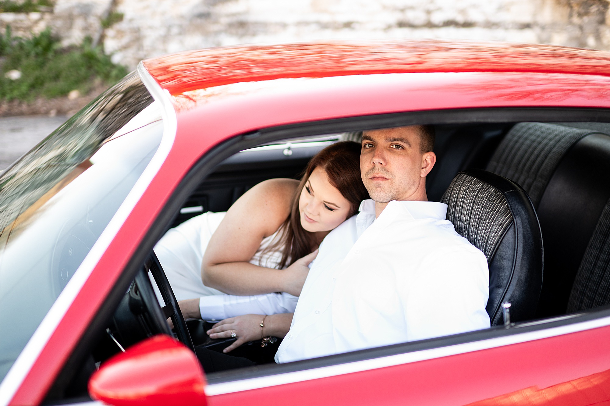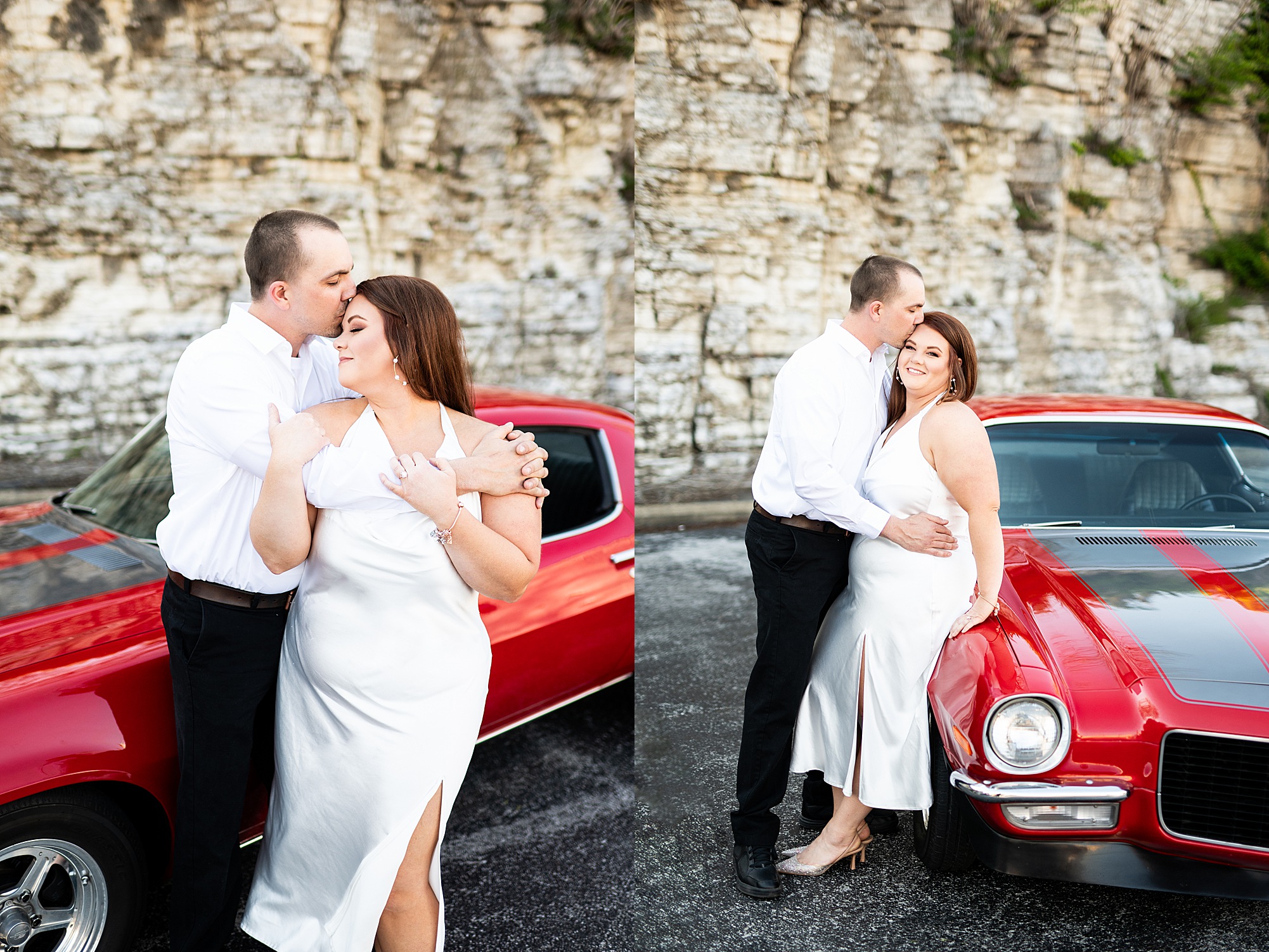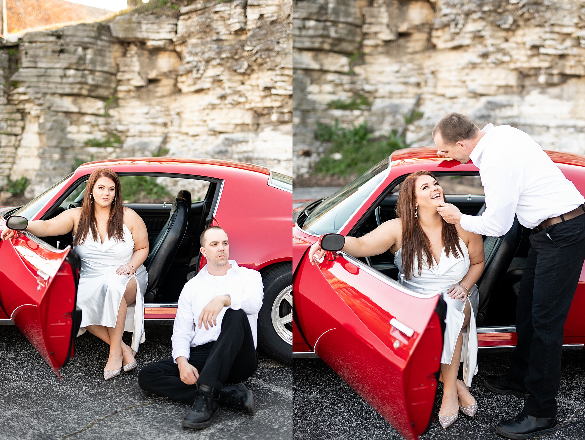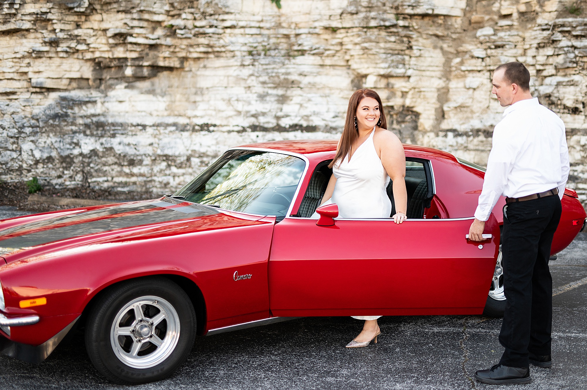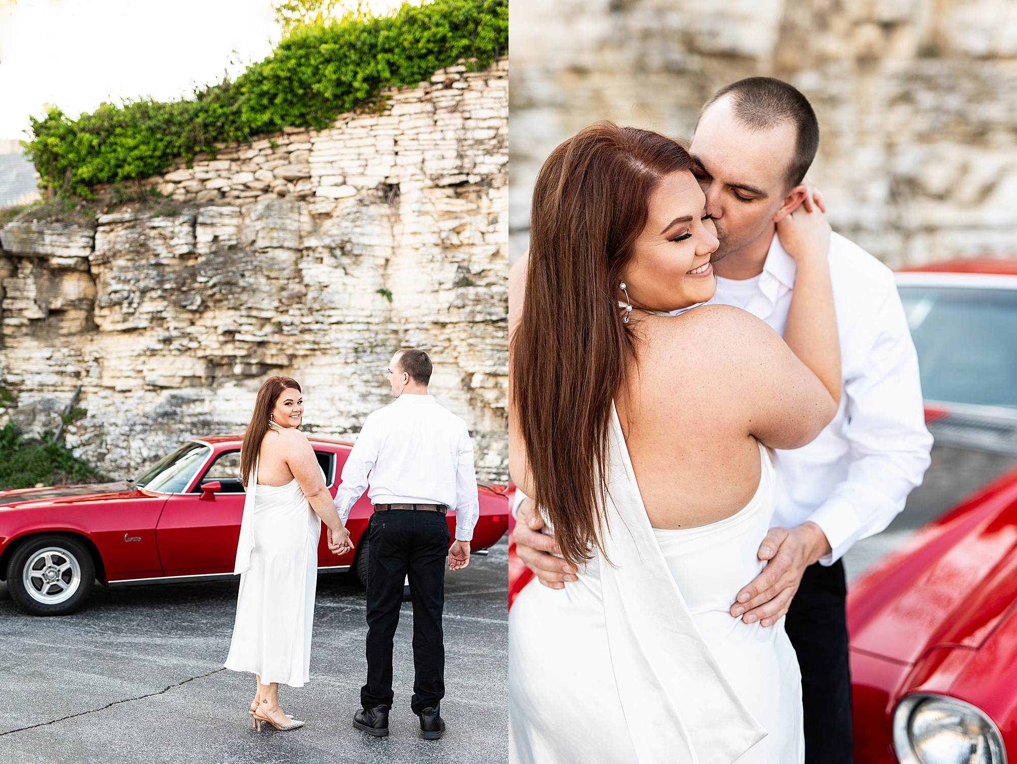 Bri and Dustin’s engagement session was an absolute blast! We started in Alton and captured them enjoying one of their favorite big purchases as a couple, their 1971 Camaro. Then we headed to their beautiful family property outside of town to capture them enjoying a sunset with their adorable pup, Zues! These two are just so excited to get married and I could not be happier for them!