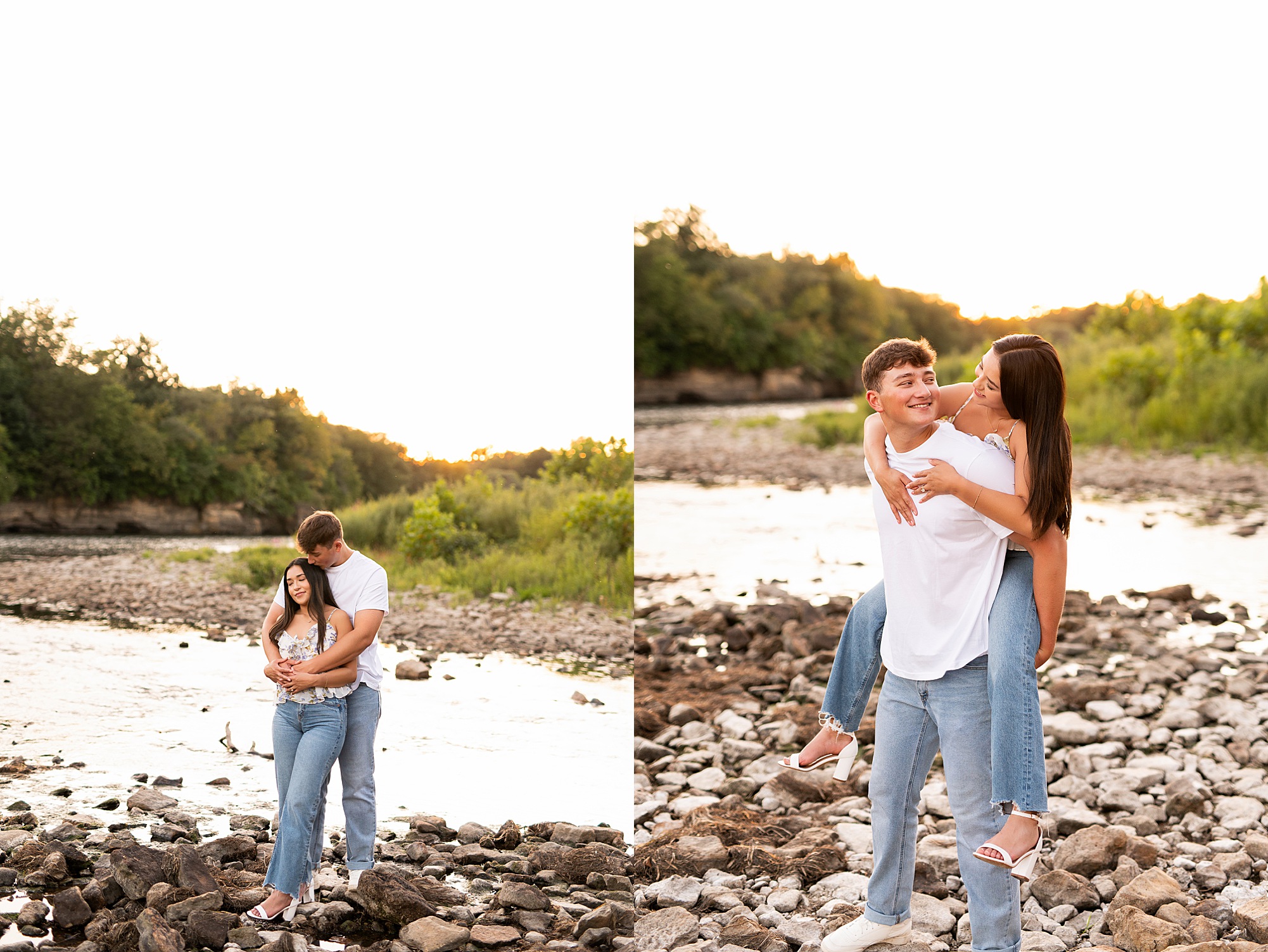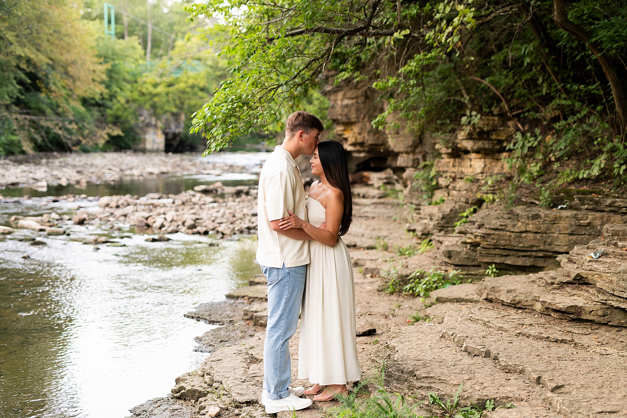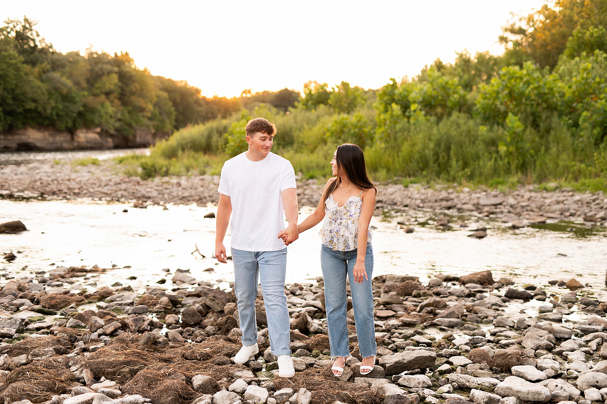 Bri and Eric’s summer engagement session was such a dream! We explored the beautiful Kankakee River State Park, climbed across the rocks for those gorgeous views, and even caught the tail end of the wildflowers. These two were so sweet together — Eric was such a gentleman with Bri the whole time! Their love story goes all the way back to middle school, and now here they are planning forever. What an honor to capture this season for them!
