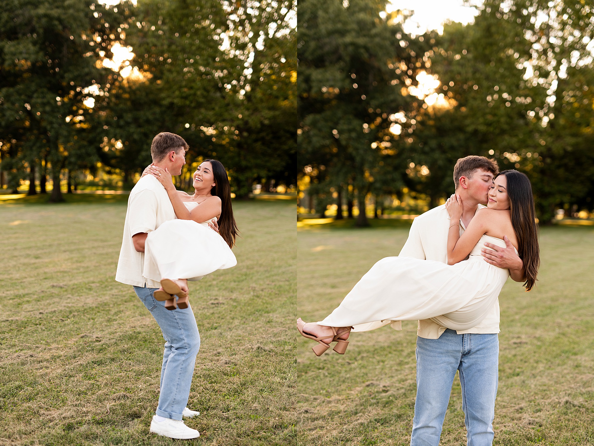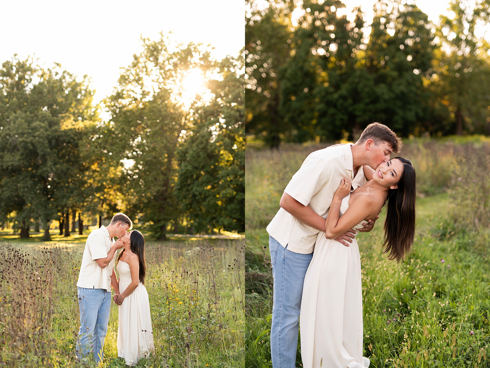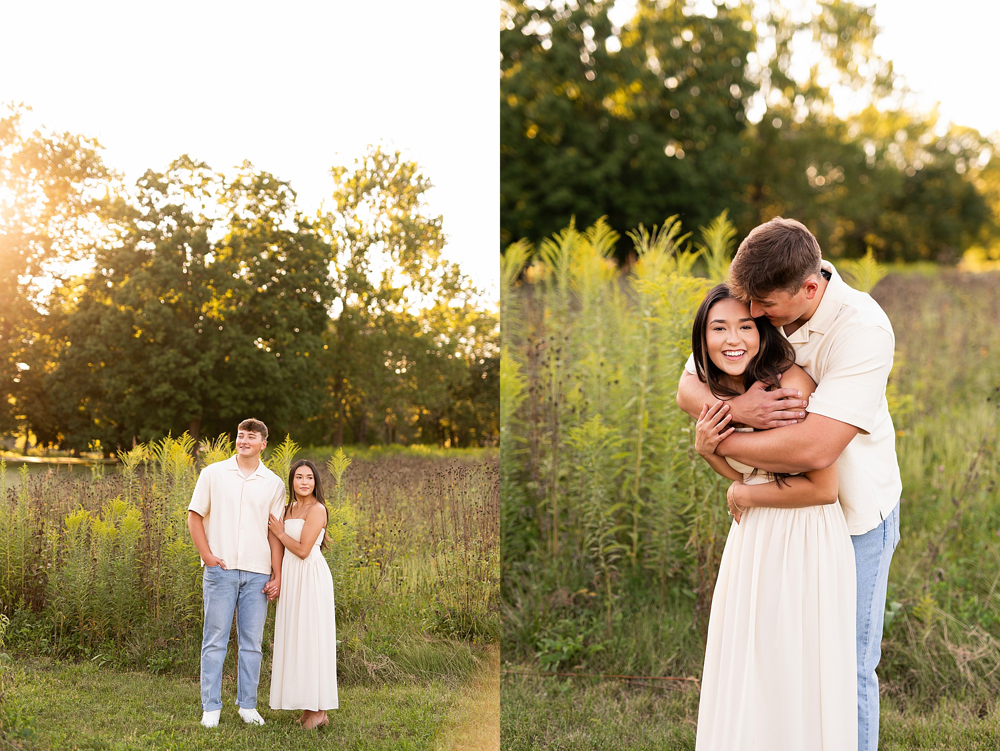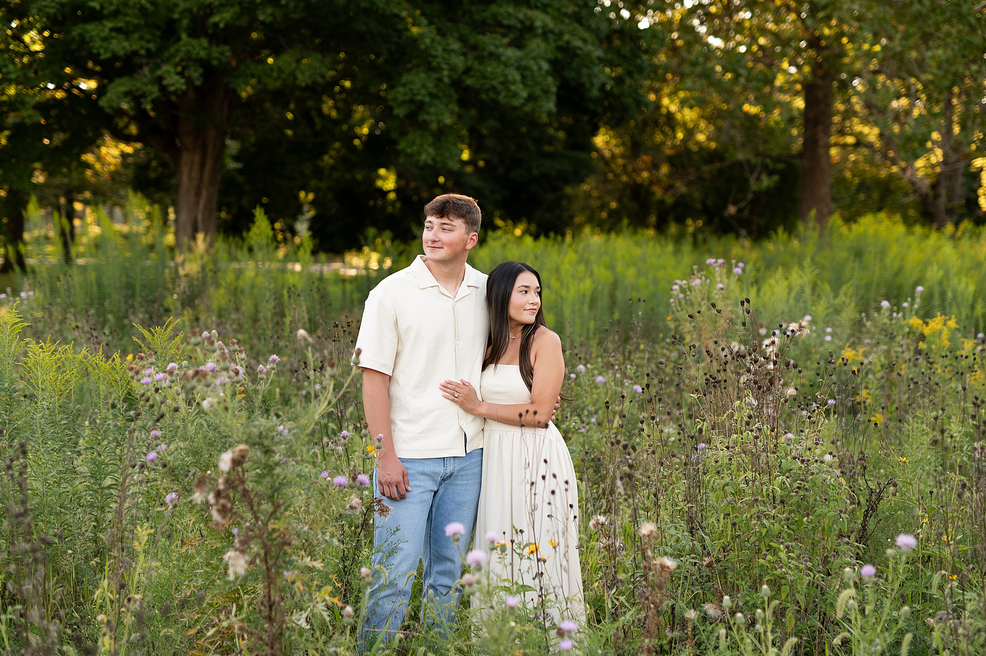 Bri and Eric’s summer engagement session was such a dream! We explored the beautiful Kankakee River State Park, climbed across the rocks for those gorgeous views, and even caught the tail end of the wildflowers. These two were so sweet together — Eric was such a gentleman with Bri the whole time! Their love story goes all the way back to middle school, and now here they are planning forever. What an honor to capture this season for them!