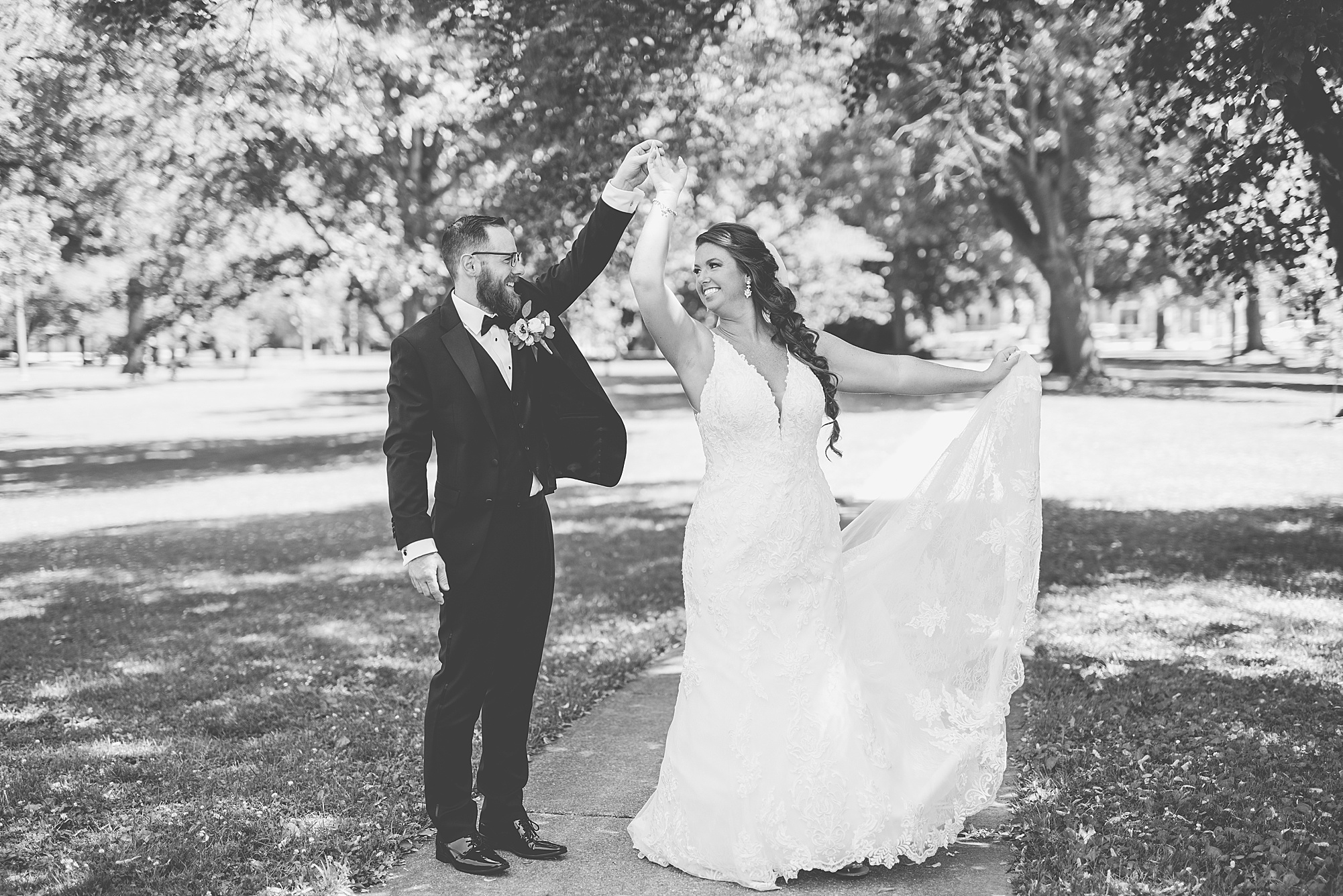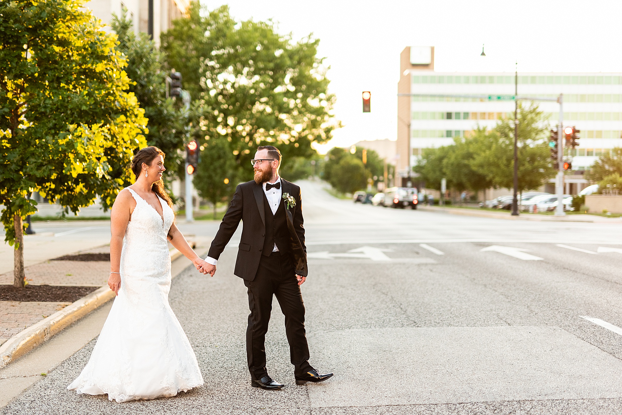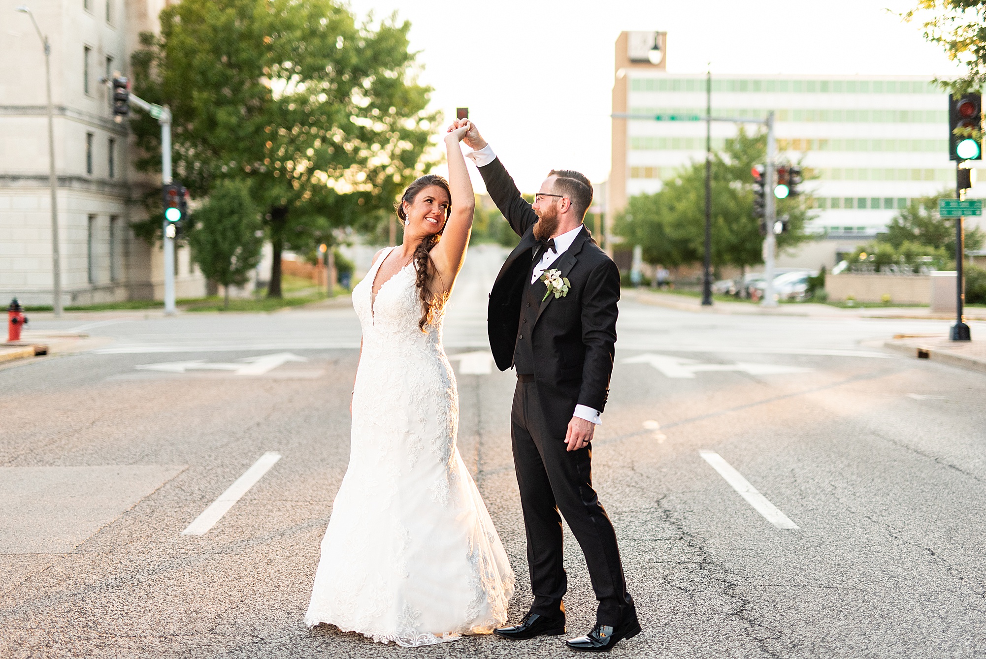 After cocktail hour, Caitlin and Seth shared an adorable first dance, indulged in a delicious horseshoe bar and celebrated the night with their family and friends. Before the evening ended, we took Caitlin and Seth back outside and captured them at golden hour right in downtown Springfield. It was the perfect end to their gorgeous day and I absolutely loved capturing them! I am so excited to share more of these two and could not be happier for them!