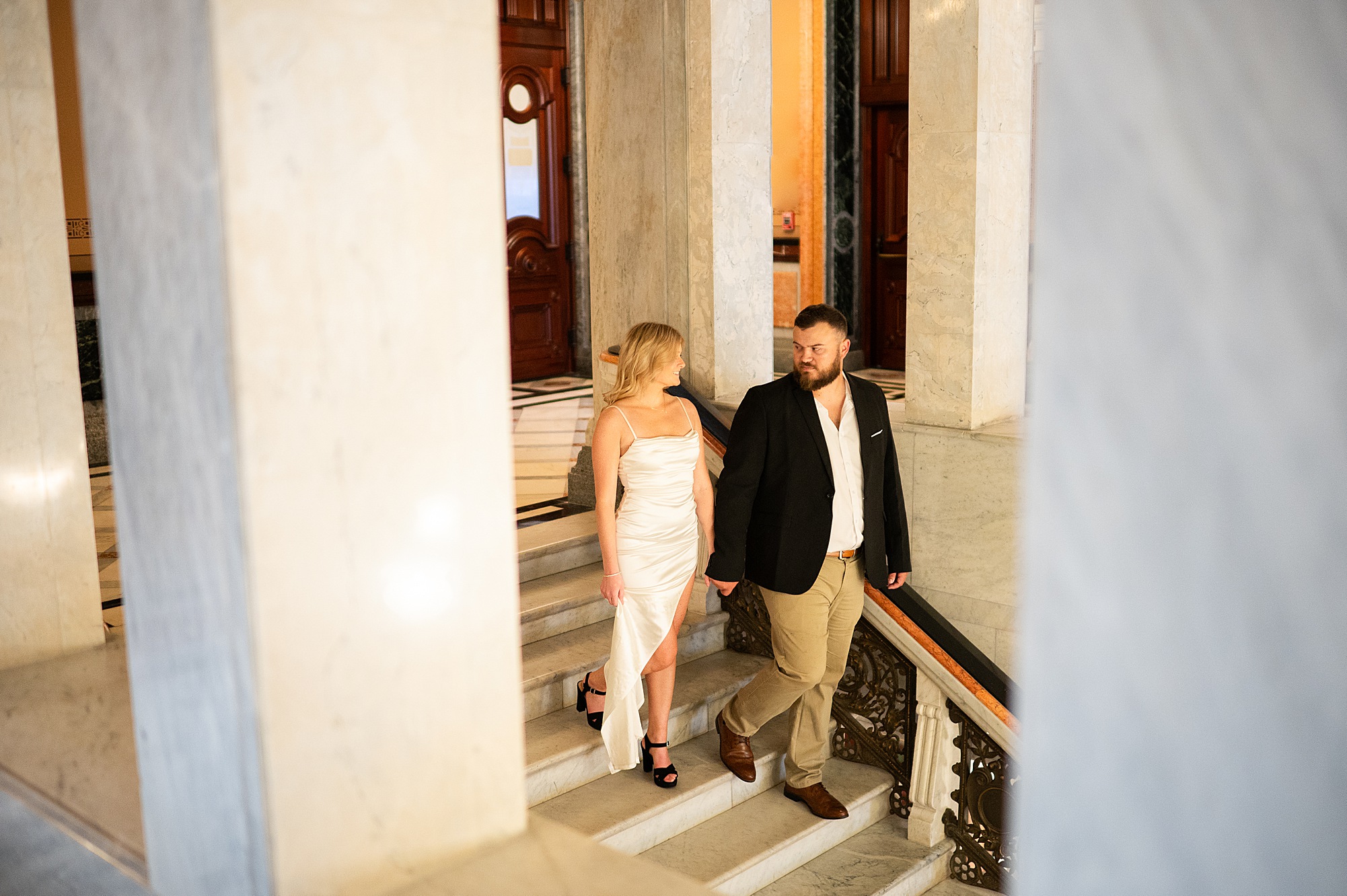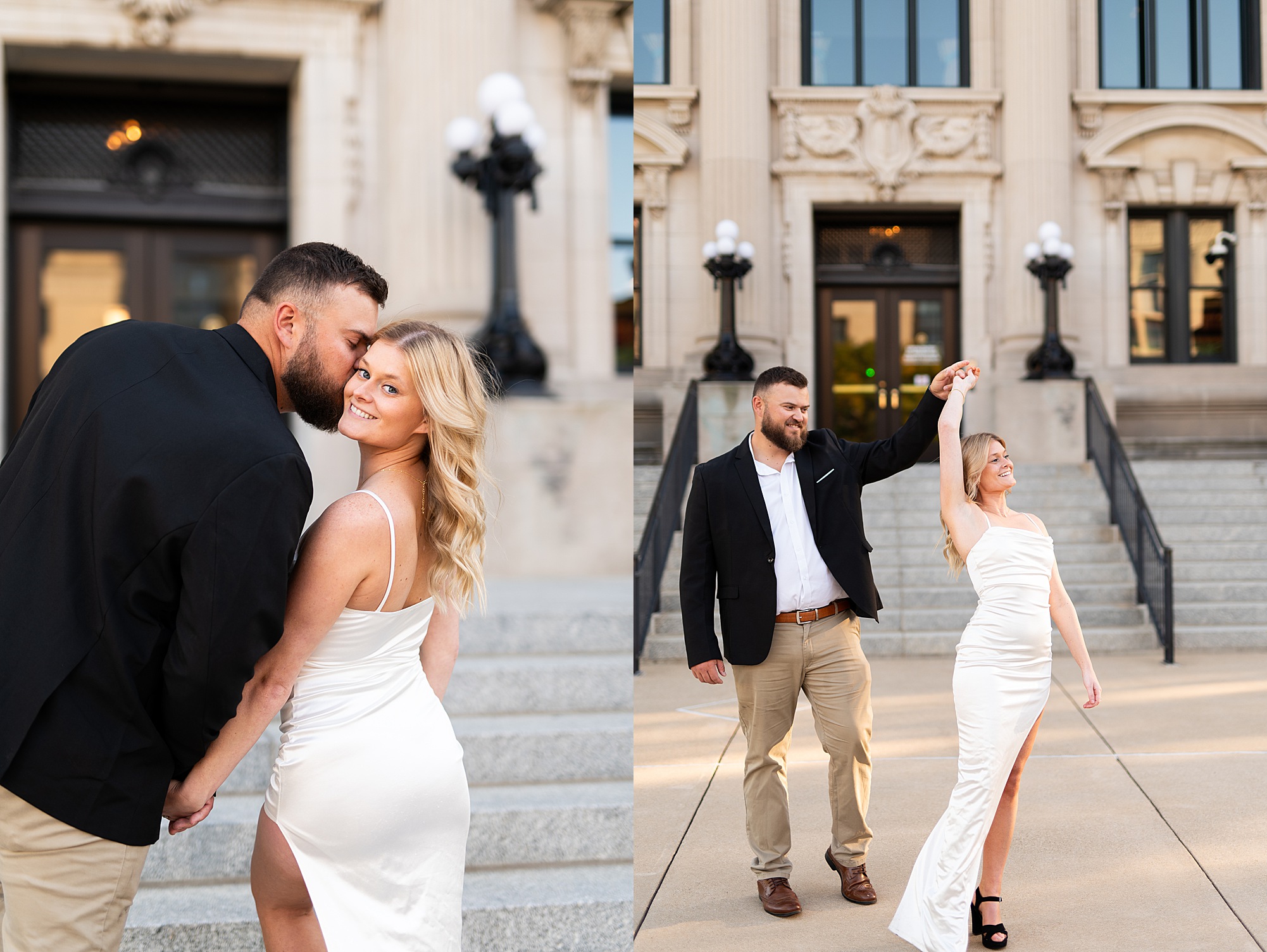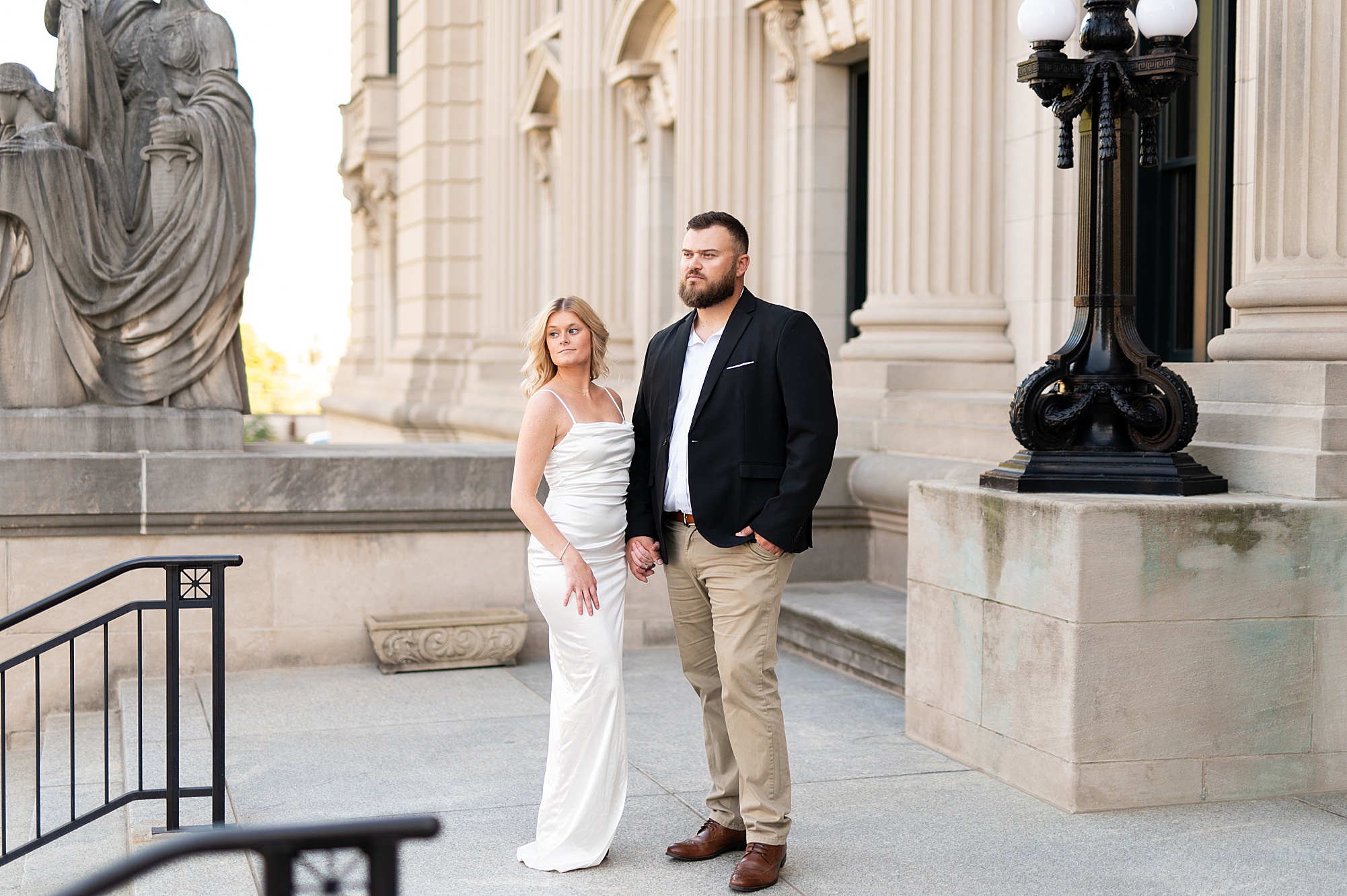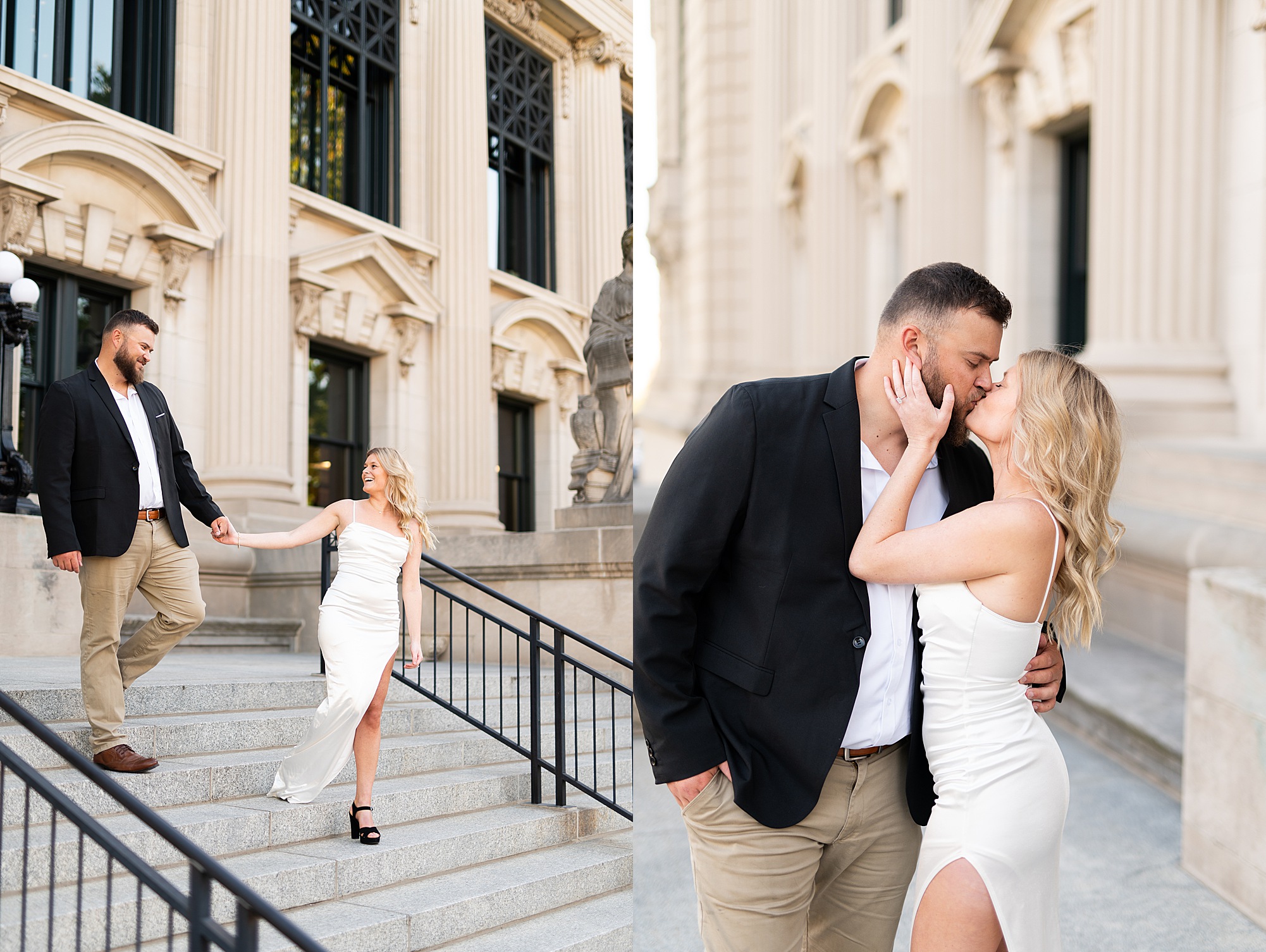 Cassidy and Alex were such a fun couple to meet! They wanted a classic, black and white vibe for their engagement photos and we got just that! We included some gorgeous architecture in Springfield and then caught a beautiful sunset at their second location! I cannot wait to hang out with them again at their wedding!