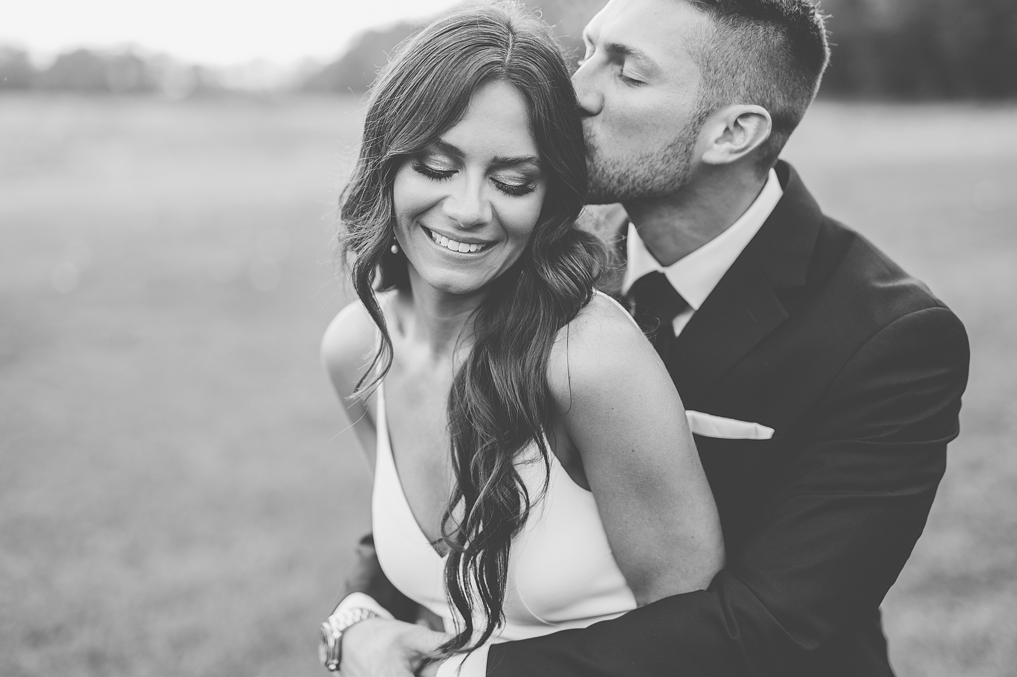 Courtney and Jarrod then welcomed their guests to a beautiful cocktail hour in the downstairs bar while the ceremony was breathtakingly transformed by Create-A-Scene. The reception space was filled with an abundance of flowers and candles, creating an intimate and romantic atmosphere. Just as the sun began to set, we ventured out to an open field for some enchanting photos. This was such a special time for Courtney and Jarrod to just take in a few quiet moments before their celebration began.