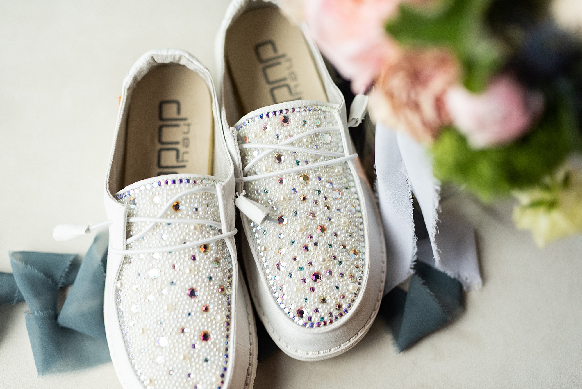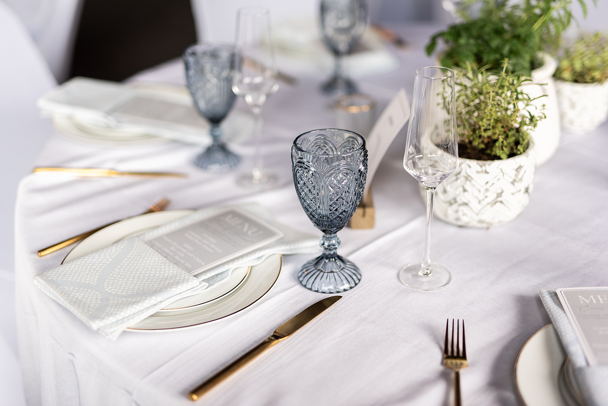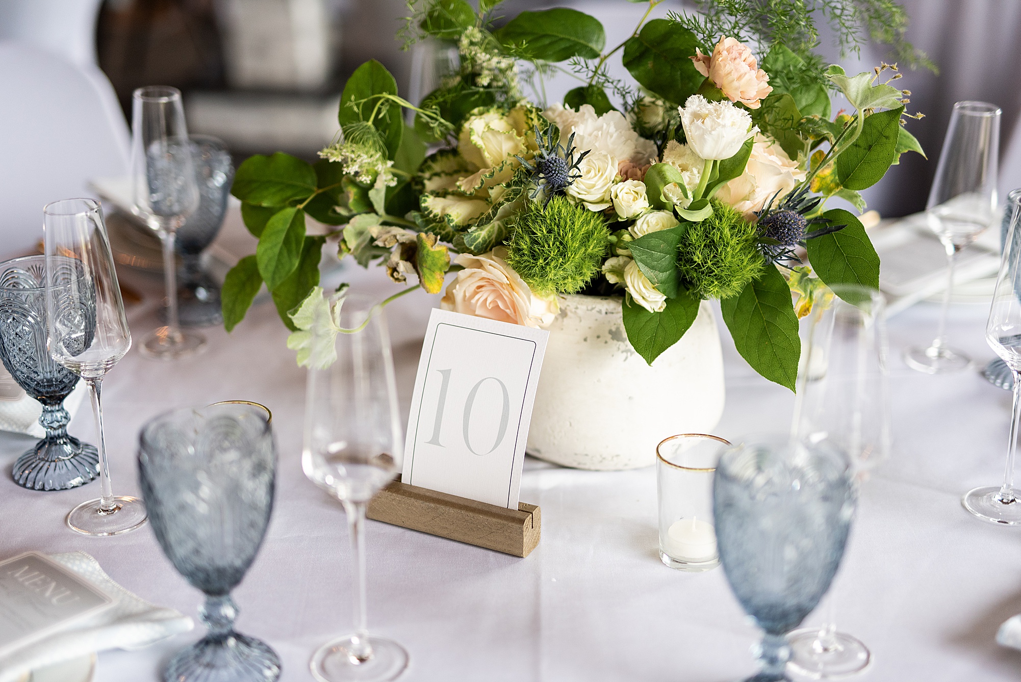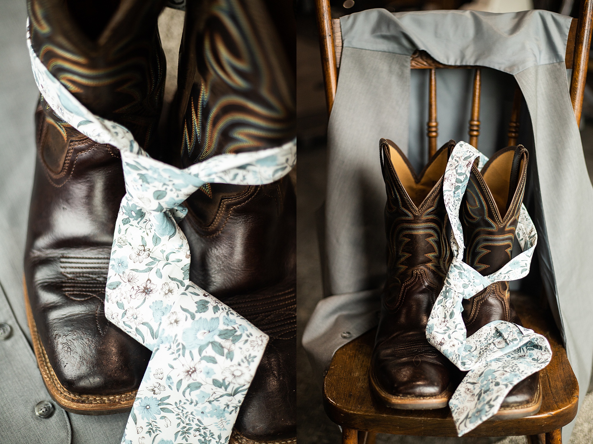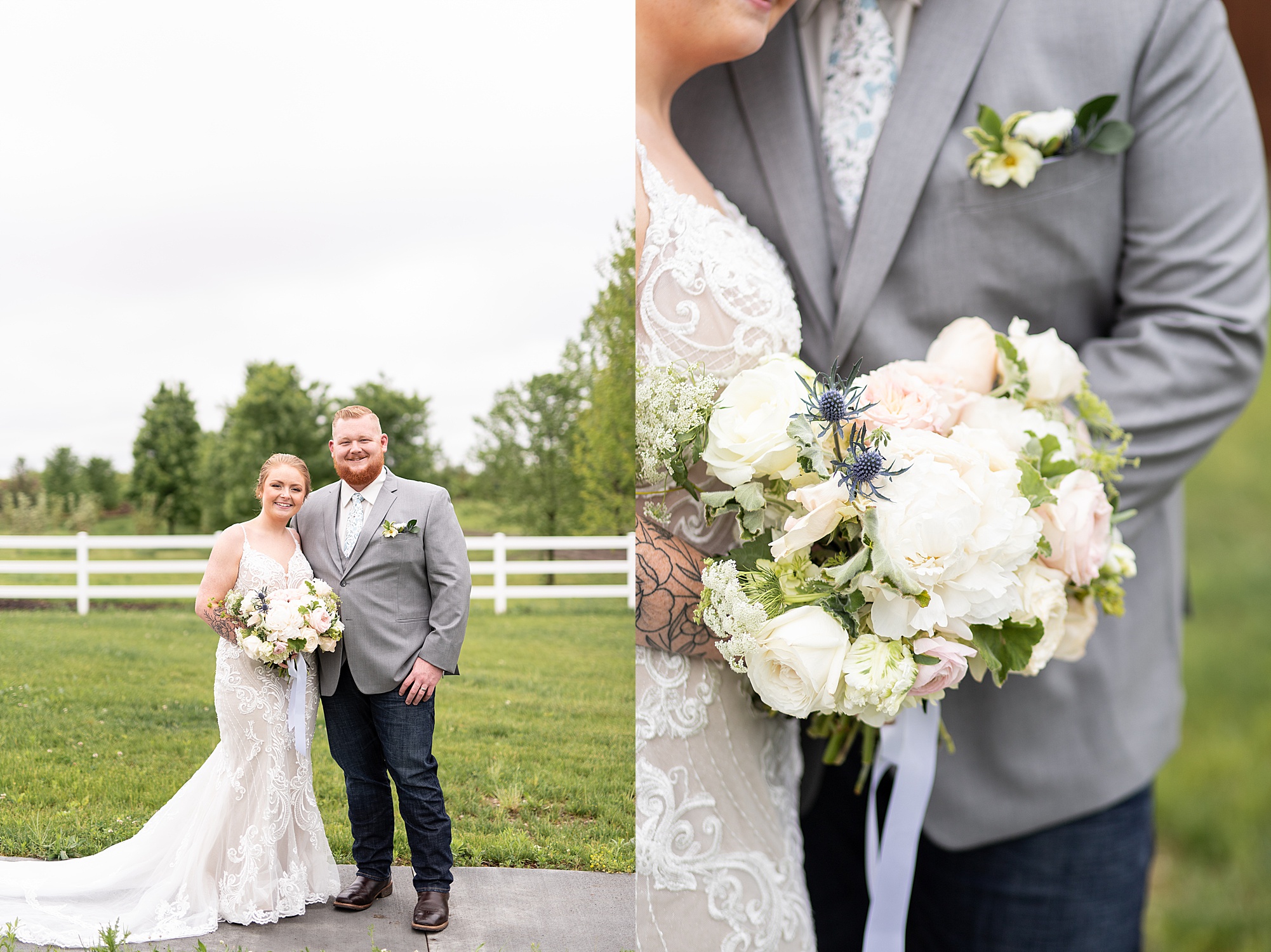 Luckily, as Emma was stepping into her dress and putting on all of her final details, the rain just magically let up and the sun even popped out a bit here and there. She got to share a first look with Forrest outdoors and they exchanged some beautiful, private vows before portrait time. Their bridal party truly brought the party and we had so much fun capturing them all together! Hannah with The Floral Plan really knocked Emma’s vision out of the park with beautiful blues and gorgeous florals to compliment everyone. I love the elegant yet laid back feel to perfectly match Emma and Forrest’s personalities.