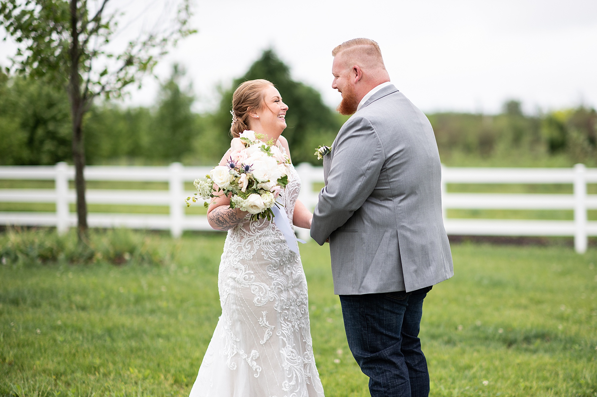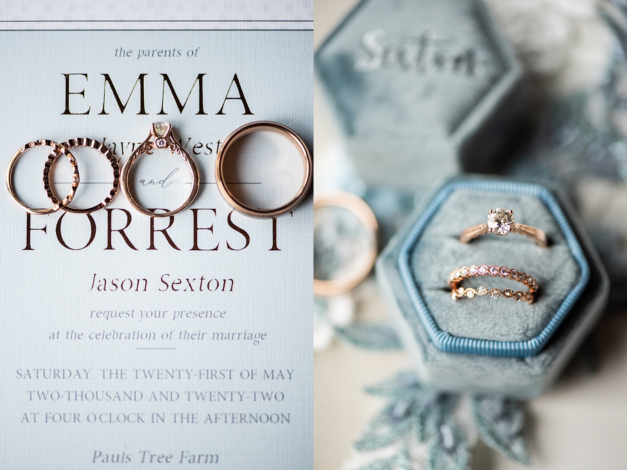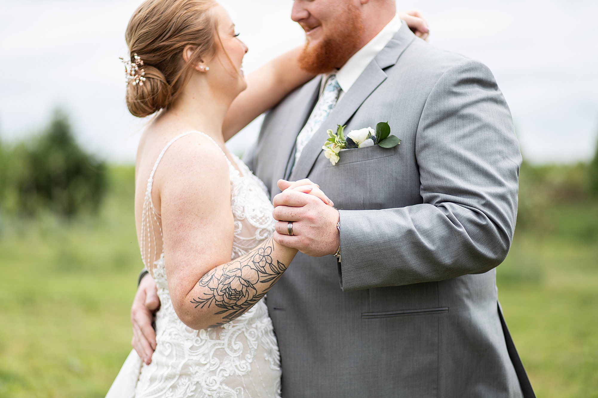 Emma and Forrest’s wedding day was one I will never forget! These two are the most down to Earth couple who were both just so excited to marry their best friend and celebrate with all of their loved ones. The morning of their wedding was rainy, and there was about a 90% chance of storms all day long, which was so scary considering we had a great plan to take all of their photos on the grounds of Paul Tree Farm. Emma was by far the calmest bride who just had so much faith in her vendor team and knew no matter what that she was going to have a fun day!