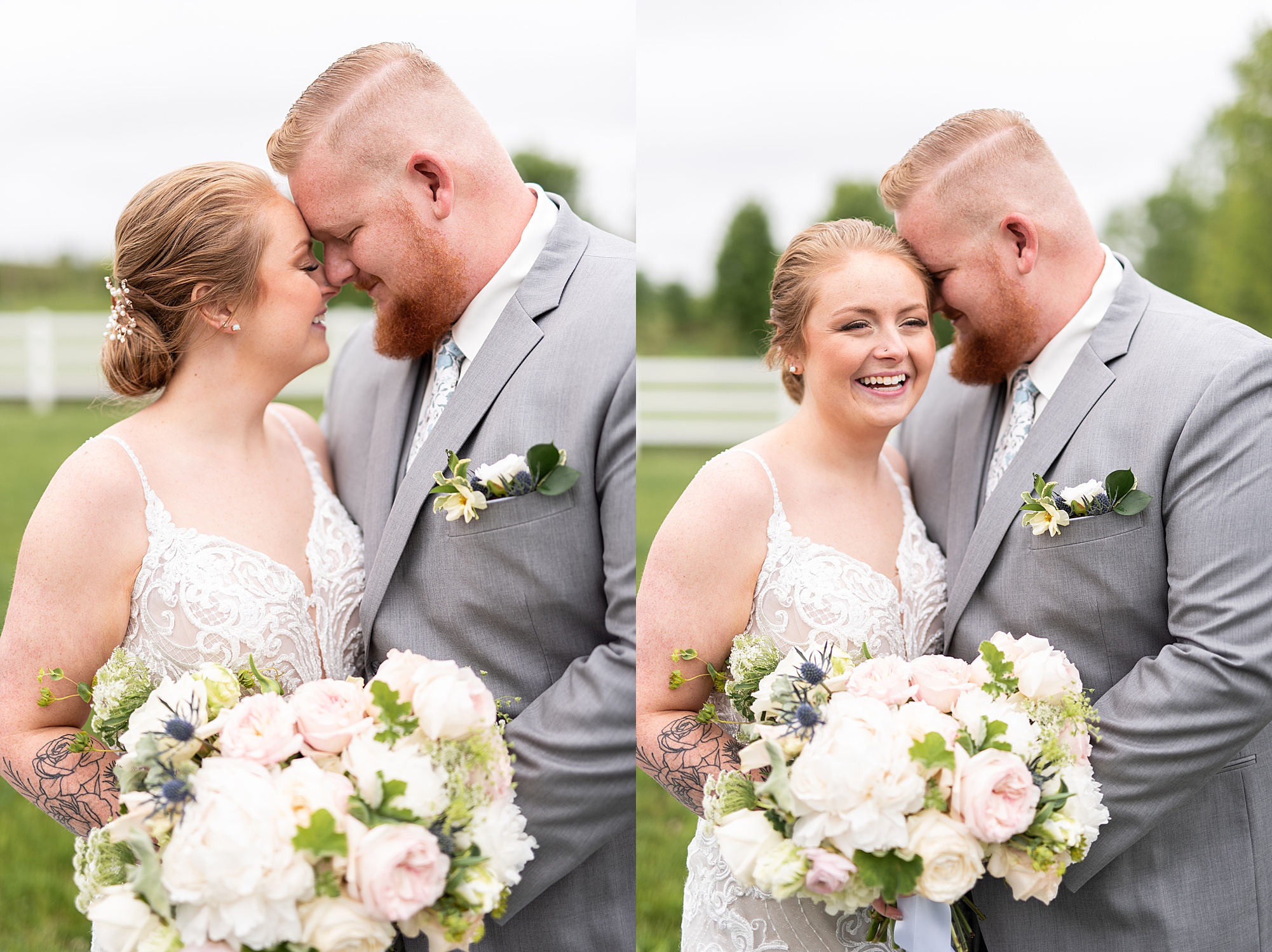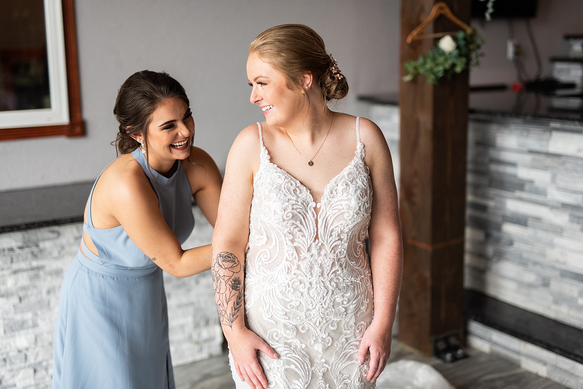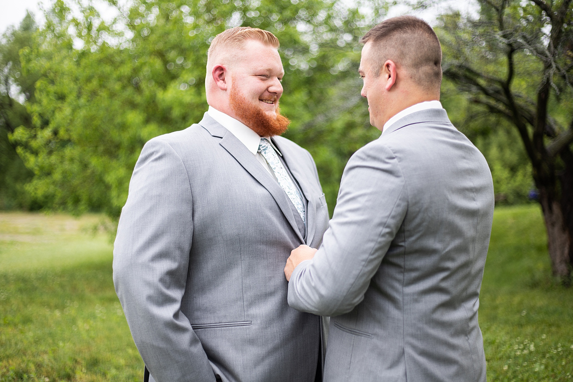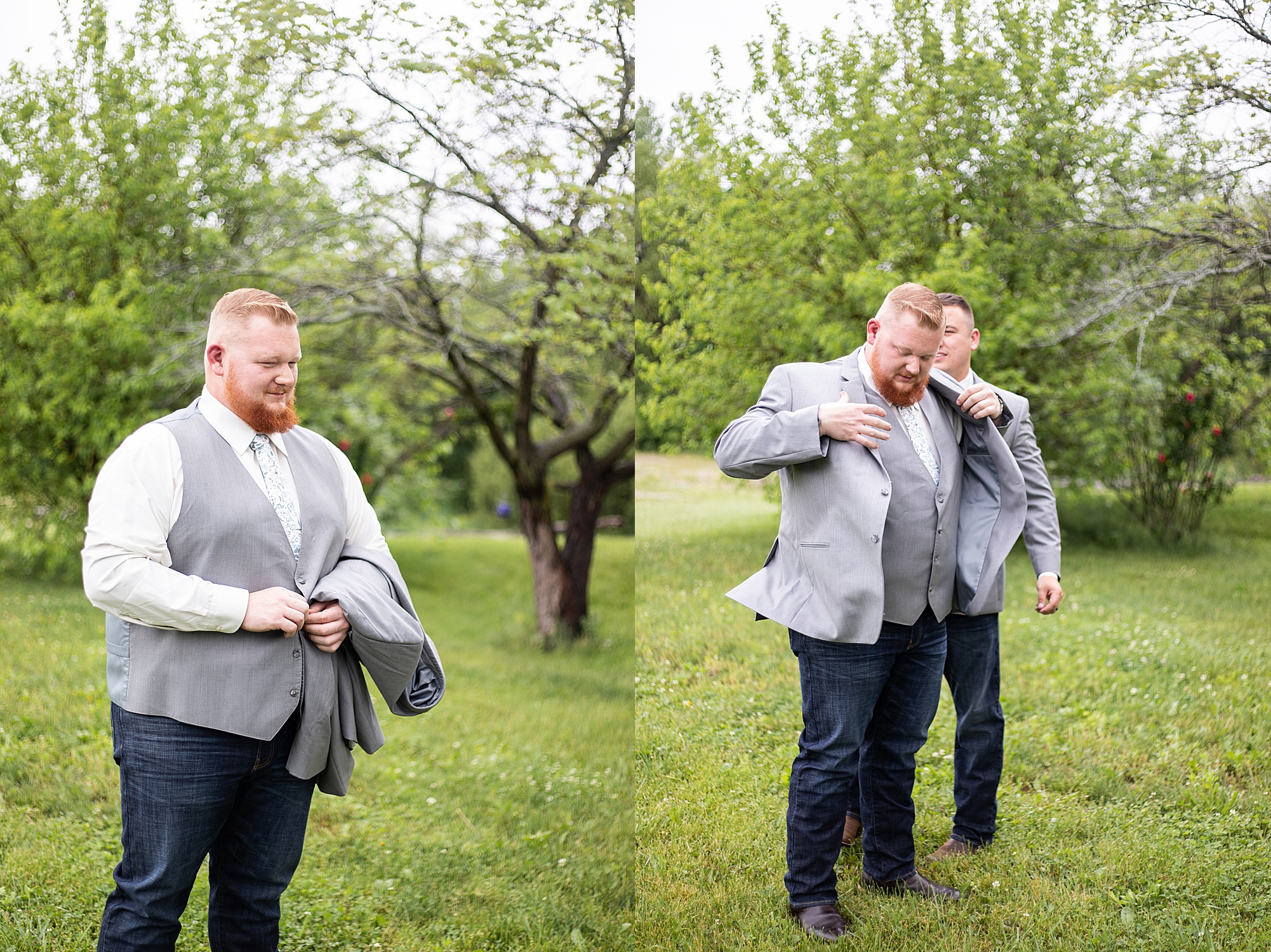 Emma and Forrest’s wedding day was one I will never forget! These two are the most down to Earth couple who were both just so excited to marry their best friend and celebrate with all of their loved ones. The morning of their wedding was rainy, and there was about a 90% chance of storms all day long, which was so scary considering we had a great plan to take all of their photos on the grounds of Paul Tree Farm. Emma was by far the calmest bride who just had so much faith in her vendor team and knew no matter what that she was going to have a fun day!