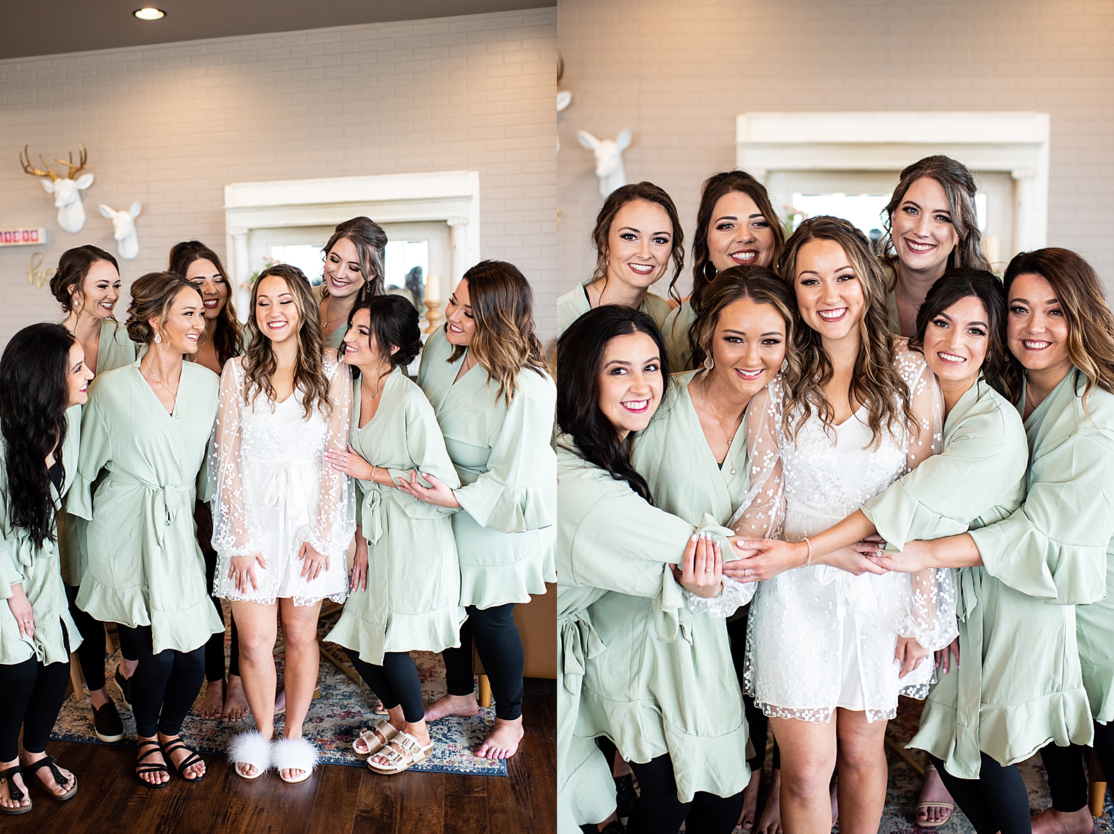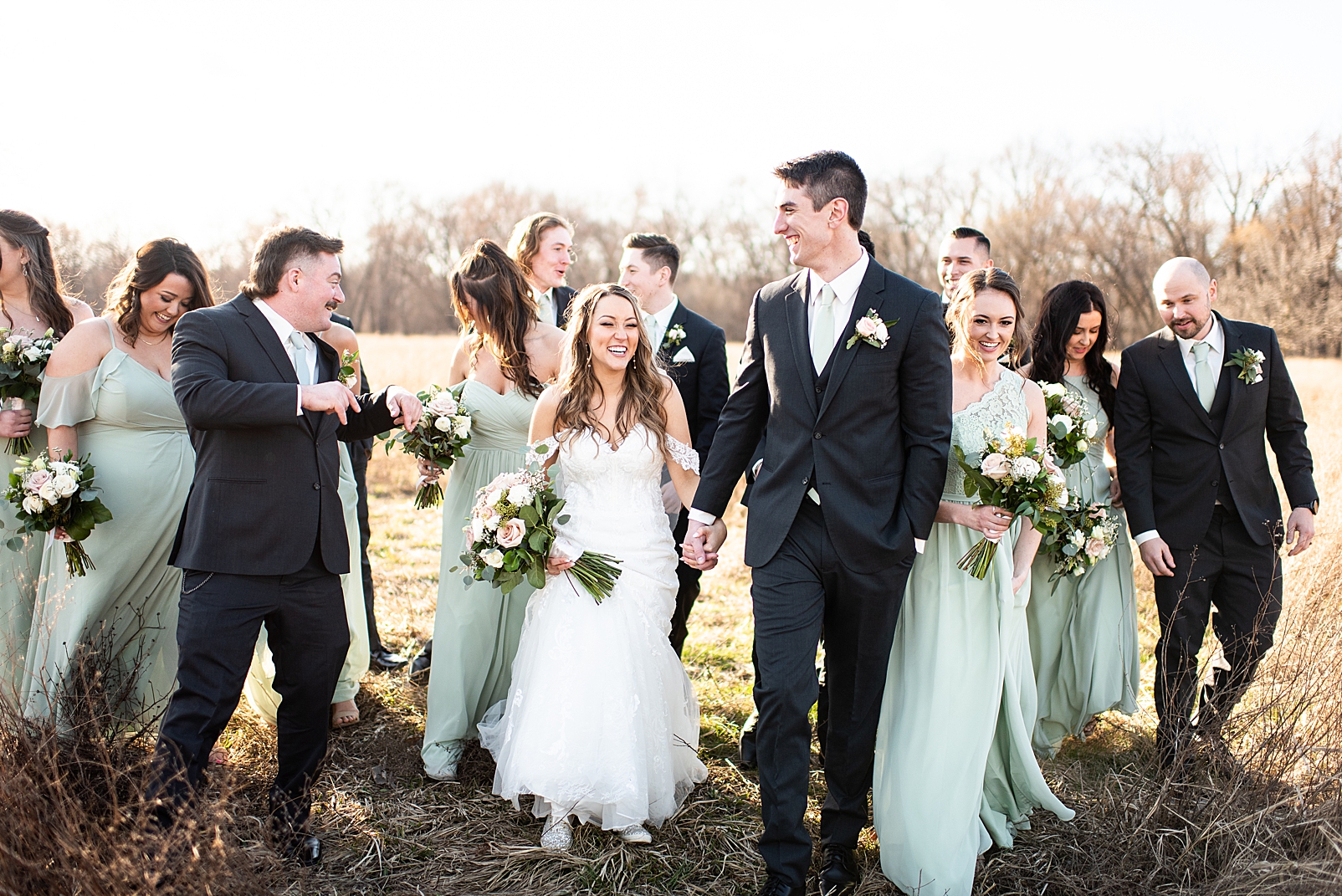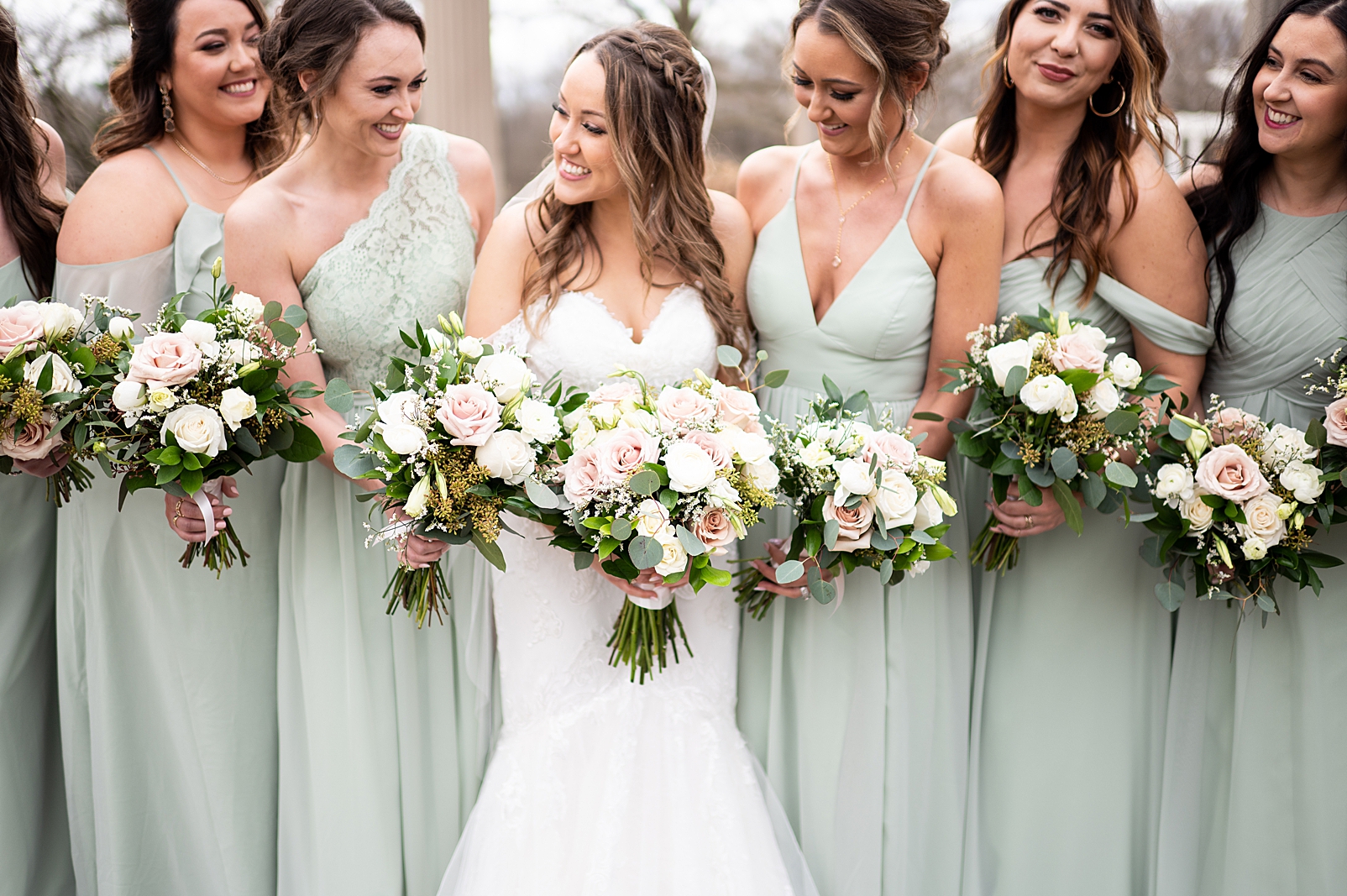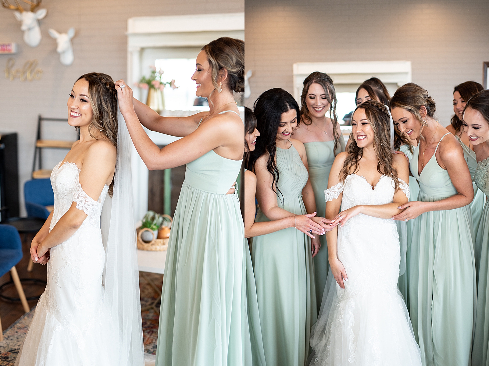Hannah was absolutely stunning in her off the shoulder lace gown as she walked towards Erik for their first look. They exchanged private vows with each other and maybe a few tears, but so many smiles. We got to capture them before their ceremony just relaxing and being with their super fun bridal party!