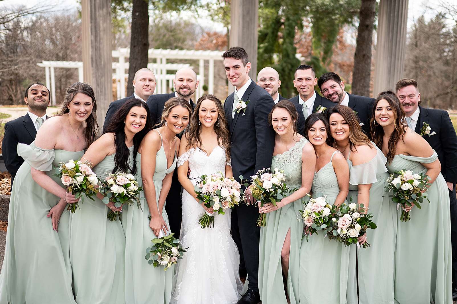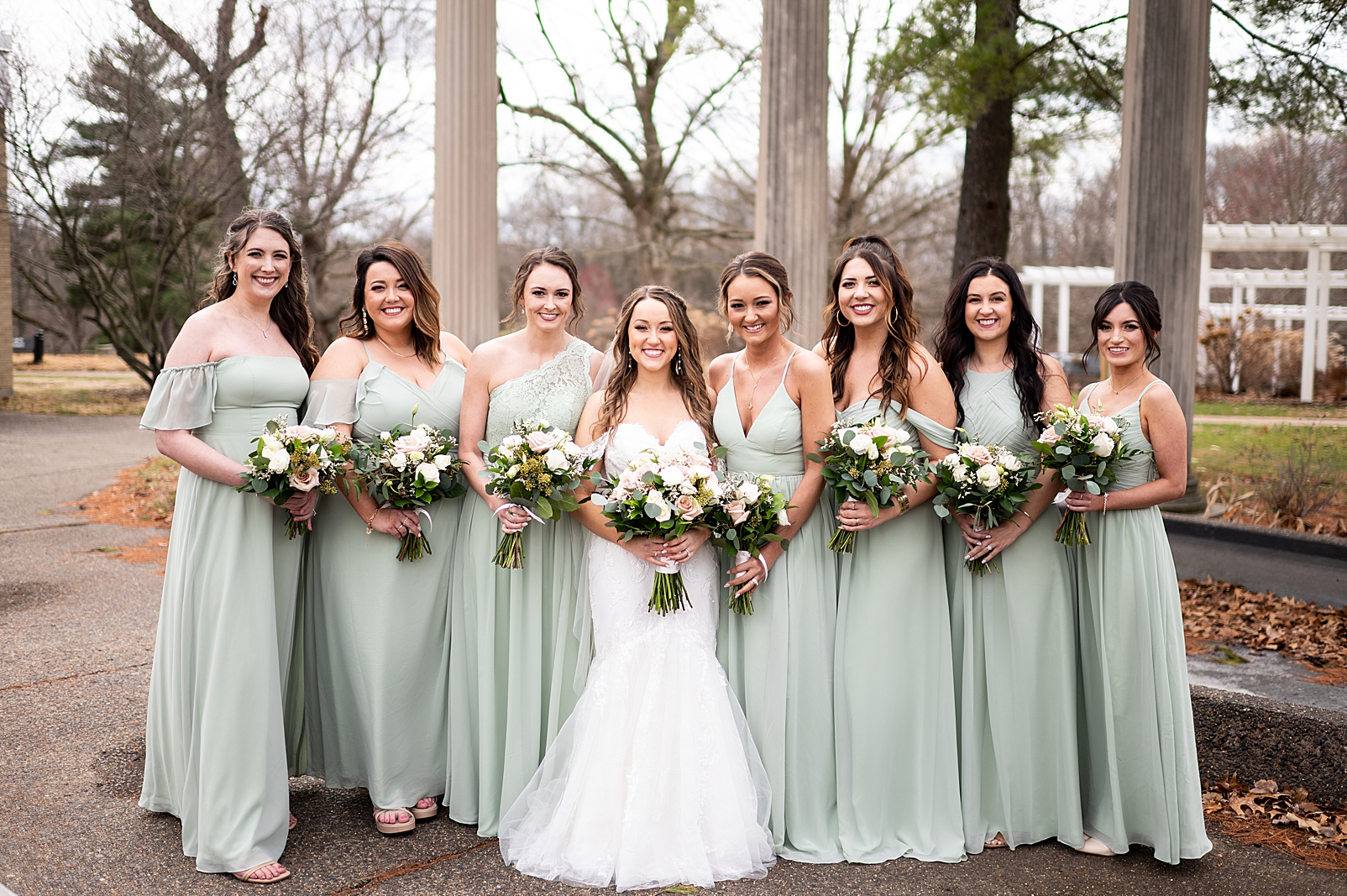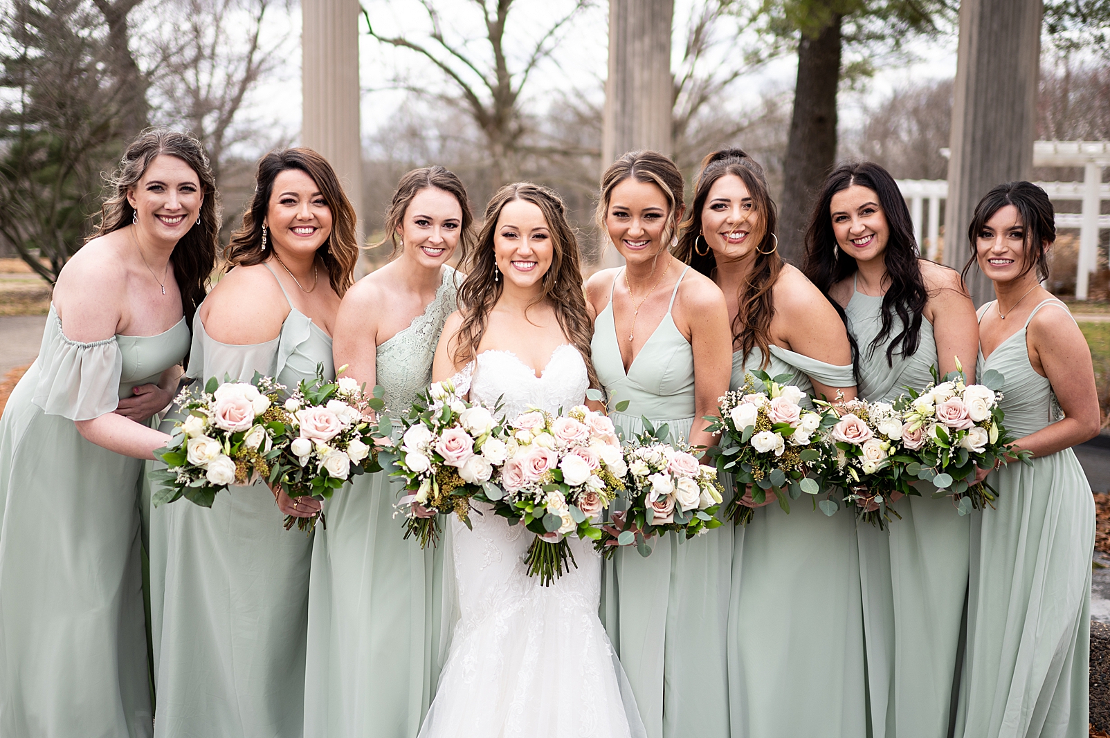 Hannah was absolutely stunning in her off the shoulder lace gown as she walked towards Erik for their first look. They exchanged private vows with each other and maybe a few tears, but so many smiles. We got to capture them before their ceremony just relaxing and being with their super fun bridal party!