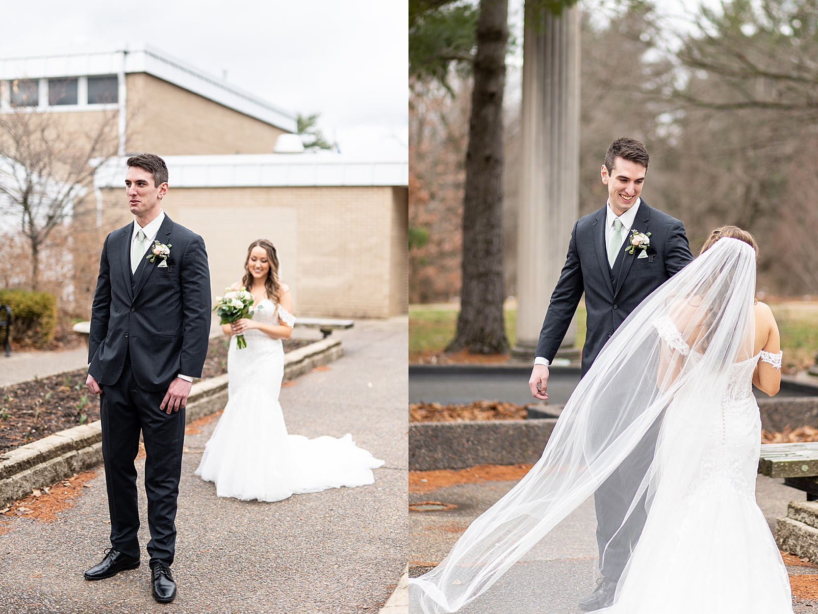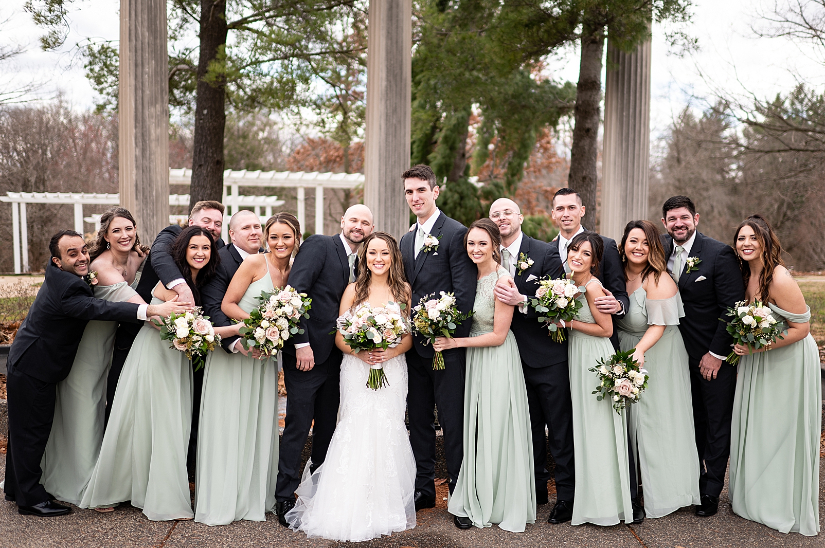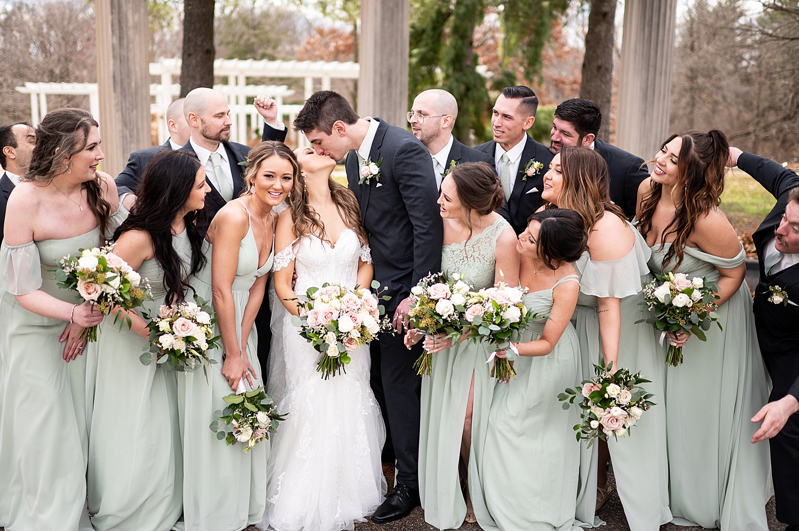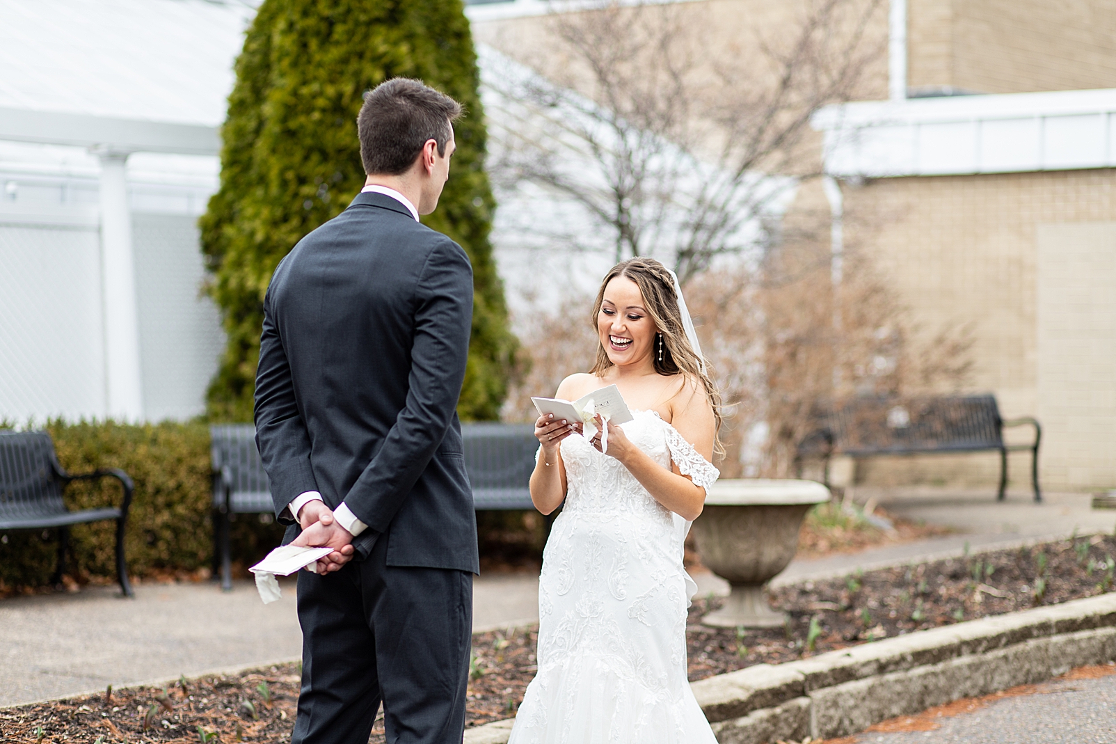 Hannah was absolutely stunning in her off the shoulder lace gown as she walked towards Erik for their first look. They exchanged private vows with each other and maybe a few tears, but so many smiles. We got to capture them before their ceremony just relaxing and being with their super fun bridal party!