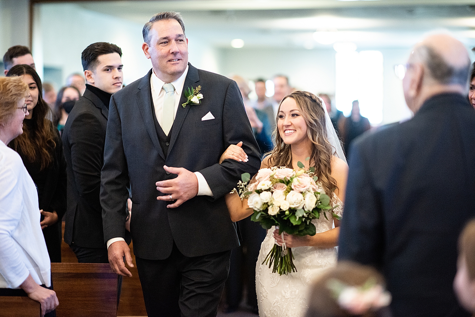Hannah and Erik were both pretty nervous for the ceremony. Hannah’s sweet dad took her hand and walked his daughter down the aisle so proudly. I could tell the moment Hannah and Erik were standing together on the alter, all their nerves melted away and they just enjoyed the moment surrounded by all of their family and friends. They finally got to exchange rings, and share their first kiss as husband and wife! I loved capturing their huge smiling faces as they danced back down the aisle!