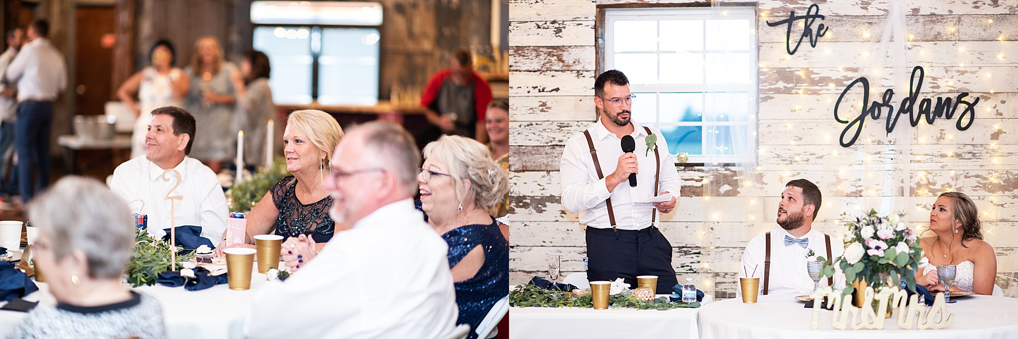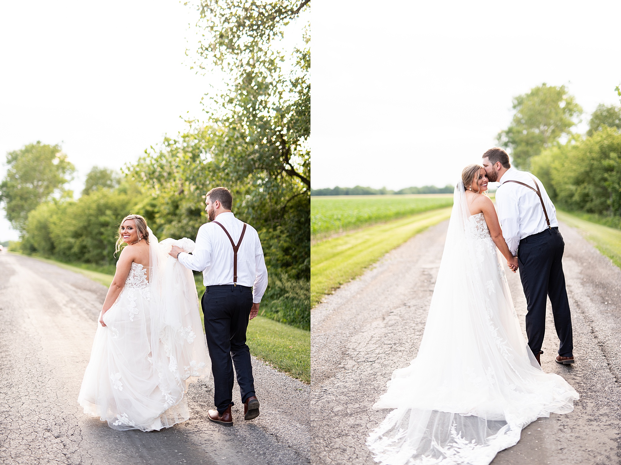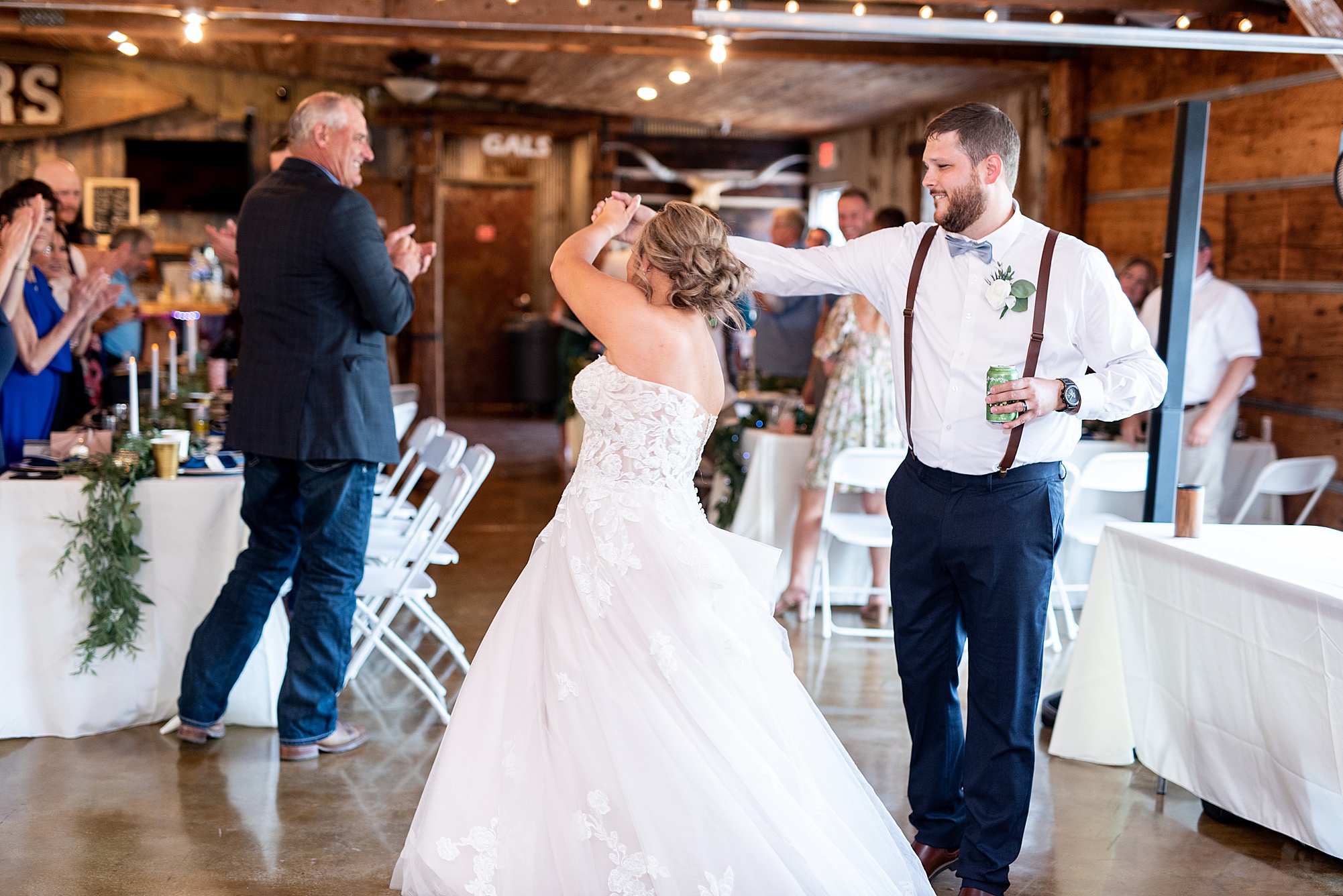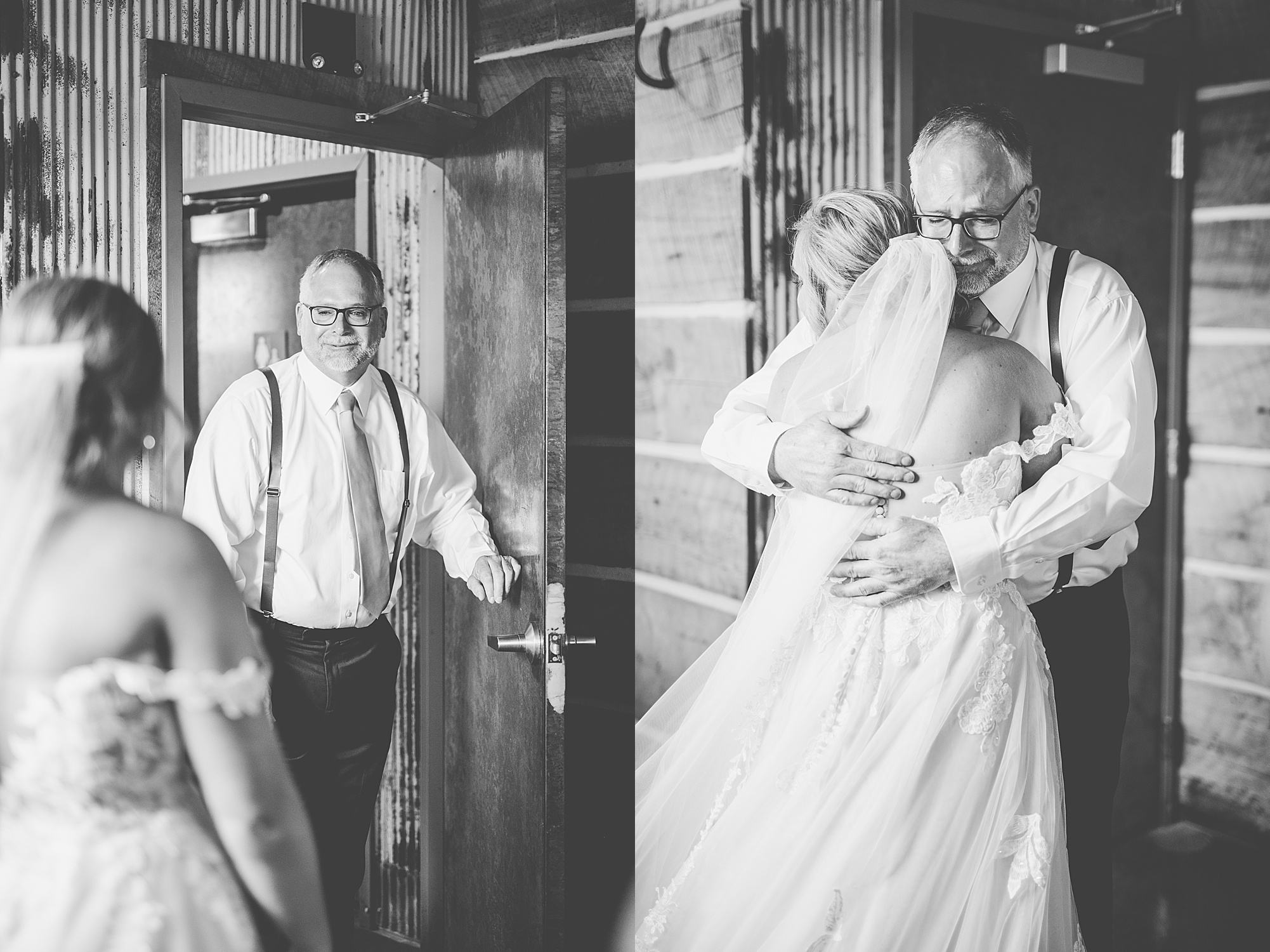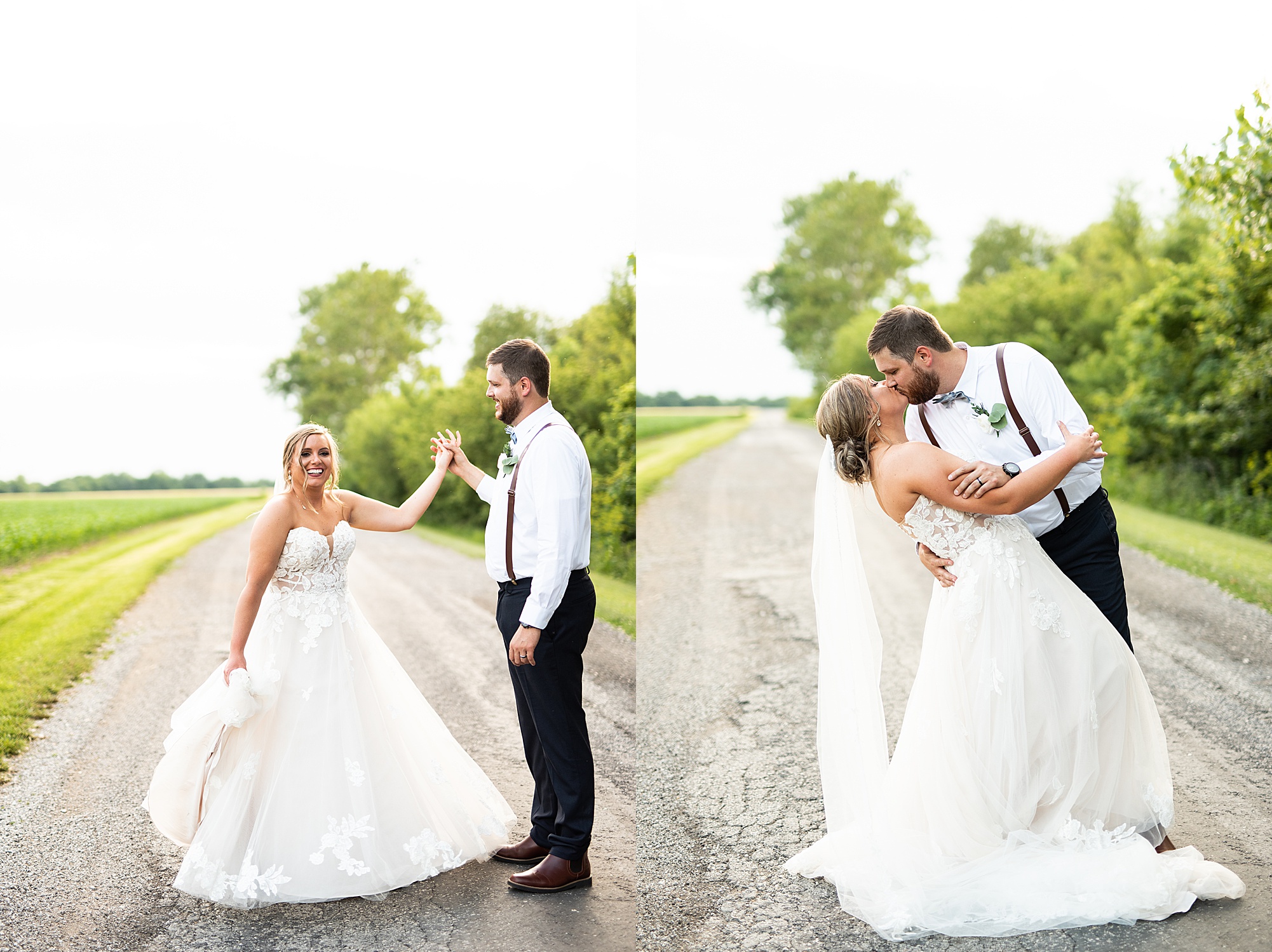 Their wedding venue, Shwarz Barn in Highland, IL, is an absolutely gorgeous property with a barn converted into a stunning space for weddings. Jaclyn and Aarron fell in love with it immediately and I can tell why because it was so perfect for them and their laid back style. Jaclyn shared a sweet first look with her dad before he walked his only child down the aisle to a grinning Aarron. A very close friend officially married them overlooking the pond in such a beautiful and fun ceremony! Jaclyn and Aarron shared their first kiss as husband and wife before dancing back down the aisle, ready to celebrate!
