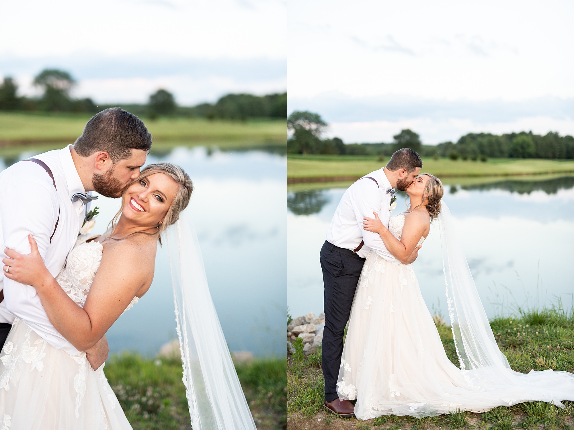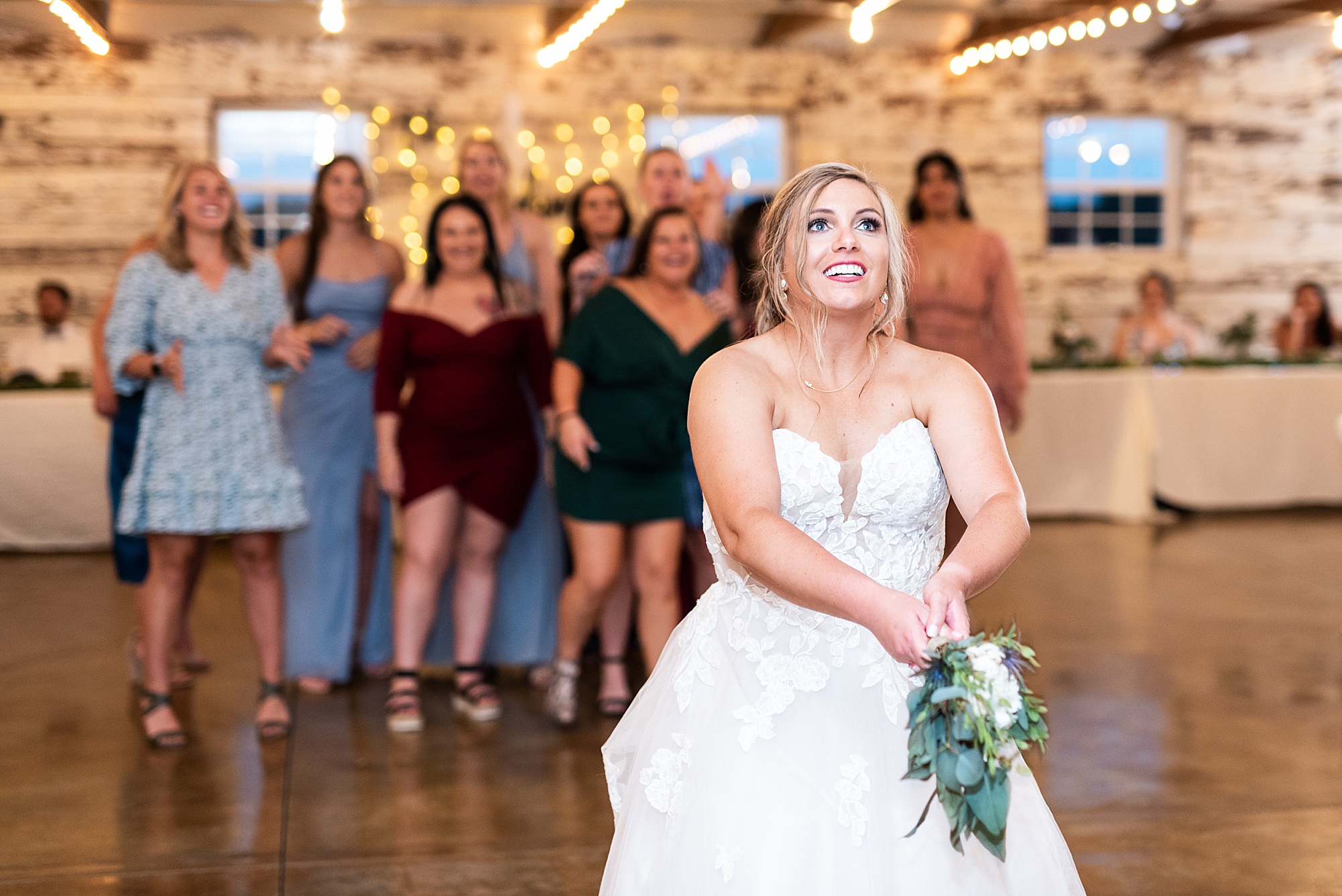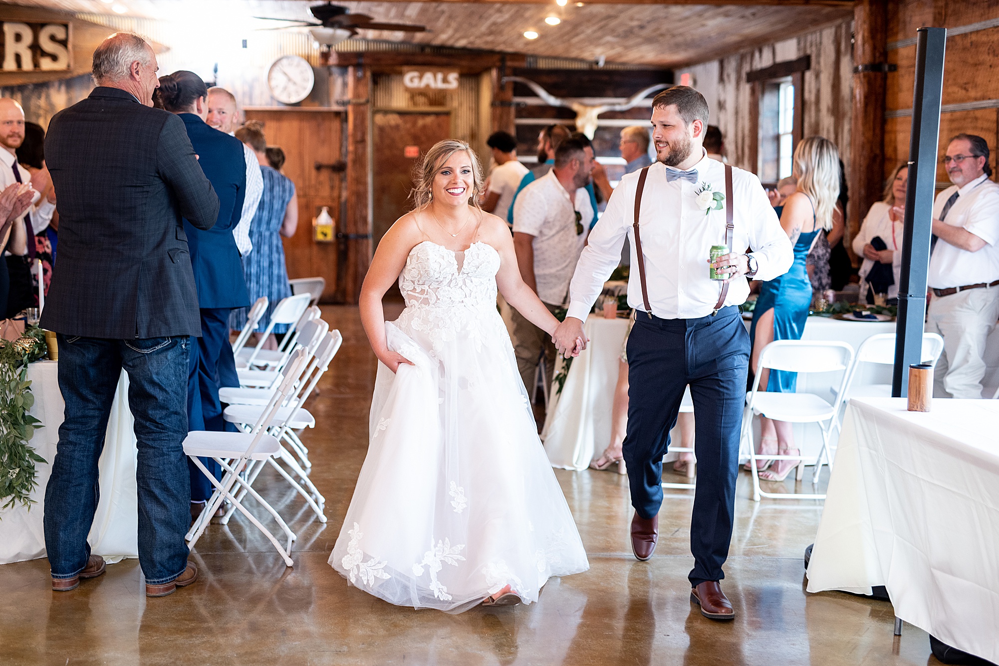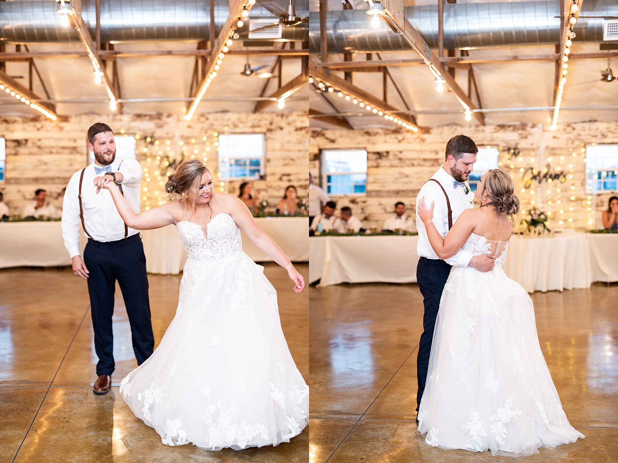 Their wedding venue, Shwarz Barn in Highland, IL, is an absolutely gorgeous property with a barn converted into a stunning space for weddings. Jaclyn and Aarron fell in love with it immediately and I can tell why because it was so perfect for them and their laid back style. Jaclyn shared a sweet first look with her dad before he walked his only child down the aisle to a grinning Aarron. A very close friend officially married them overlooking the pond in such a beautiful and fun ceremony! Jaclyn and Aarron shared their first kiss as husband and wife before dancing back down the aisle, ready to celebrate!