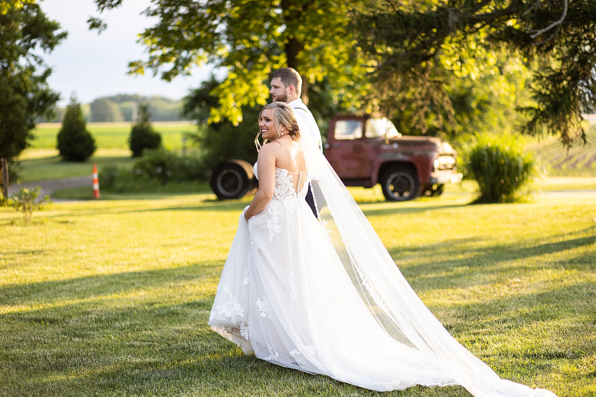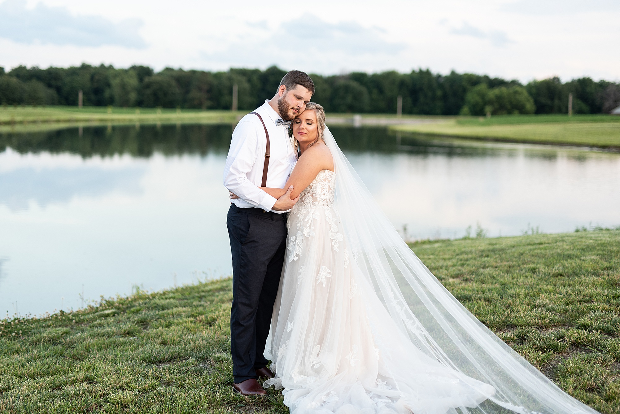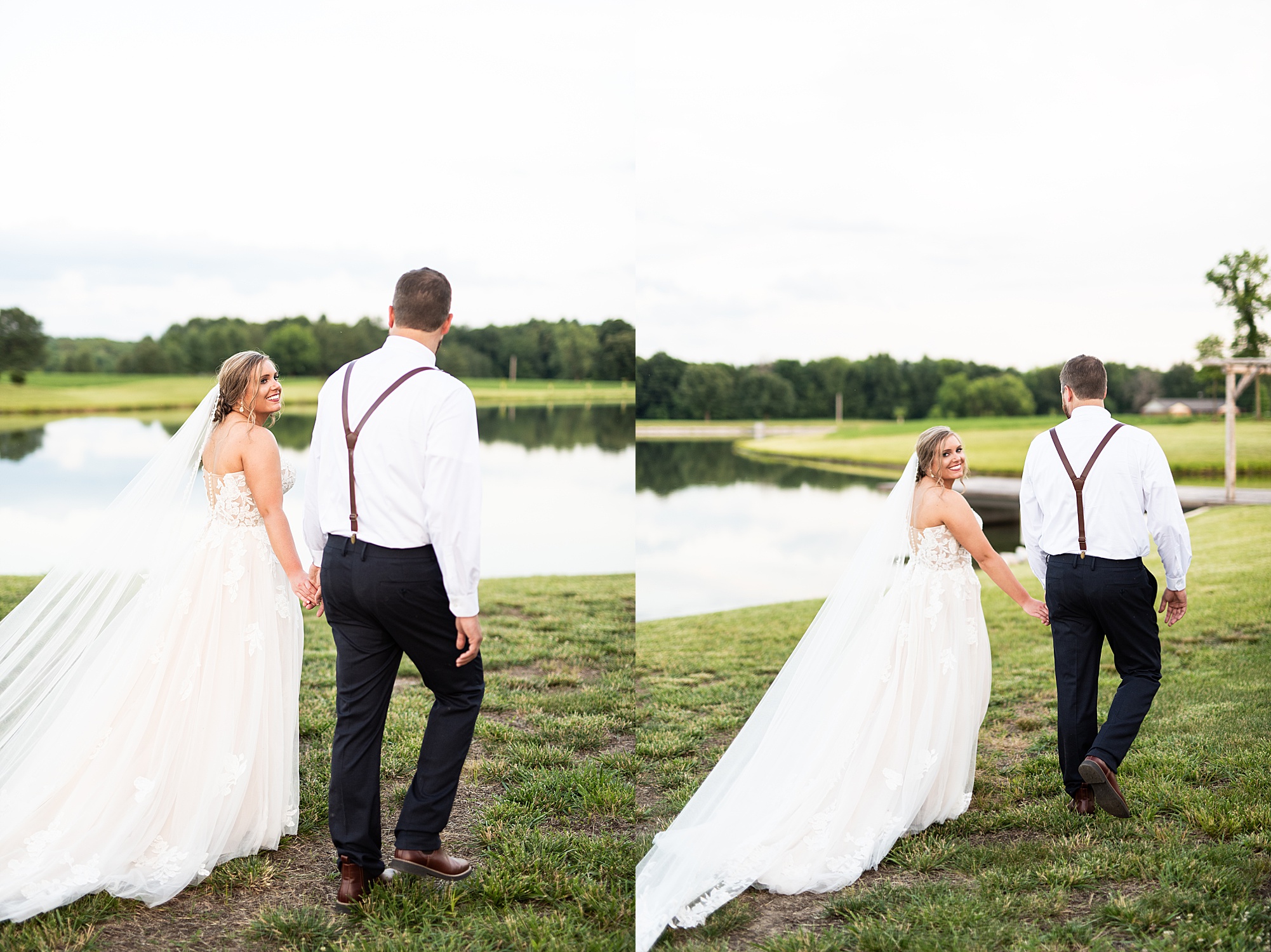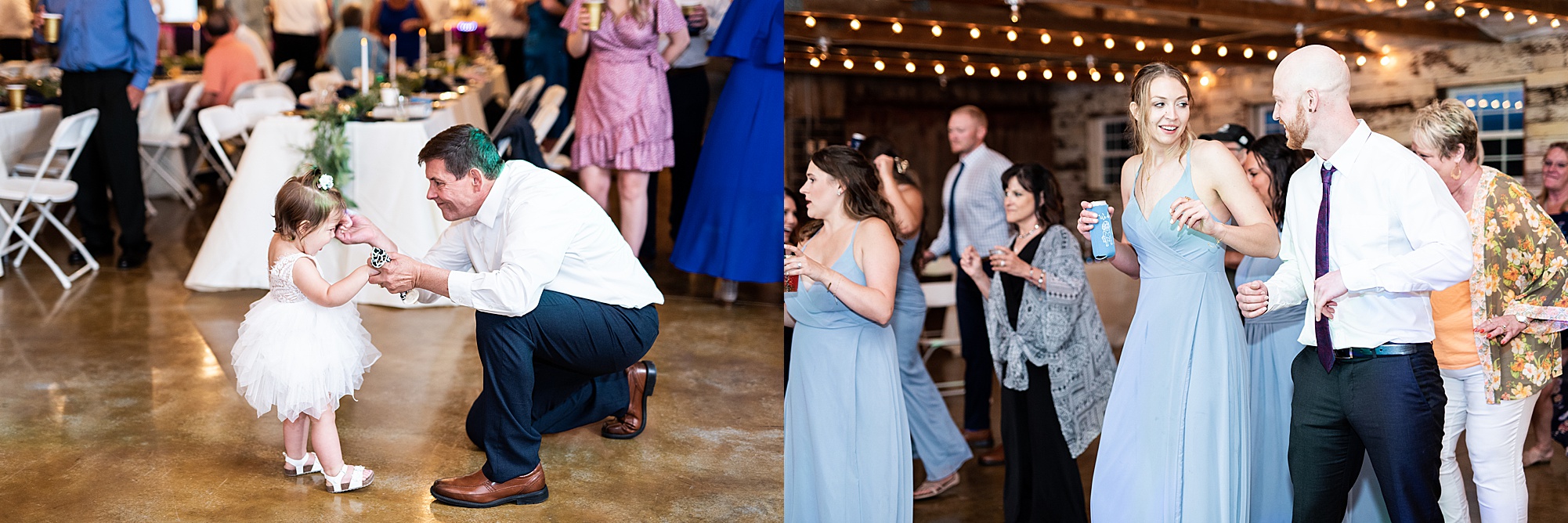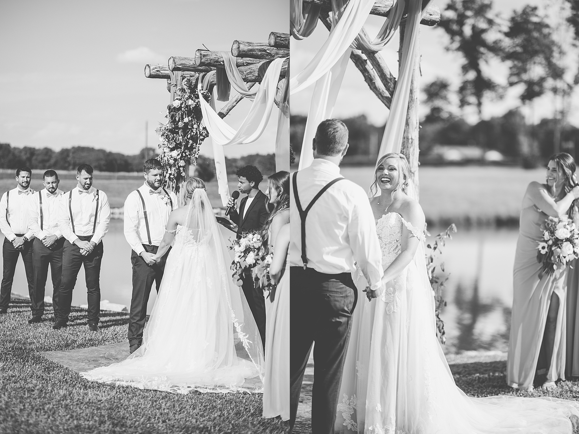 Their wedding venue, Shwarz Barn in Highland, IL, is an absolutely gorgeous property with a barn converted into a stunning space for weddings. Jaclyn and Aarron fell in love with it immediately and I can tell why because it was so perfect for them and their laid back style. Jaclyn shared a sweet first look with her dad before he walked his only child down the aisle to a grinning Aarron. A very close friend officially married them overlooking the pond in such a beautiful and fun ceremony! Jaclyn and Aarron shared their first kiss as husband and wife before dancing back down the aisle, ready to celebrate!
