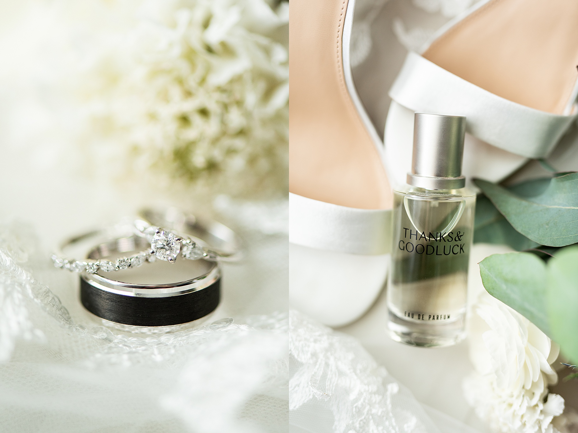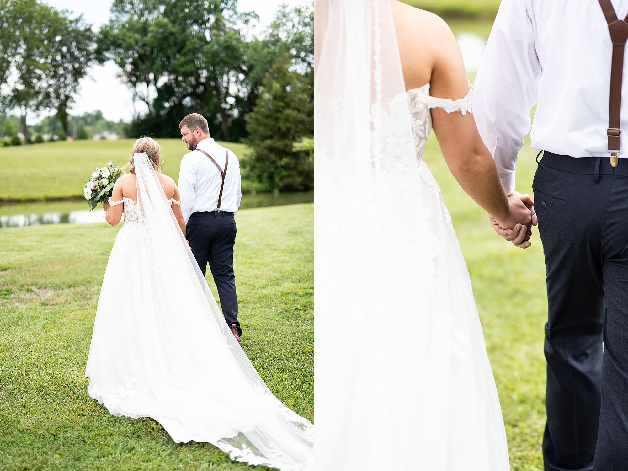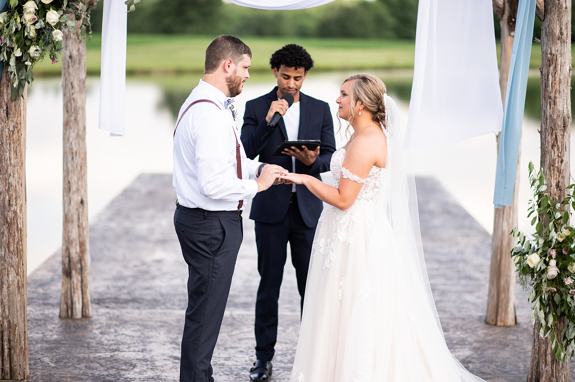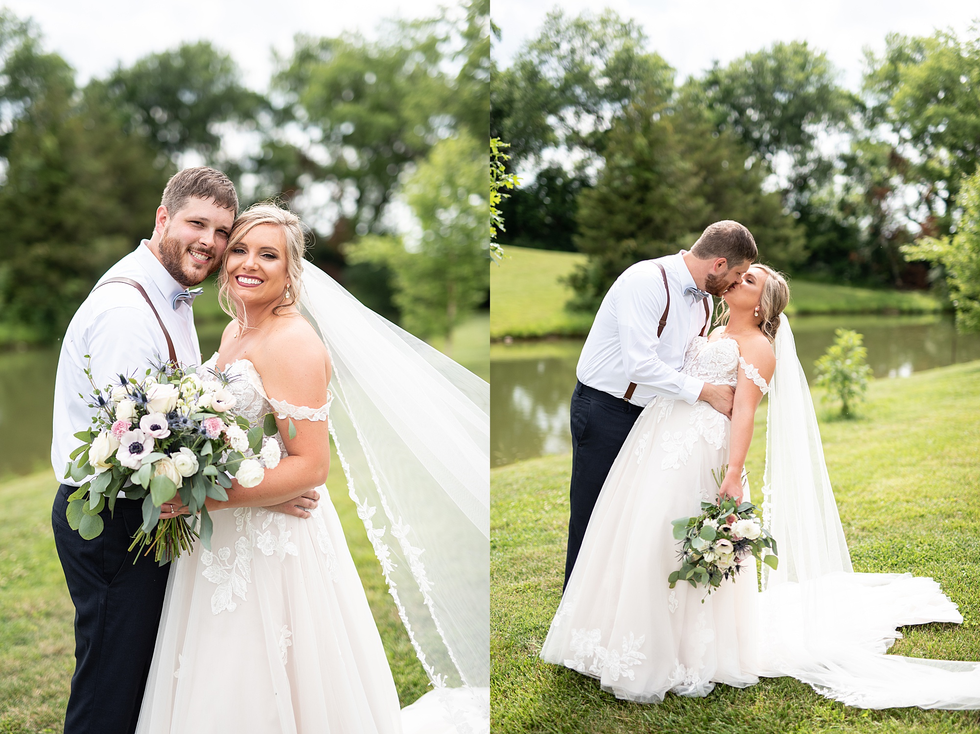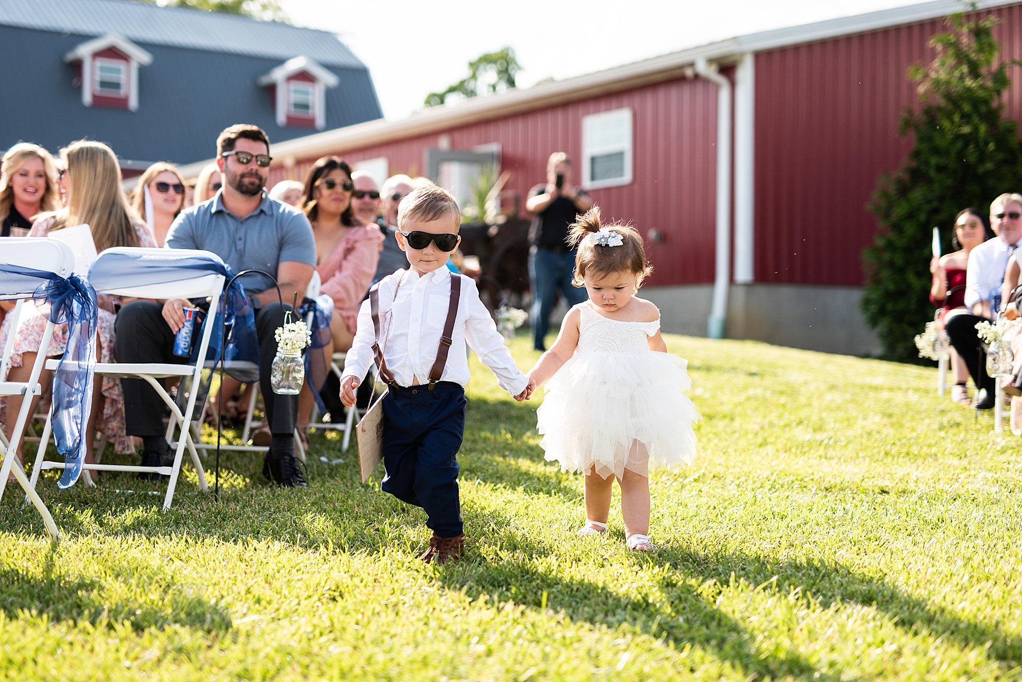 Their wedding venue, Shwarz Barn in Highland, IL, is an absolutely gorgeous property with a barn converted into a stunning space for weddings. Jaclyn and Aarron fell in love with it immediately and I can tell why because it was so perfect for them and their laid back style. Jaclyn shared a sweet first look with her dad before he walked his only child down the aisle to a grinning Aarron. A very close friend officially married them overlooking the pond in such a beautiful and fun ceremony! Jaclyn and Aarron shared their first kiss as husband and wife before dancing back down the aisle, ready to celebrate!