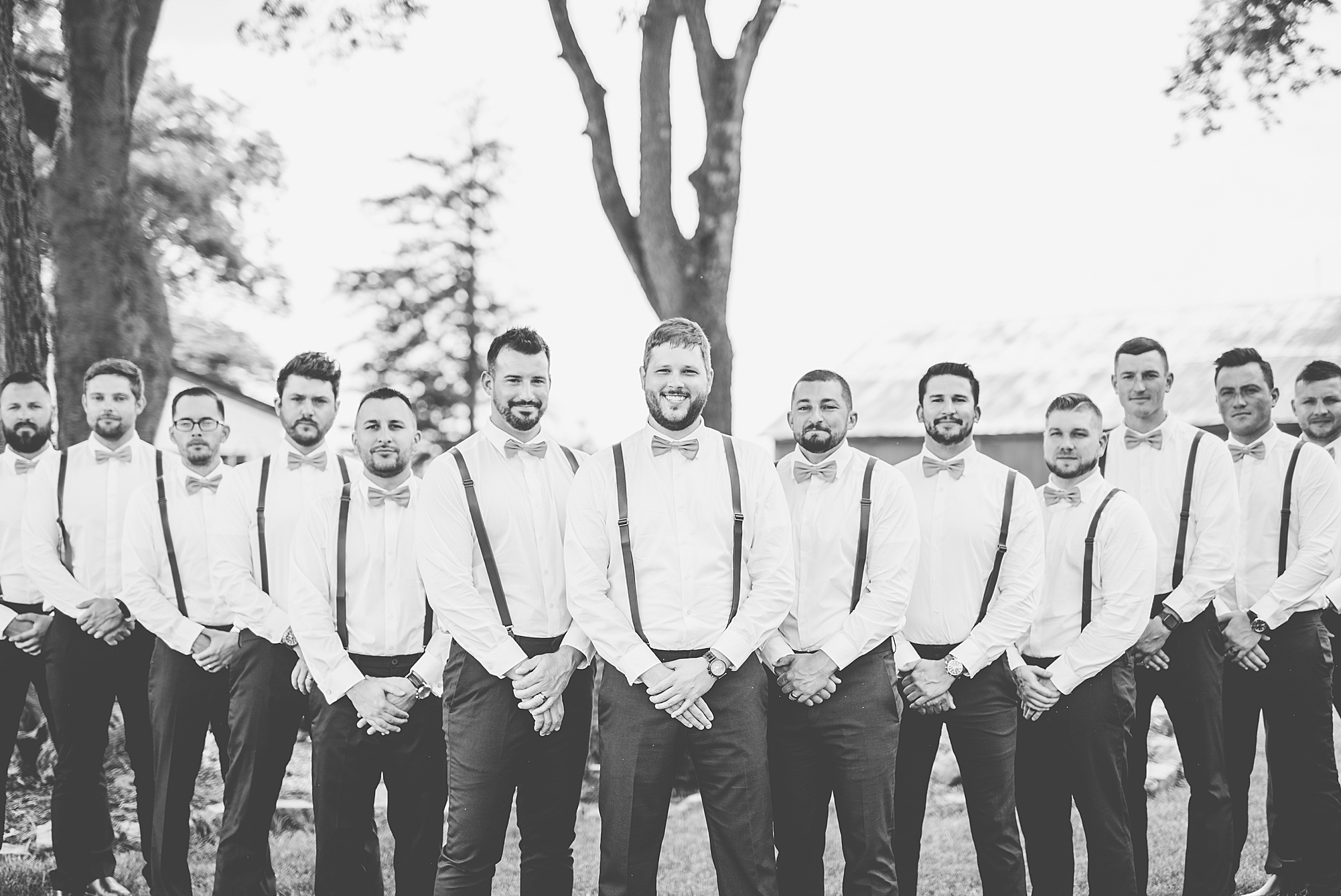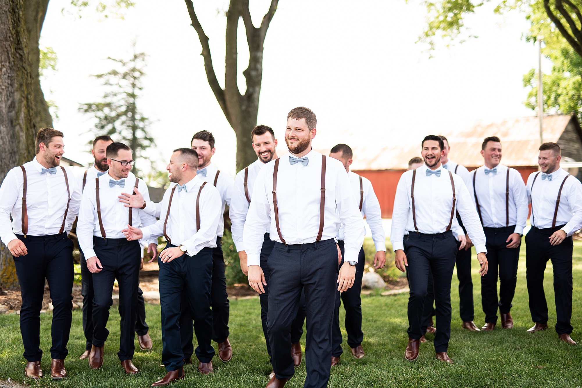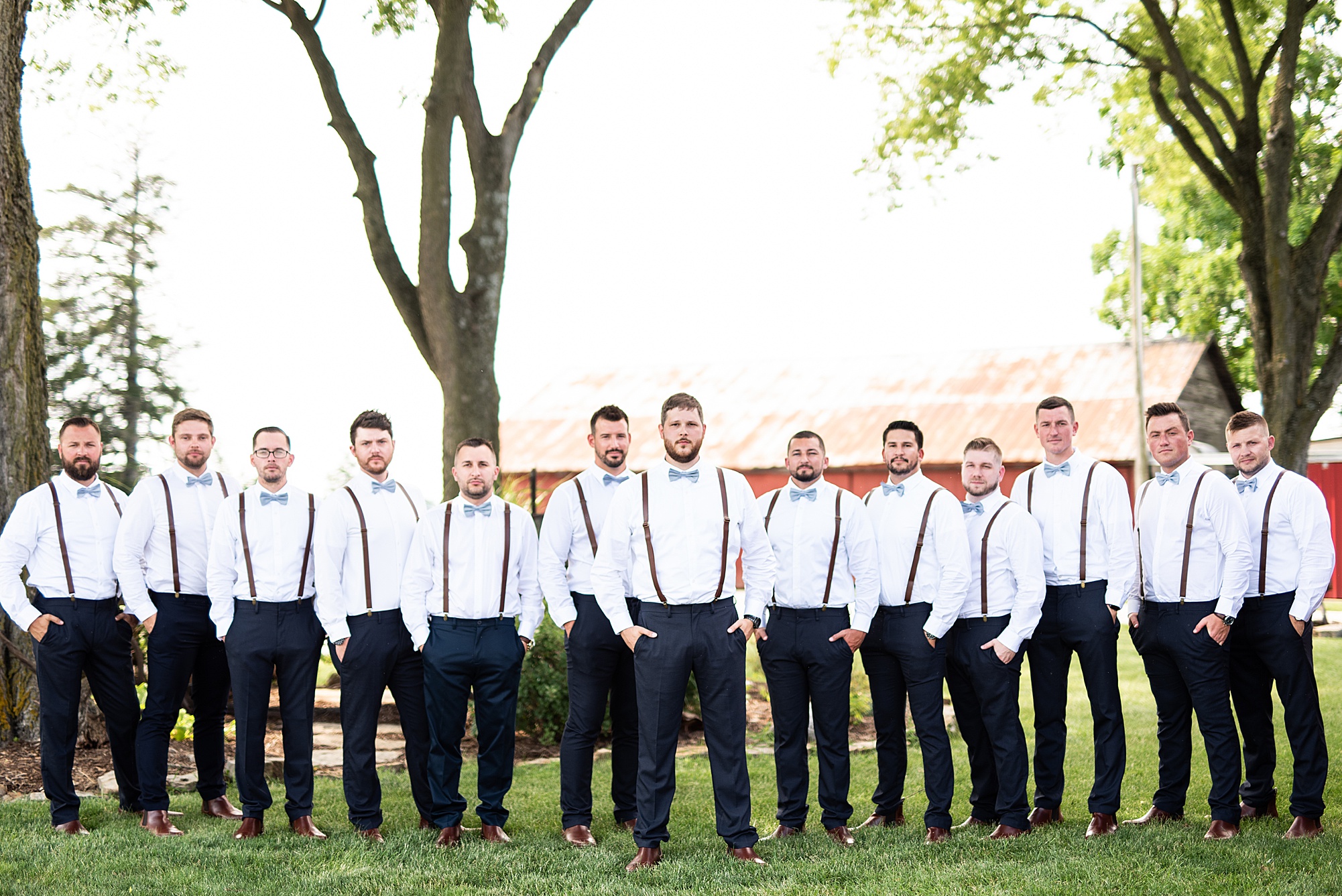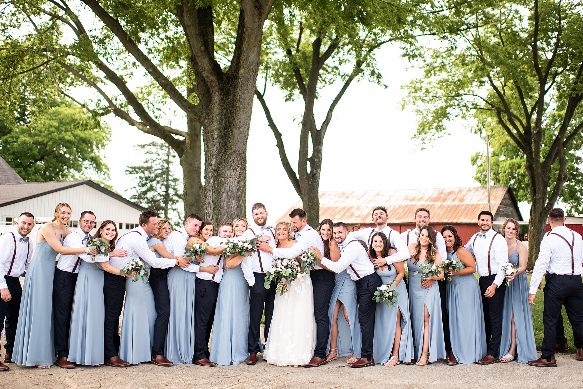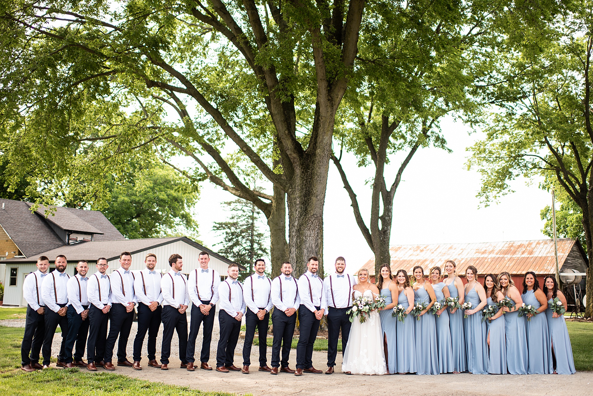 Jaclyn and Aarron are one of my most laid back couples this year! They truly were just so happy to be getting married to each other and even more excited to be doing it surrounded by friends and family. I went to high school with Aarron and he was always everyone’s best friend, so it was no surprise to me when I met Jaclyn that she was just as sweet, caring and fun! After they both got ready, Jaclyn and Aarron shared a first look and we spent some time taking their portraits. Their wedding day was filled with so much love, including a bridal party of 24 people! We had a blast capturing them all having fun together before the ceremony.