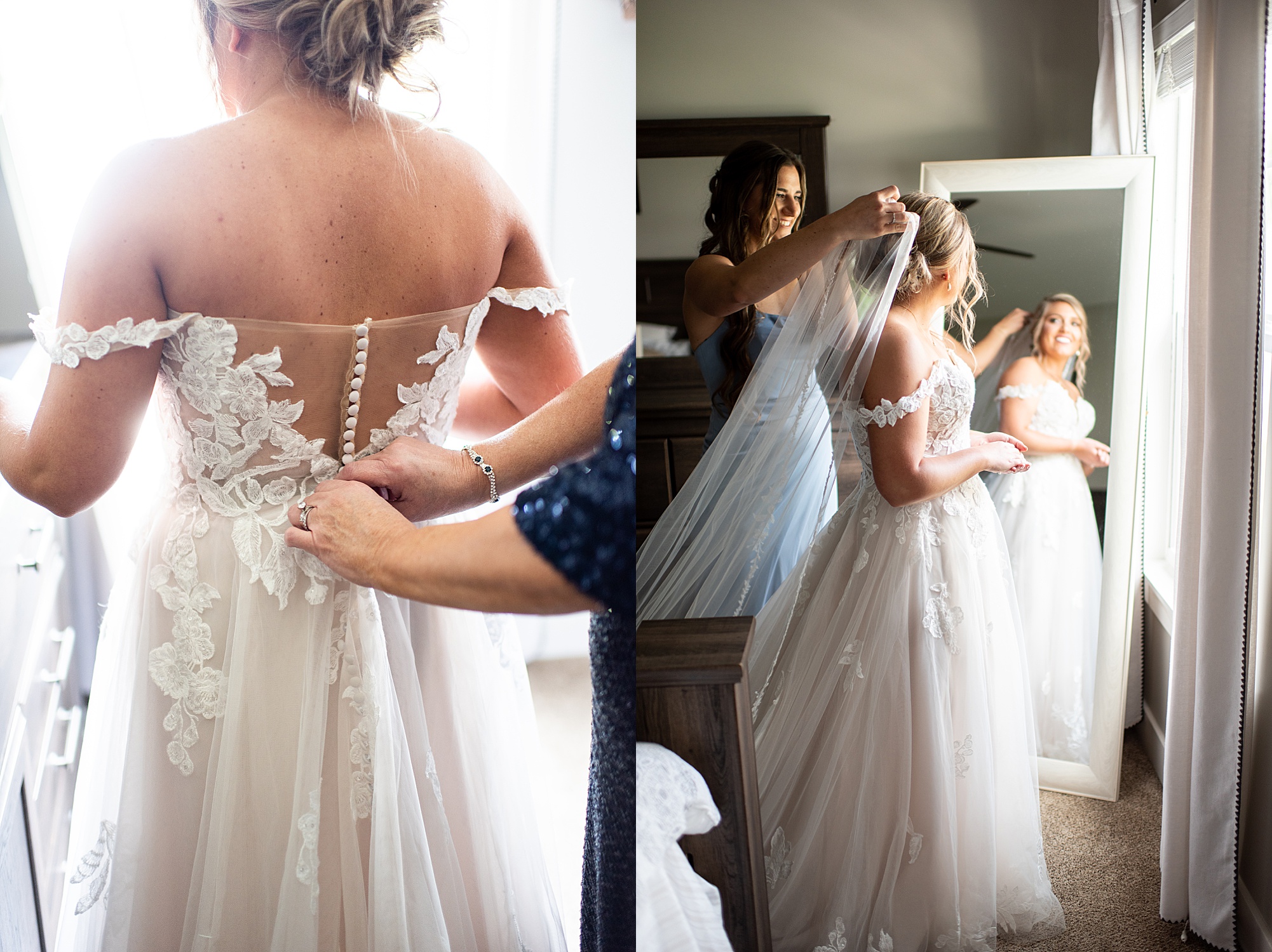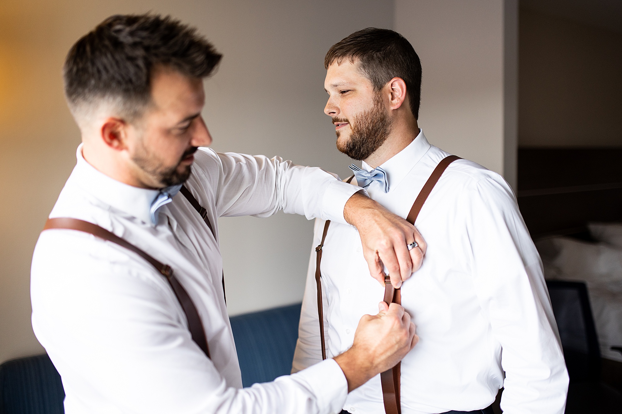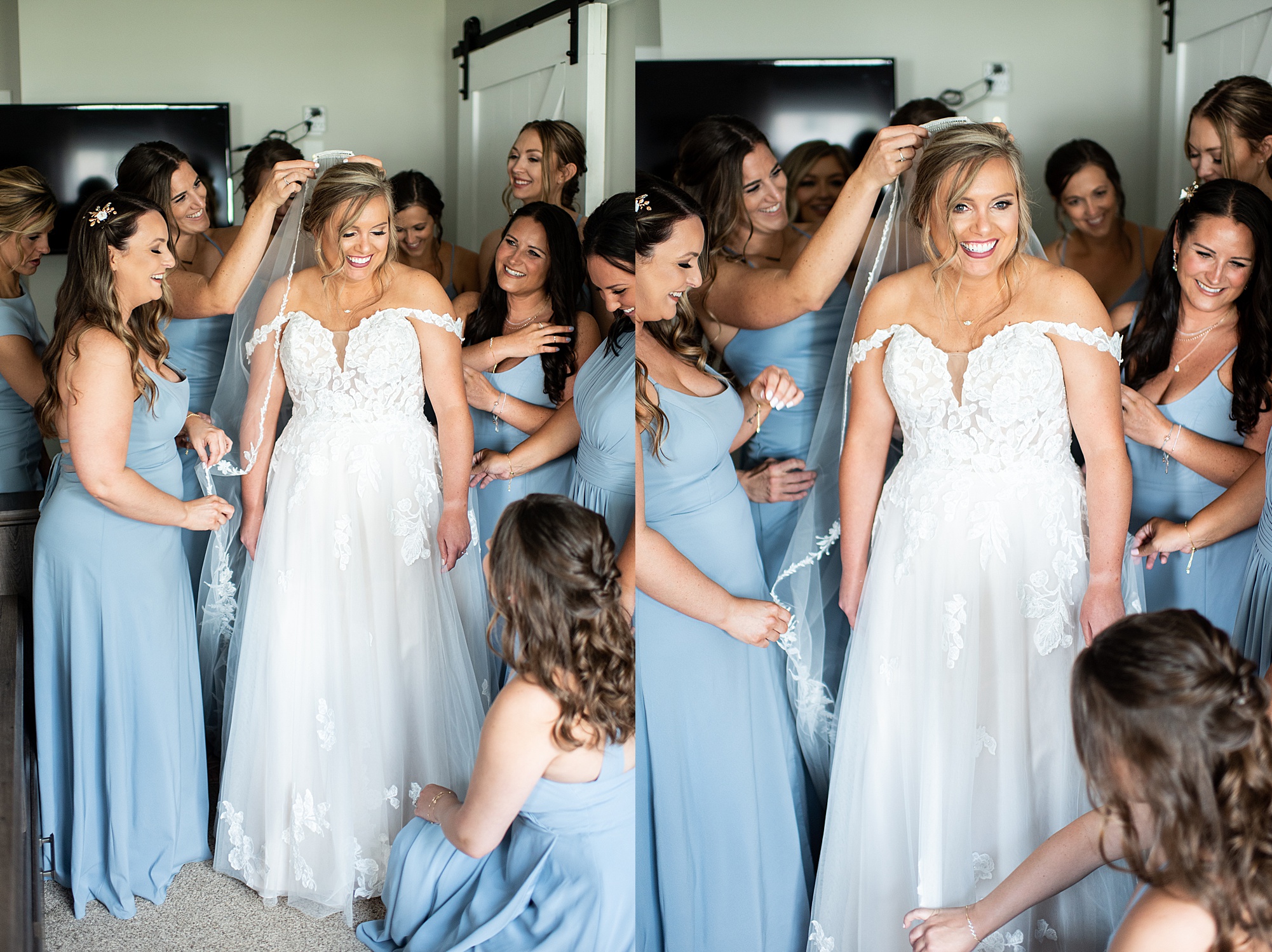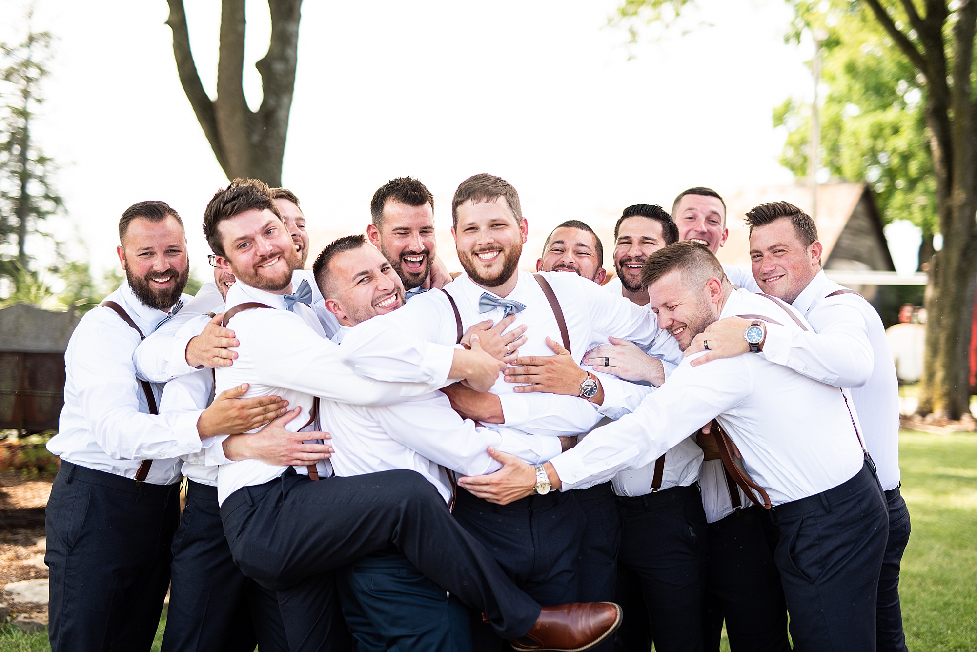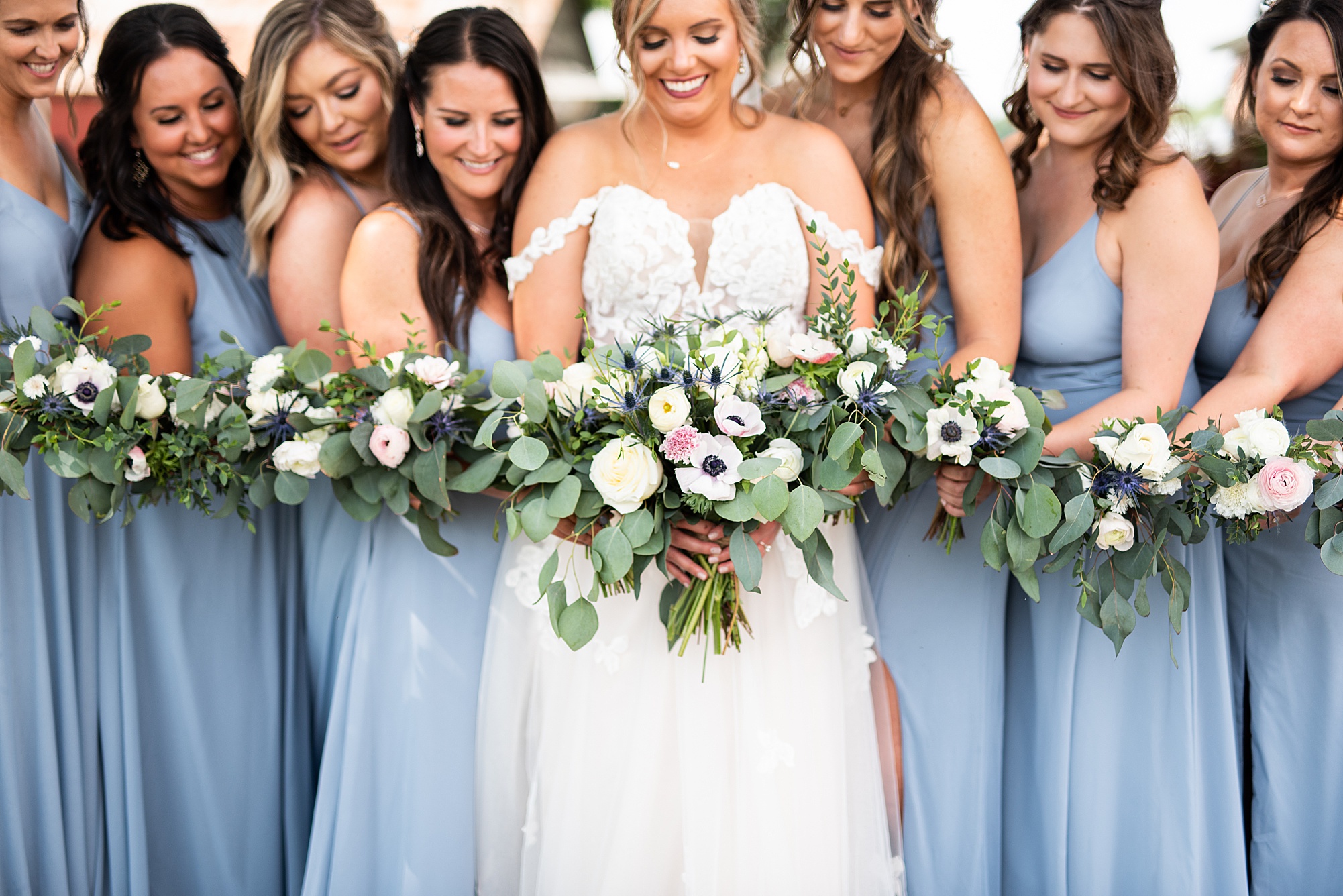 Jaclyn and Aarron are one of my most laid back couples this year! They truly were just so happy to be getting married to each other and even more excited to be doing it surrounded by friends and family. I went to high school with Aarron and he was always everyone’s best friend, so it was no surprise to me when I met Jaclyn that she was just as sweet, caring and fun! After they both got ready, Jaclyn and Aarron shared a first look and we spent some time taking their portraits. Their wedding day was filled with so much love, including a bridal party of 24 people! We had a blast capturing them all having fun together before the ceremony.