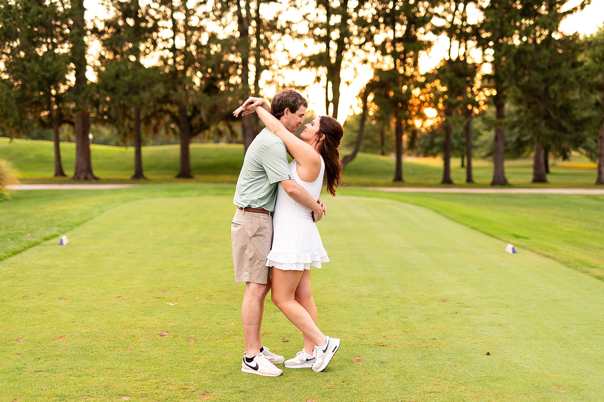 I had a blast with Jessie and Michael Bryan for their engagement session! These two enjoy playing a round of golf together, so they chose the perfect location for their engagement photos – the golf course! It was such a beautiful evening and I loved my time with them!