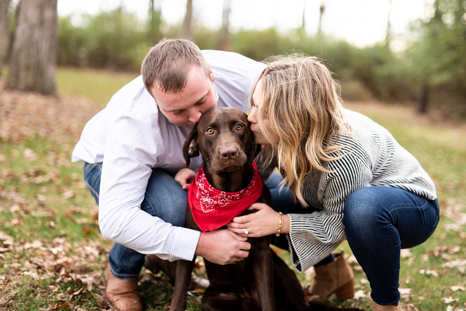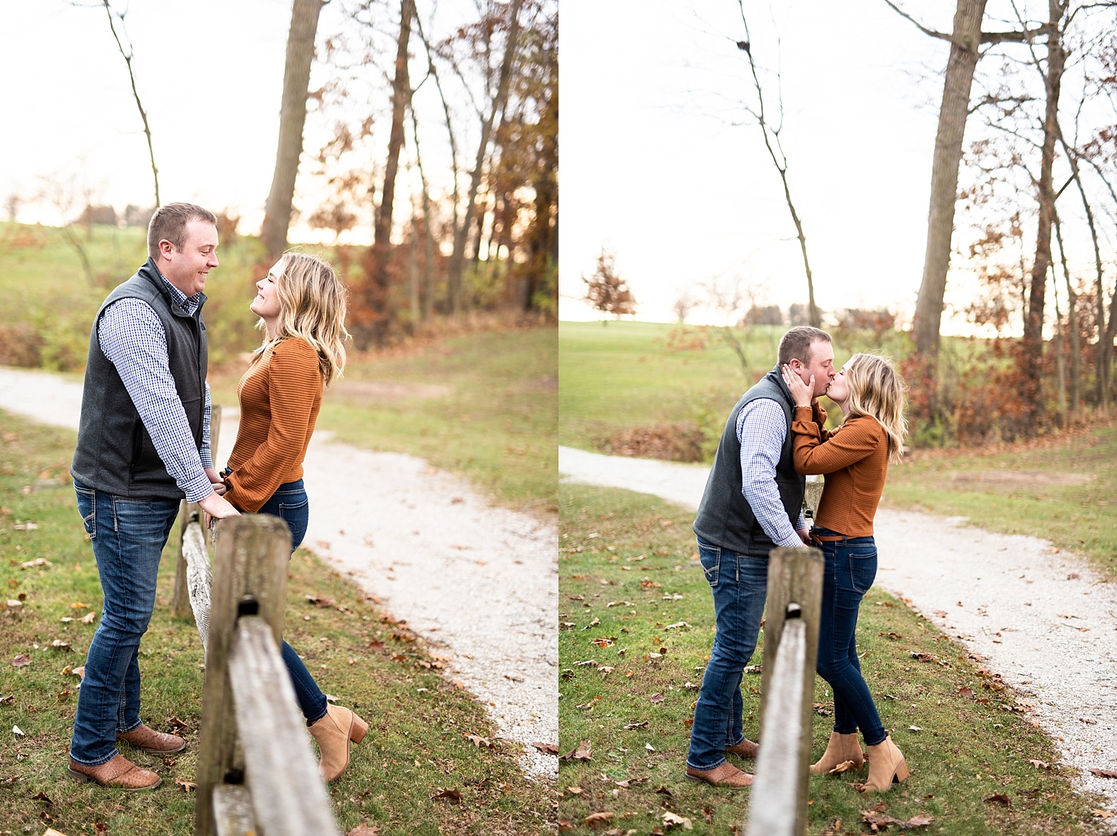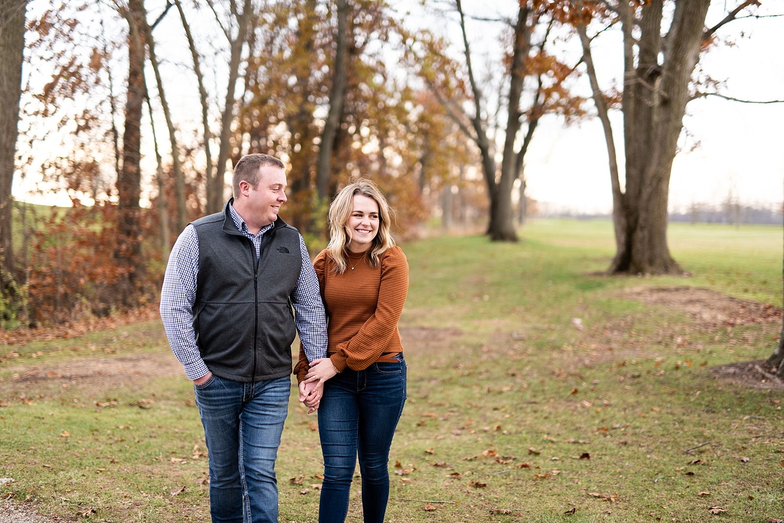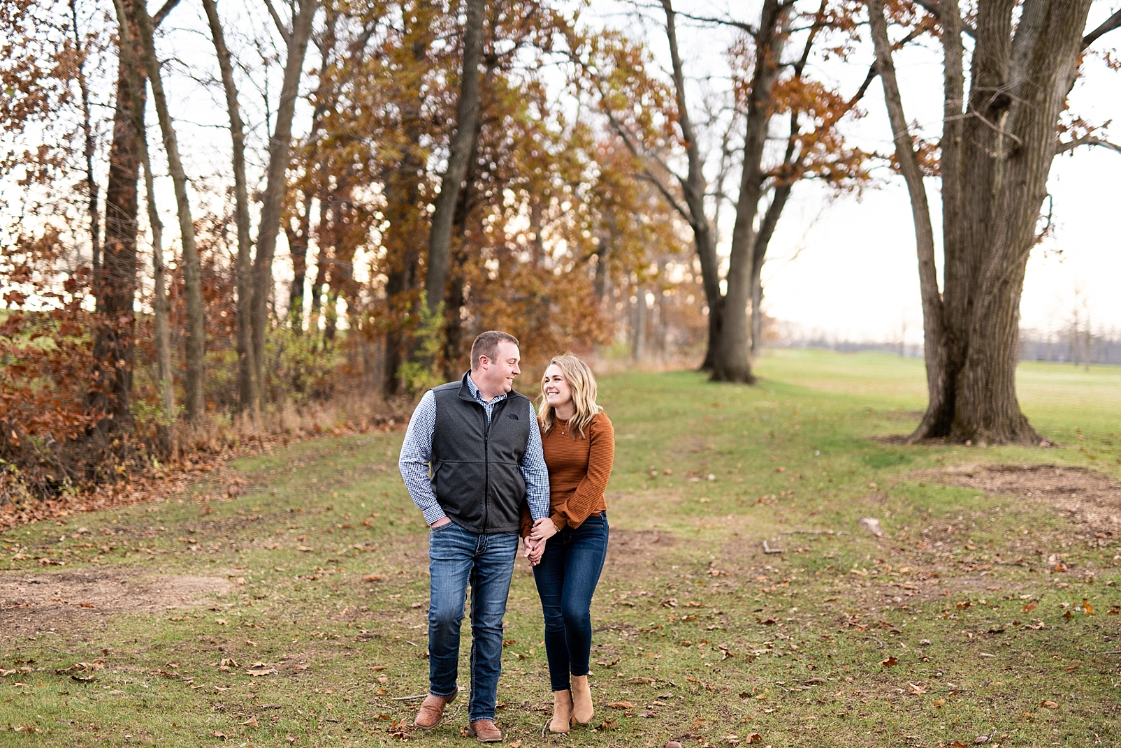 I loved meeting Kassidy and Bradley for their engagement session! Their sweet lab pup, Jack joined us in the beginning for some fun photos. He was more into playing than taking photos but I loved working with their adorable fur baby! Bradley’s sister is the one who introduced Kassidy and Bradley and they hit it off immediately. It was so fitting to capture their engagement session right in their hometown of Watseka since it is so special to them. We started off at Bradley’s parent’s house. They have such a gorgeous property out in the country and the light came in beautifully. Then we headed to a nearby golf course with beautiful landscaping for their second location. We definitely caught that last bit of fall color even at the end of November and it was absolutely perfect. I cannot wait to capture this sweet couple again for their wedding day next year!