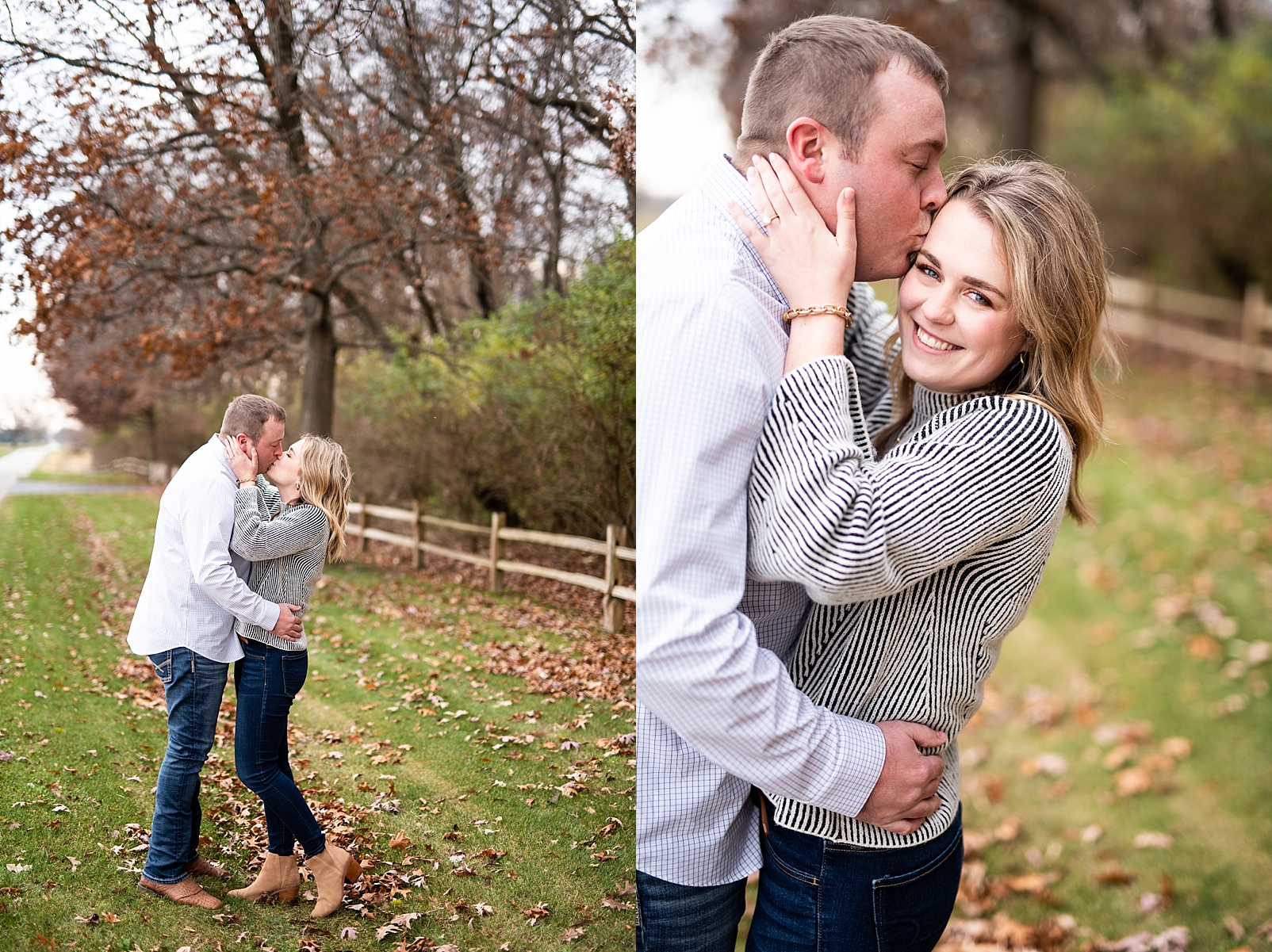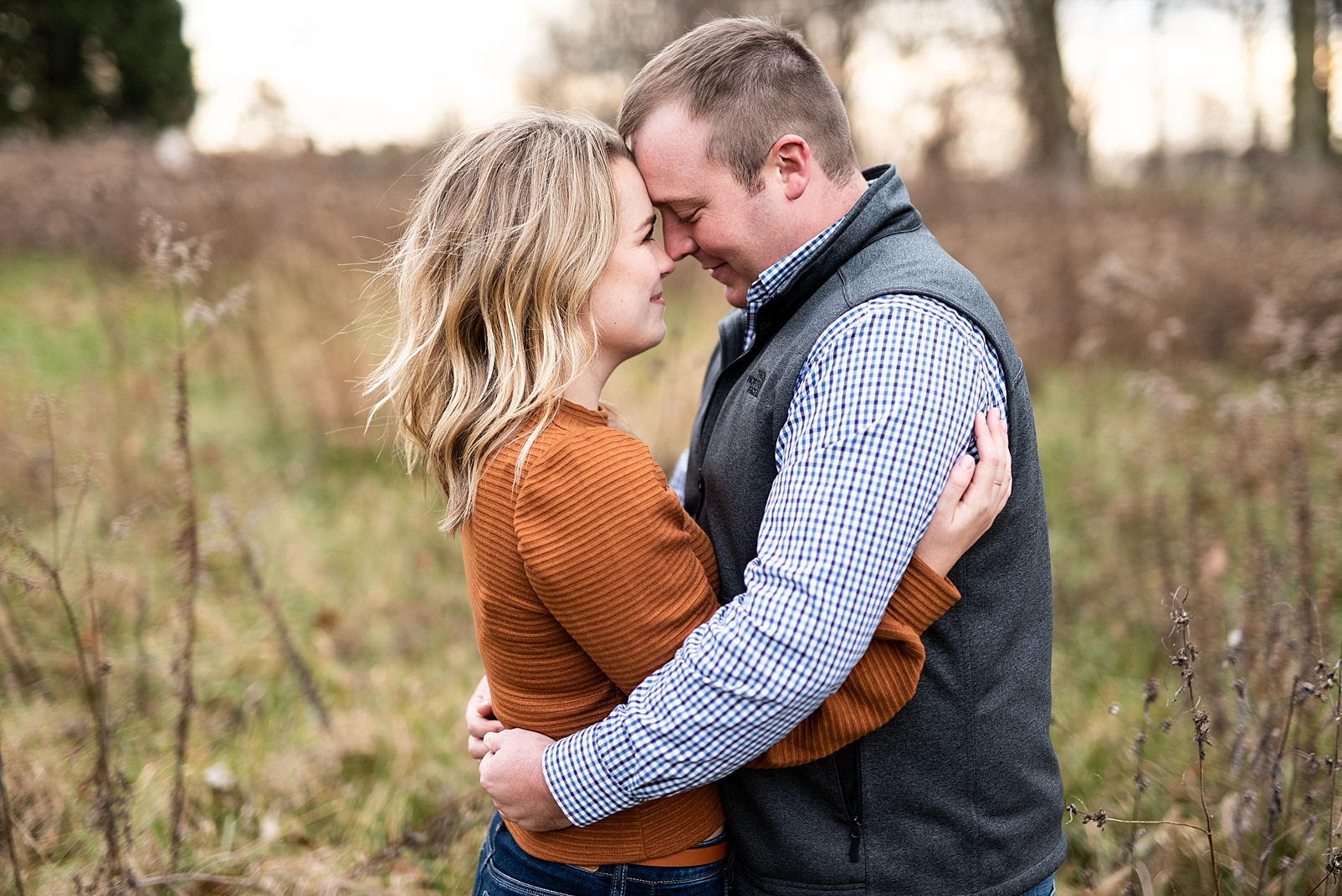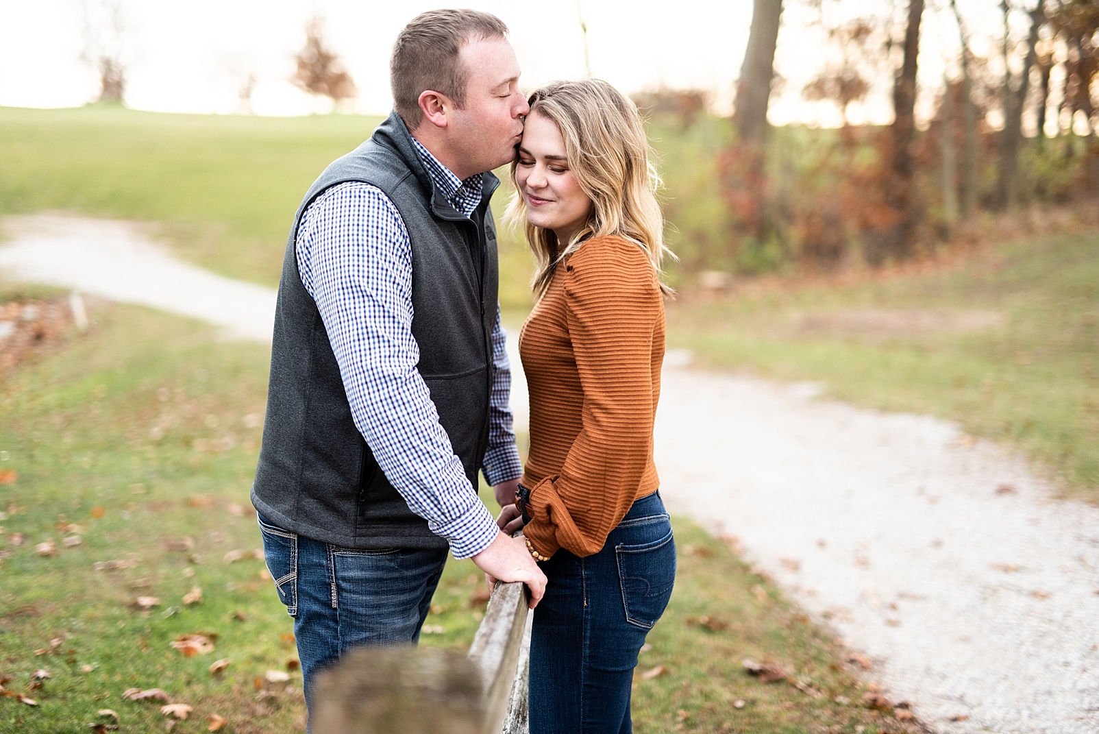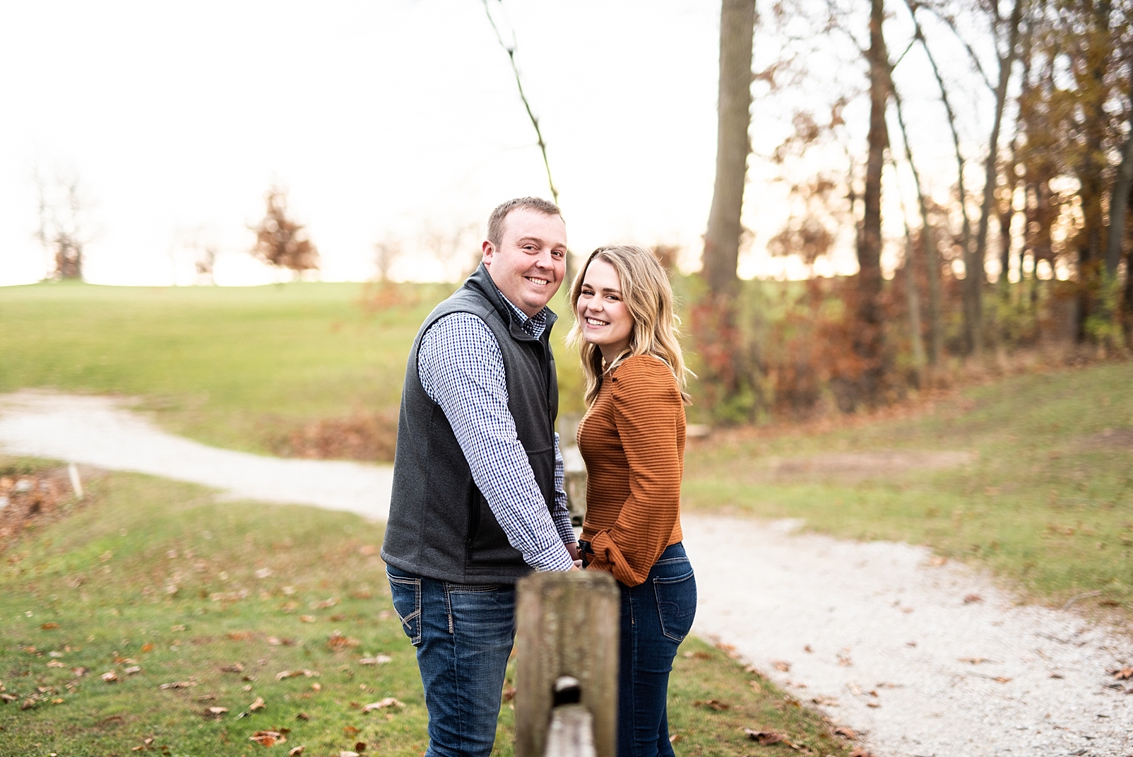 I loved meeting Kassidy and Bradley for their engagement session! Their sweet lab pup, Jack joined us in the beginning for some fun photos. He was more into playing than taking photos but I loved working with their adorable fur baby! Bradley’s sister is the one who introduced Kassidy and Bradley and they hit it off immediately. It was so fitting to capture their engagement session right in their hometown of Watseka since it is so special to them. We started off at Bradley’s parent’s house. They have such a gorgeous property out in the country and the light came in beautifully. Then we headed to a nearby golf course with beautiful landscaping for their second location. We definitely caught that last bit of fall color even at the end of November and it was absolutely perfect. I cannot wait to capture this sweet couple again for their wedding day next year!