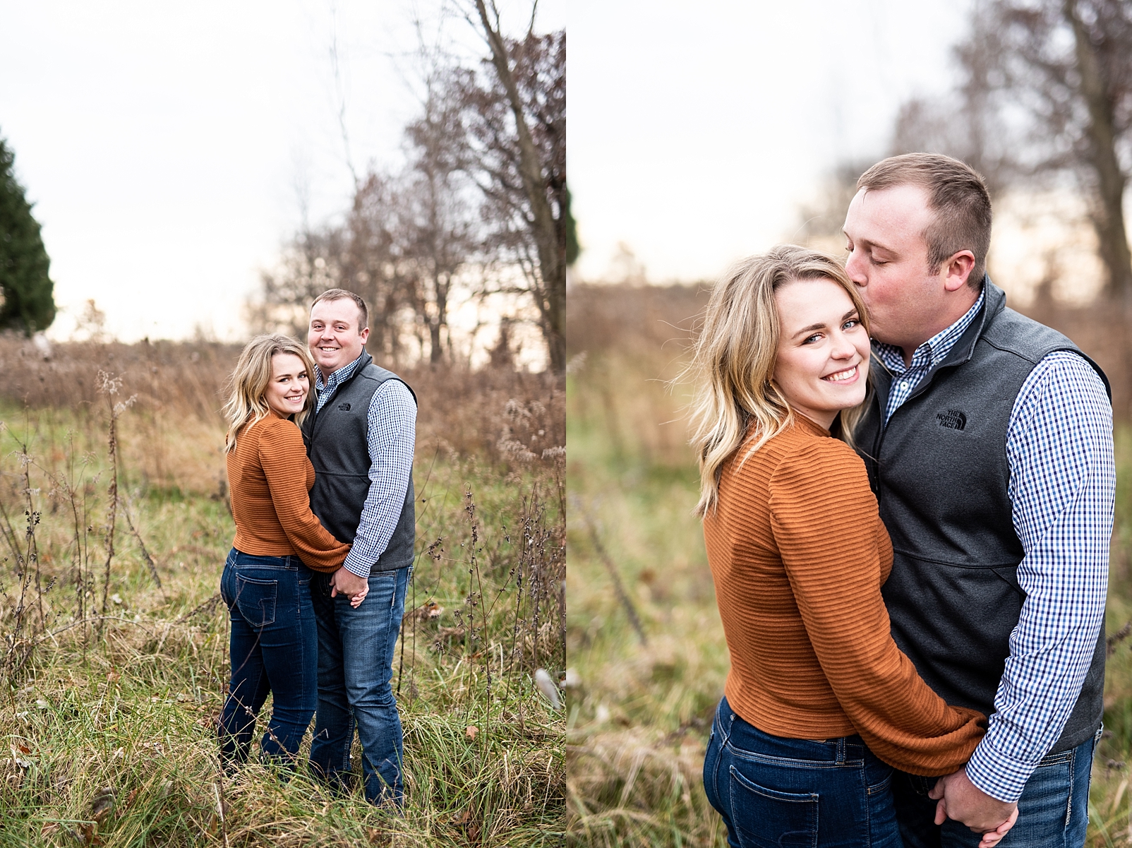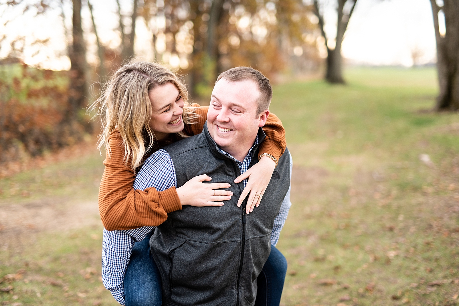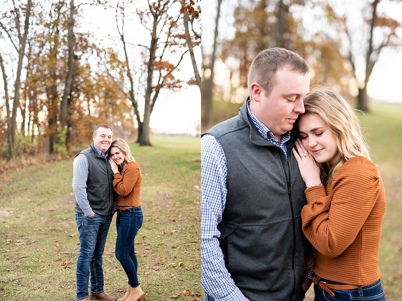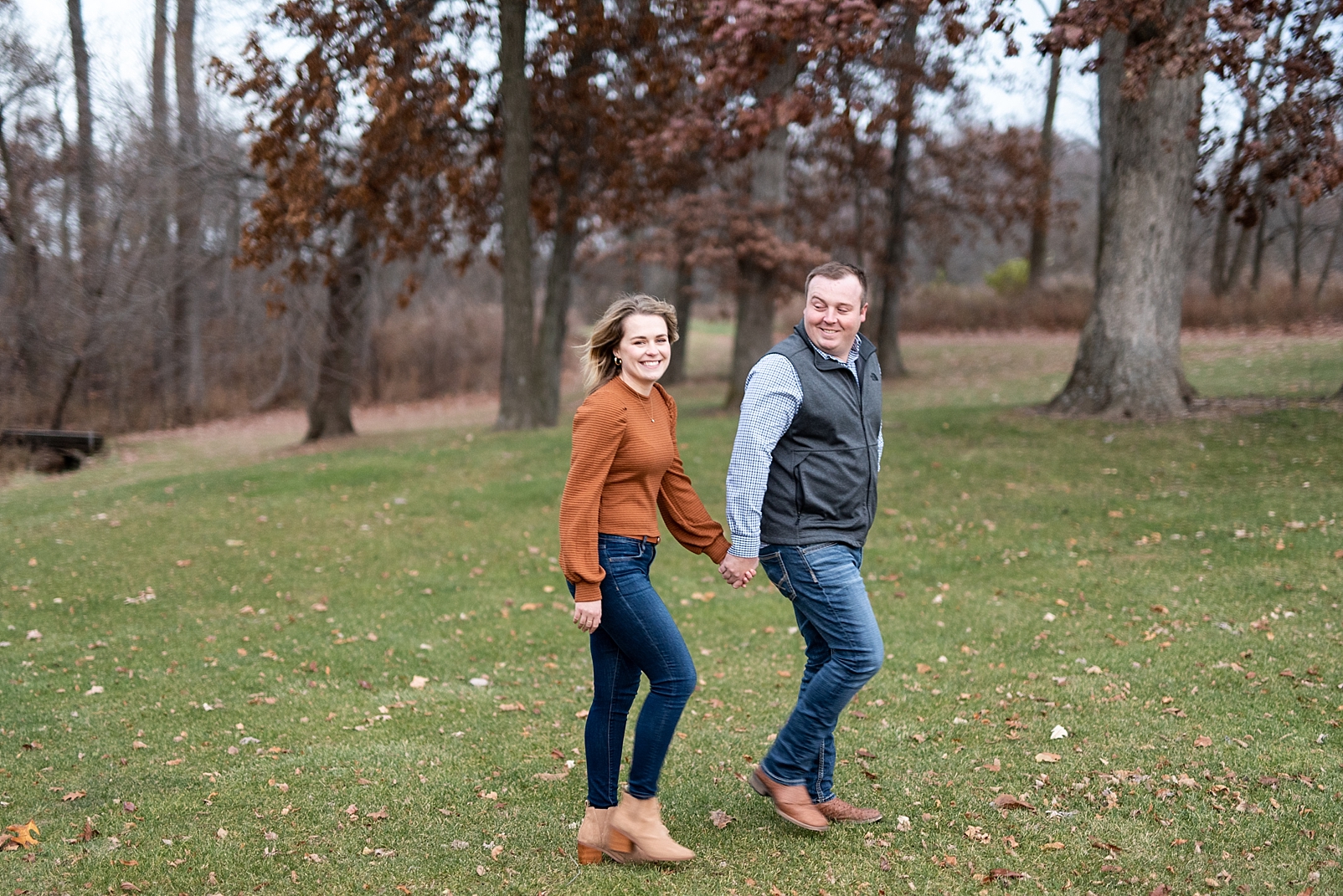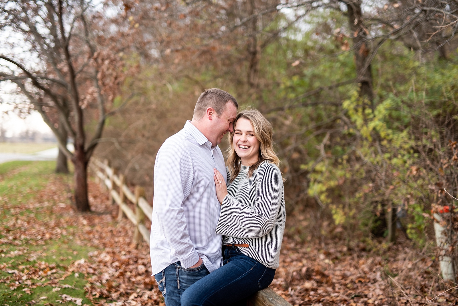 I loved meeting Kassidy and Bradley for their engagement session! Their sweet lab pup, Jack joined us in the beginning for some fun photos. He was more into playing than taking photos but I loved working with their adorable fur baby! Bradley’s sister is the one who introduced Kassidy and Bradley and they hit it off immediately. It was so fitting to capture their engagement session right in their hometown of Watseka since it is so special to them. We started off at Bradley’s parent’s house. They have such a gorgeous property out in the country and the light came in beautifully. Then we headed to a nearby golf course with beautiful landscaping for their second location. We definitely caught that last bit of fall color even at the end of November and it was absolutely perfect. I cannot wait to capture this sweet couple again for their wedding day next year!