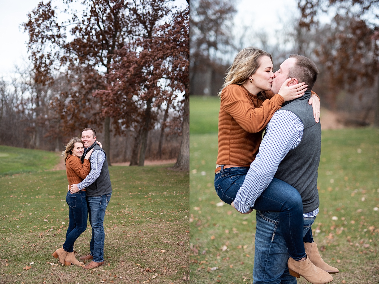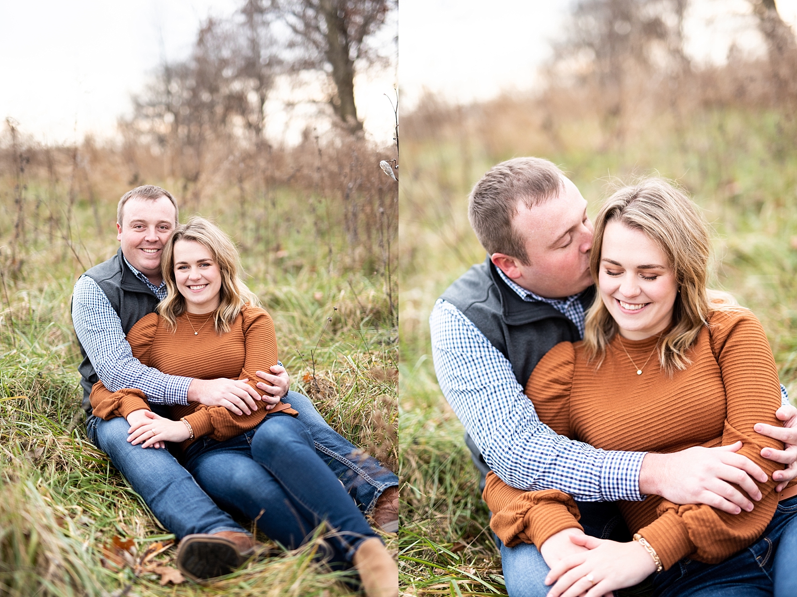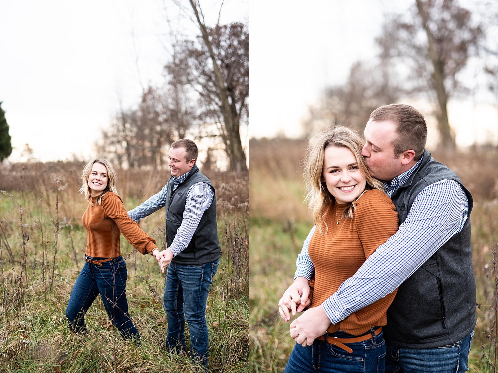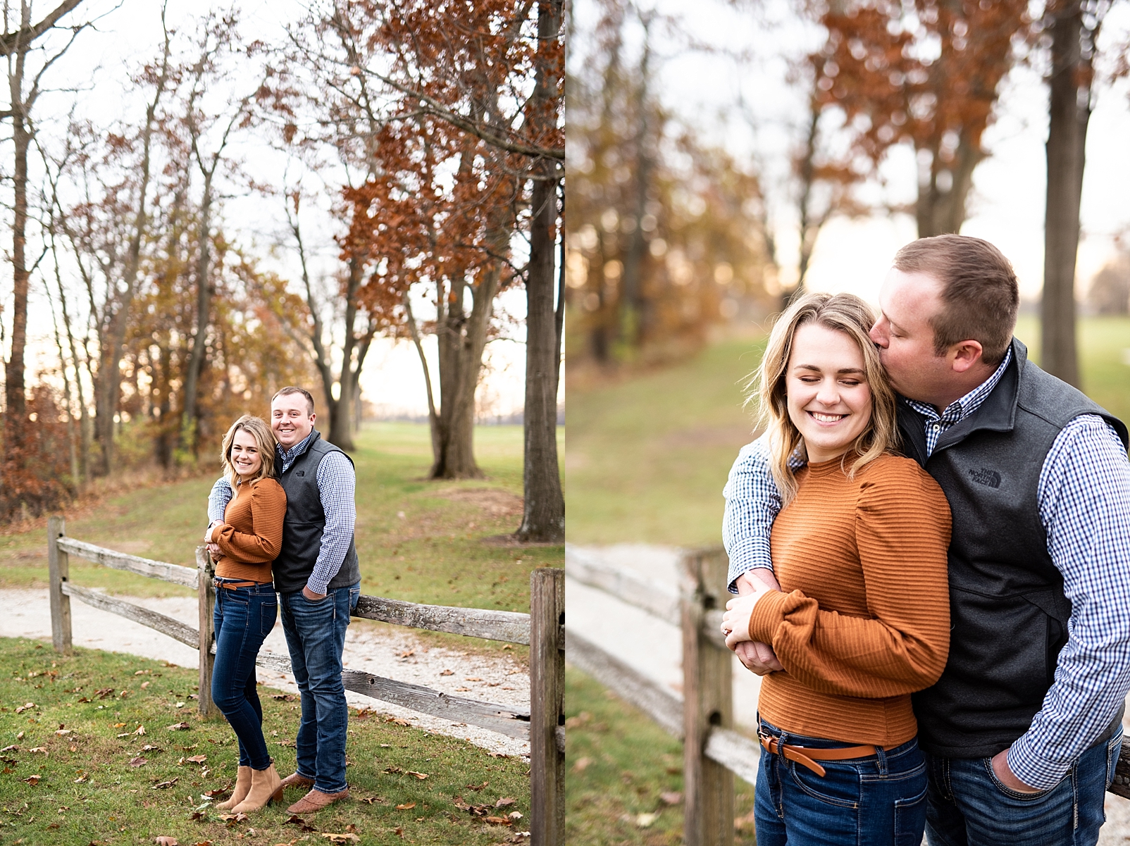 I loved meeting Kassidy and Bradley for their engagement session! Their sweet lab pup, Jack joined us in the beginning for some fun photos. He was more into playing than taking photos but I loved working with their adorable fur baby! Bradley’s sister is the one who introduced Kassidy and Bradley and they hit it off immediately. It was so fitting to capture their engagement session right in their hometown of Watseka since it is so special to them. We started off at Bradley’s parent’s house. They have such a gorgeous property out in the country and the light came in beautifully. Then we headed to a nearby golf course with beautiful landscaping for their second location. We definitely caught that last bit of fall color even at the end of November and it was absolutely perfect. I cannot wait to capture this sweet couple again for their wedding day next year!