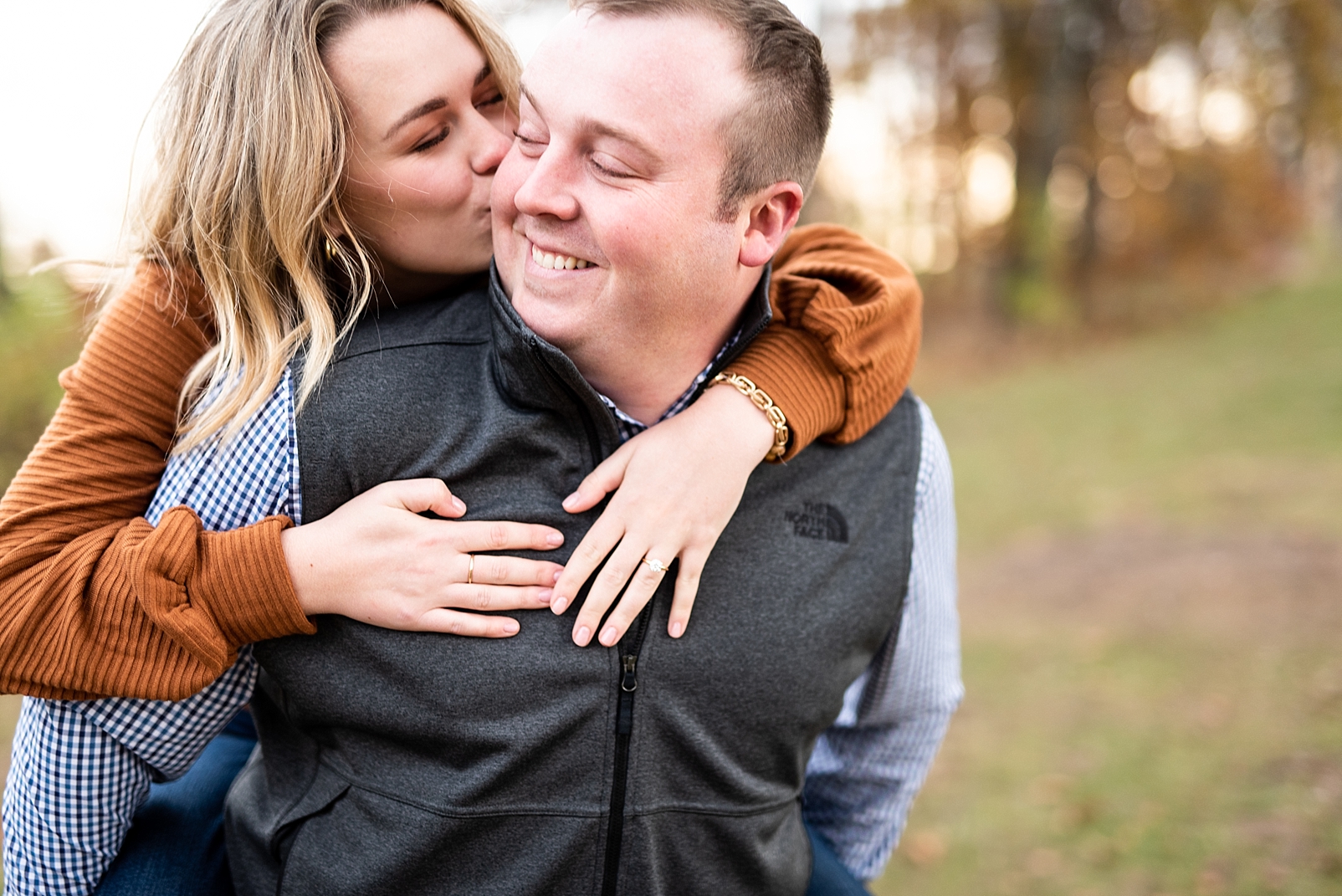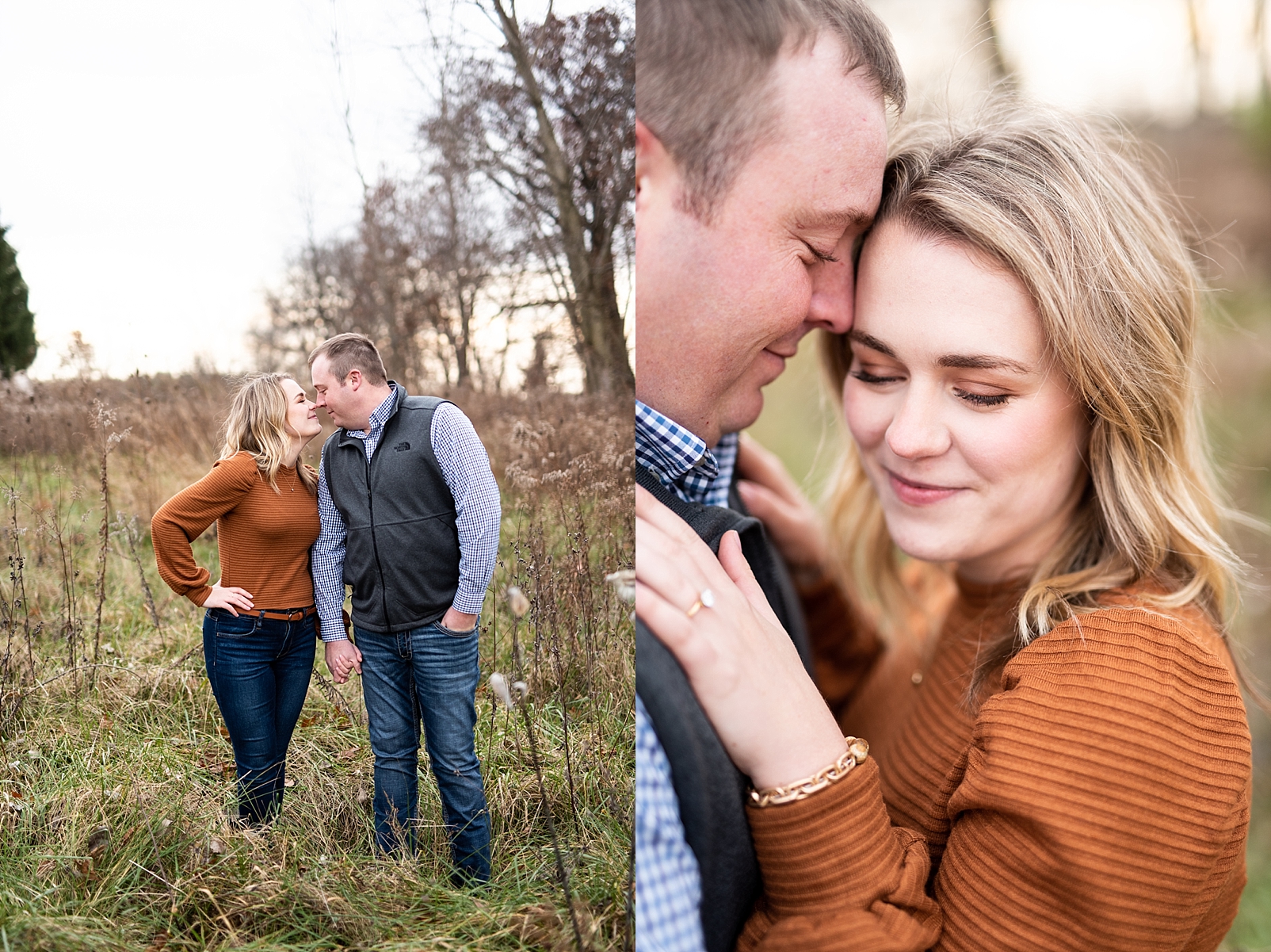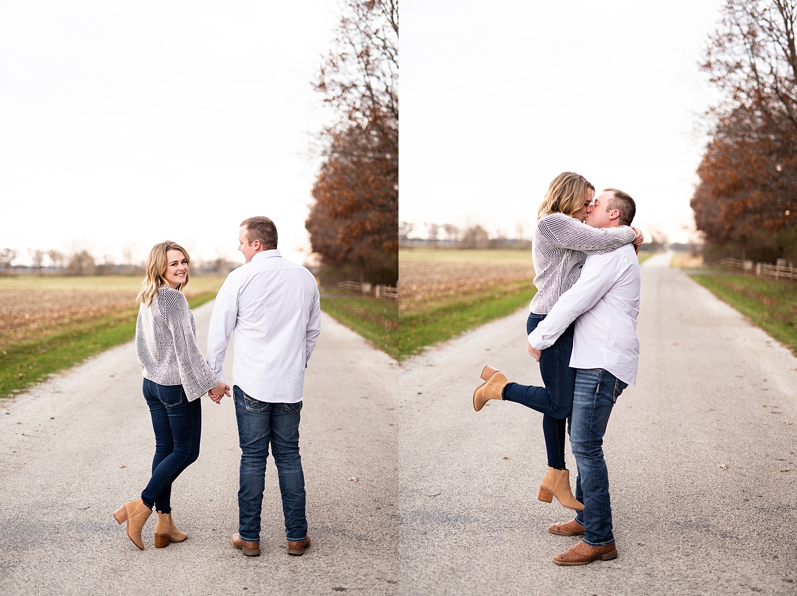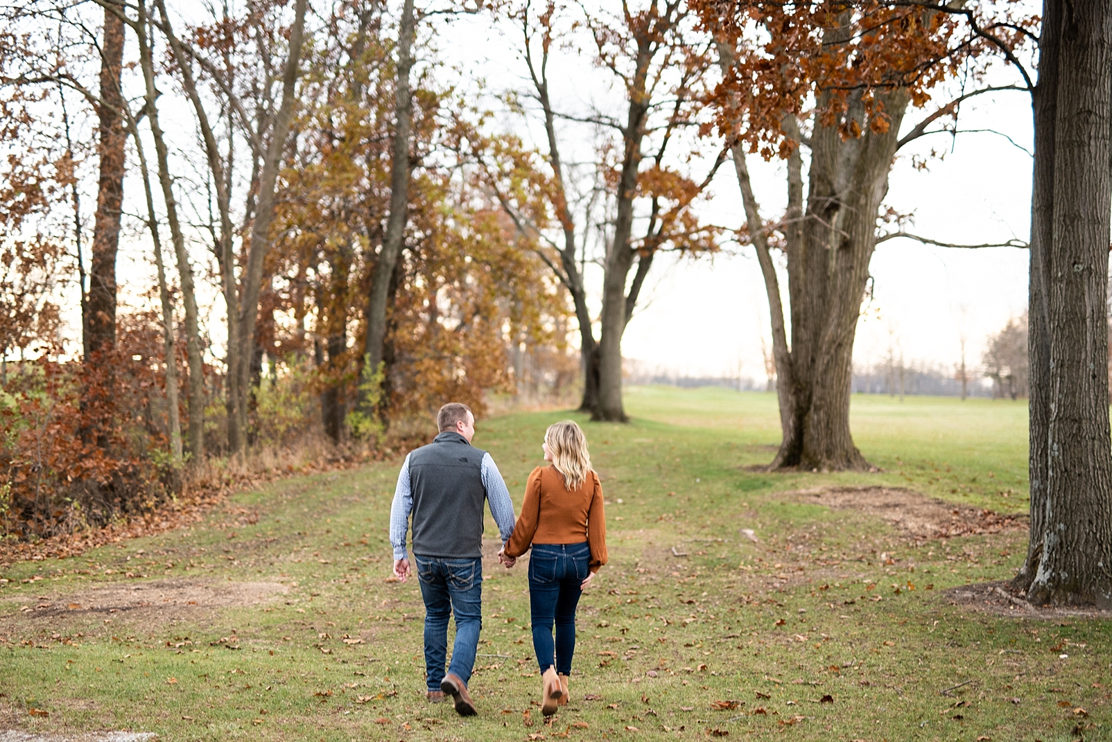 I loved meeting Kassidy and Bradley for their engagement session! Their sweet lab pup, Jack joined us in the beginning for some fun photos. He was more into playing than taking photos but I loved working with their adorable fur baby! Bradley’s sister is the one who introduced Kassidy and Bradley and they hit it off immediately. It was so fitting to capture their engagement session right in their hometown of Watseka since it is so special to them. We started off at Bradley’s parent’s house. They have such a gorgeous property out in the country and the light came in beautifully. Then we headed to a nearby golf course with beautiful landscaping for their second location. We definitely caught that last bit of fall color even at the end of November and it was absolutely perfect. I cannot wait to capture this sweet couple again for their wedding day next year!